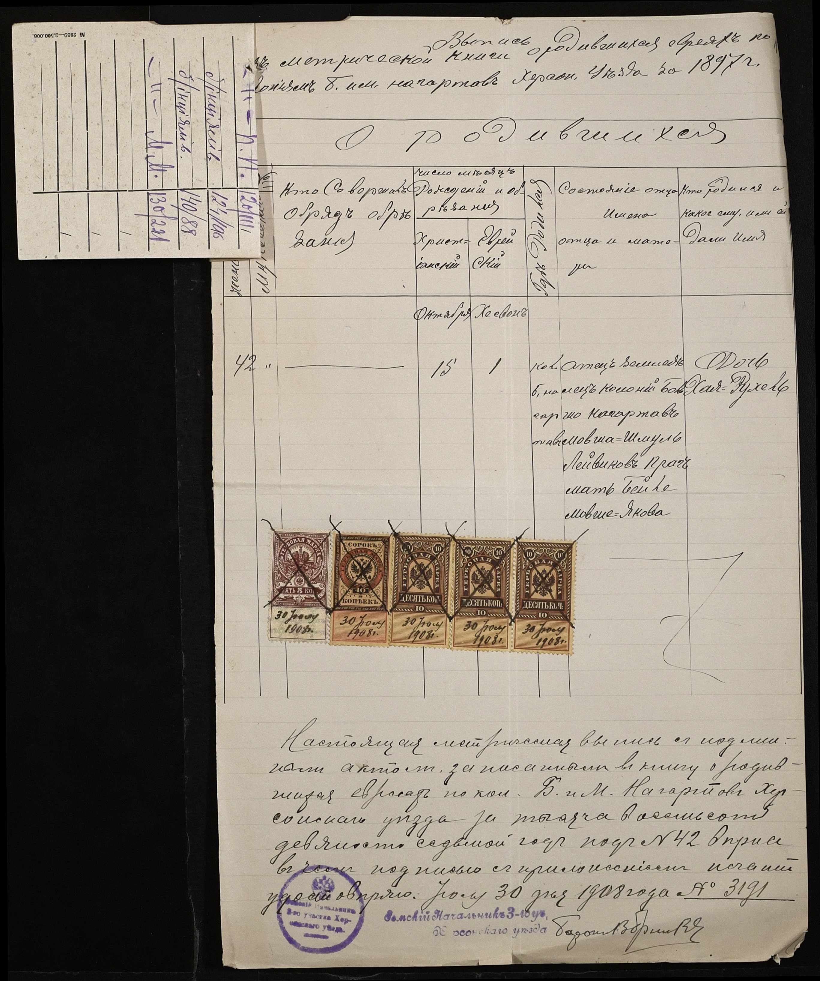 ◦ ◦ ◦ Опис № 1 справ постійного зберігання за 1908 – 1920 роки