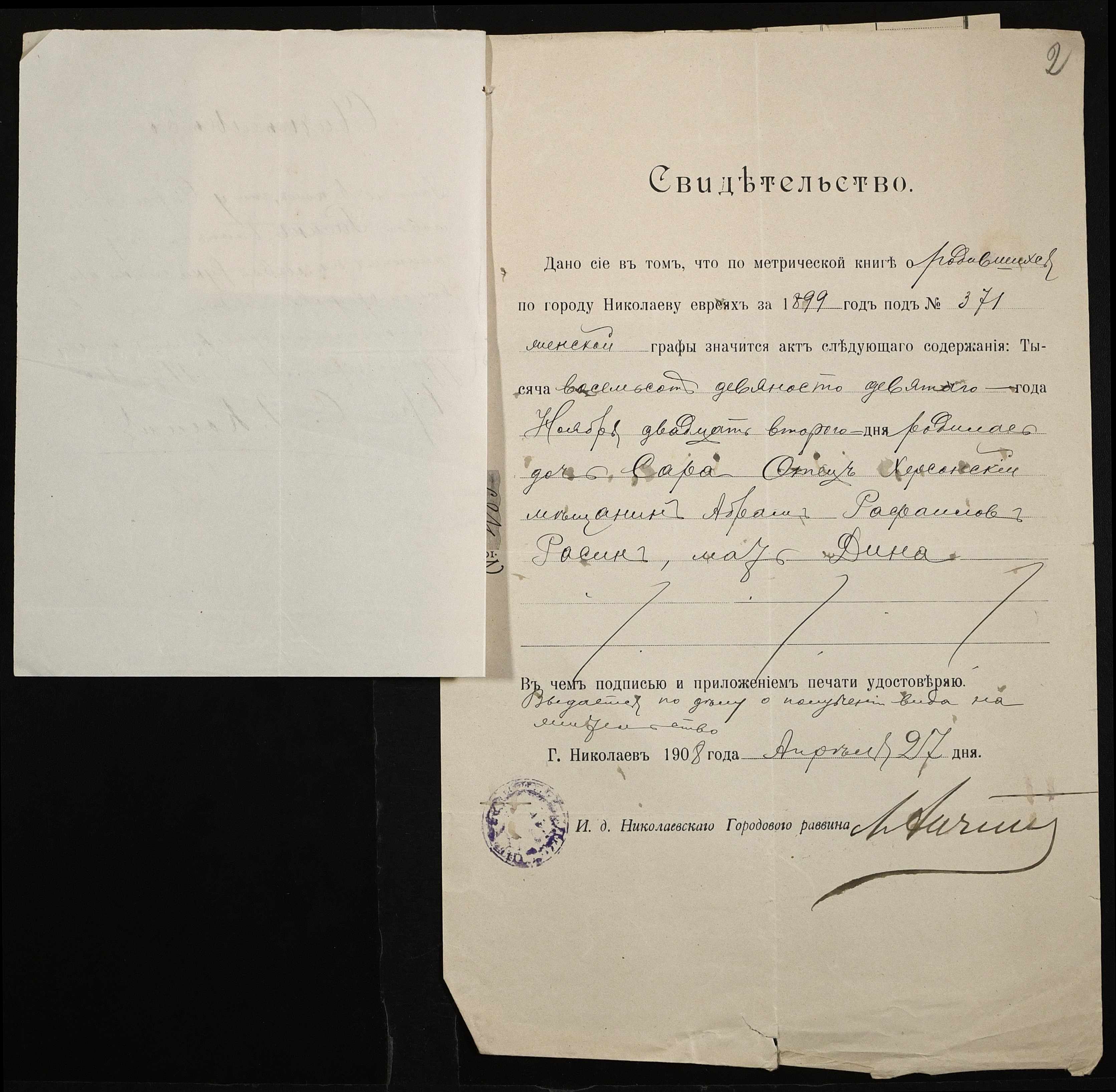 • • • • Справа № 394 “Расіна Сара”