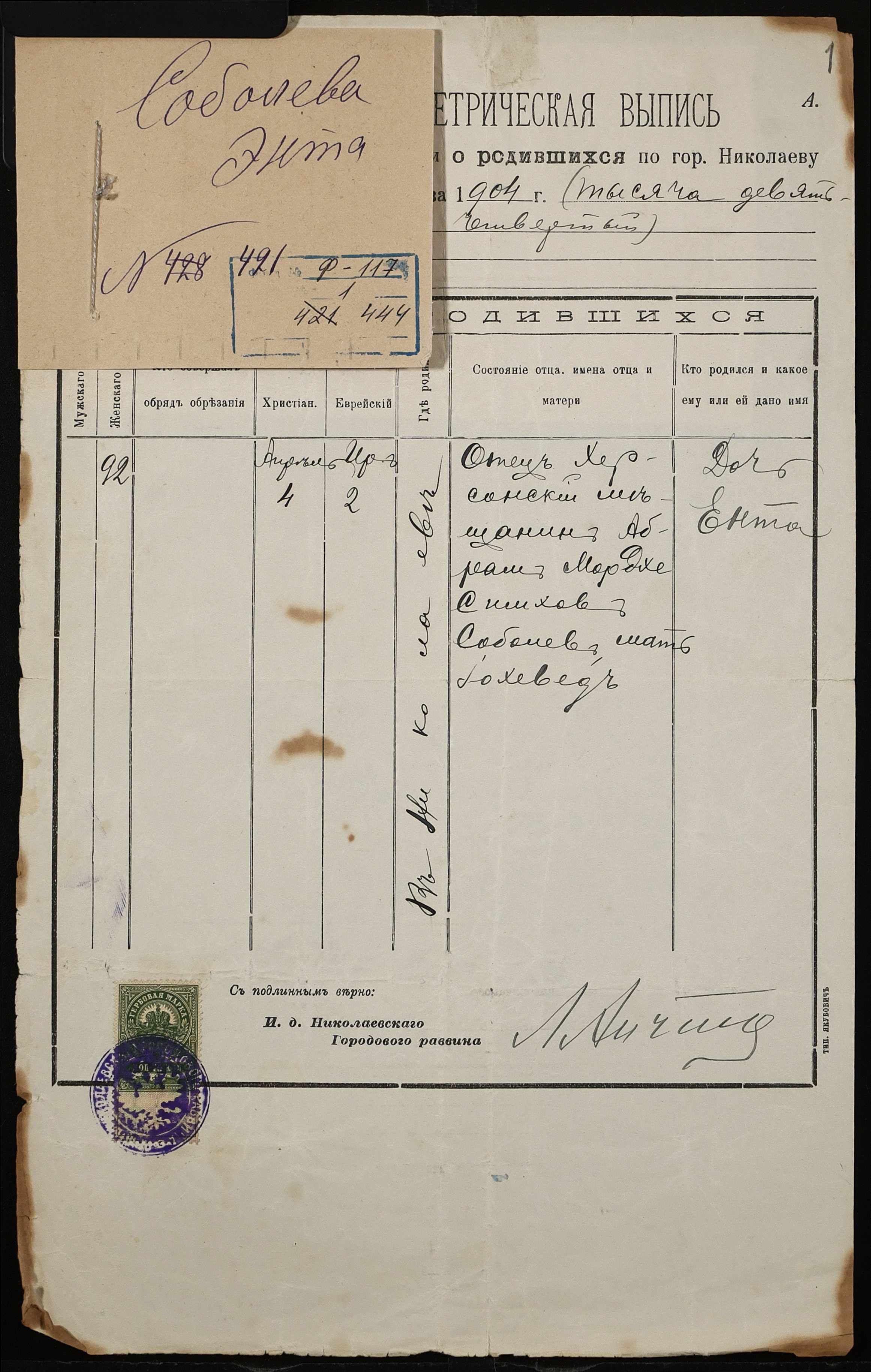 Фонд 117 / Опис 1 / Справа 444