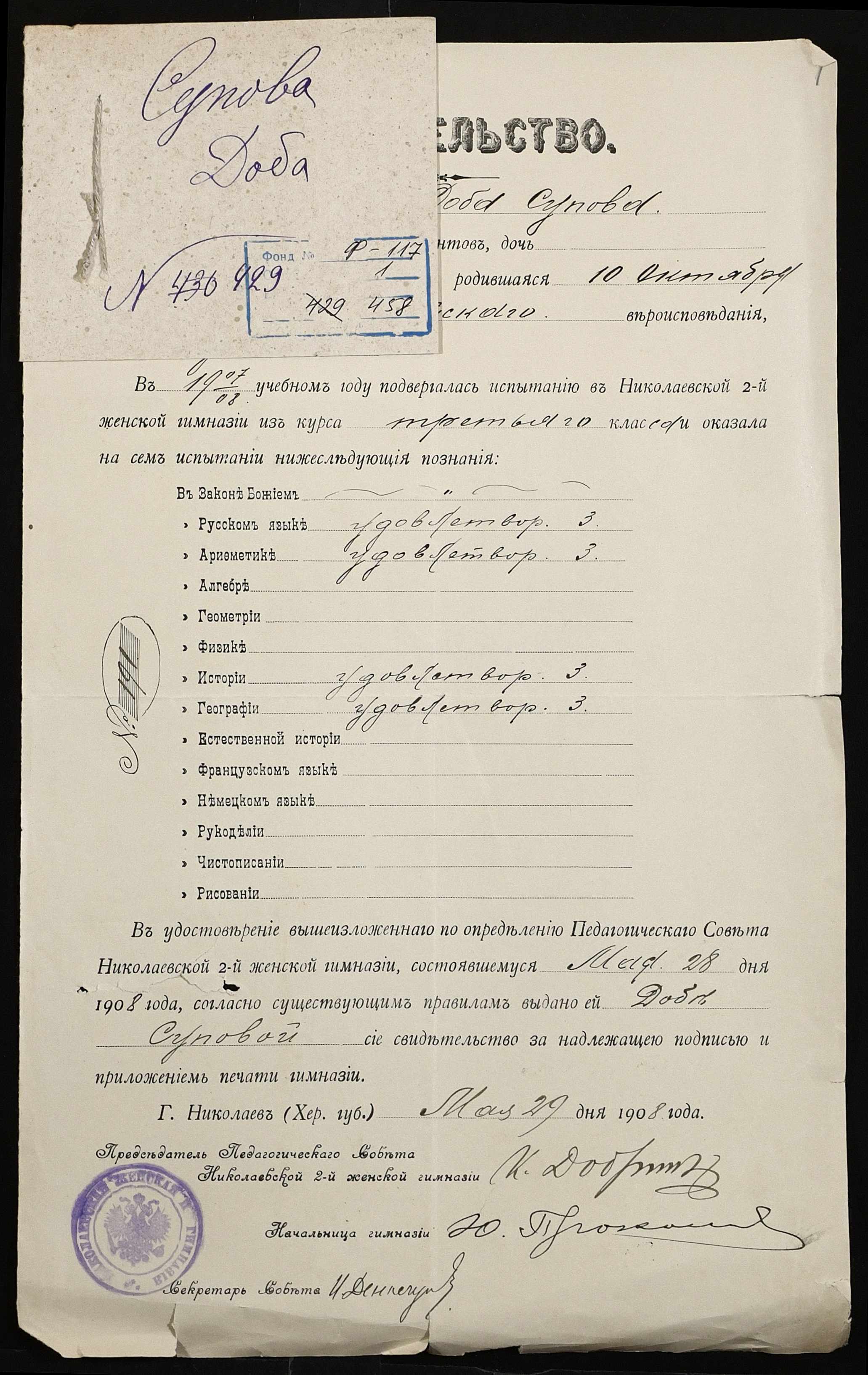◦ ◦ Фонд № 117 “Миколаївська 5-а жіноча гімназія”