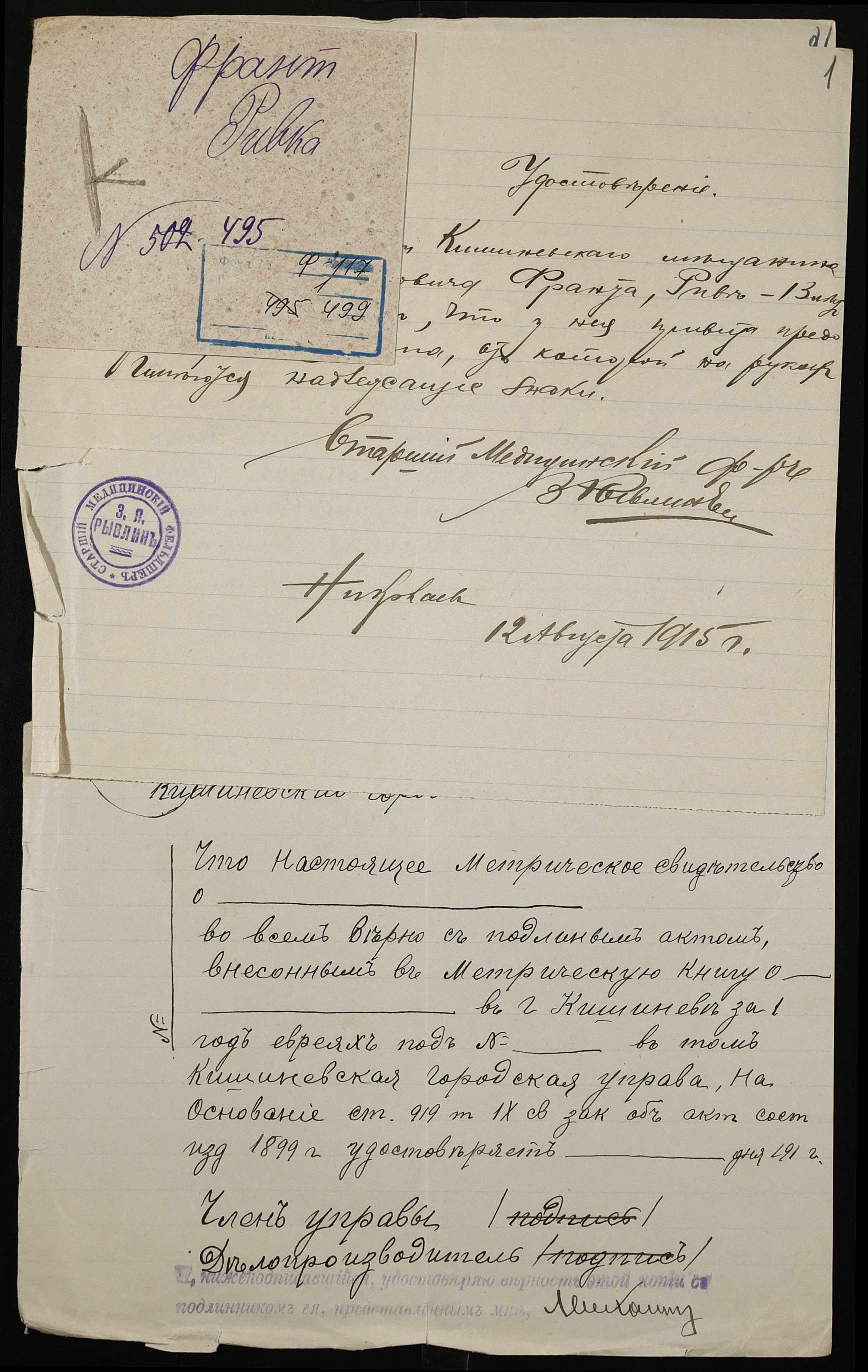 • • • • Справа № 499 “Франт Рівка”