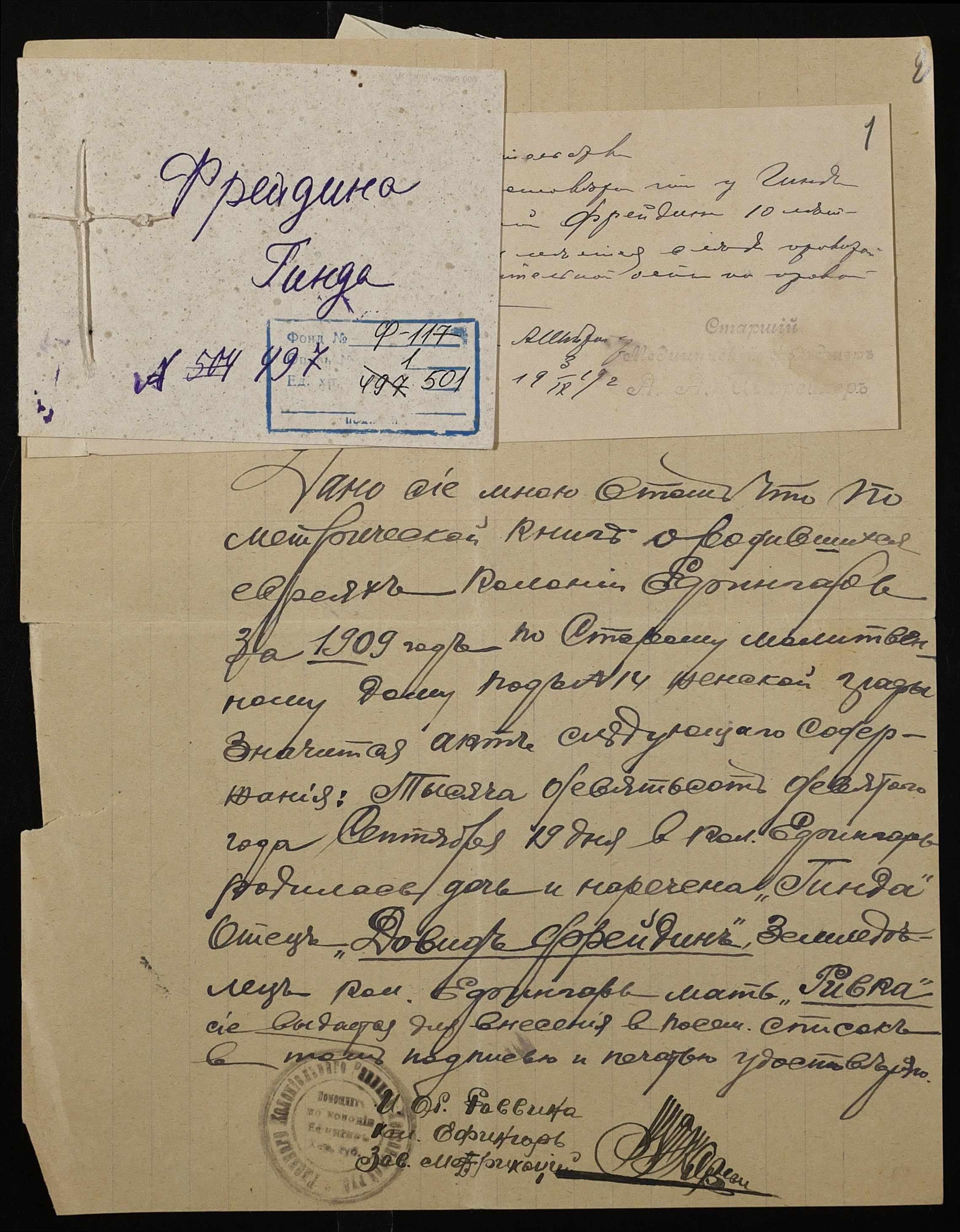Фонд 117 / Опис 1 / Справа 501