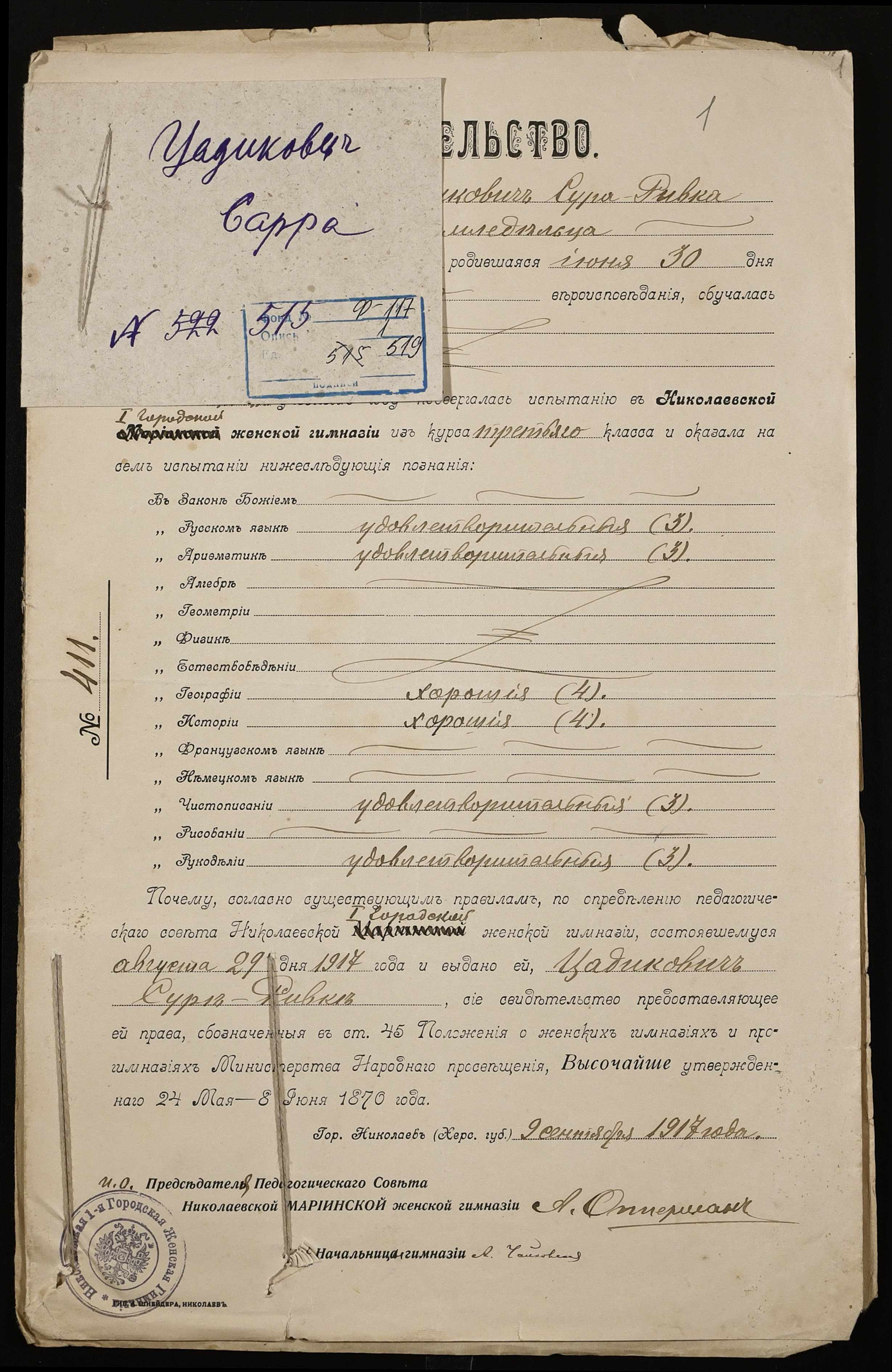 • • • • Справа № 519 “Цадікович Сара”