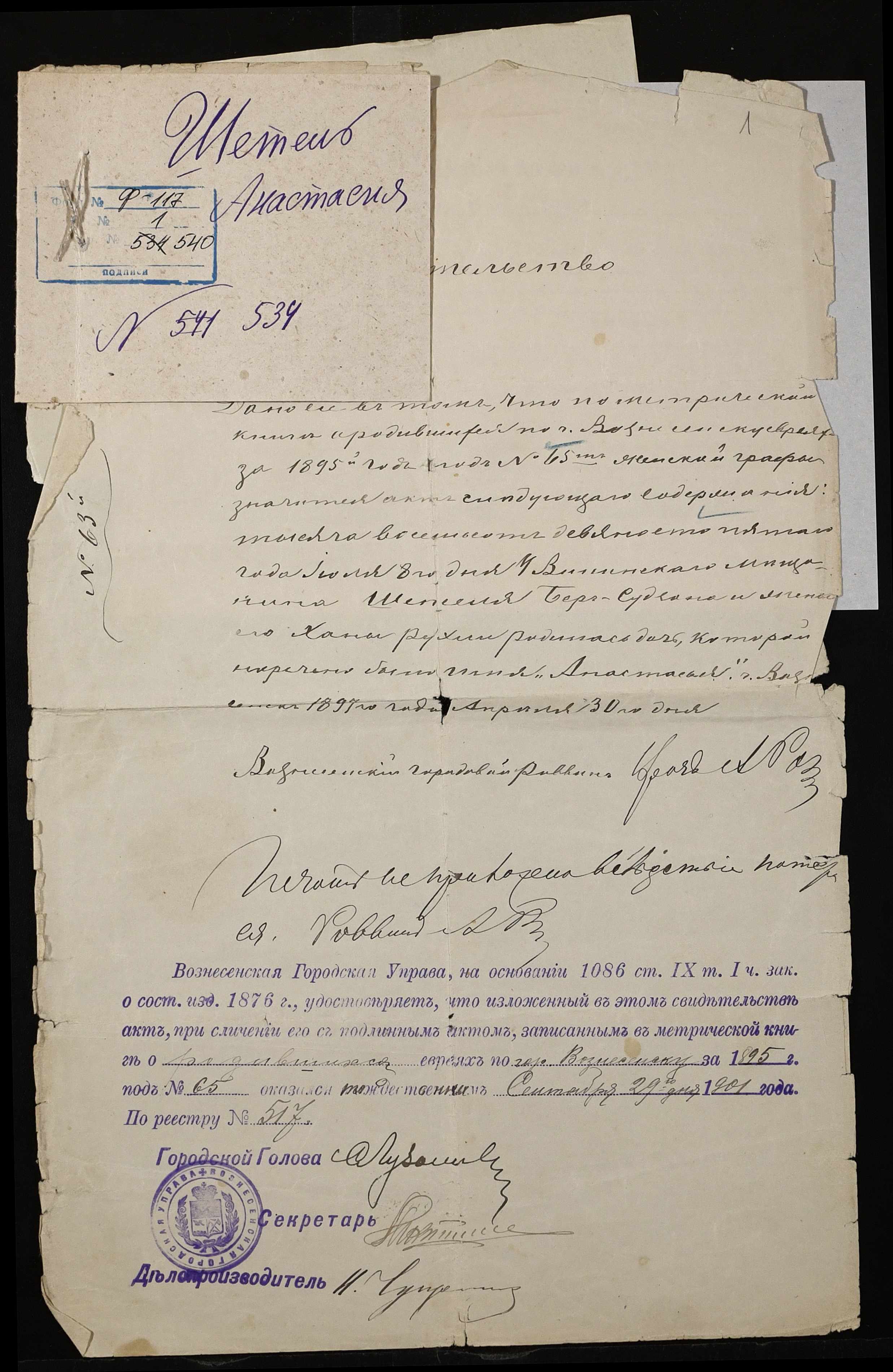 • • • • Справа № 540 “Шетель Анастасія”