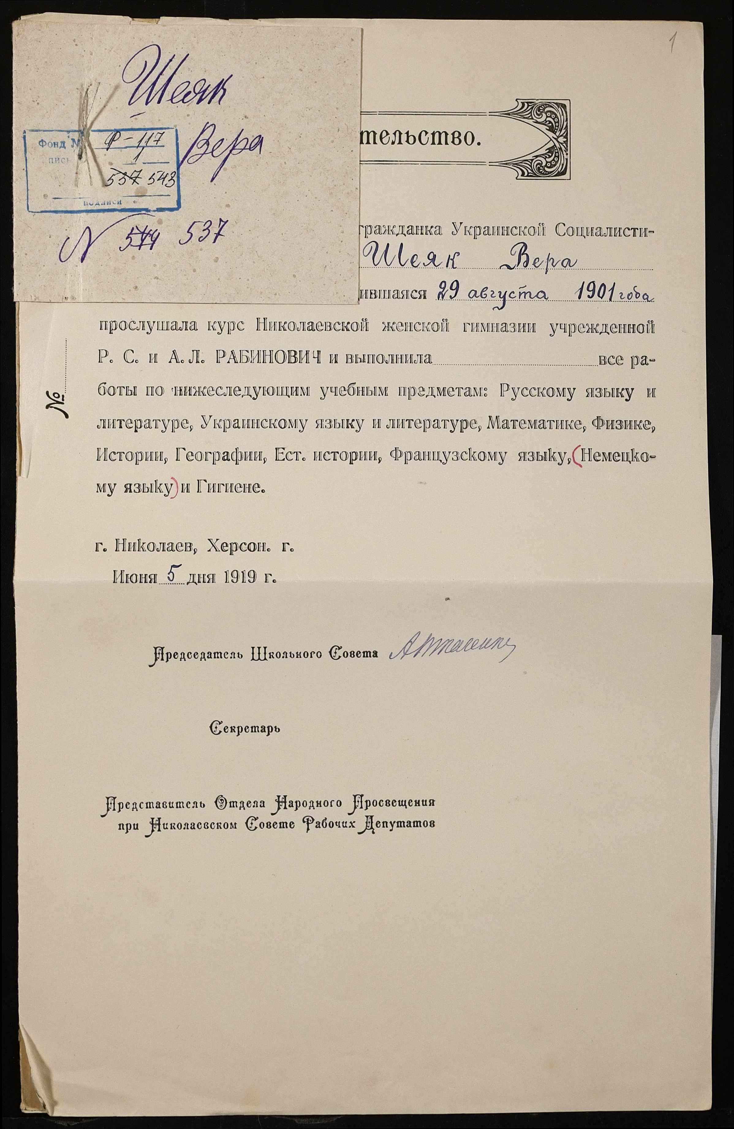 ◦ ◦ Фонд № 117 “Миколаївська 5-а жіноча гімназія”