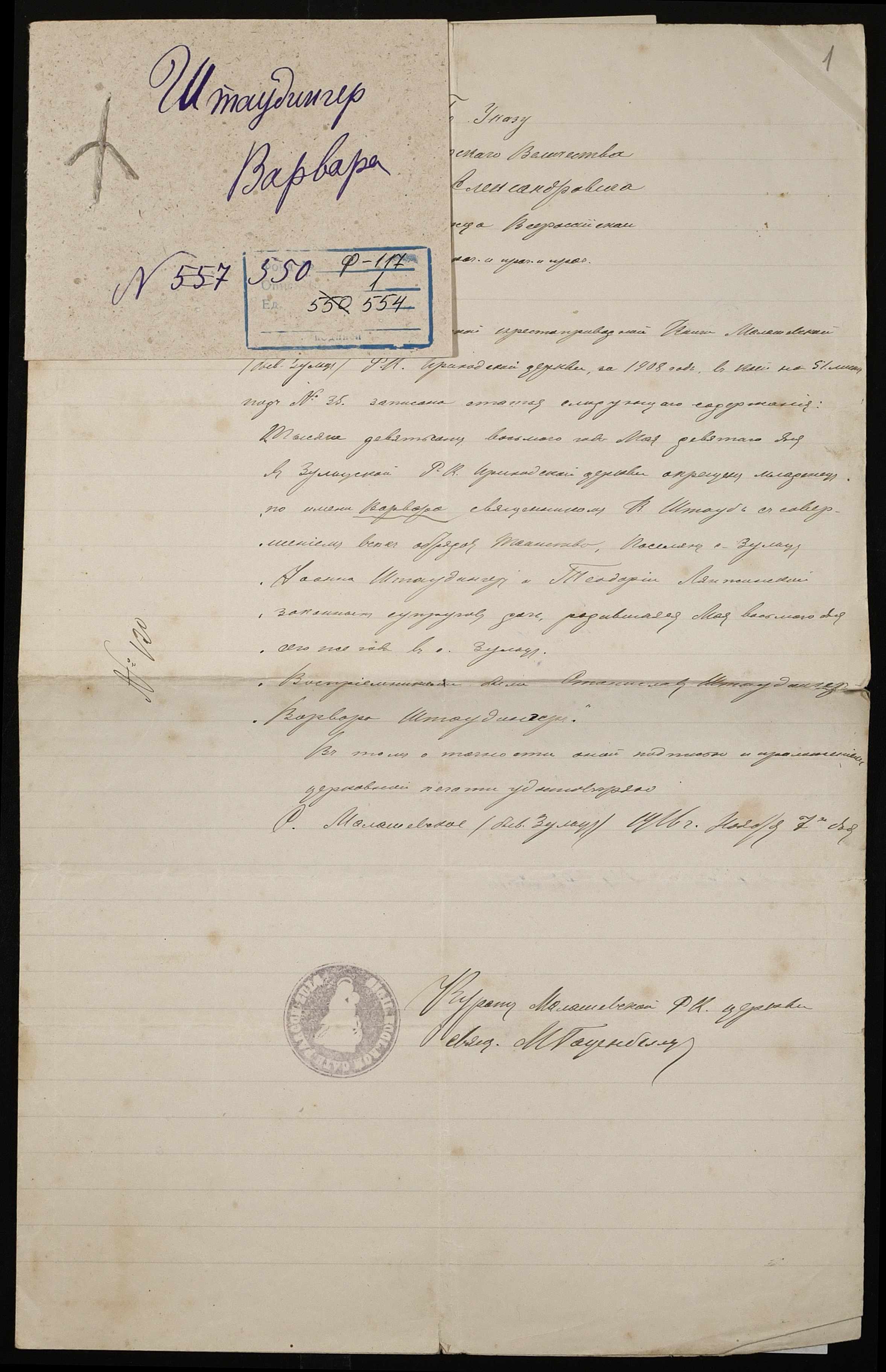 • • • • Справа № 554 “Штаудінгер Варвара”