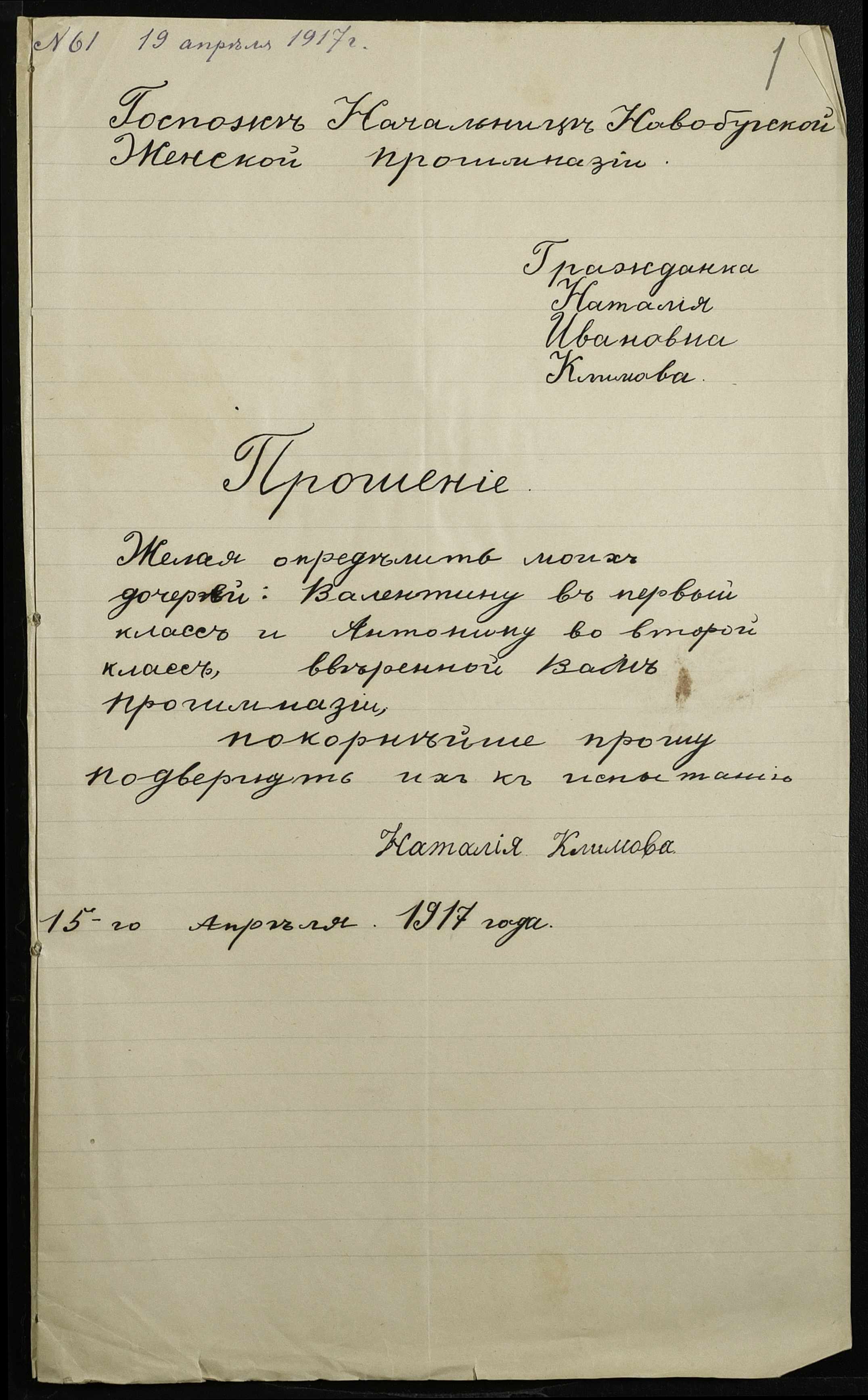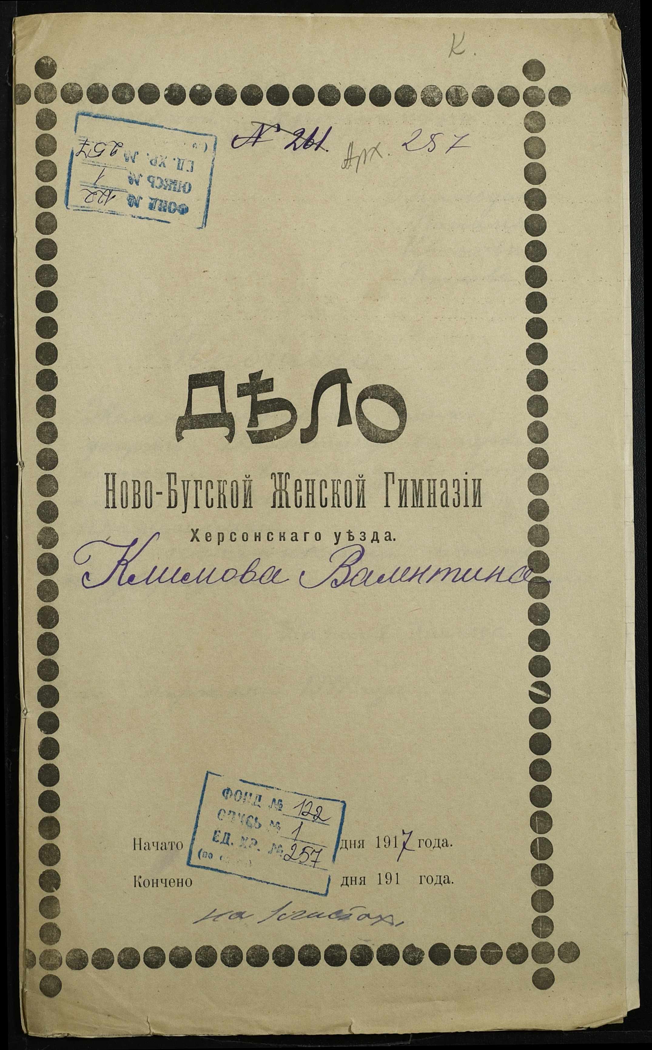 • • • • Справа № 257 “Особова справа Климової Валентини (Климовой Валентины)”
