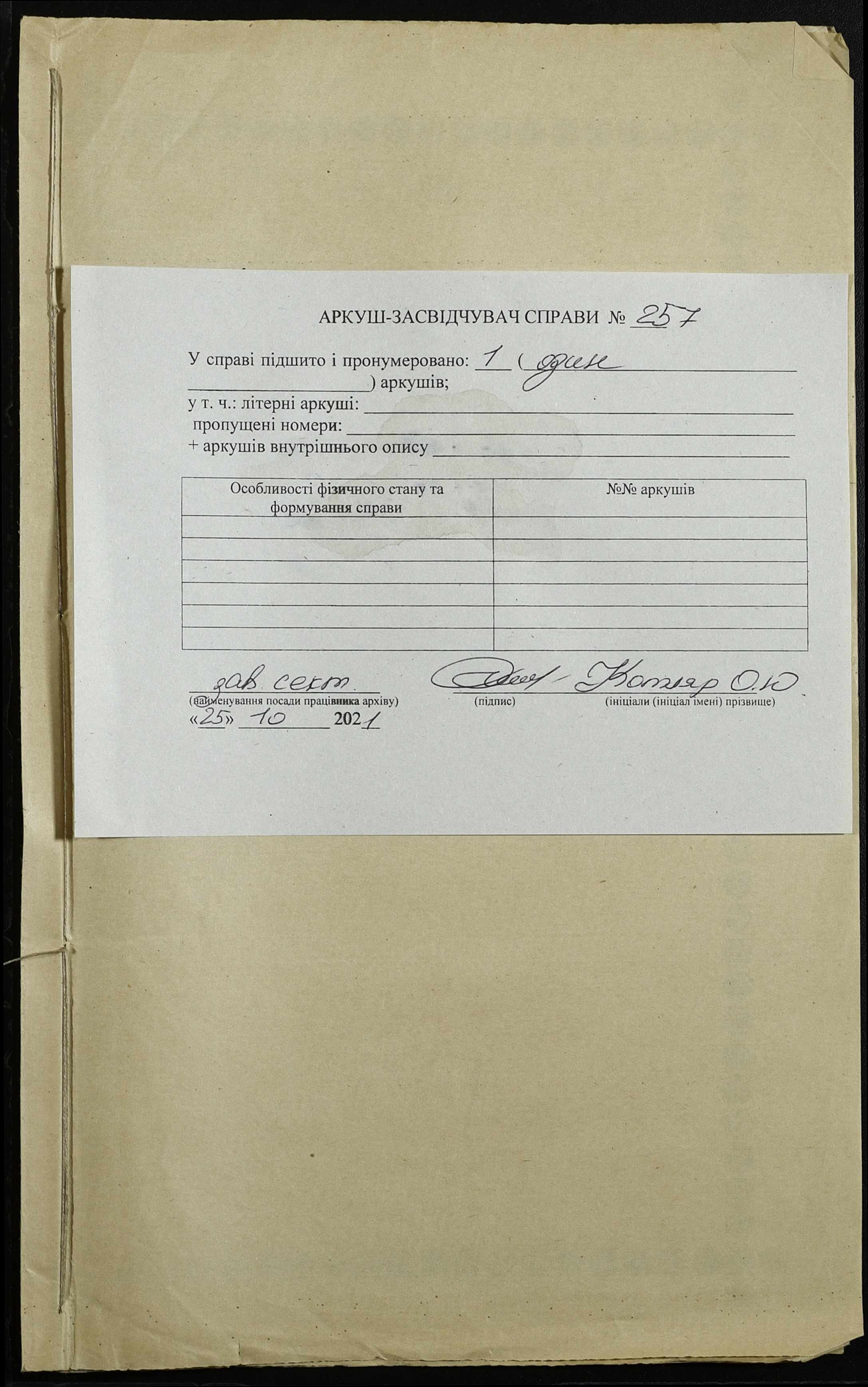 Фонд 122 / Опис 1 / Справа 257