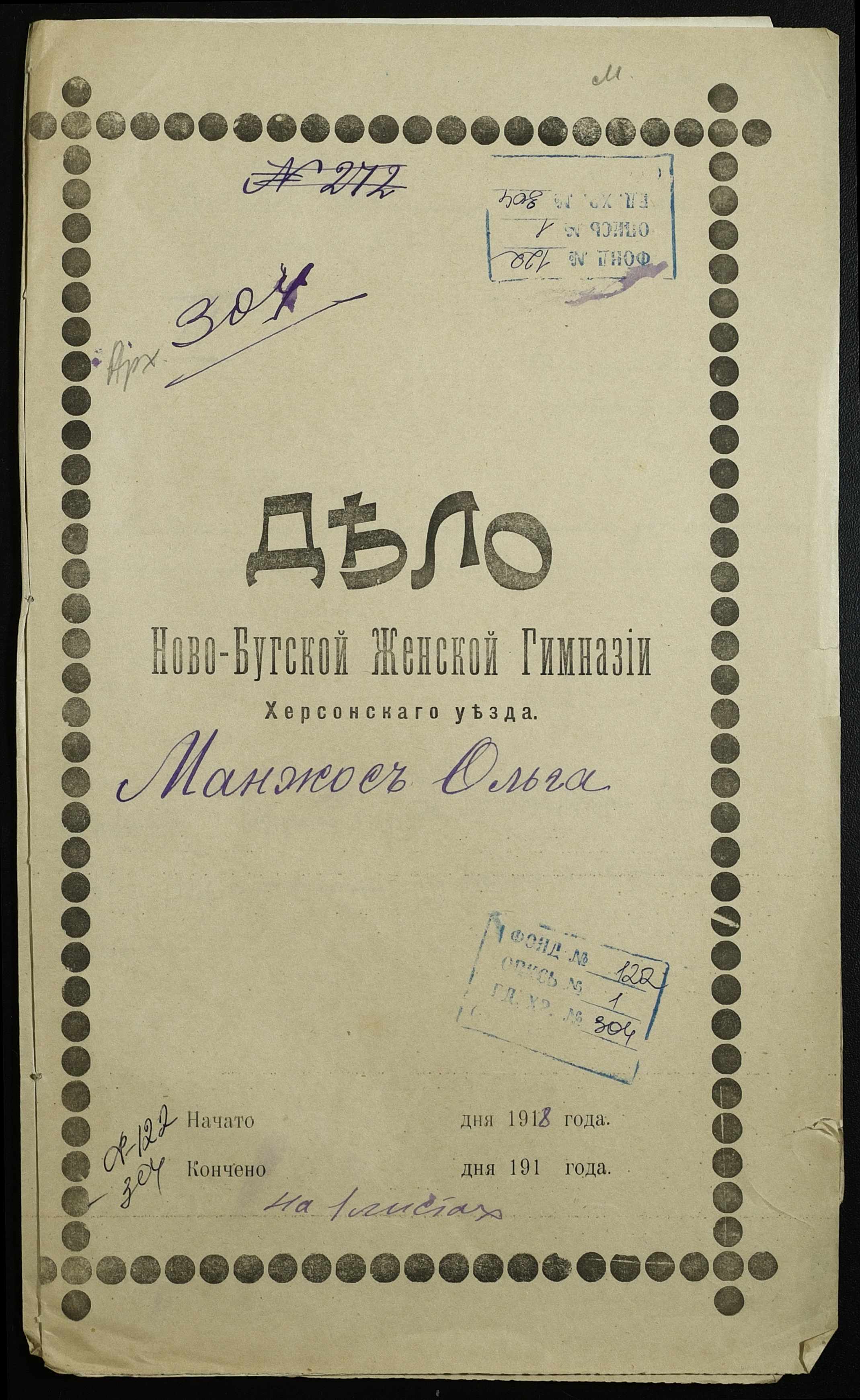 • • • • Справа № 304 “Особова справа Манжос Ольги (Манжос Ольги)”