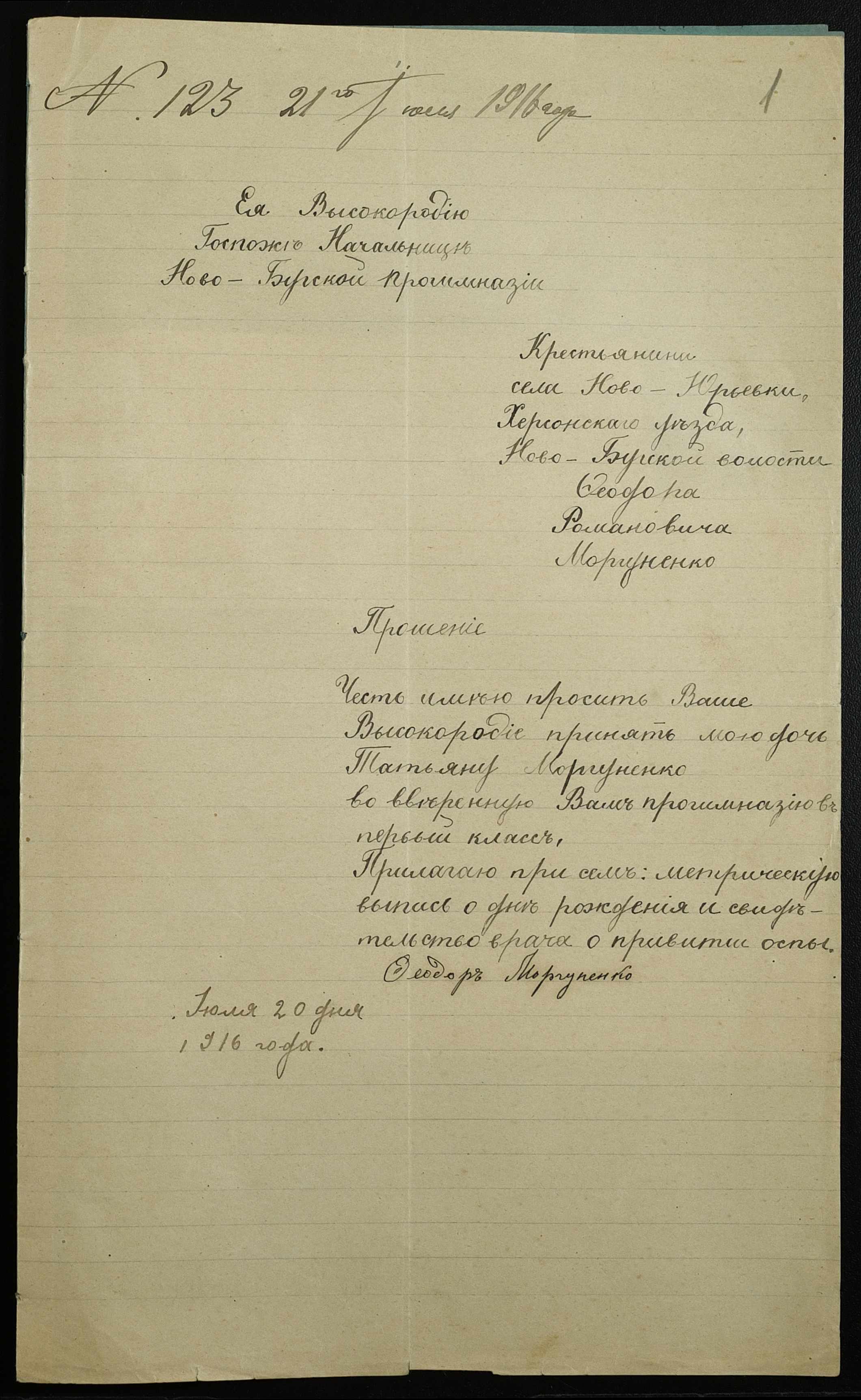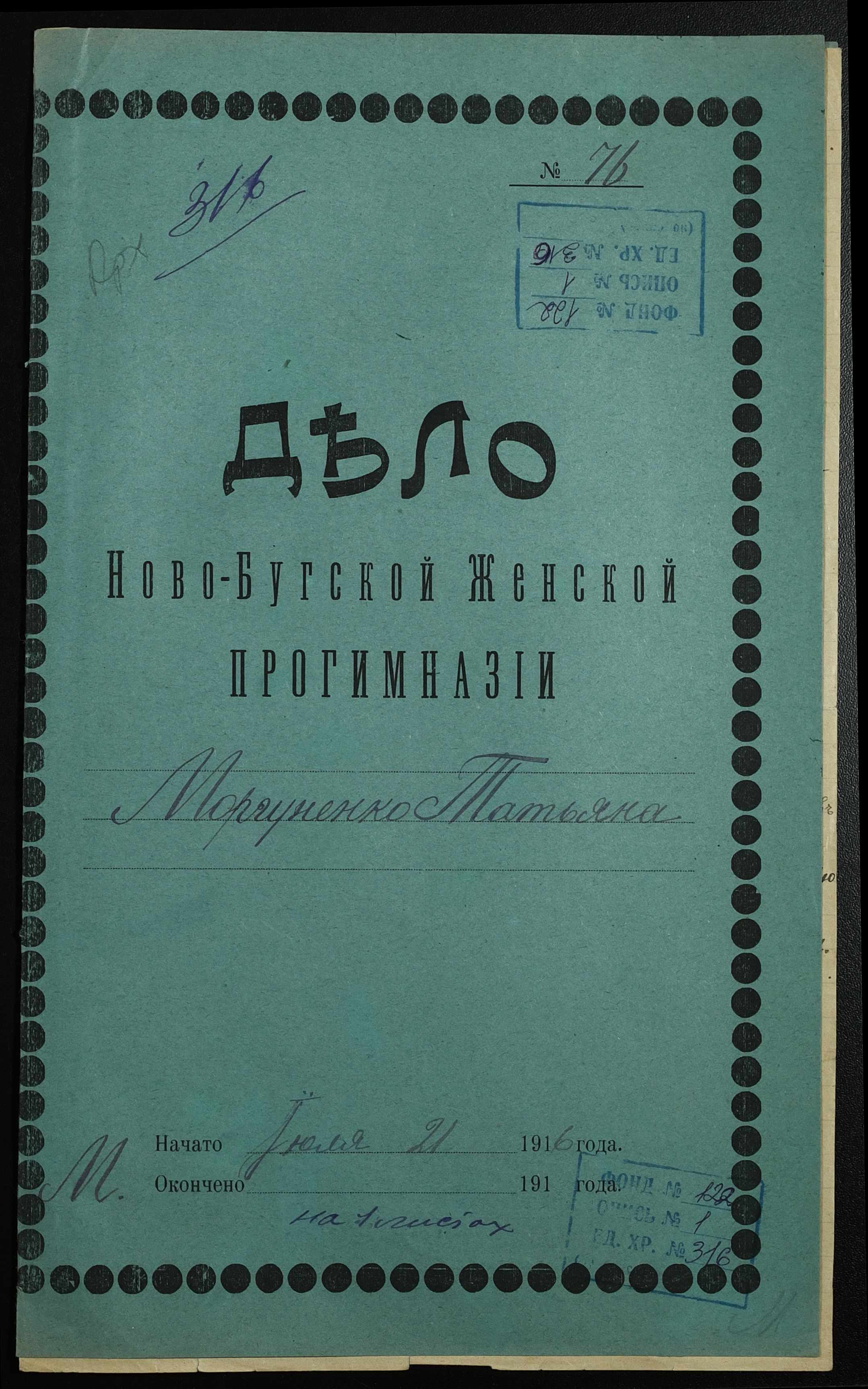 • • • • Справа № 316 “Особова справа Моргуненко Тетяни (Моргуненко Татьяны)”