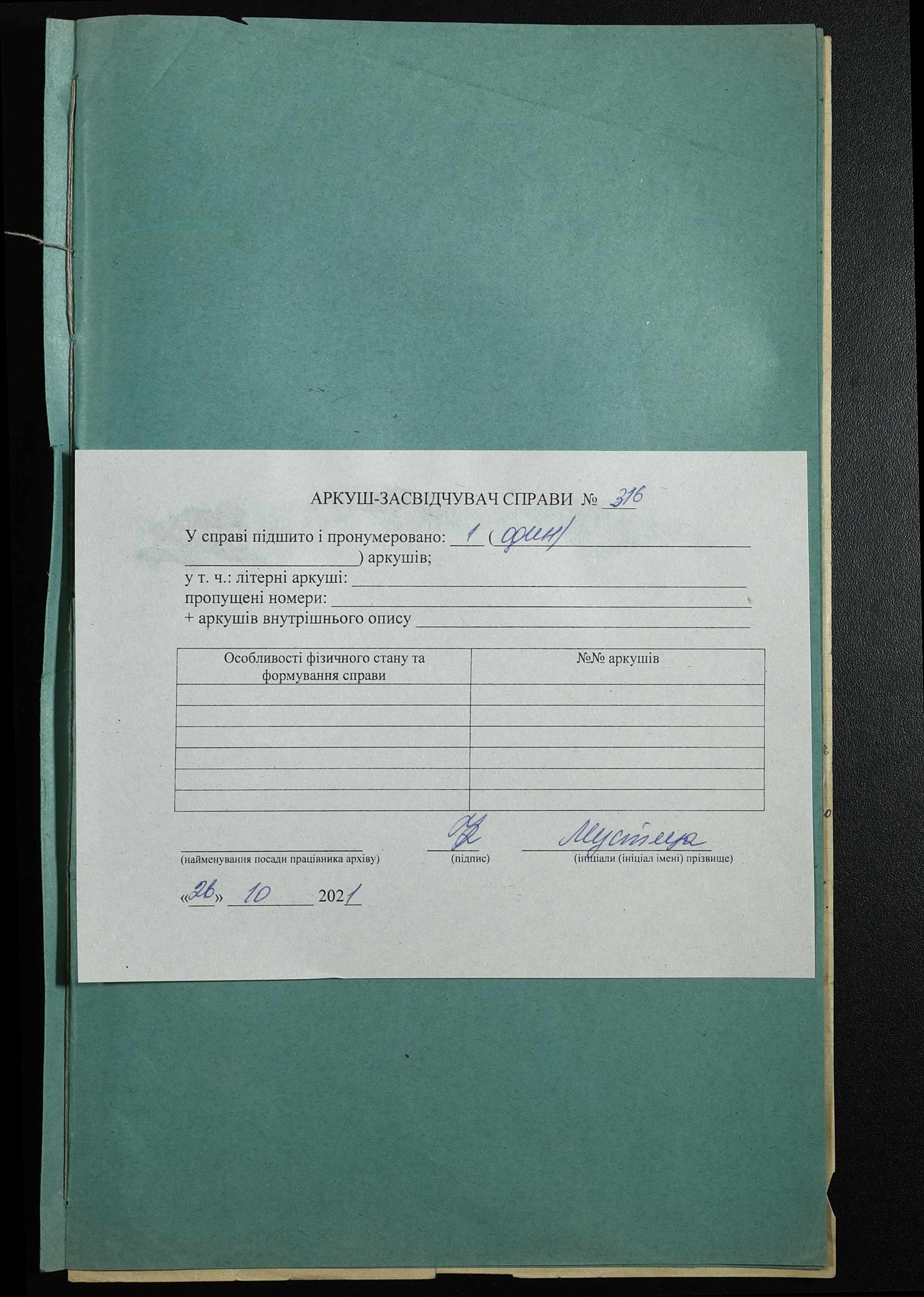Фонд 122 / Опис 1 / Справа 316