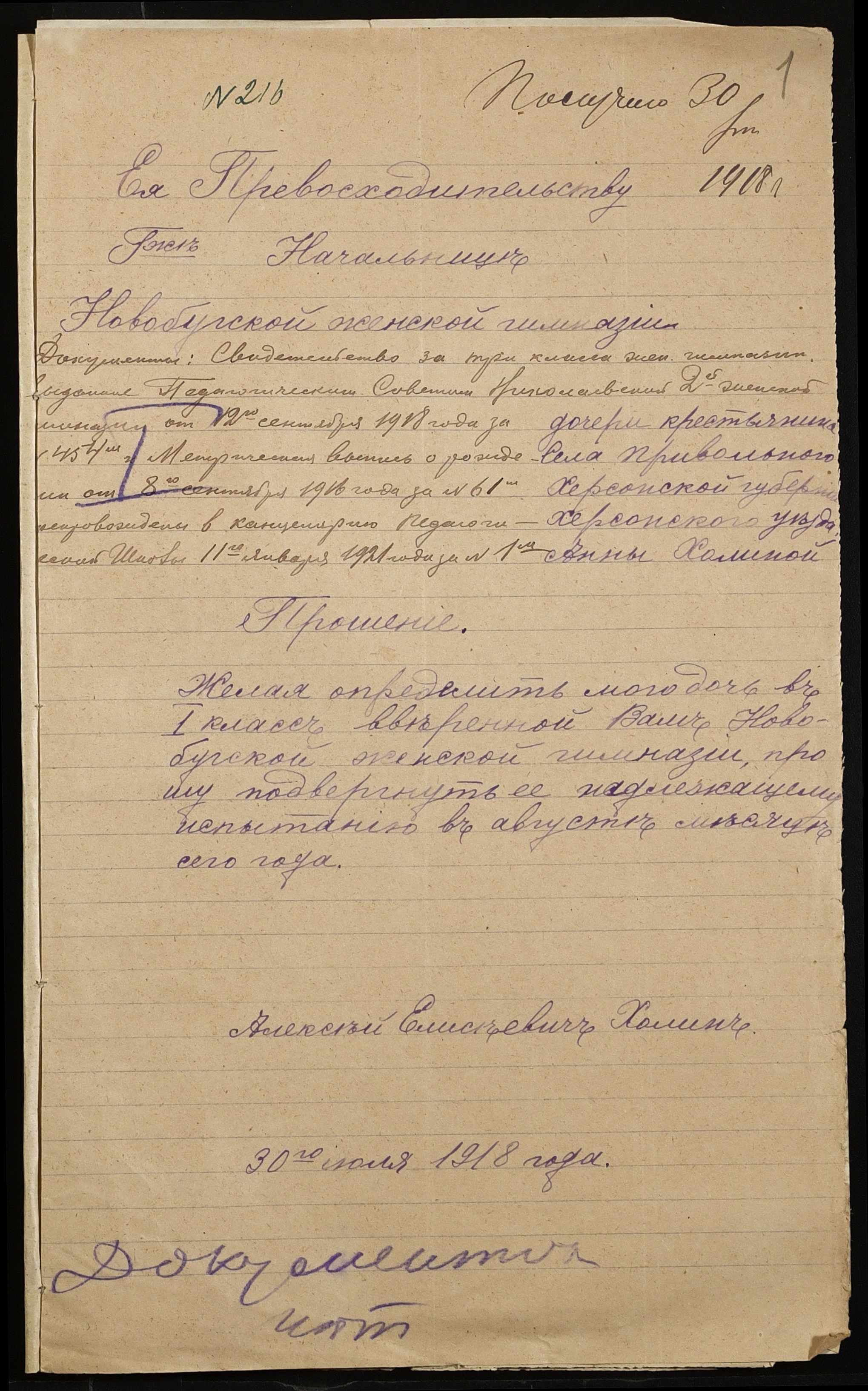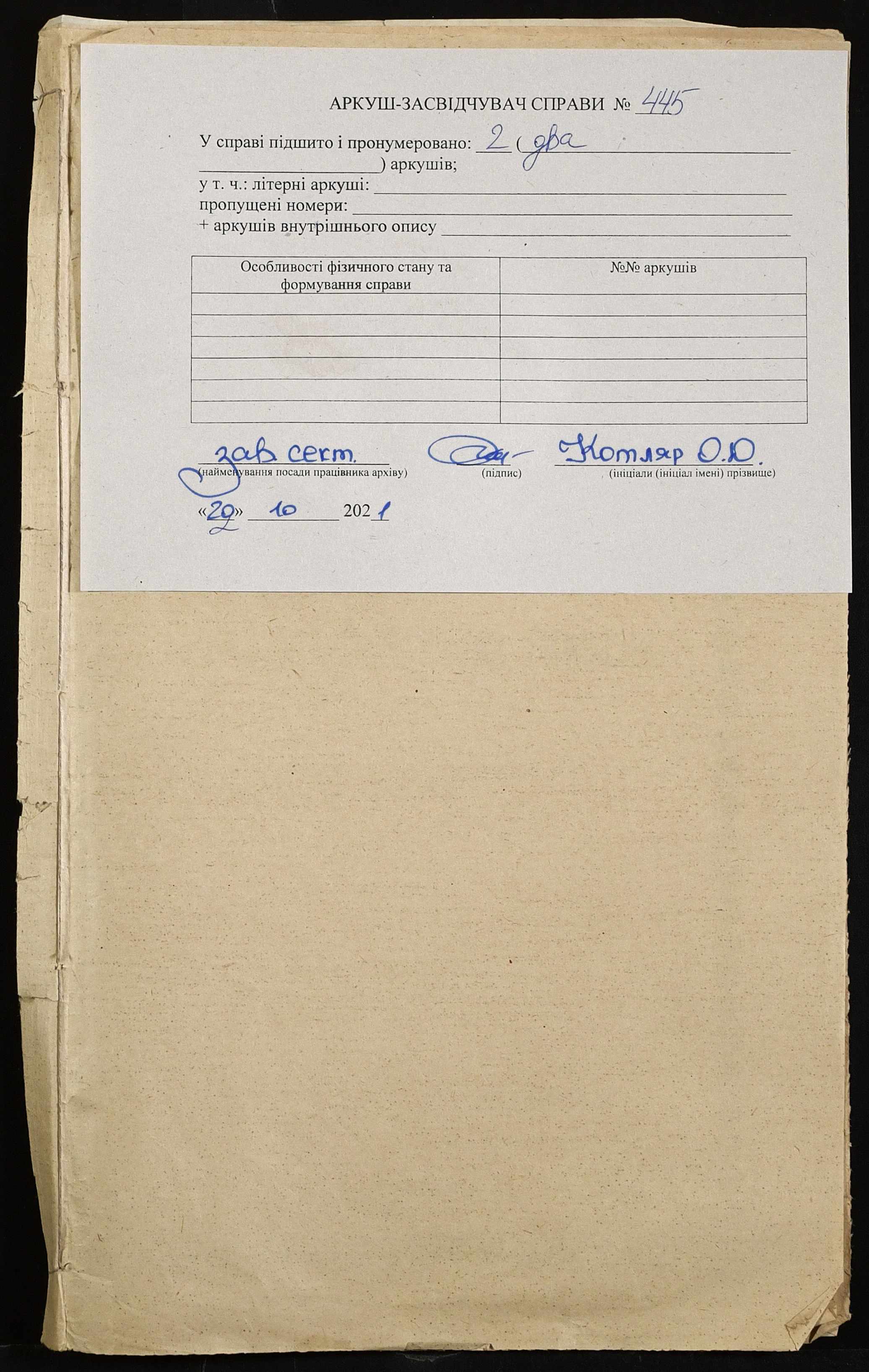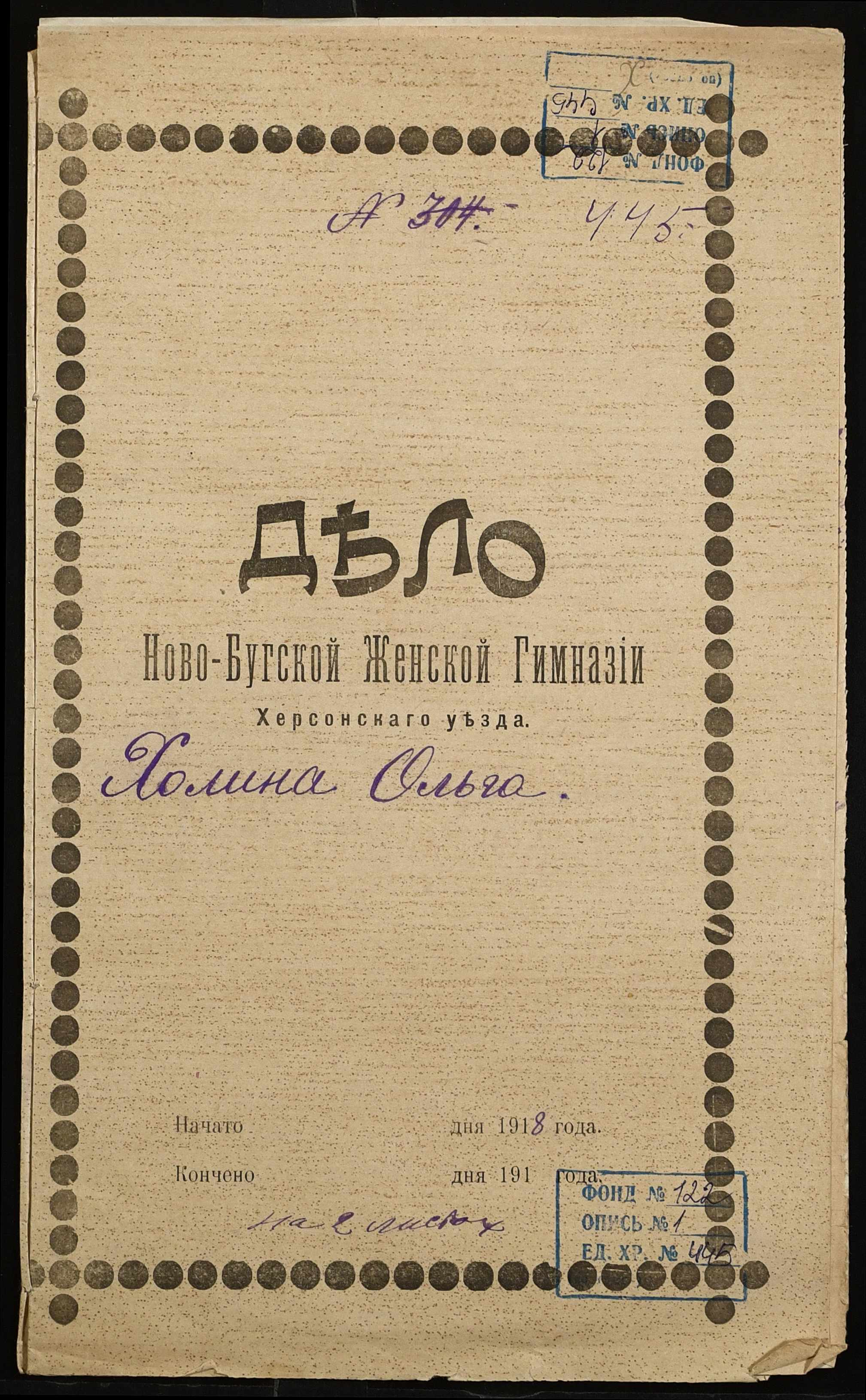 • • • • Справа № 445 “Особова справа Холіної Ольги (Холиной Ольги)”
