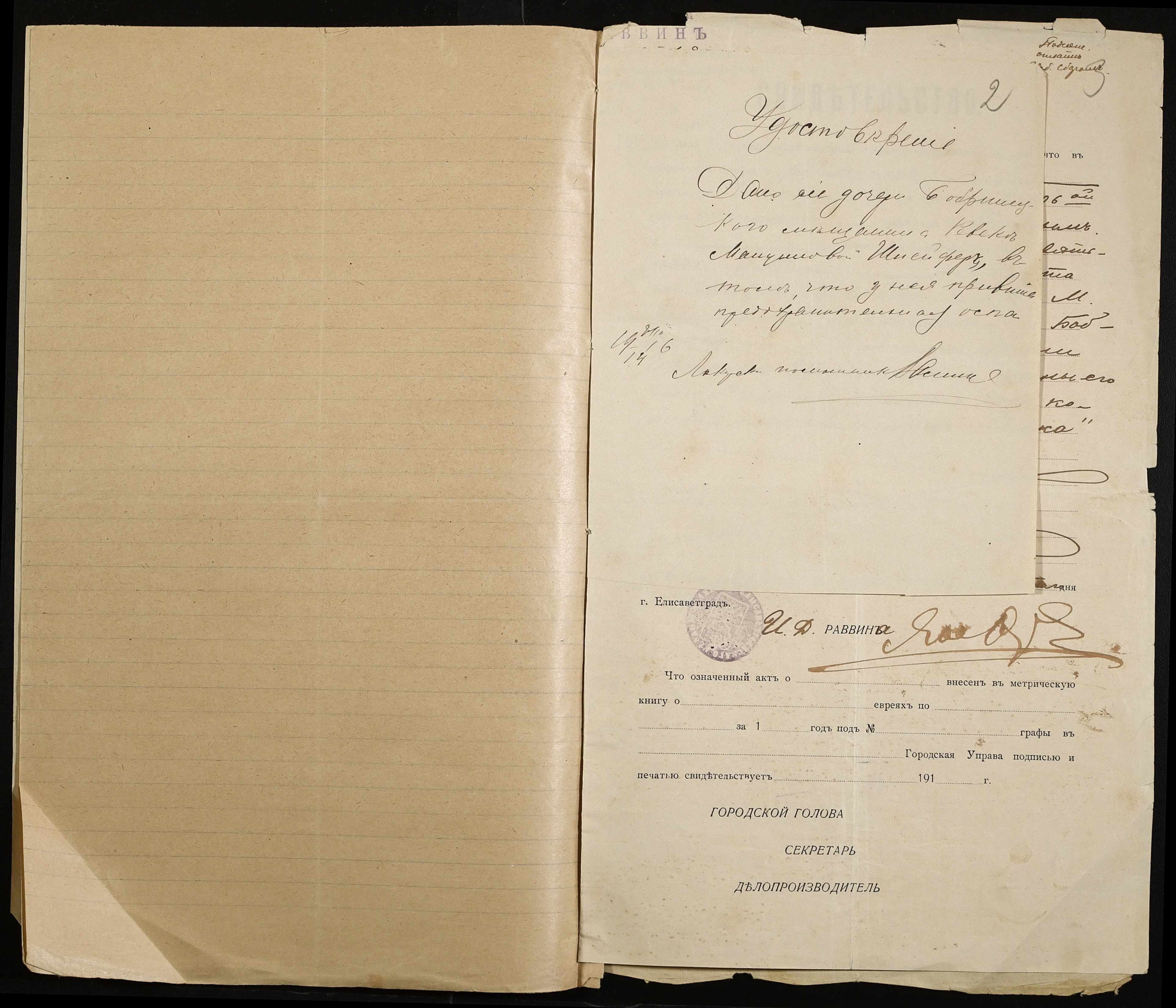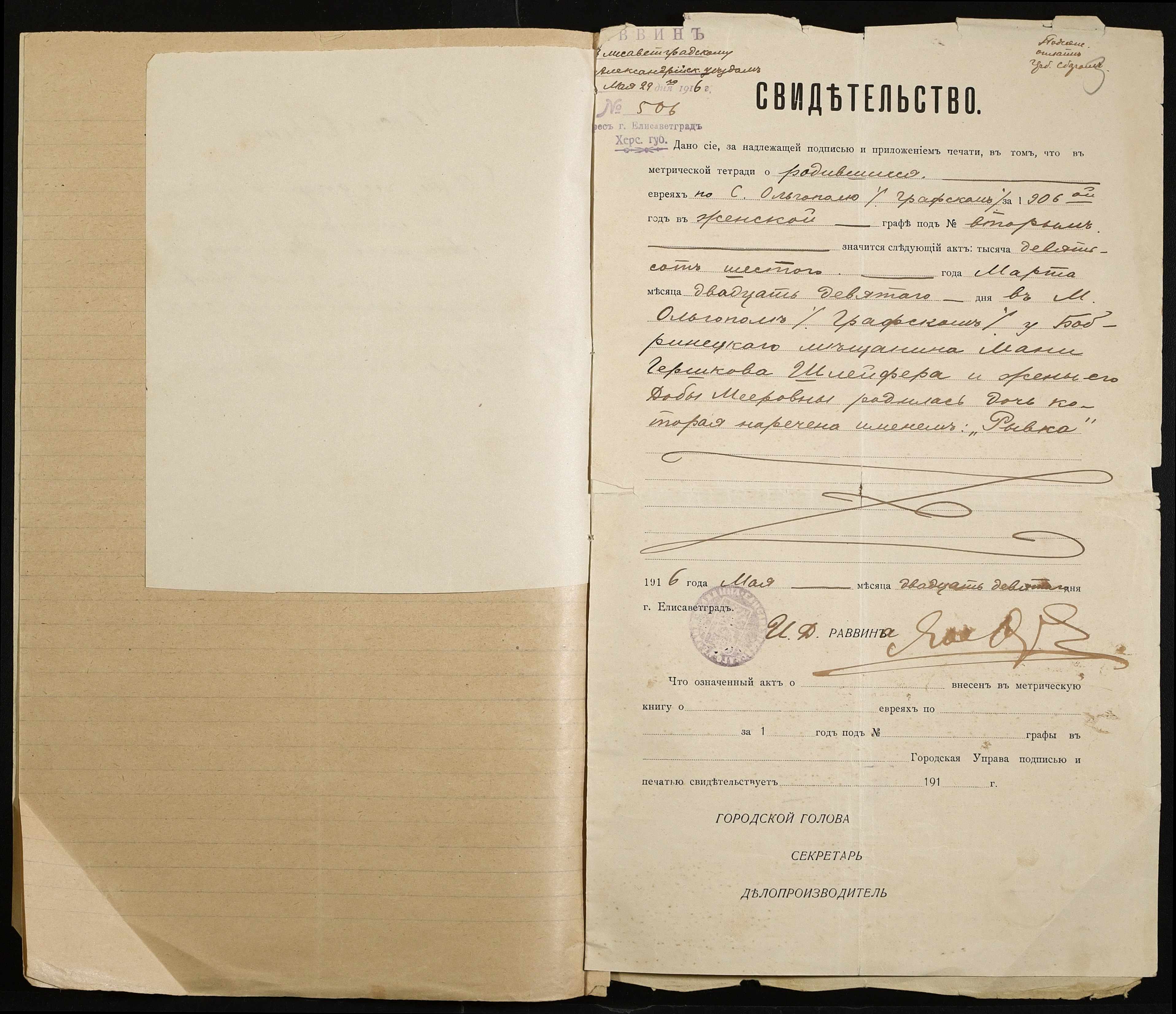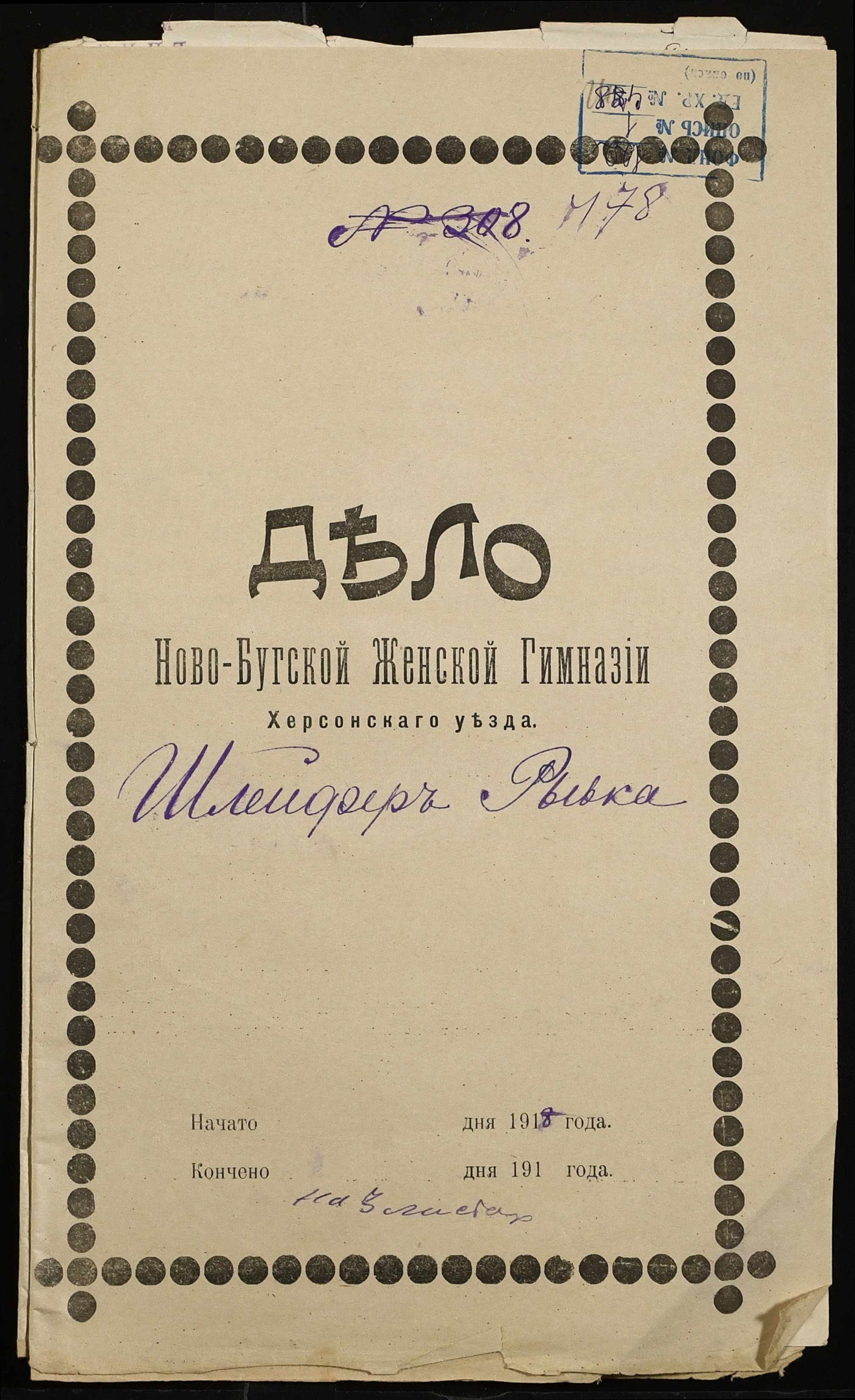 • • • • Справа № 478 “Особова справа Шлейфер Рівки (Шлейфер Ривки)”