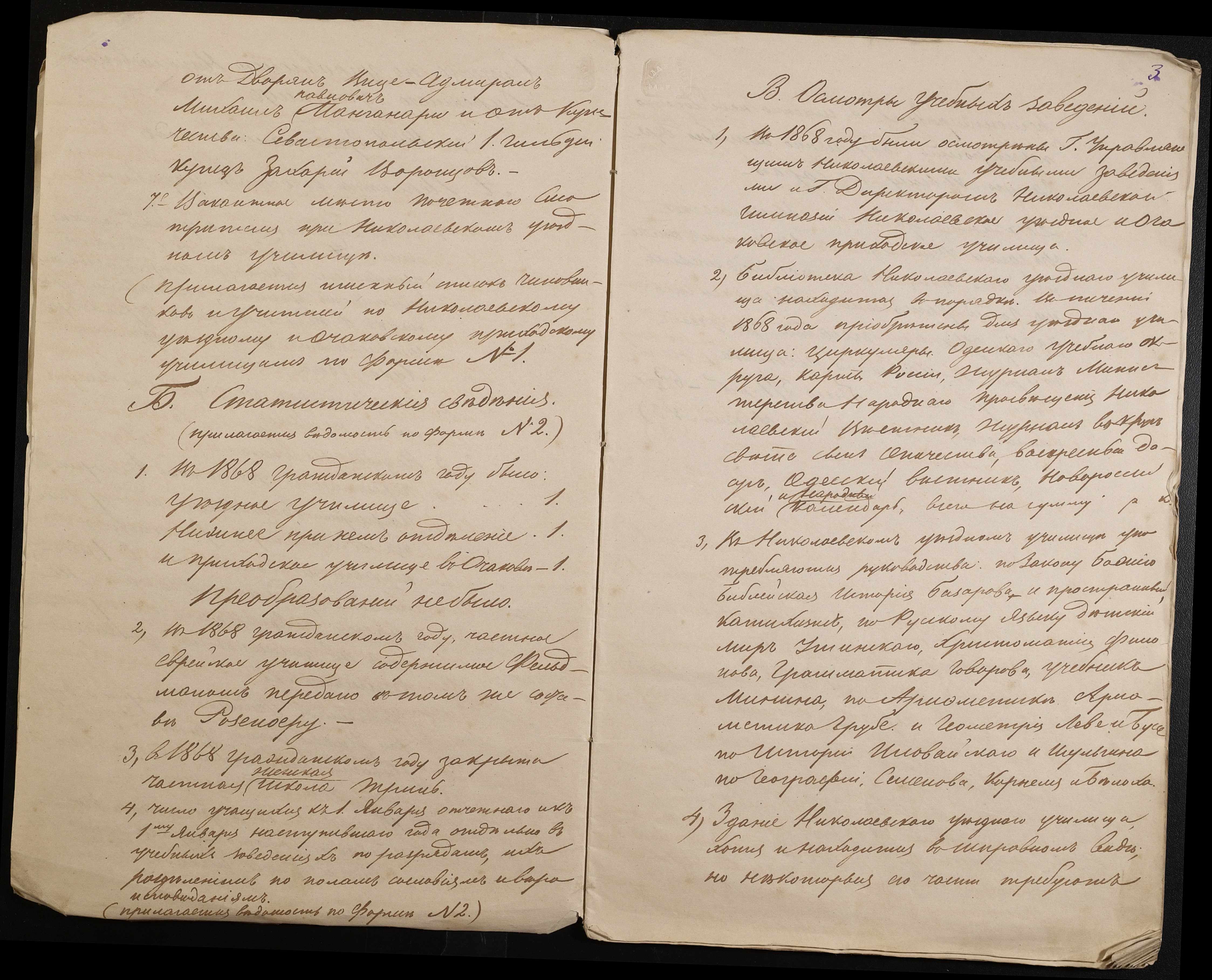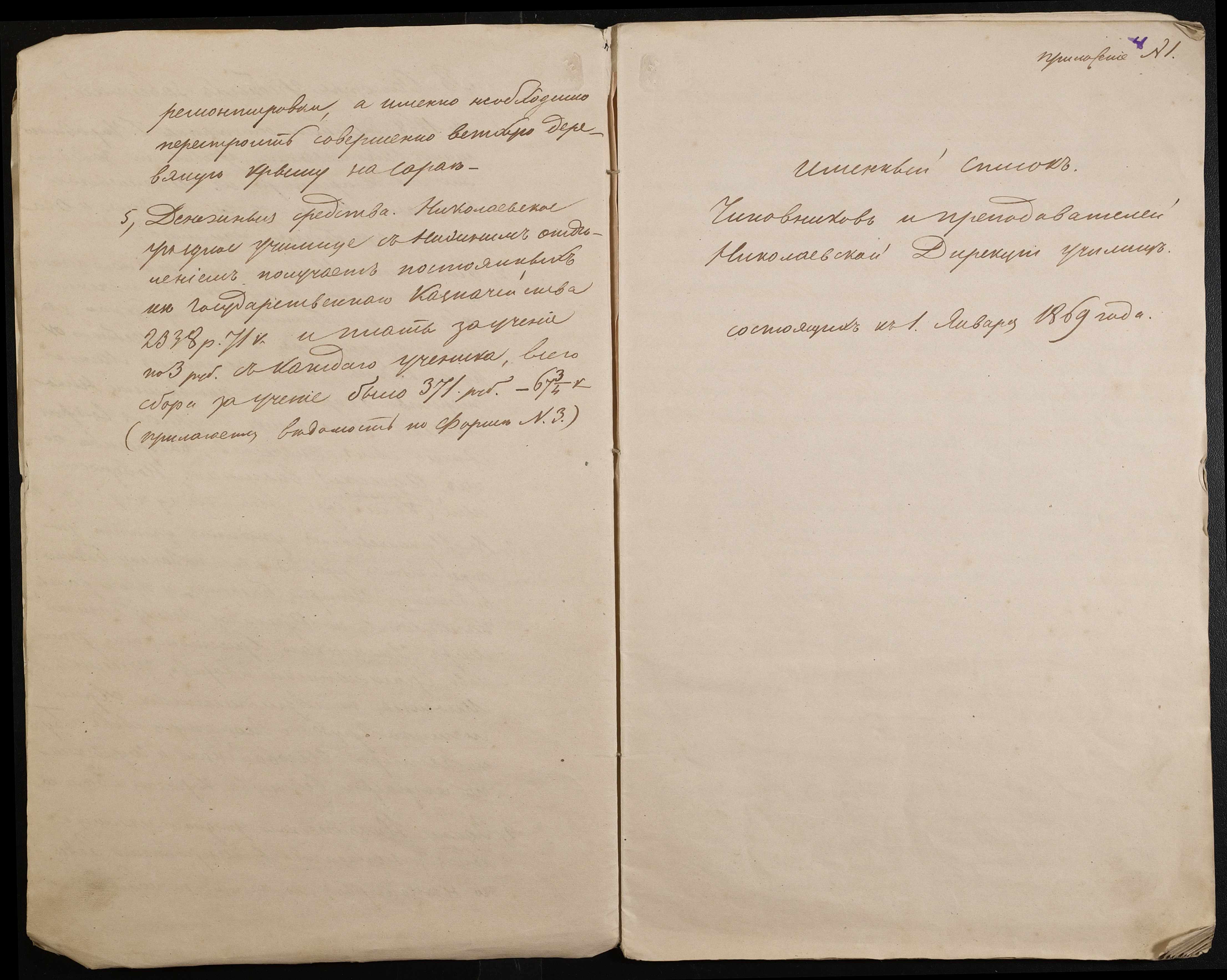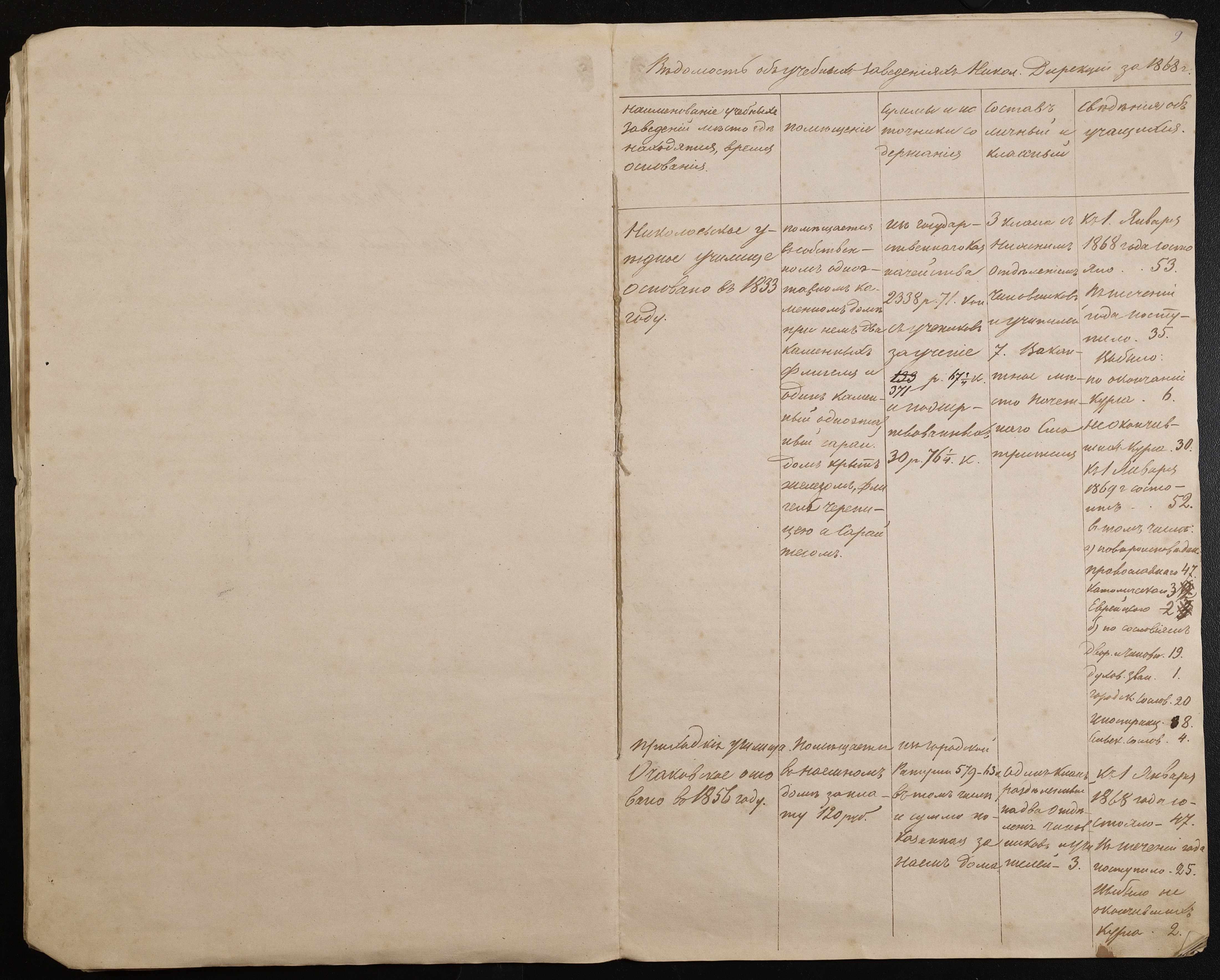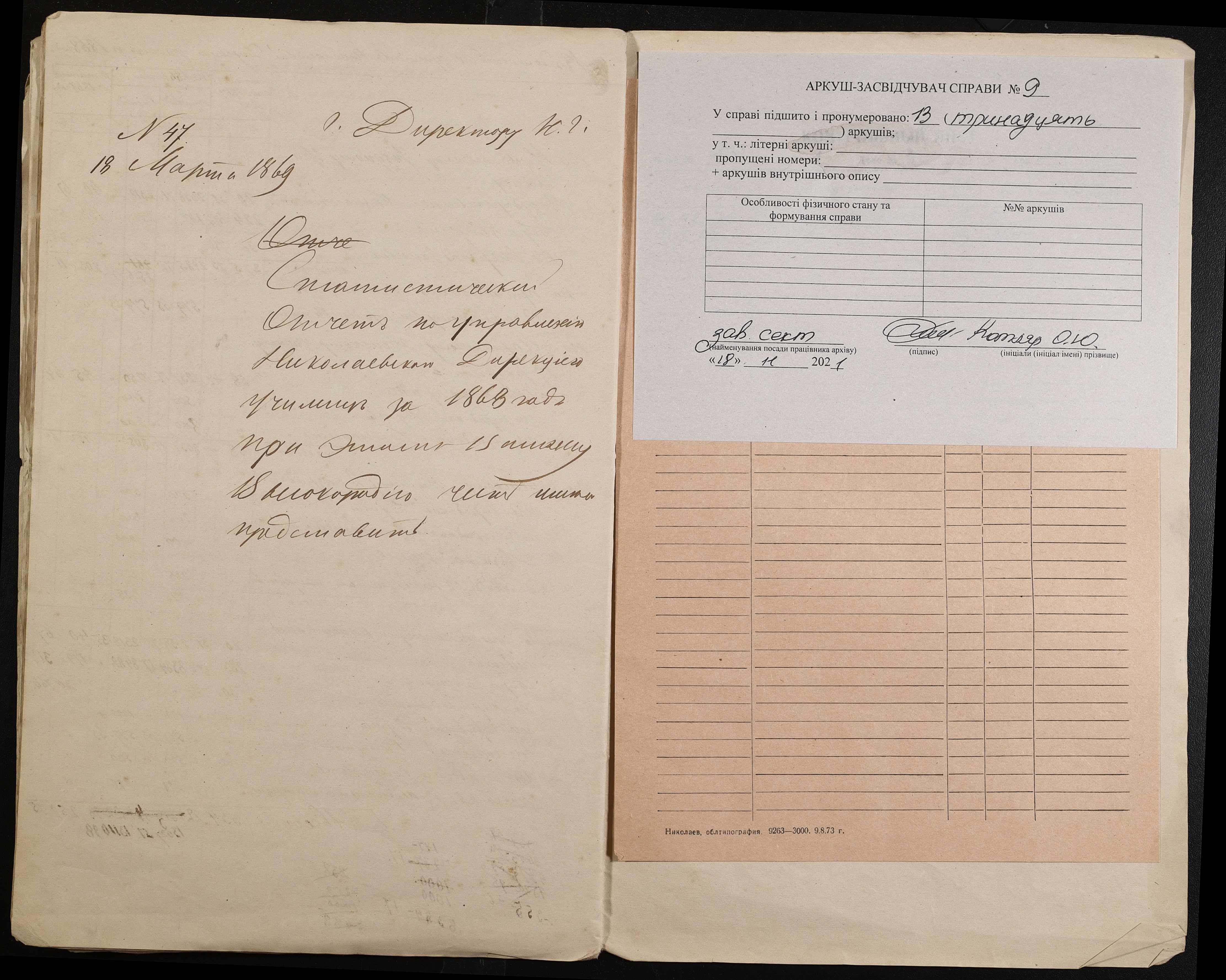 • • • • Справа № 9 “Статистичний звіт, відомості, поіменний список чиновників і викладачів повітового училища”