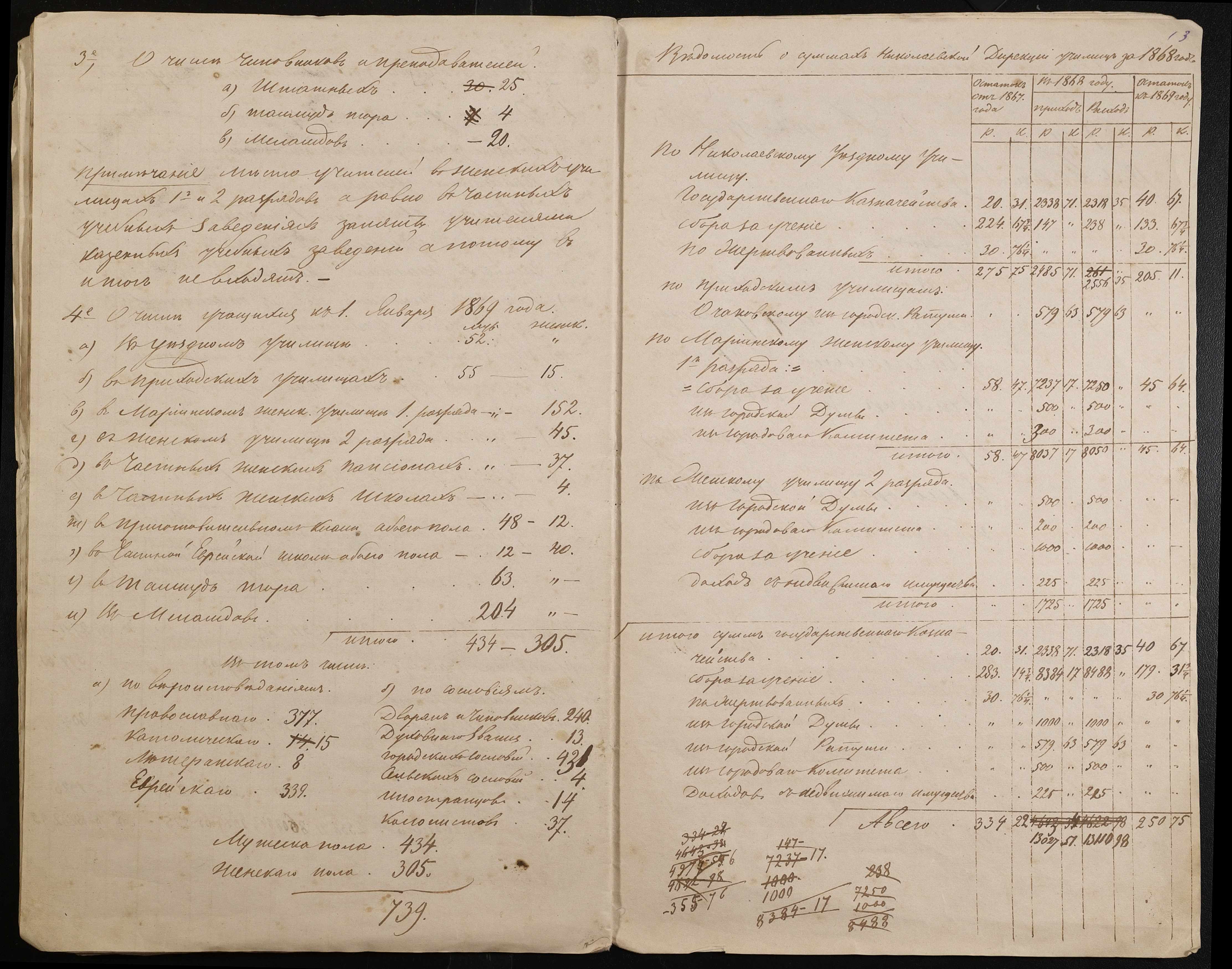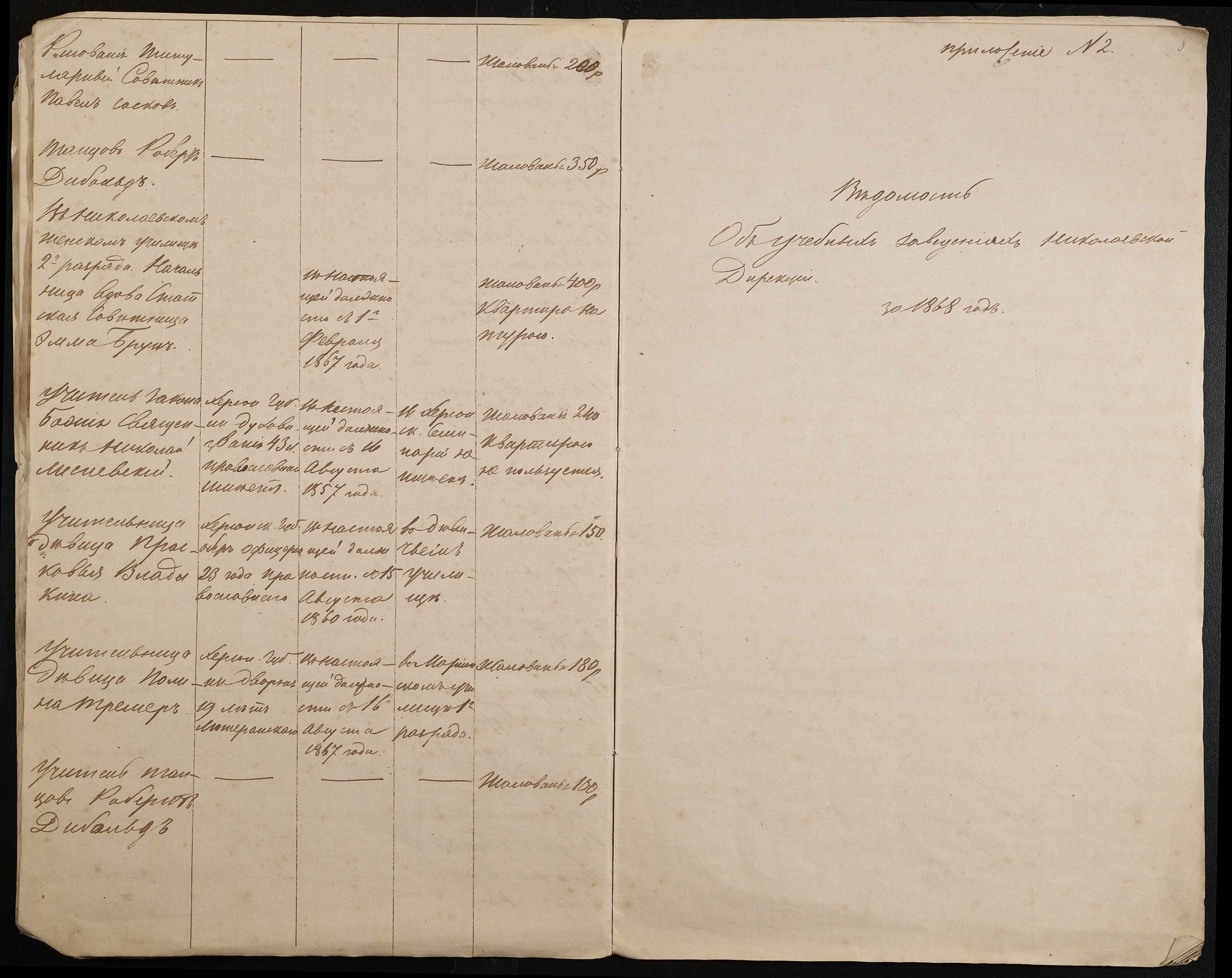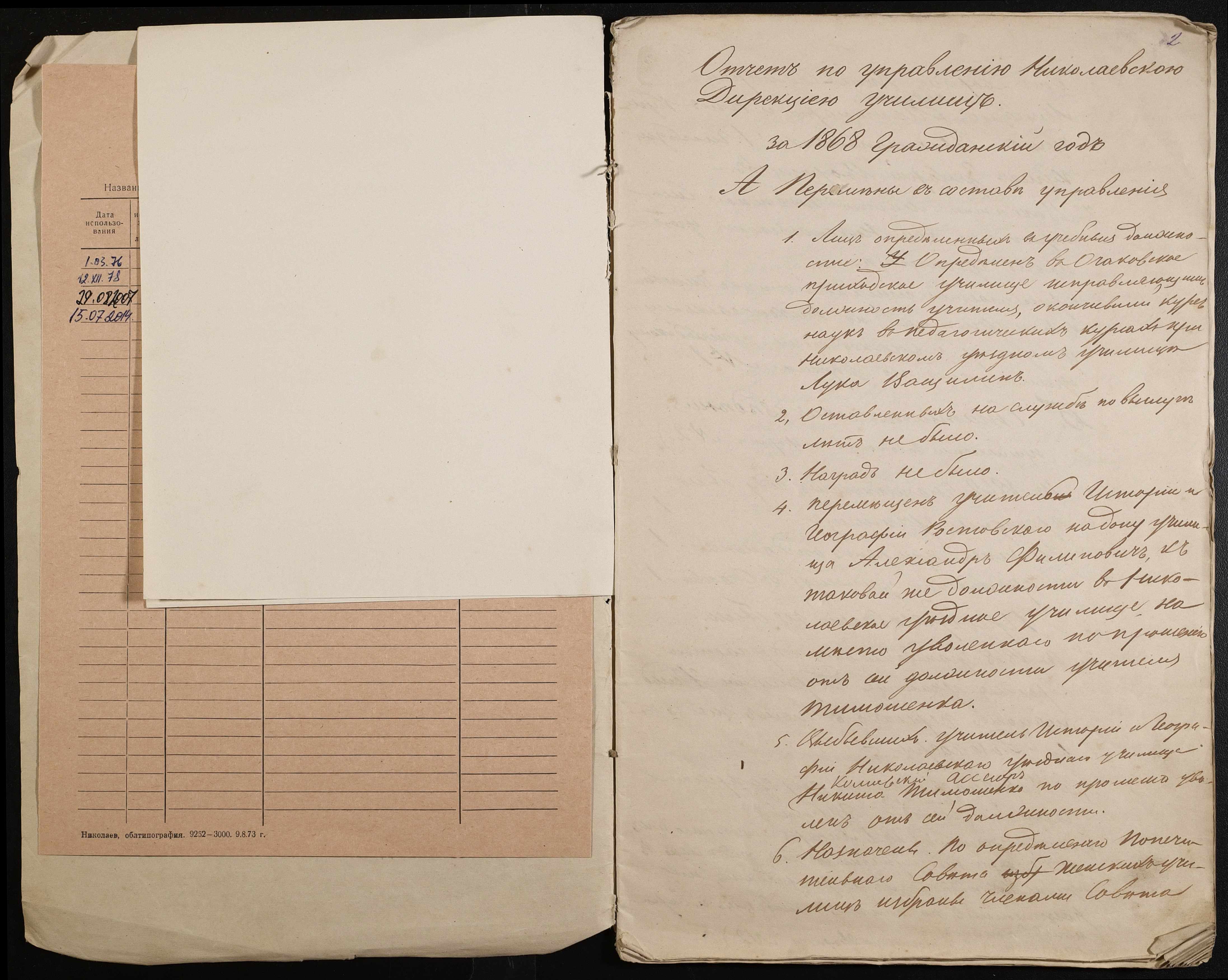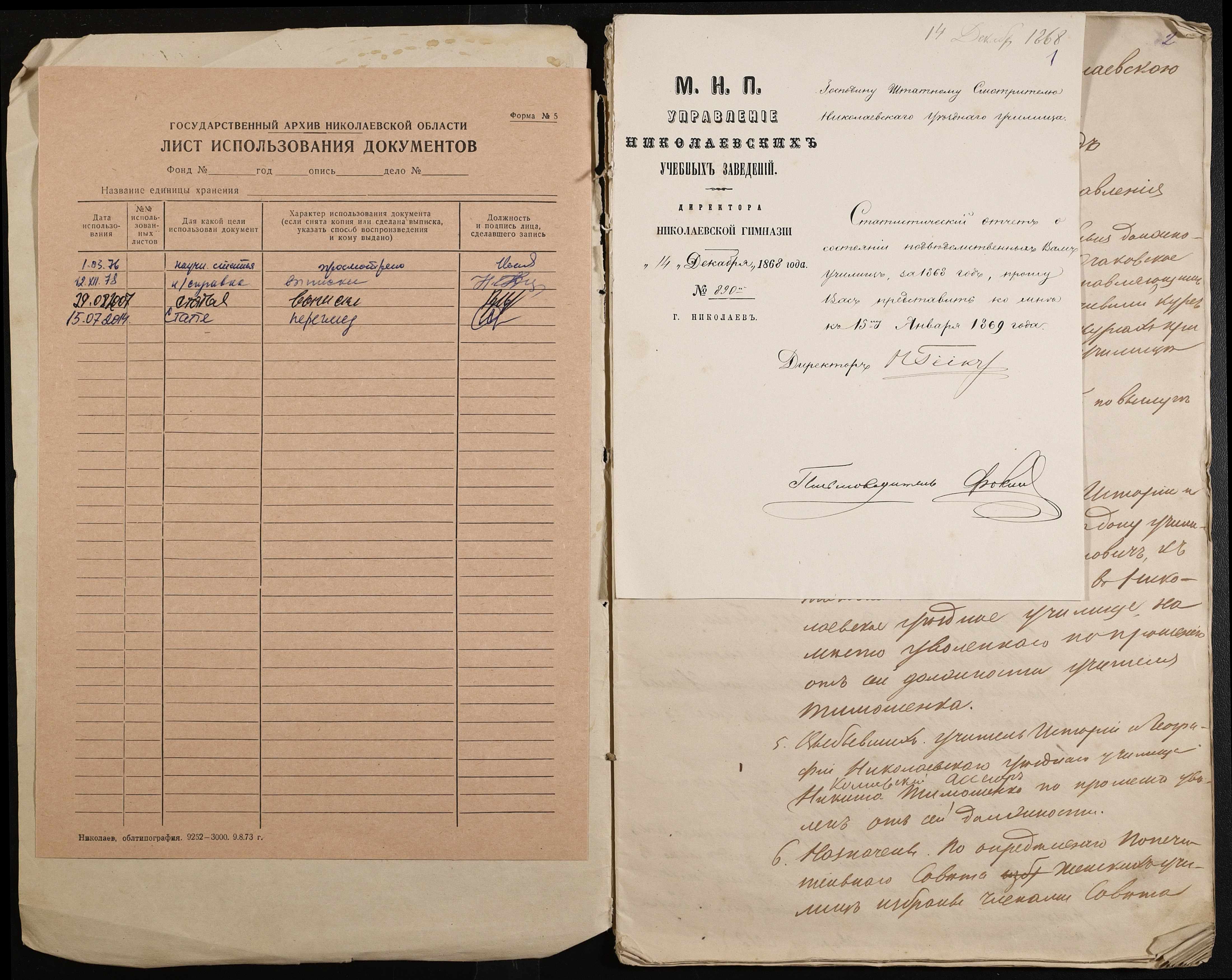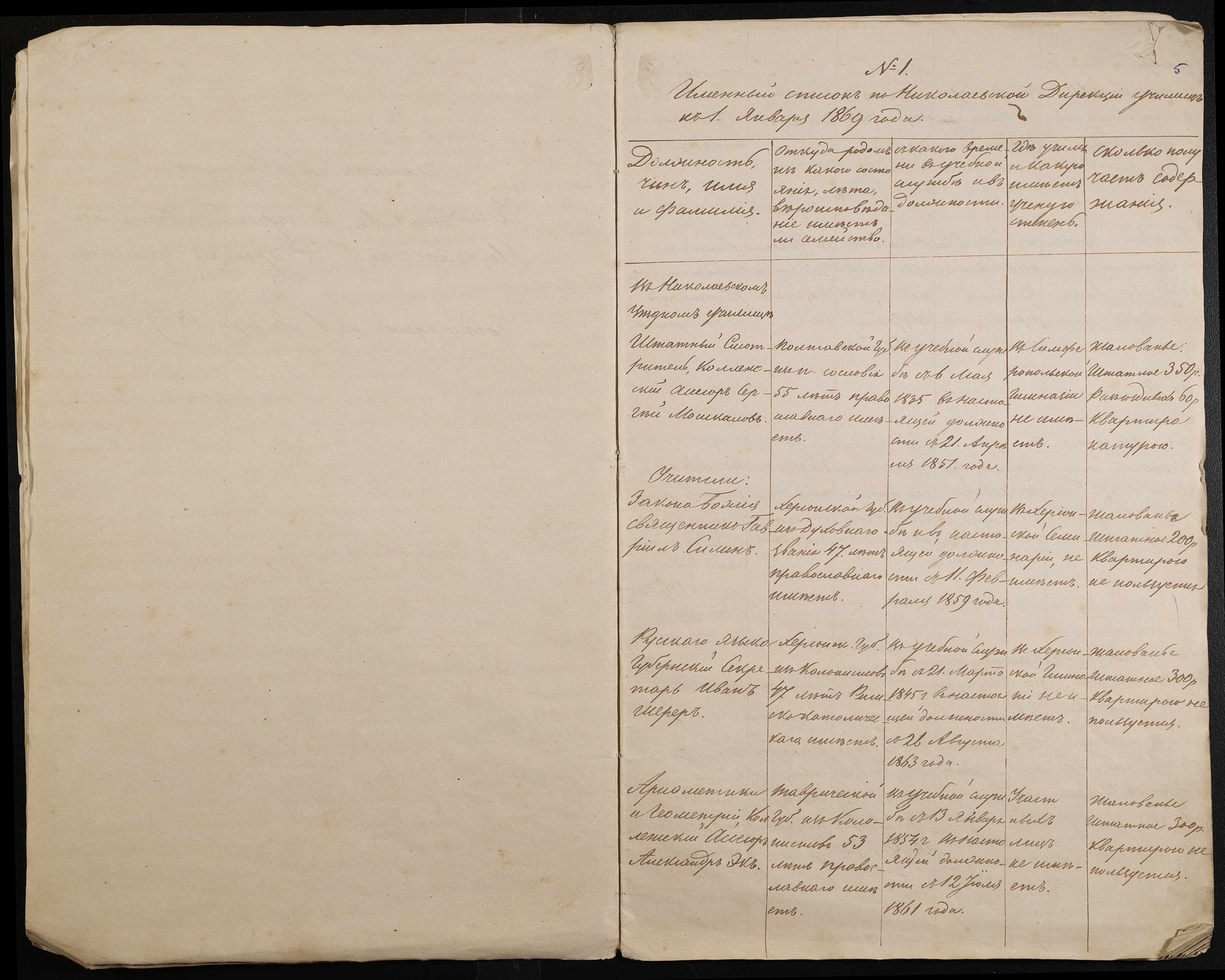 • • • • Справа № 9 “Статистичний звіт, відомості, поіменний список чиновників і викладачів повітового училища”