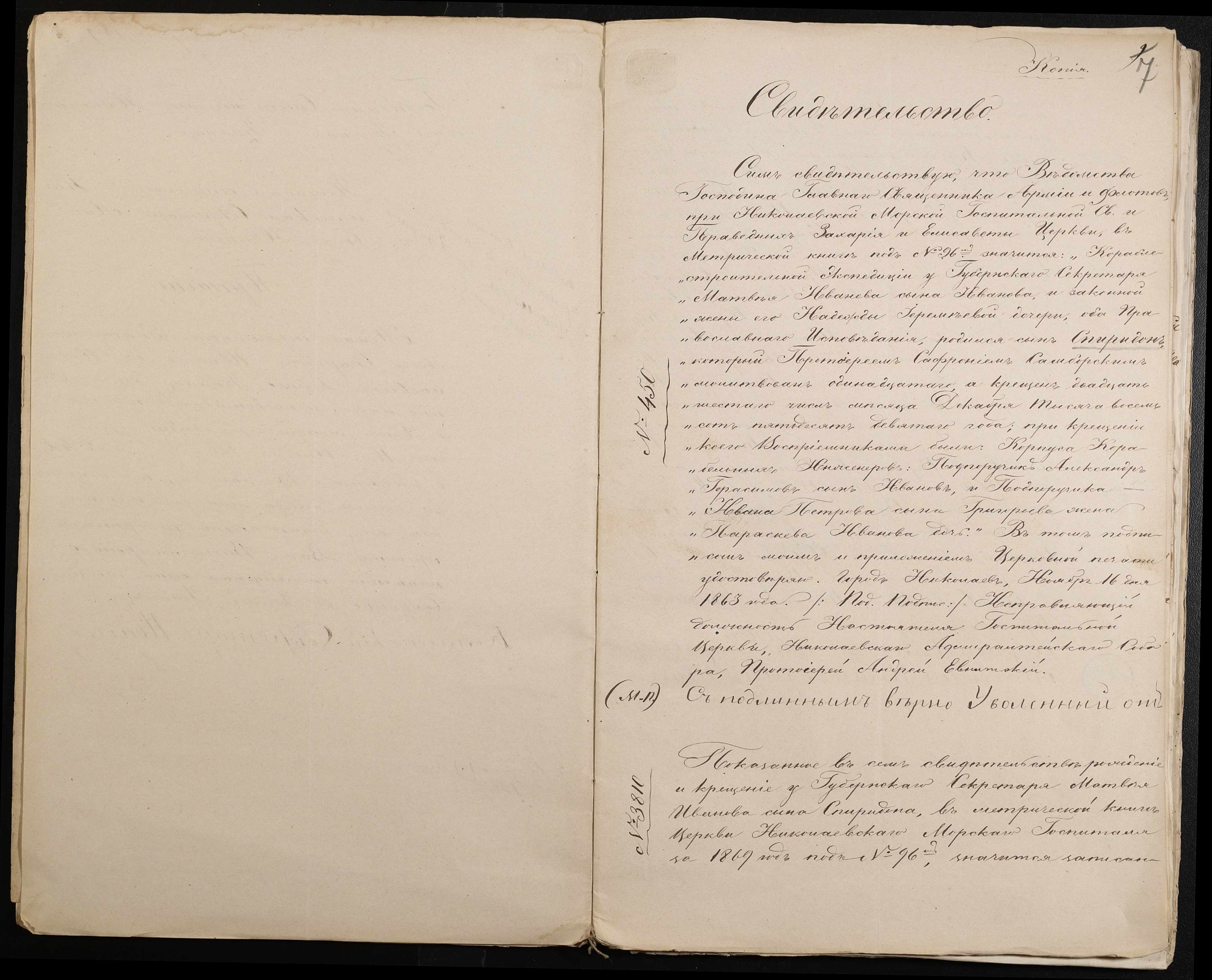 ◦ ◦ ◦ Опис № 1 справ постійного зберігання за 1847-1852, 1858, 1868-1869, 1871-1919, 1922 роки