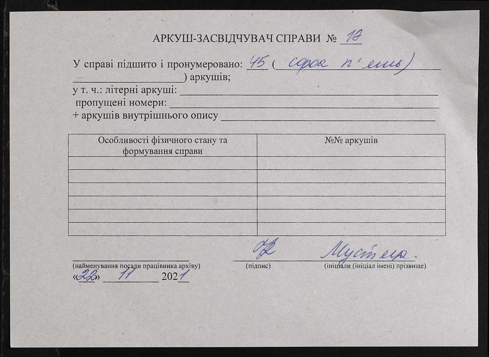 • • • • Справа № 17 “Формулярні списки і подання вчителів”