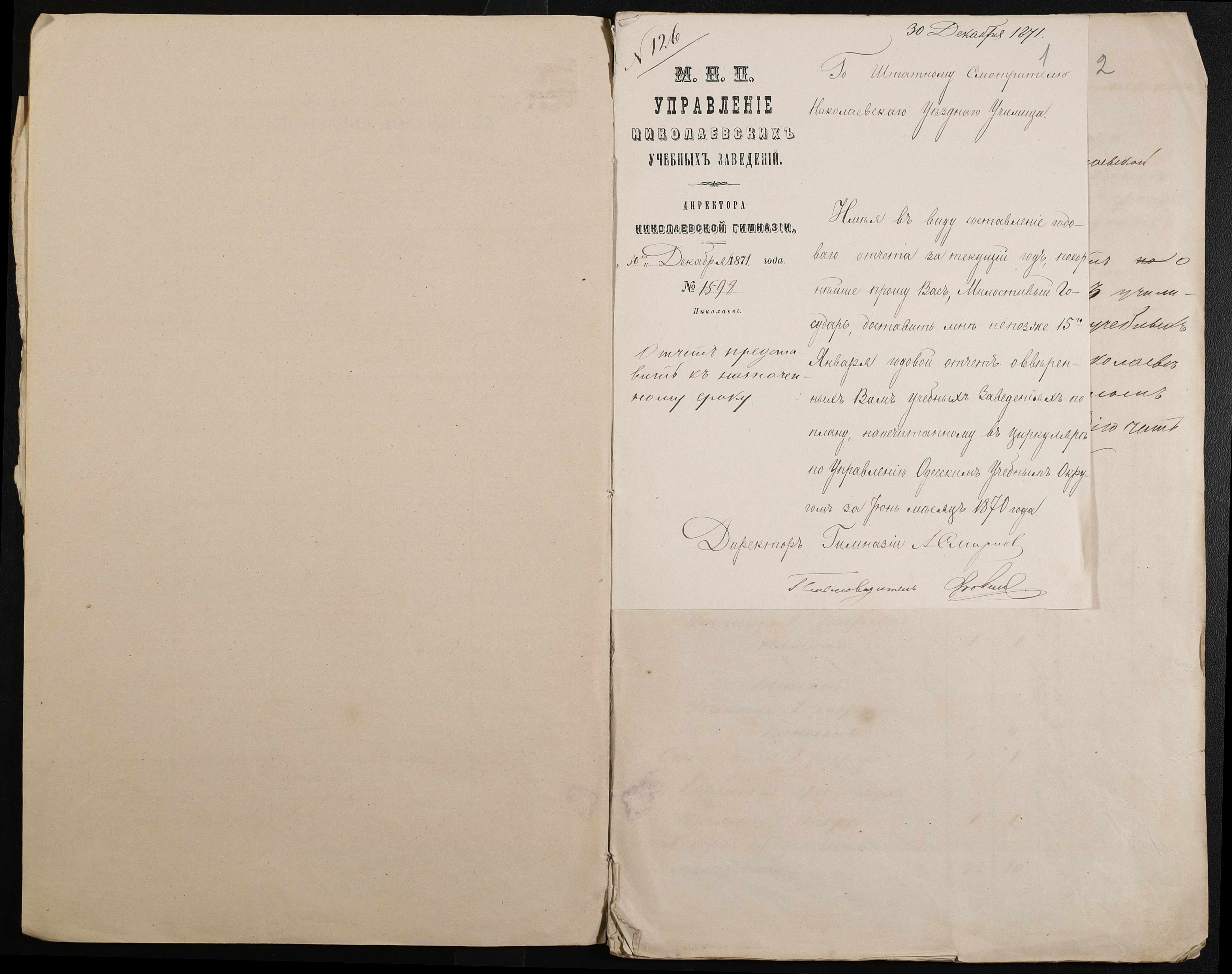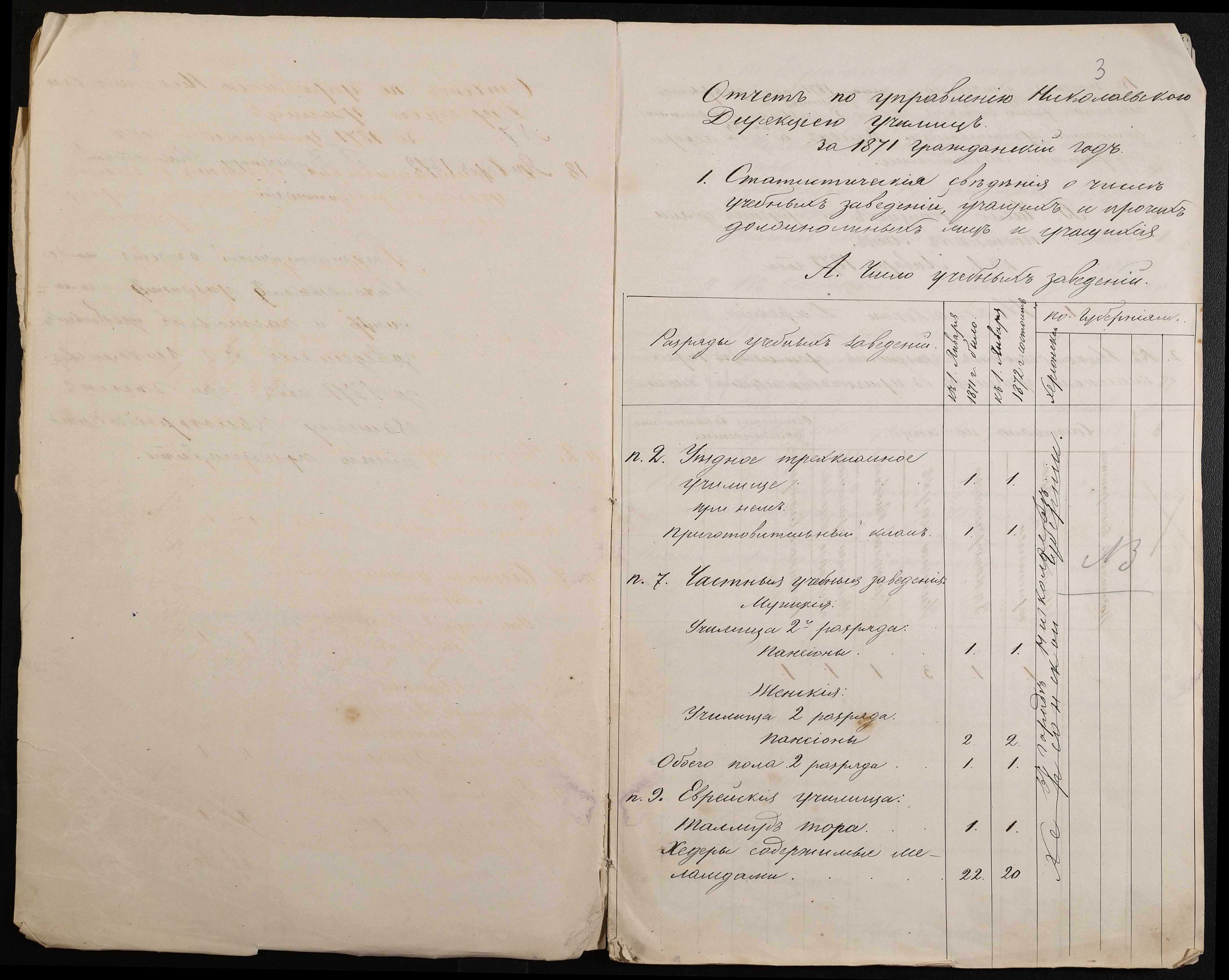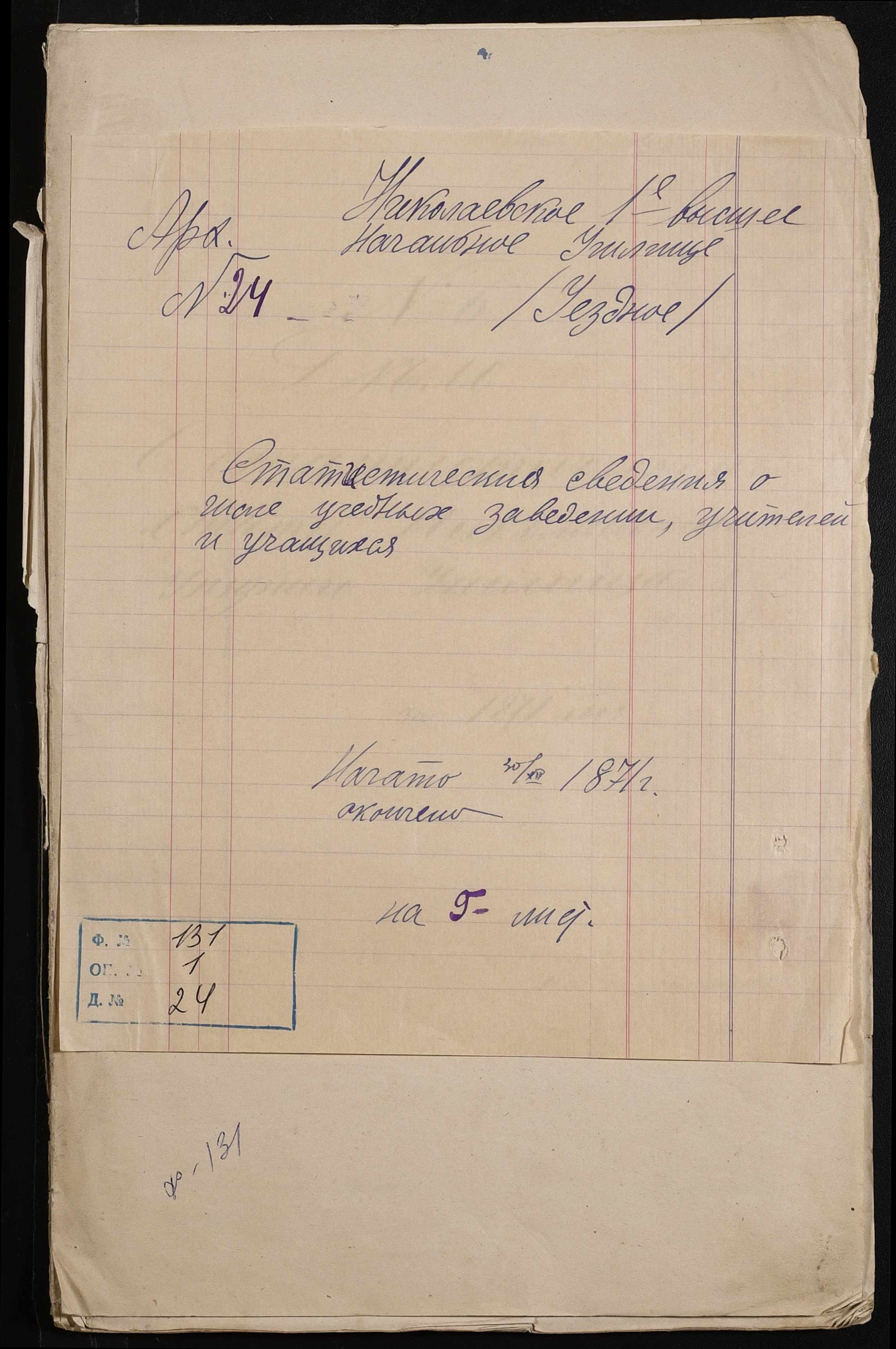 • • • • Справа № 24 “Статистичні відомості Миколаївської дирекції училищ про наявність і стан учбових закладів, кількість вчителів і учнів за 1871 рік”