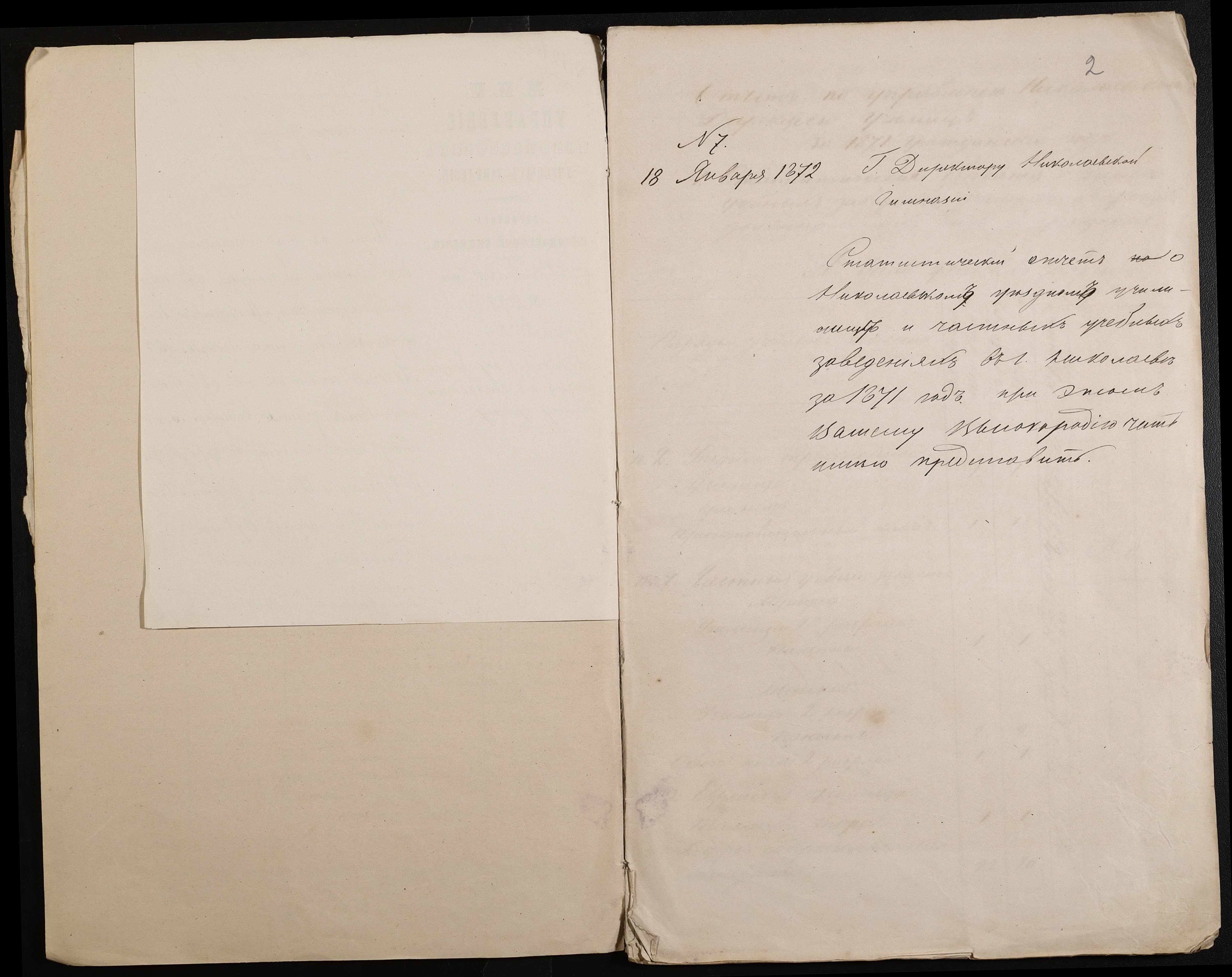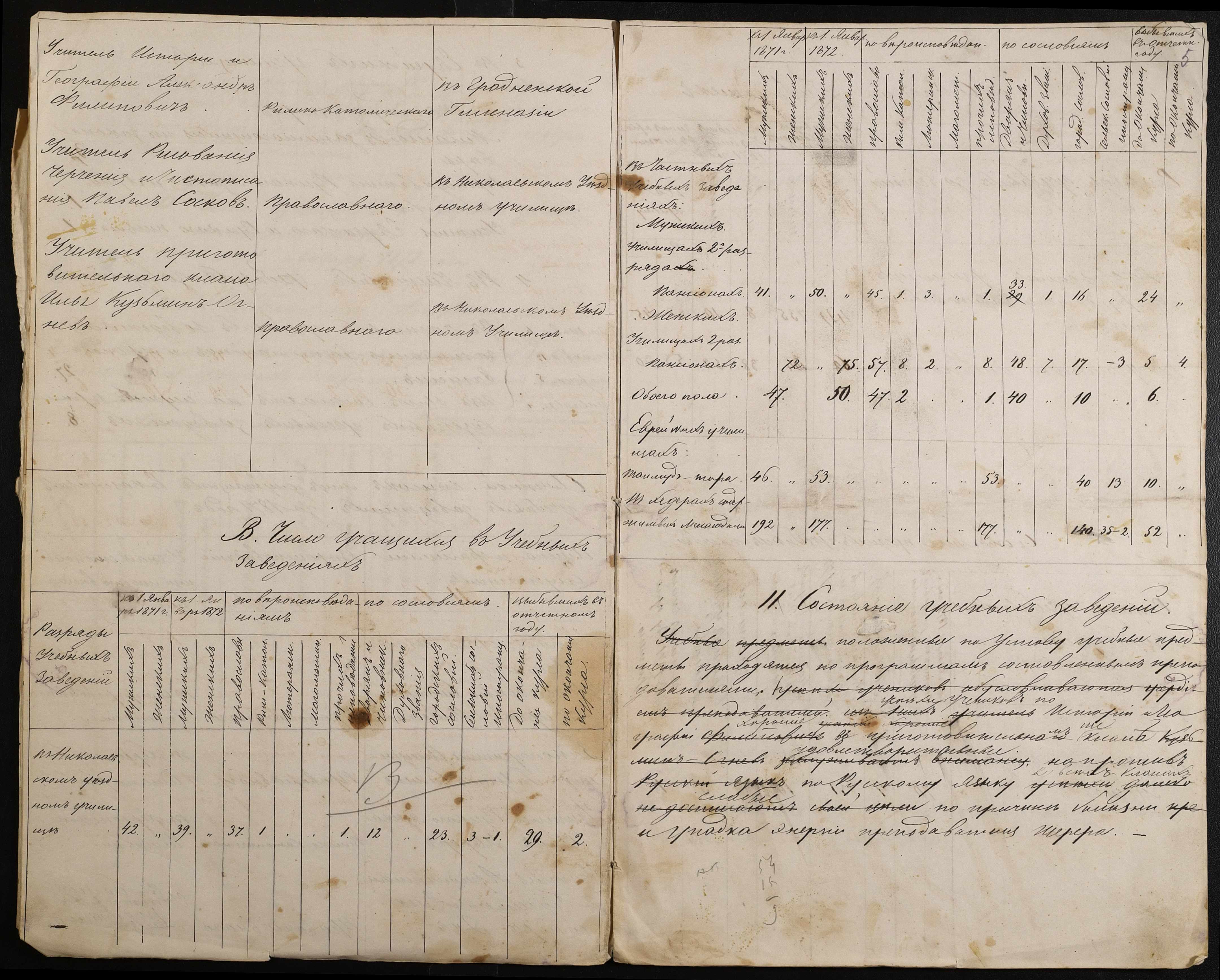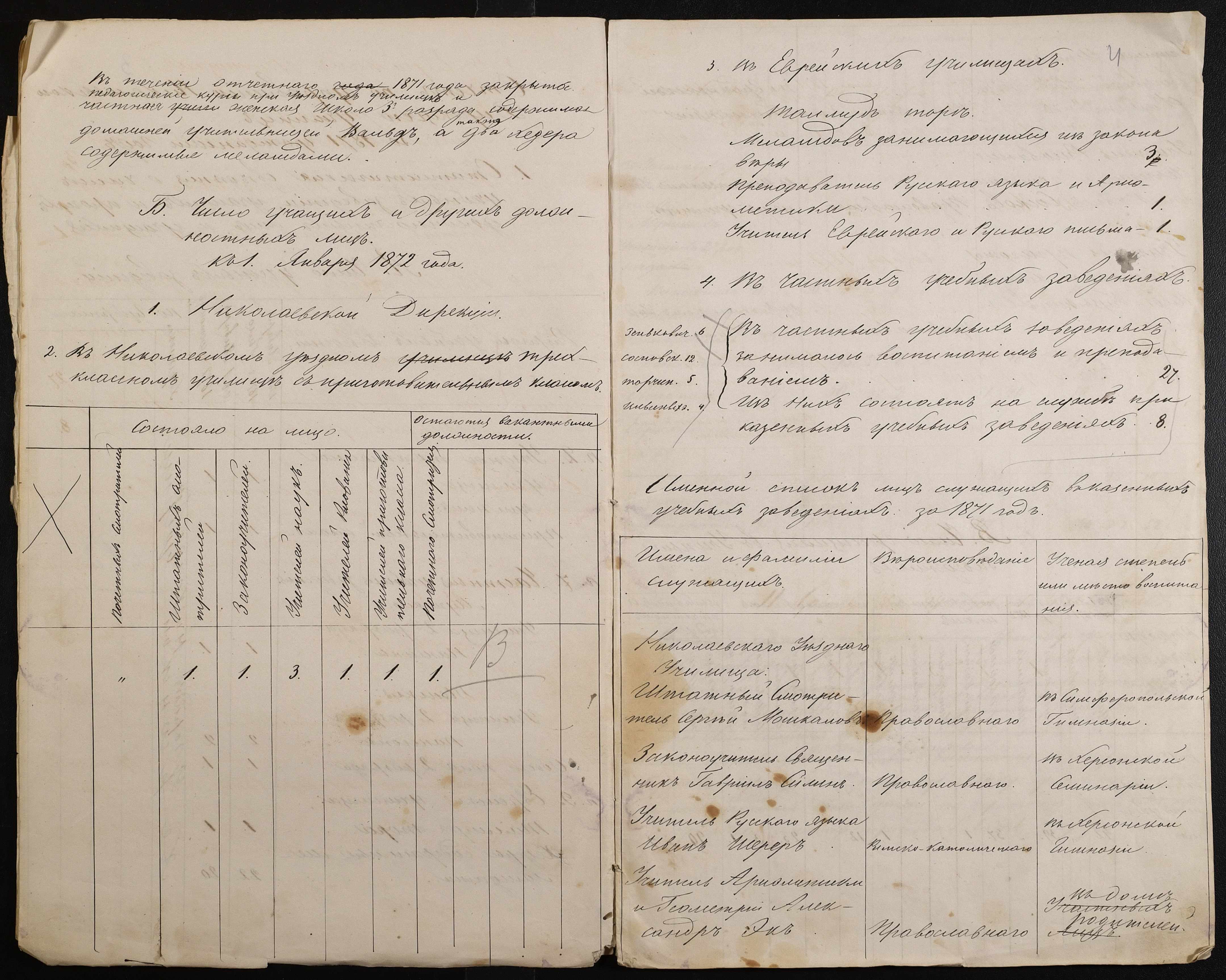 • • • • Справа № 24 “Статистичні відомості Миколаївської дирекції училищ про наявність і стан учбових закладів, кількість вчителів і учнів за 1871 рік”