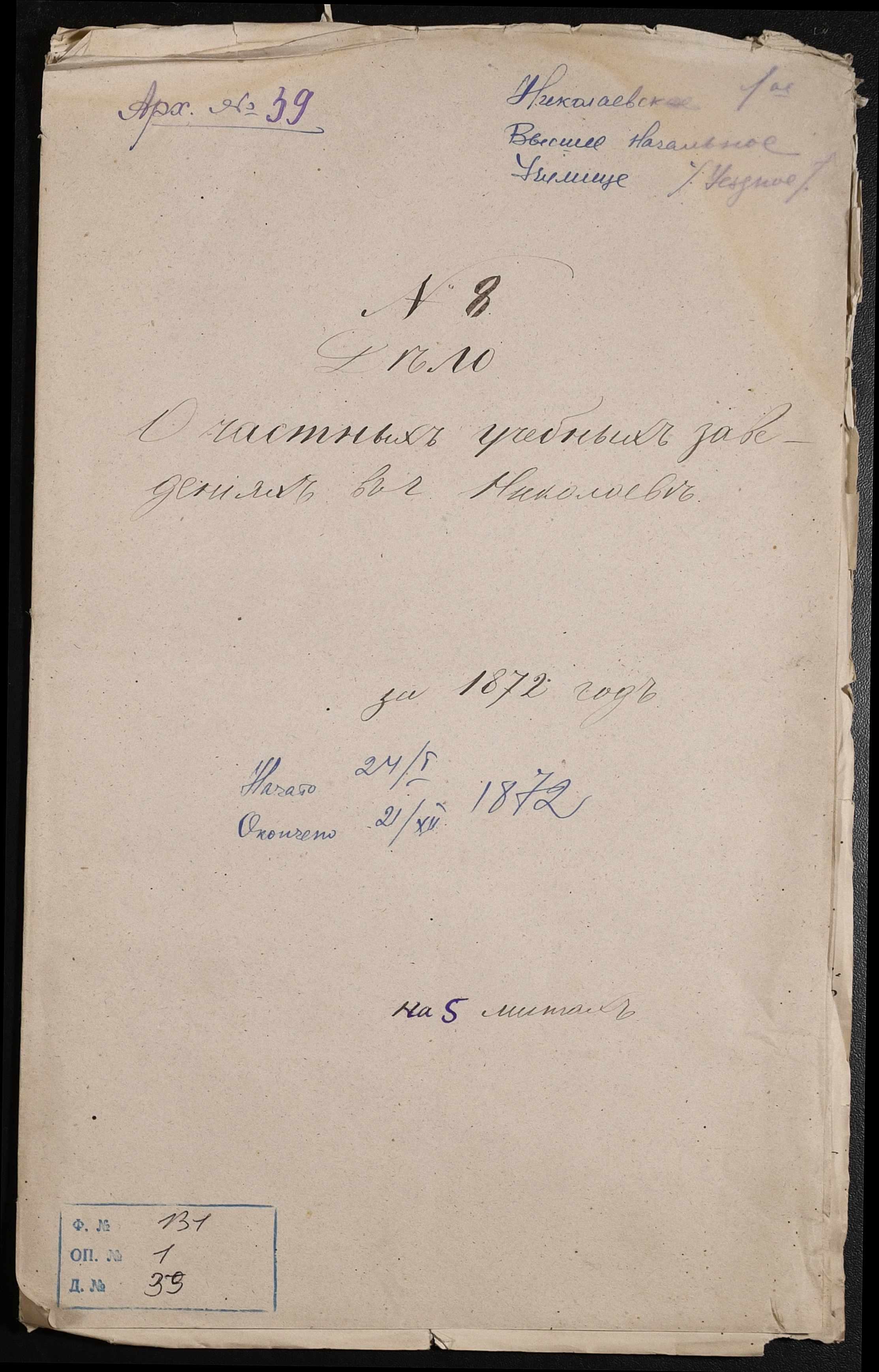 ◦ ◦ Фонд № 131 “Миколаївське перше вище початкове училище”