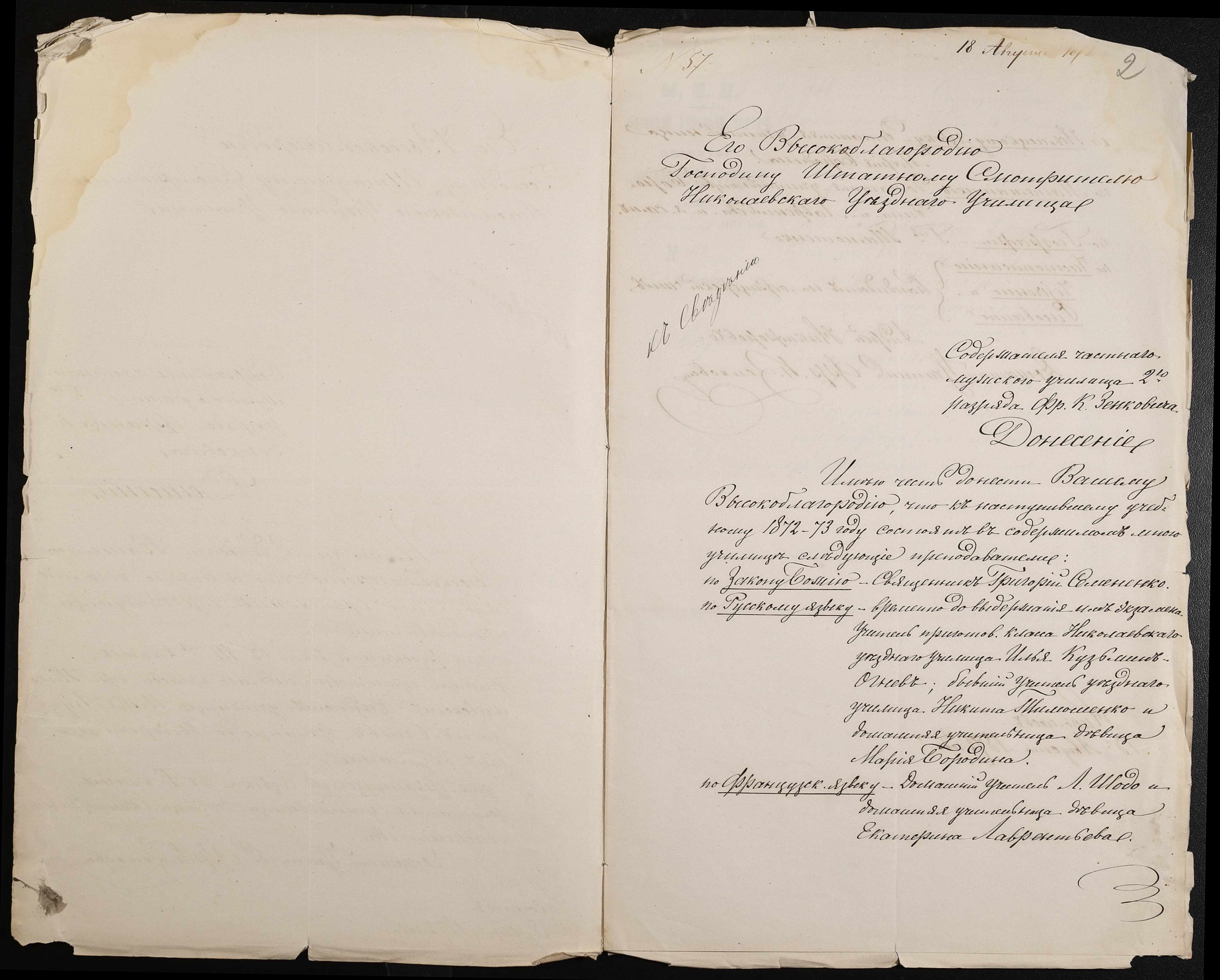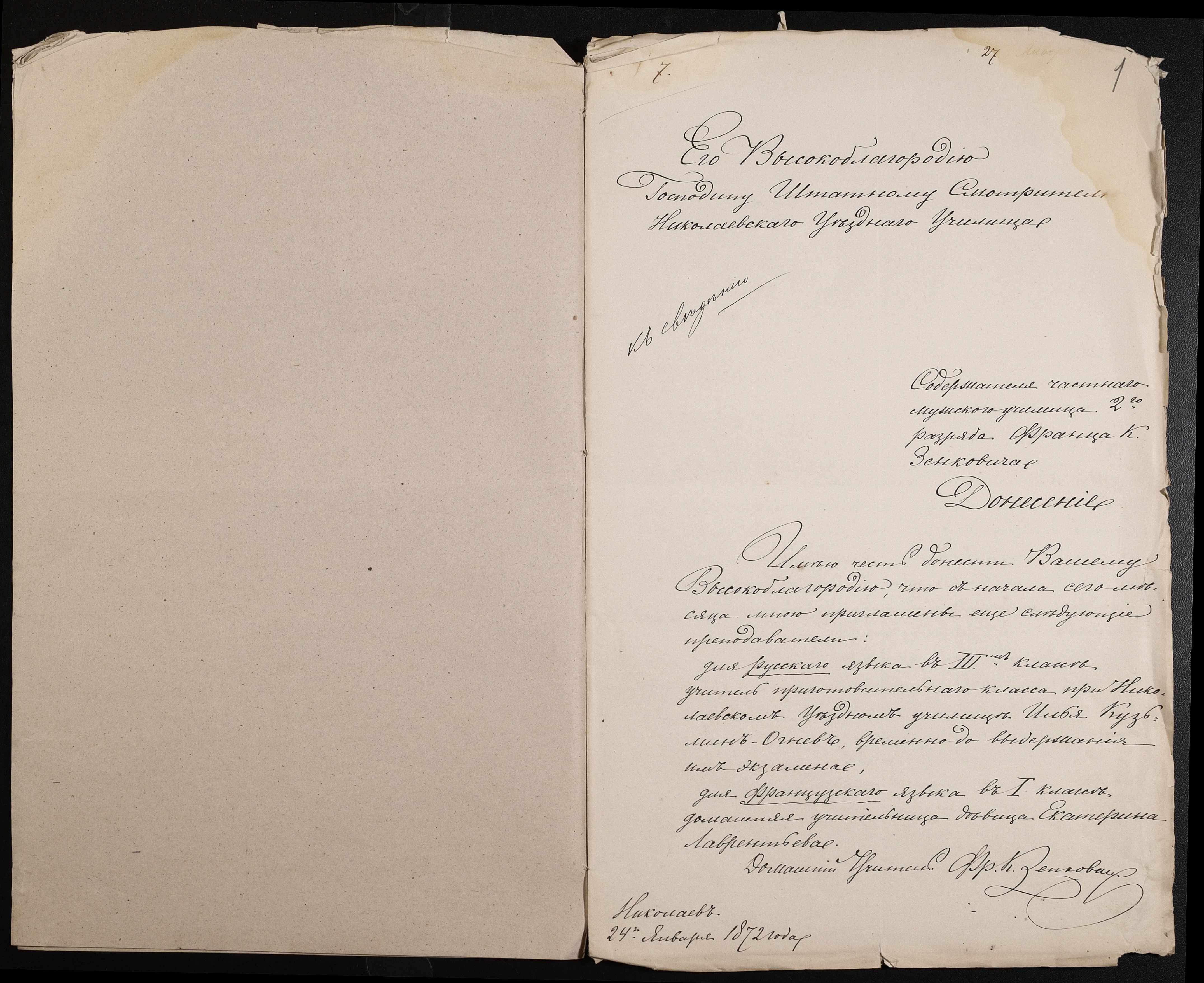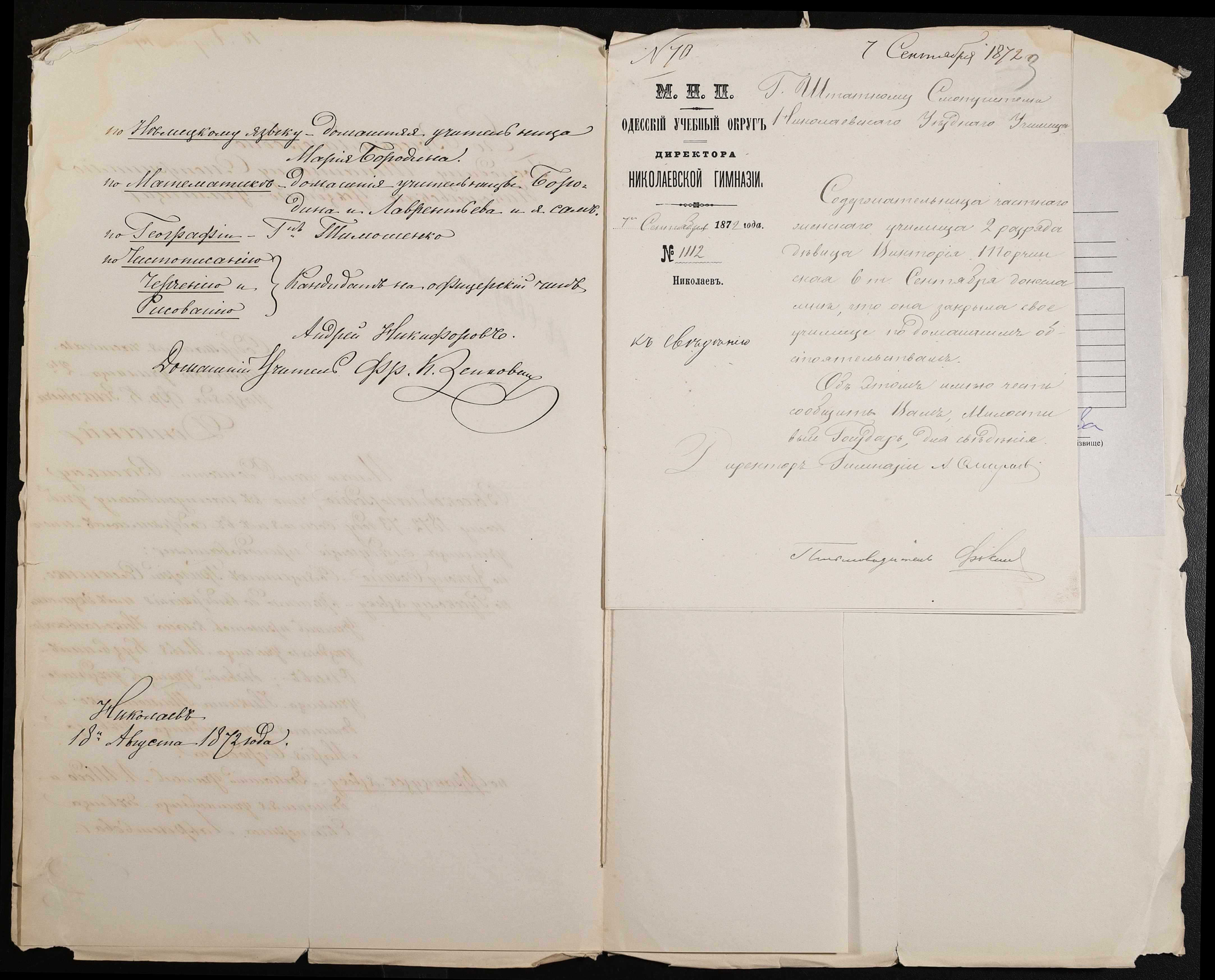 • • • • Справа № 39 “Повідомлення утримувачів приватних училищ про діяльність вчителів”