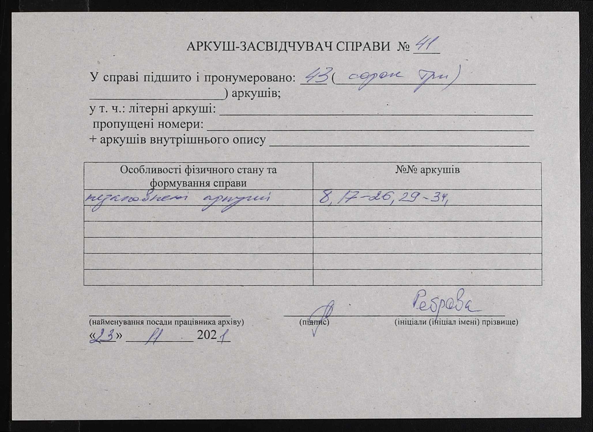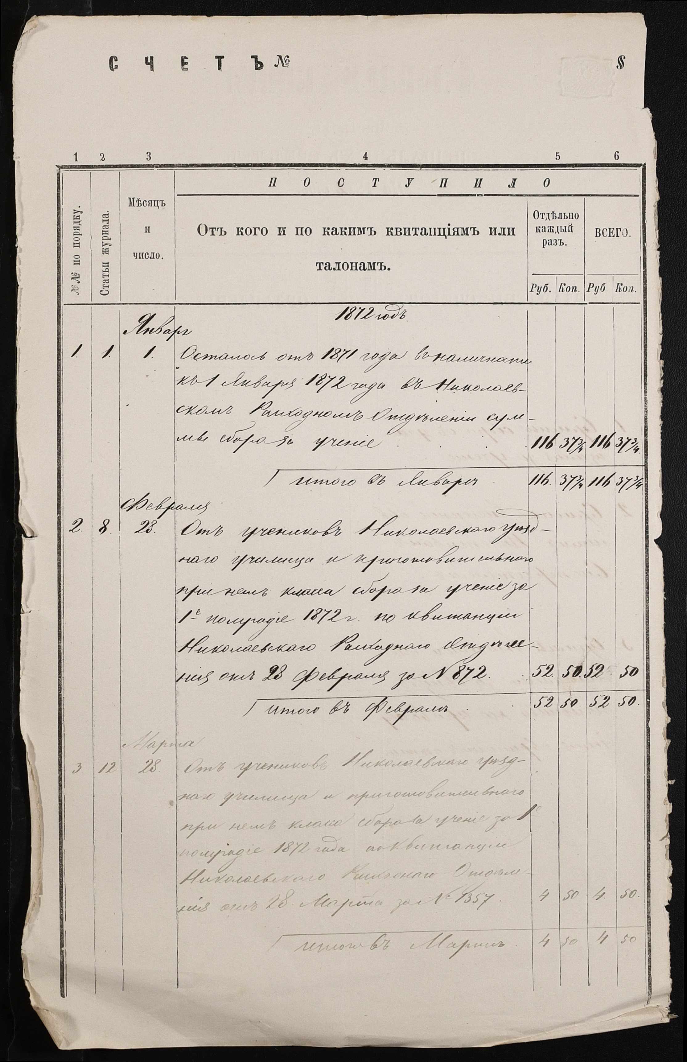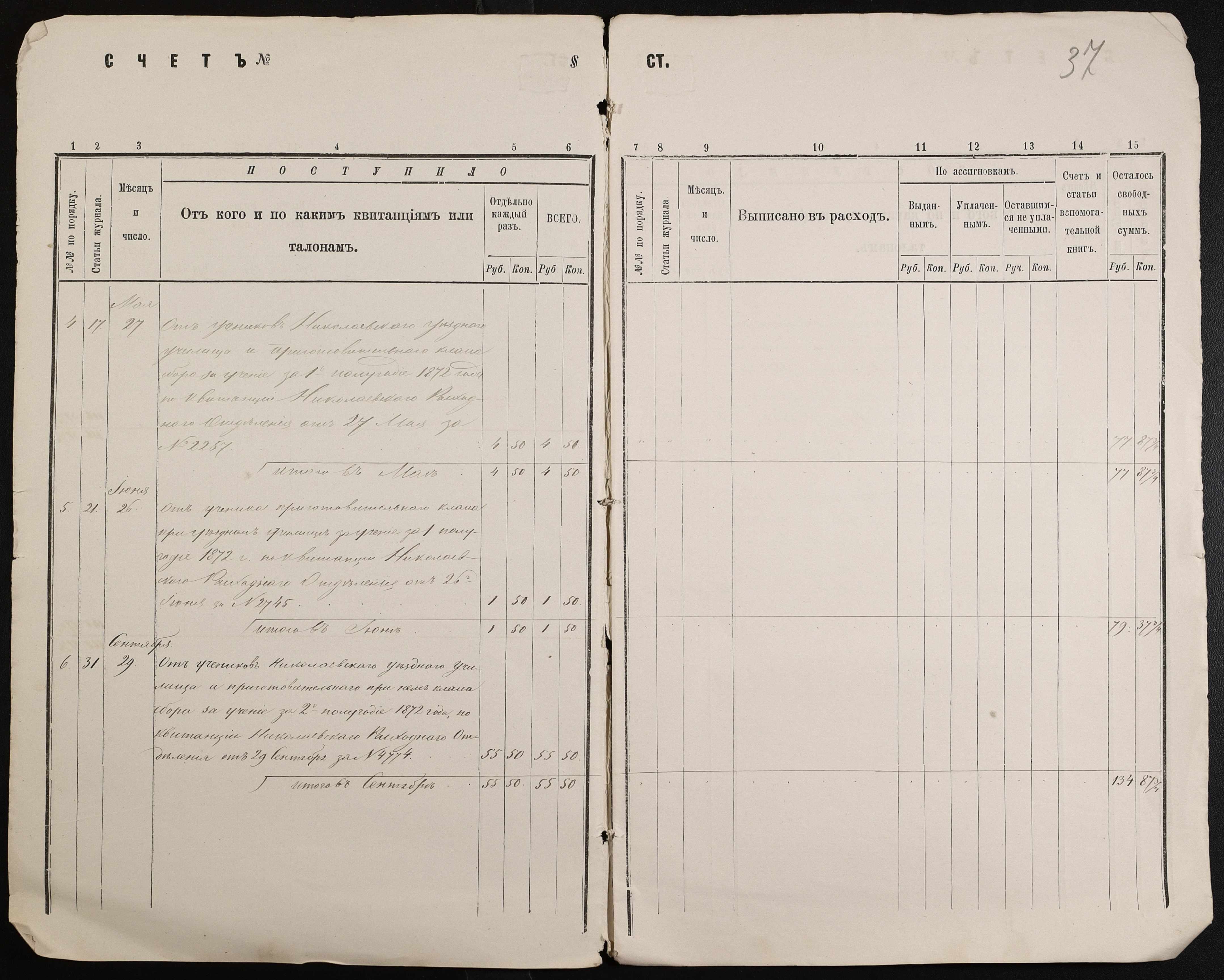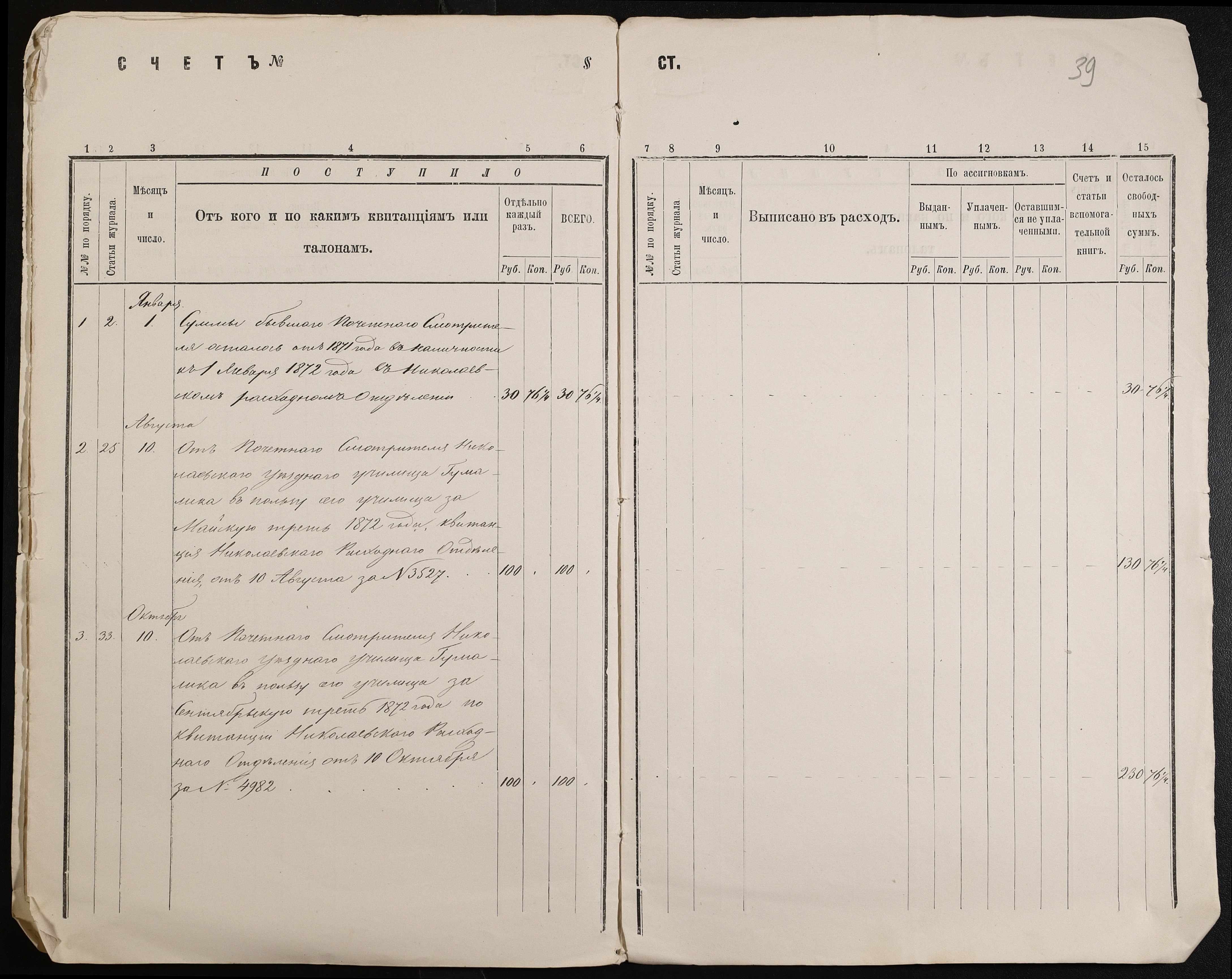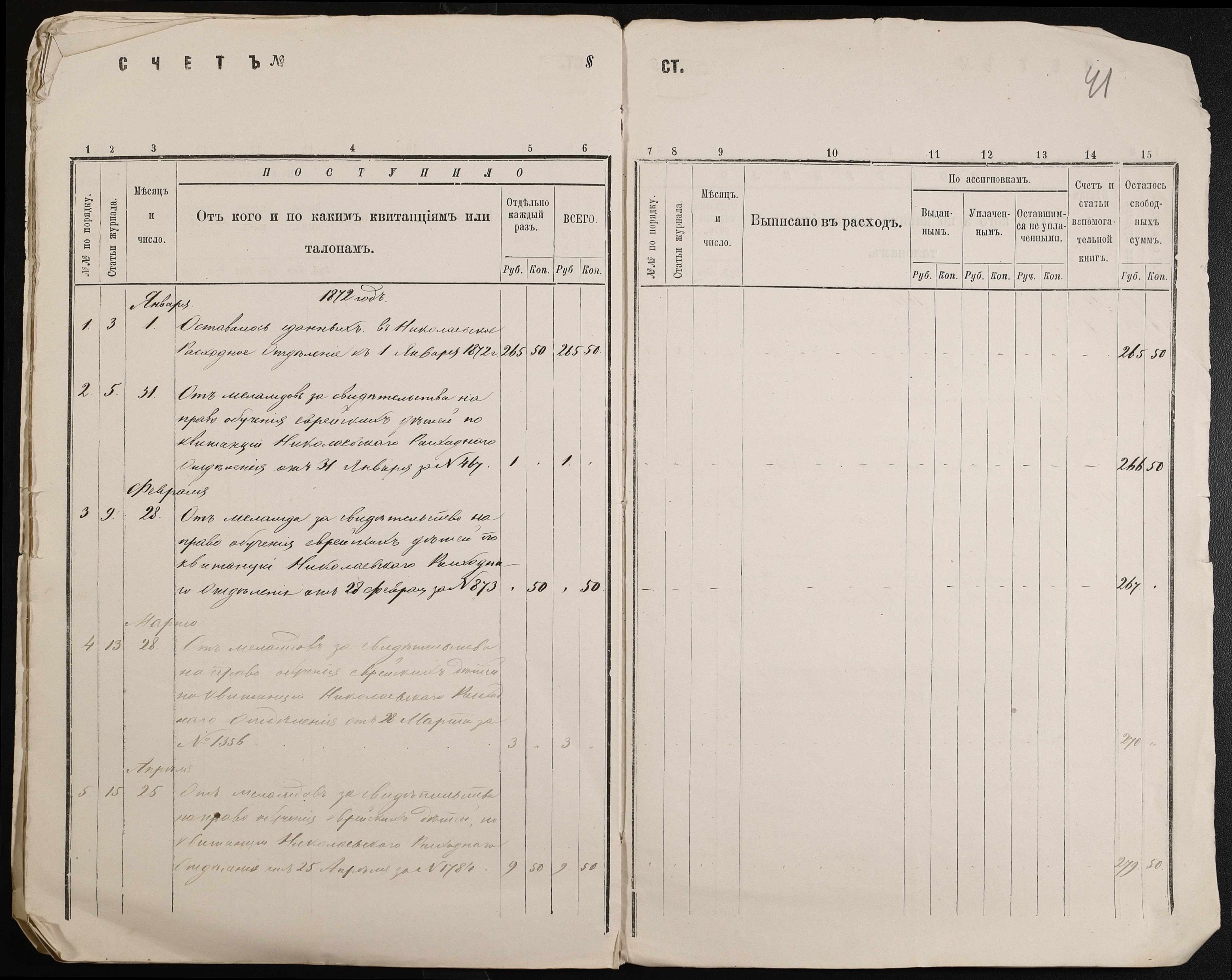 • • • • Справа № 41 “Журнал надходження і витрат коштів за 1872 рік”