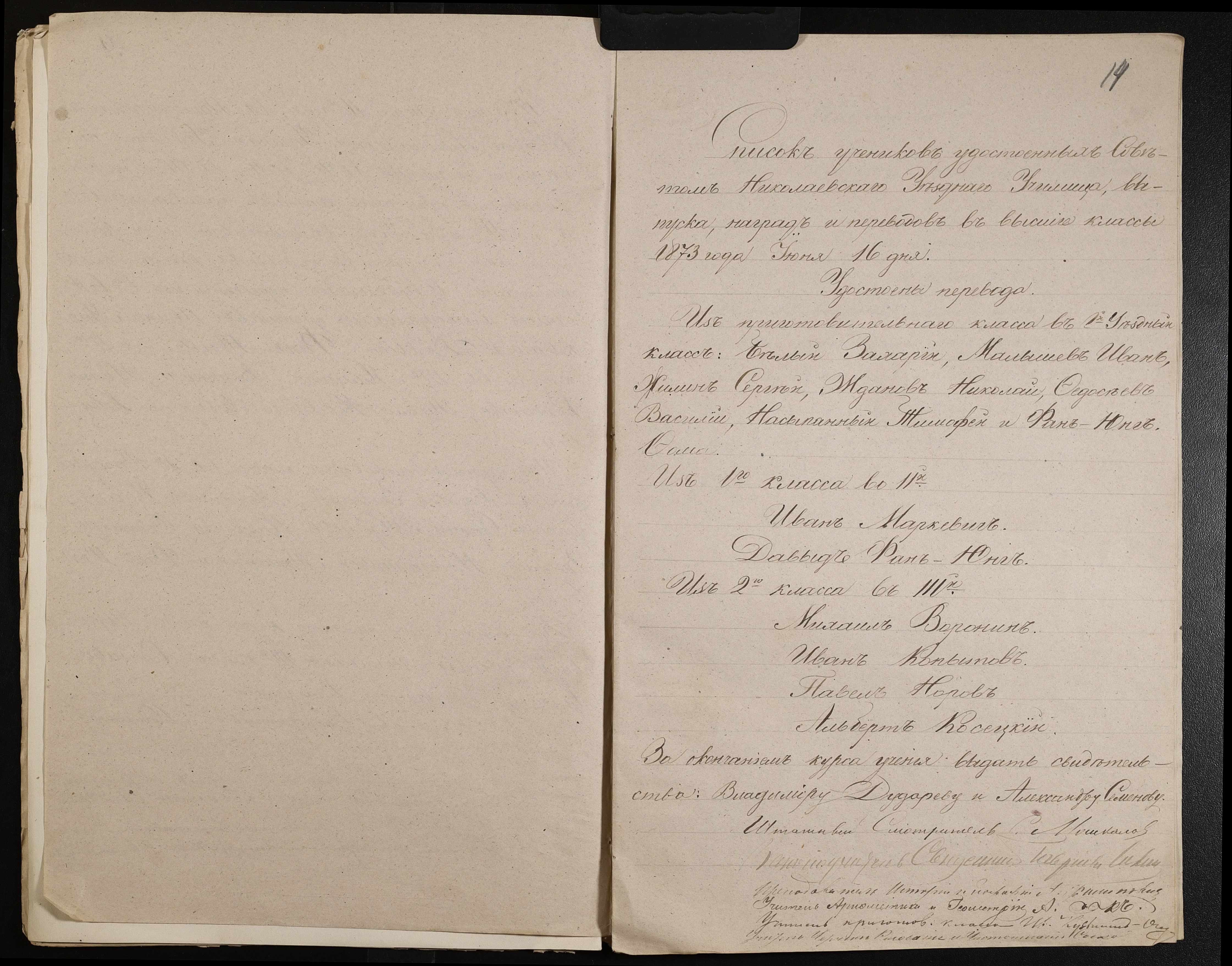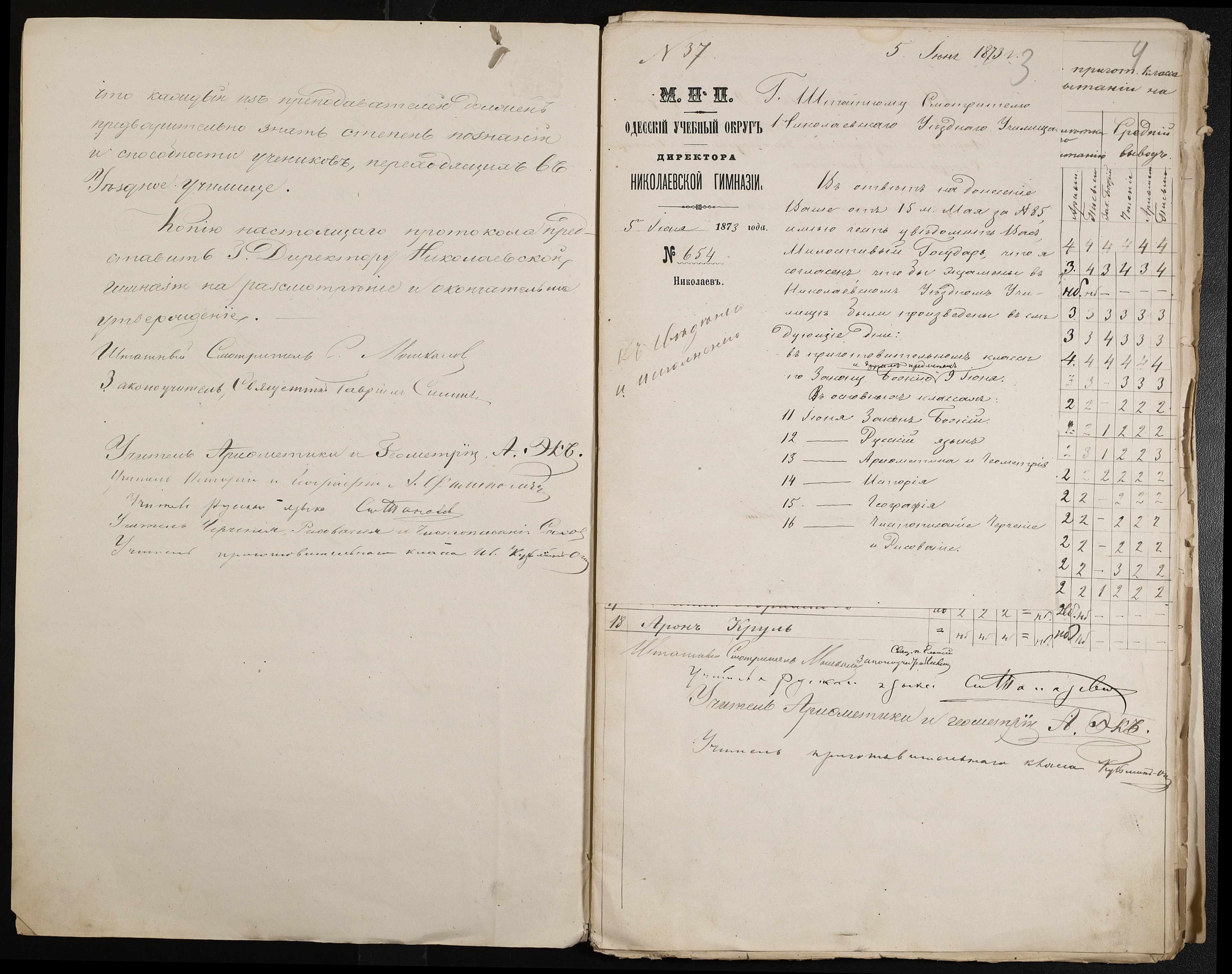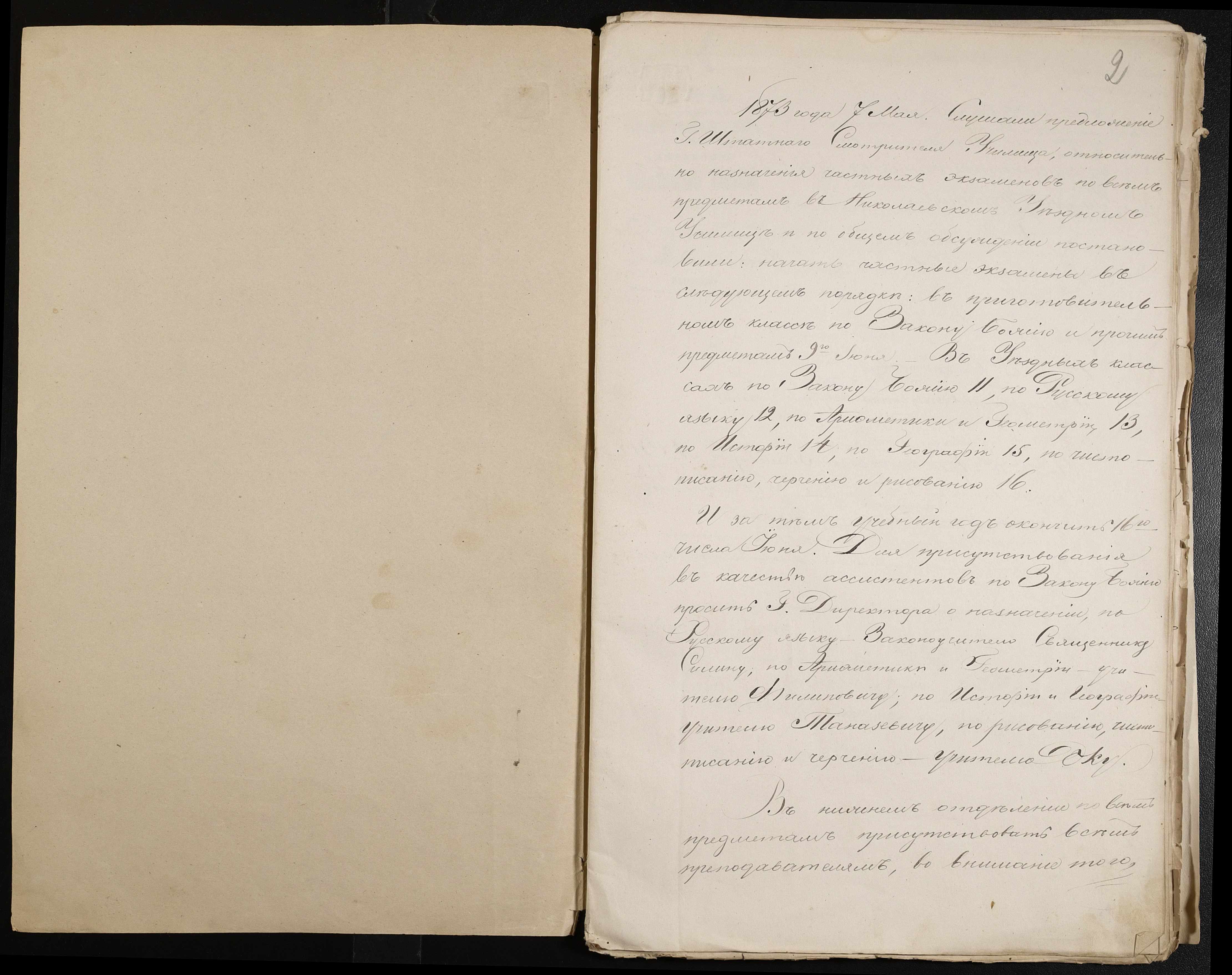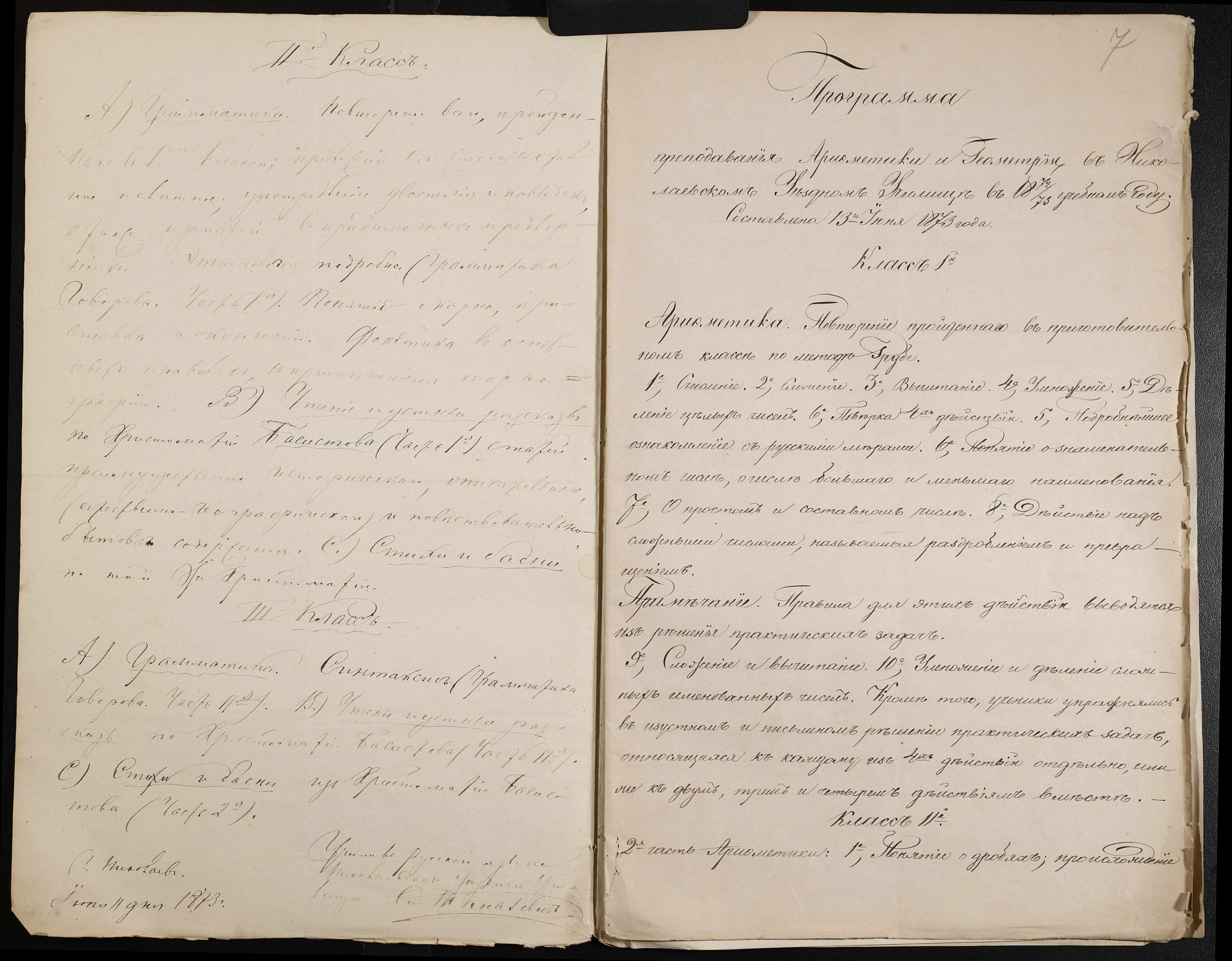 • • • • Справа № 44 “Екзаменаційні відомості, навчальні програми першого класу училища”