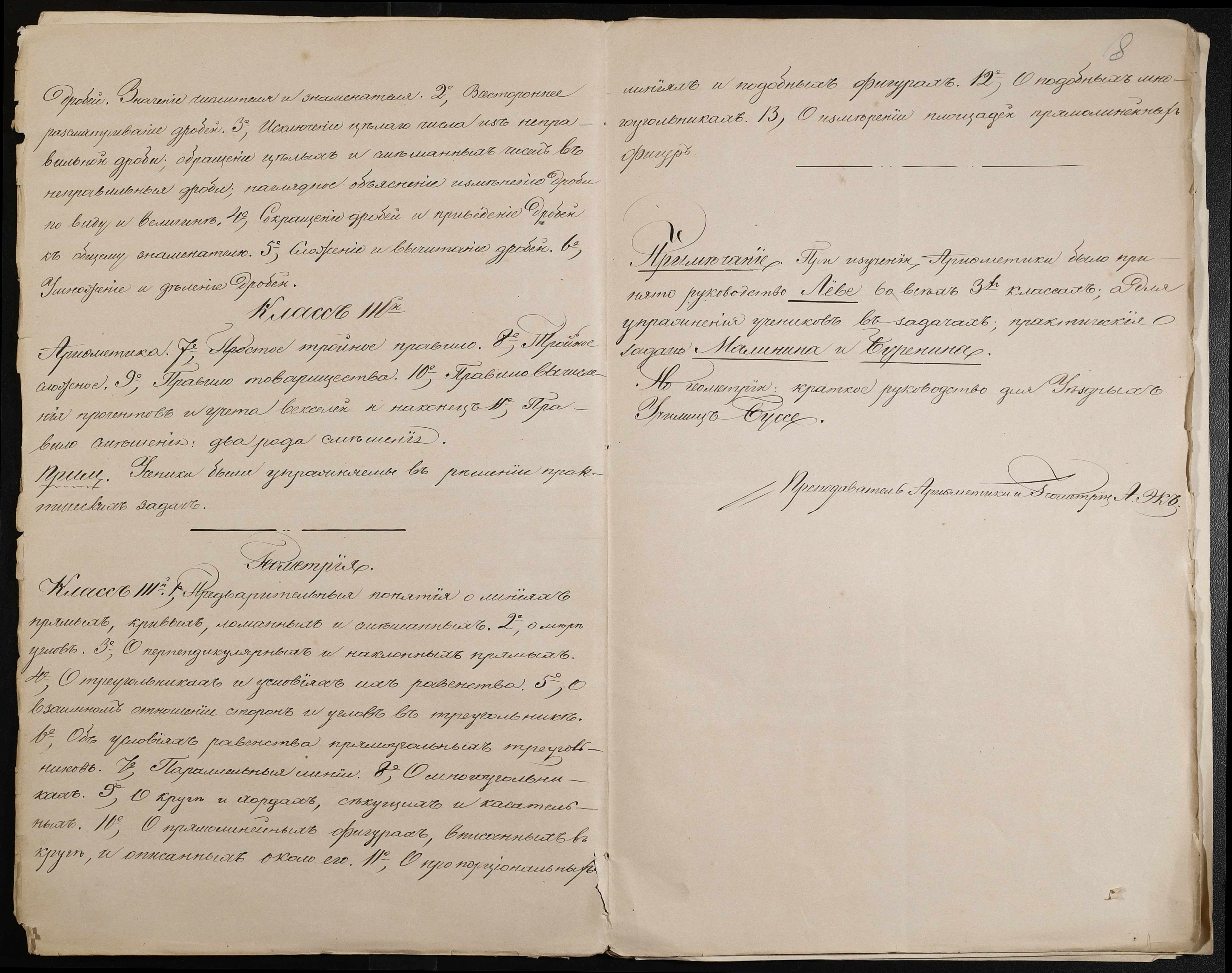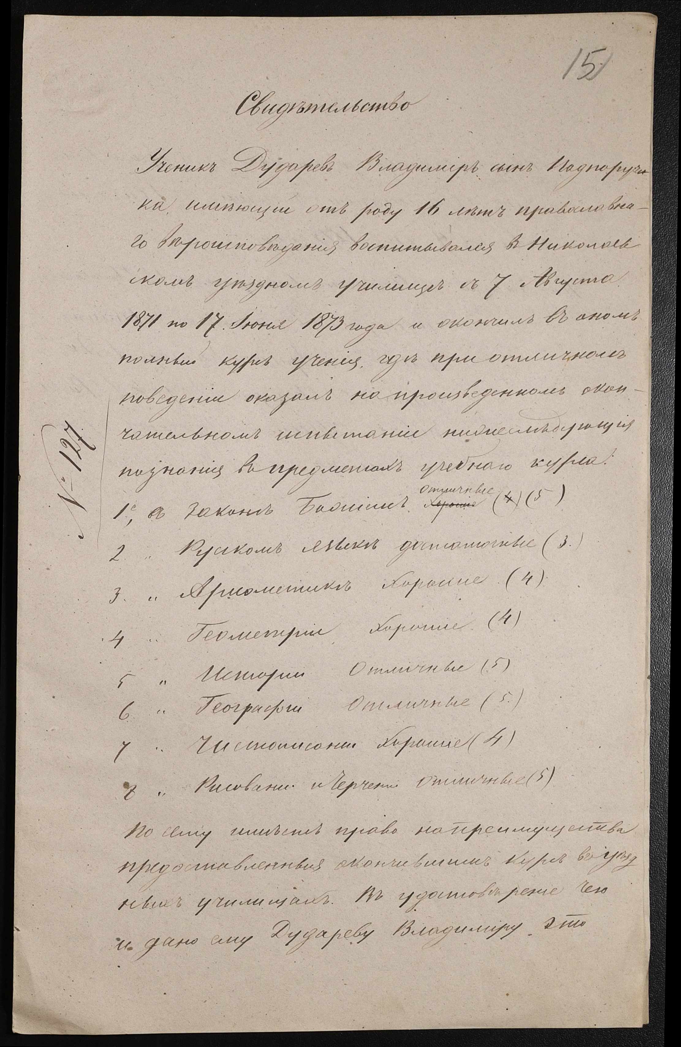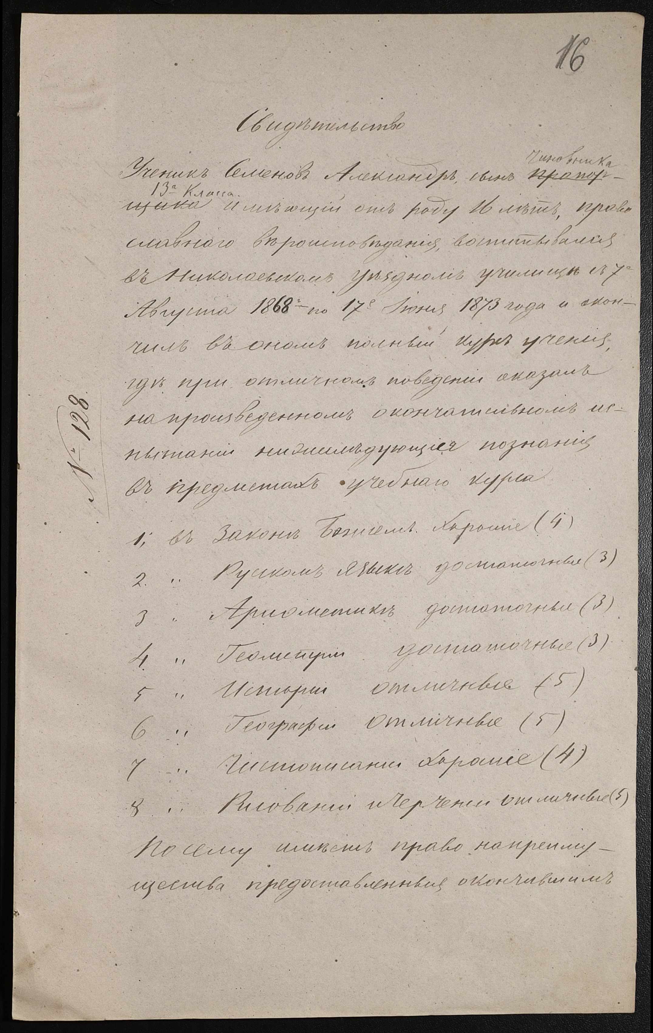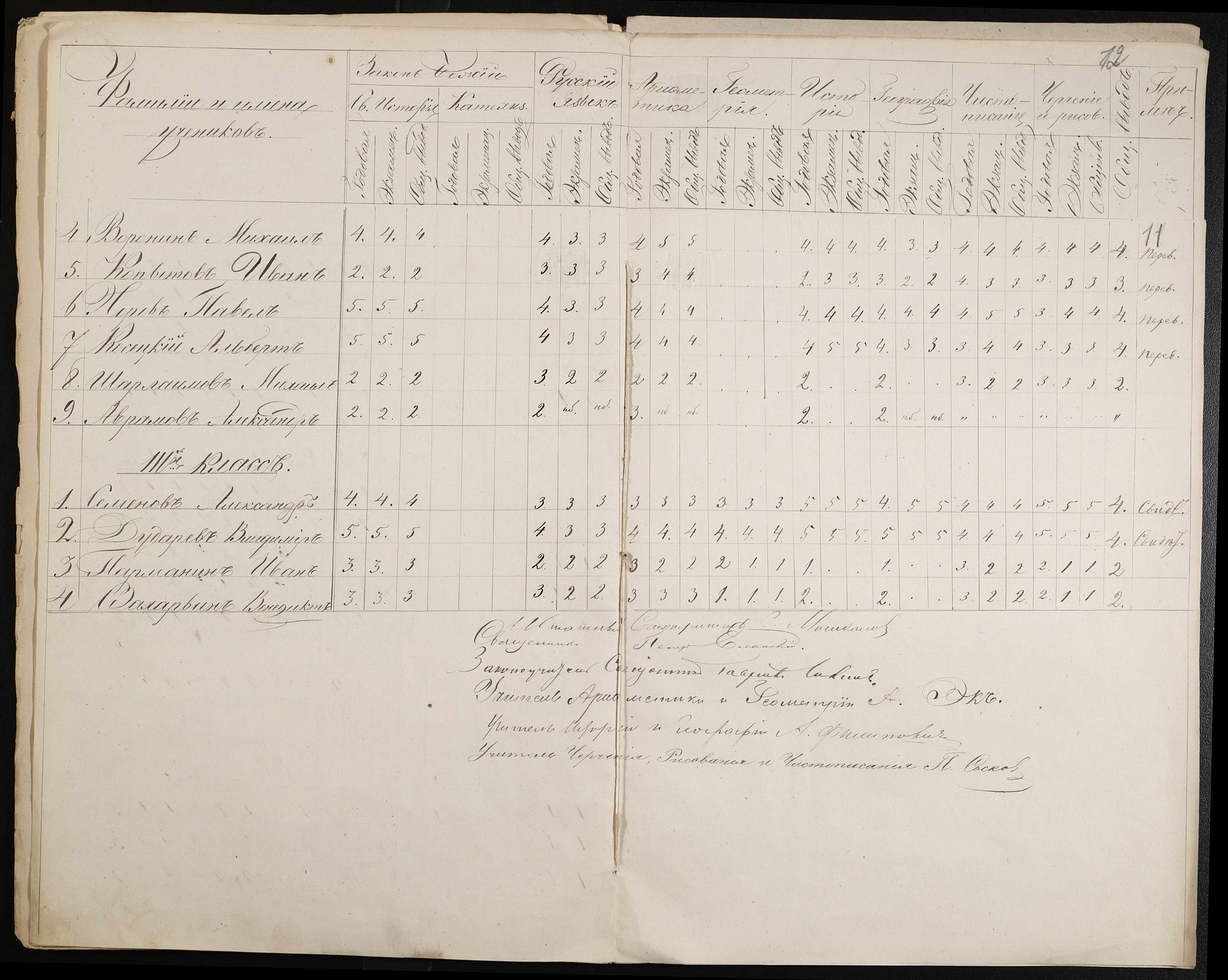 • • • • Справа № 44 “Екзаменаційні відомості, навчальні програми першого класу училища”