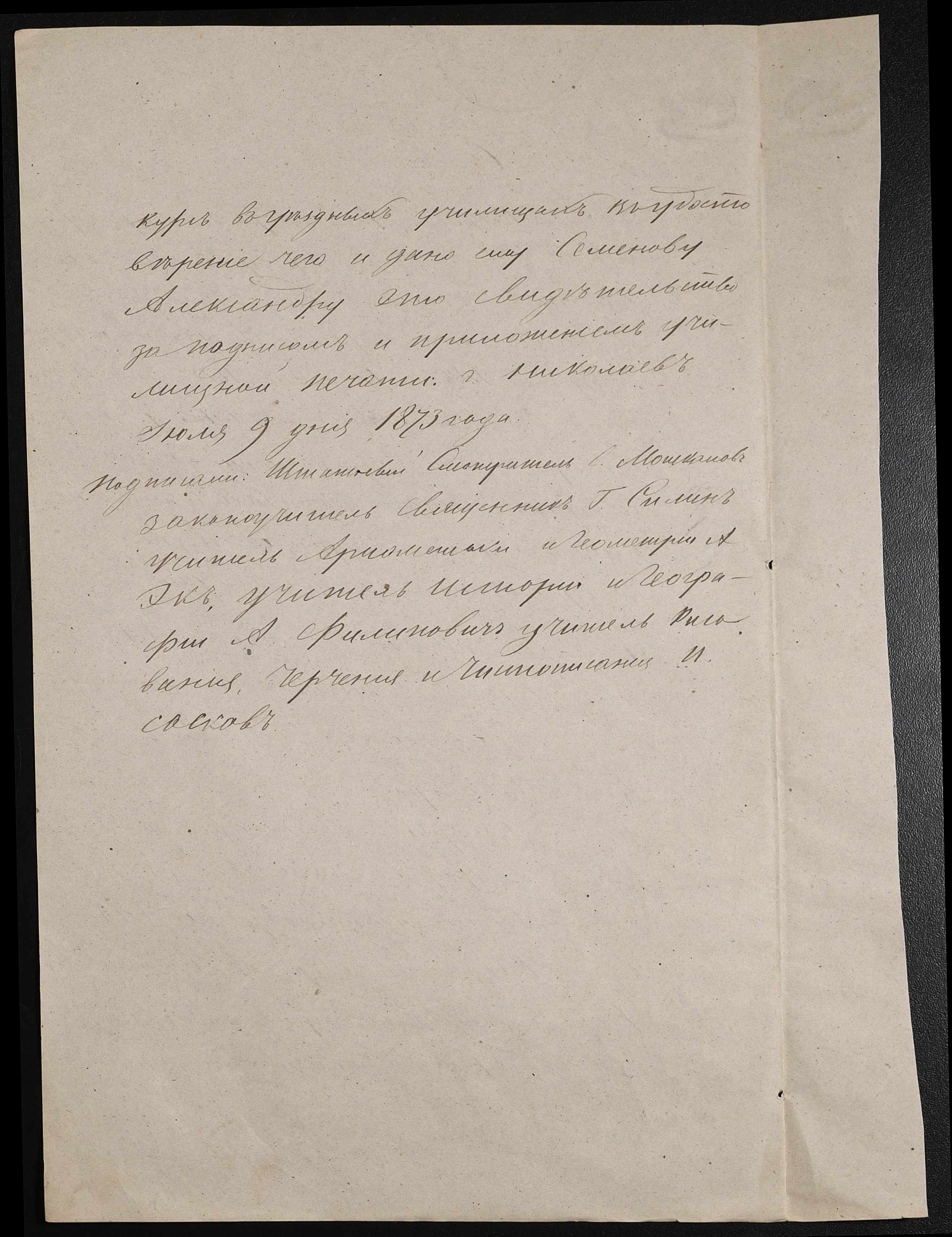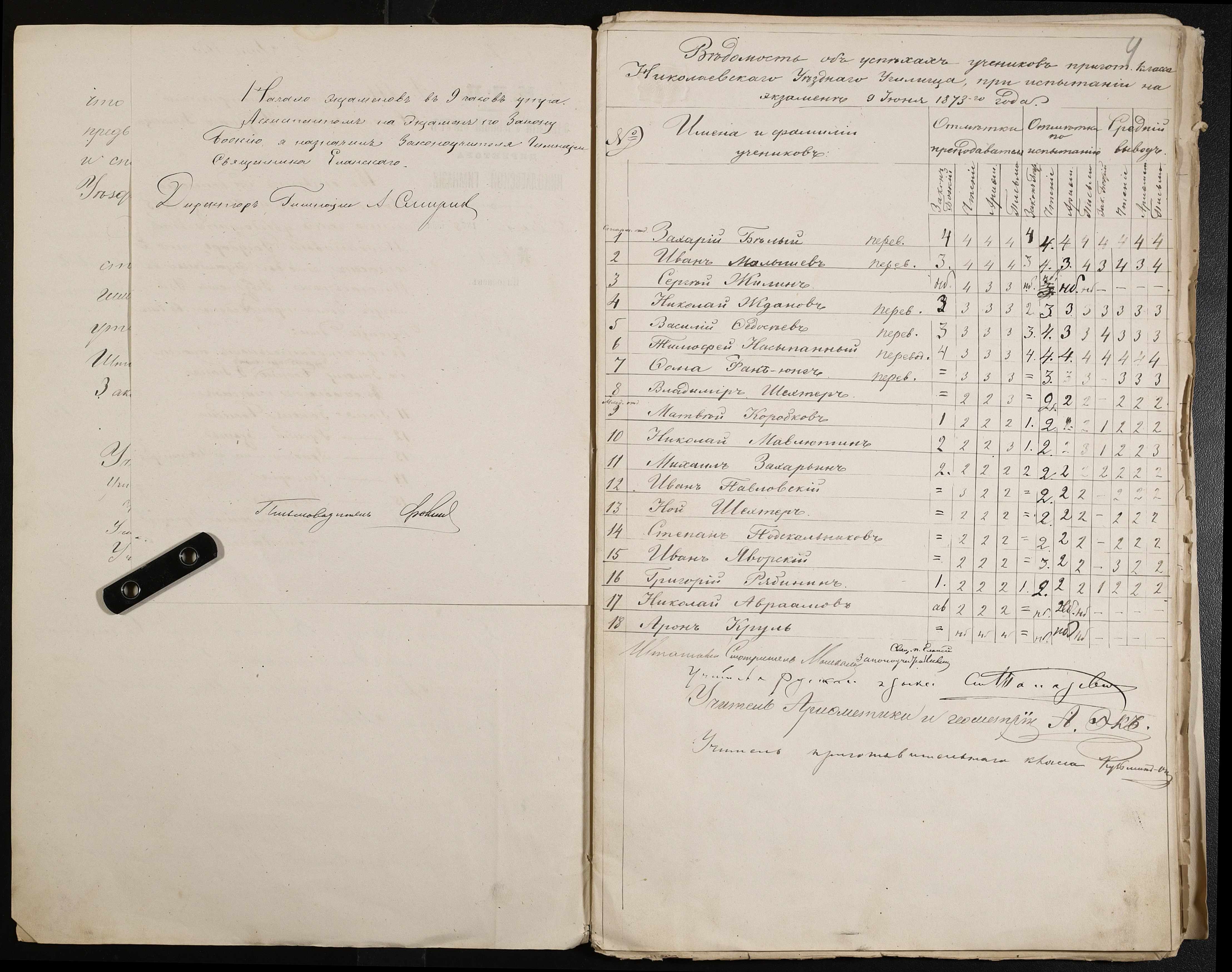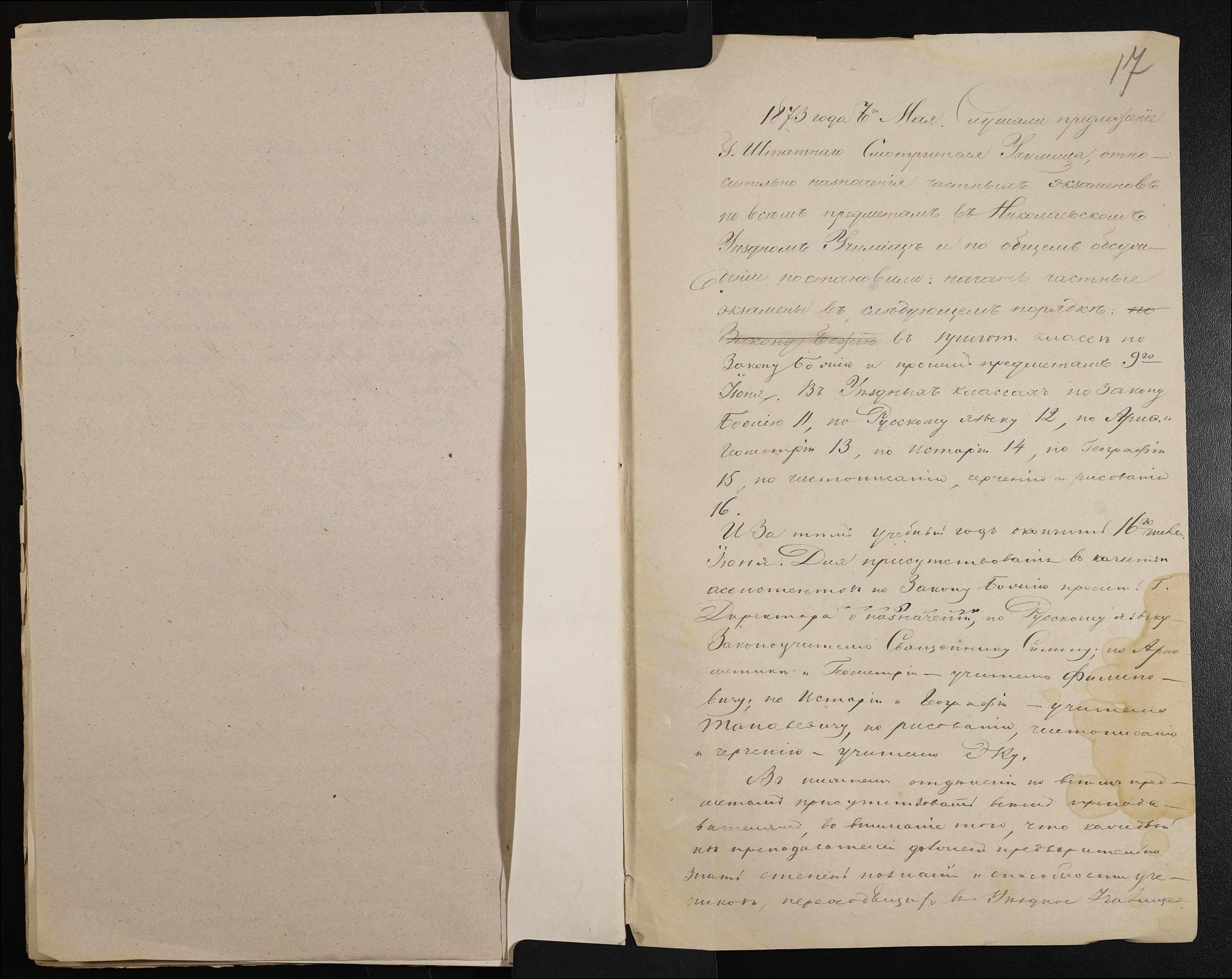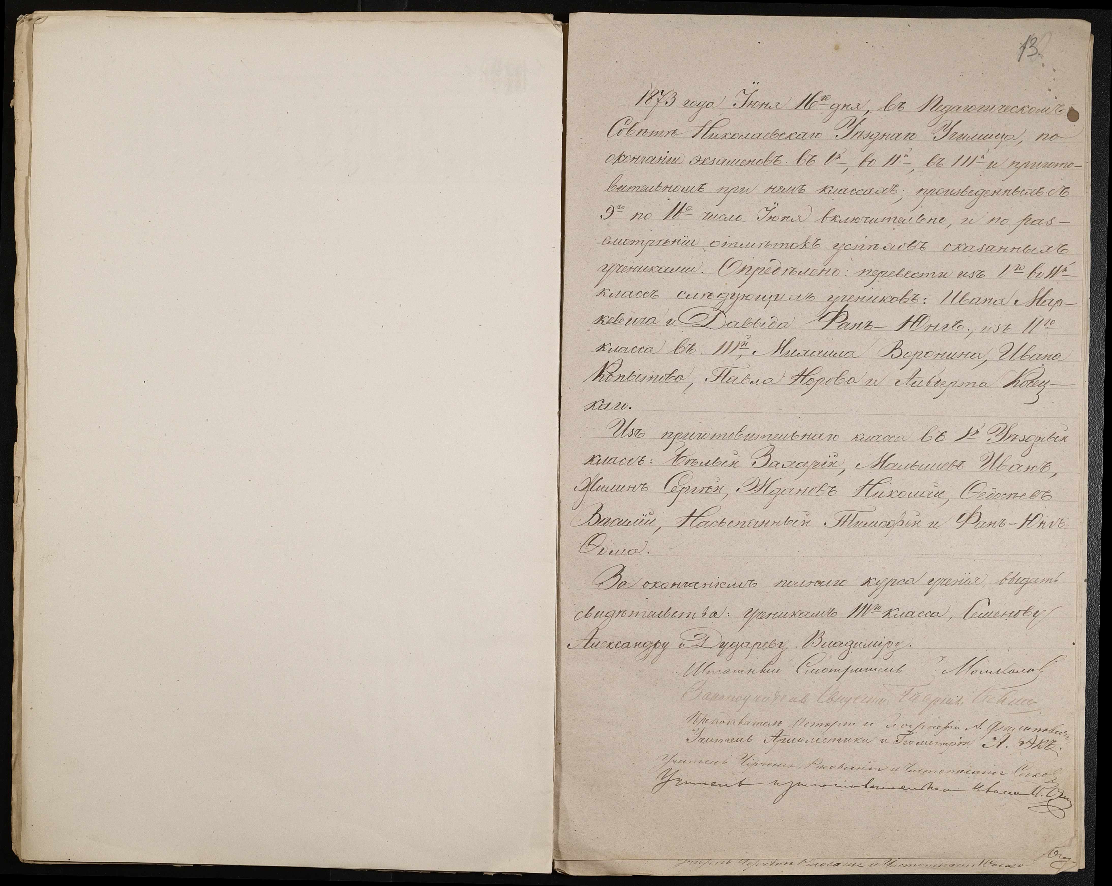 • • • • Справа № 44 “Екзаменаційні відомості, навчальні програми першого класу училища”
