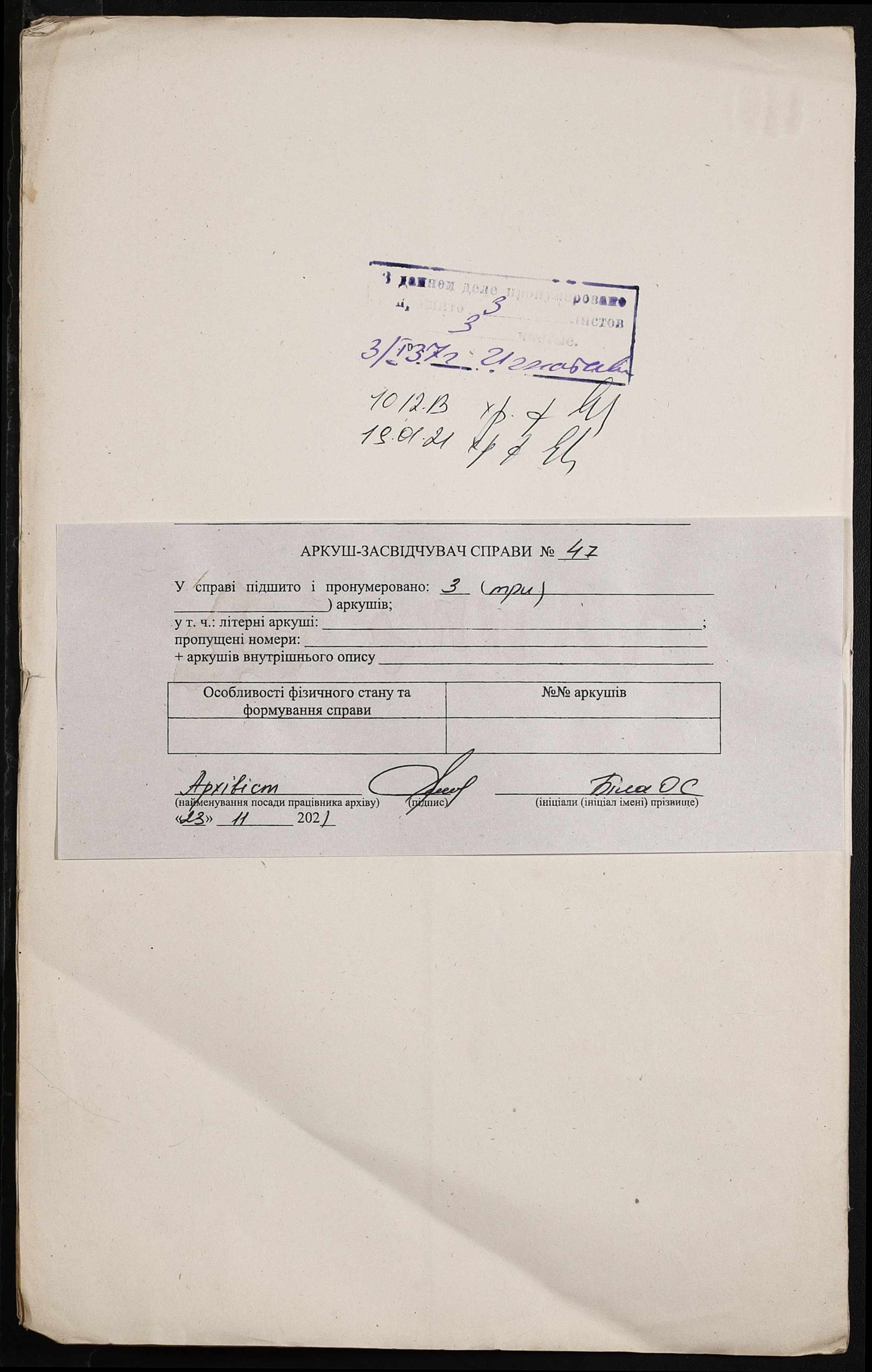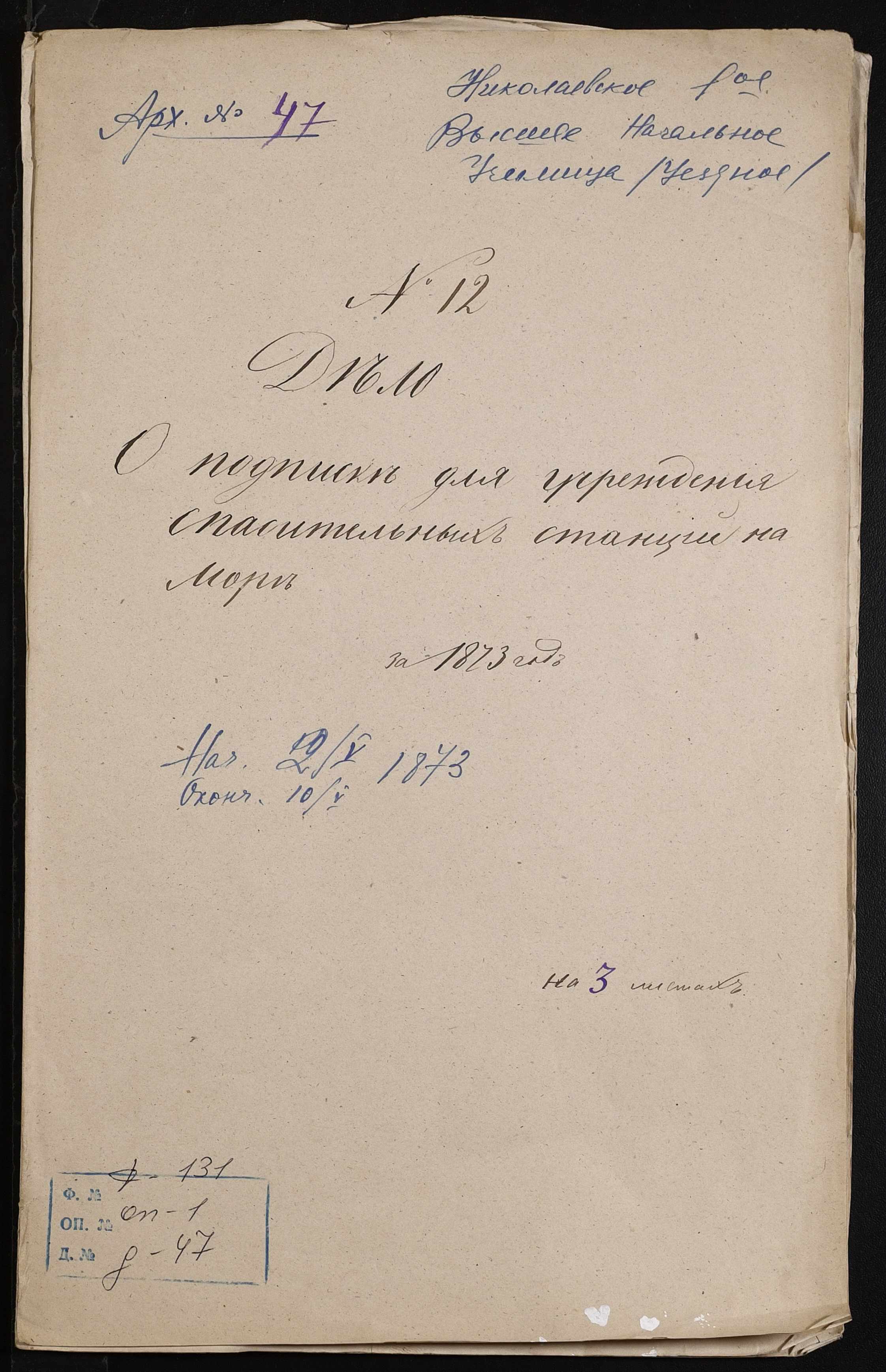 • • • • Справа № 47 “Справа про заснування спілки надання допомоги під час аварії на суднах і рятувальних станцій на Чорному і Азовському морях”