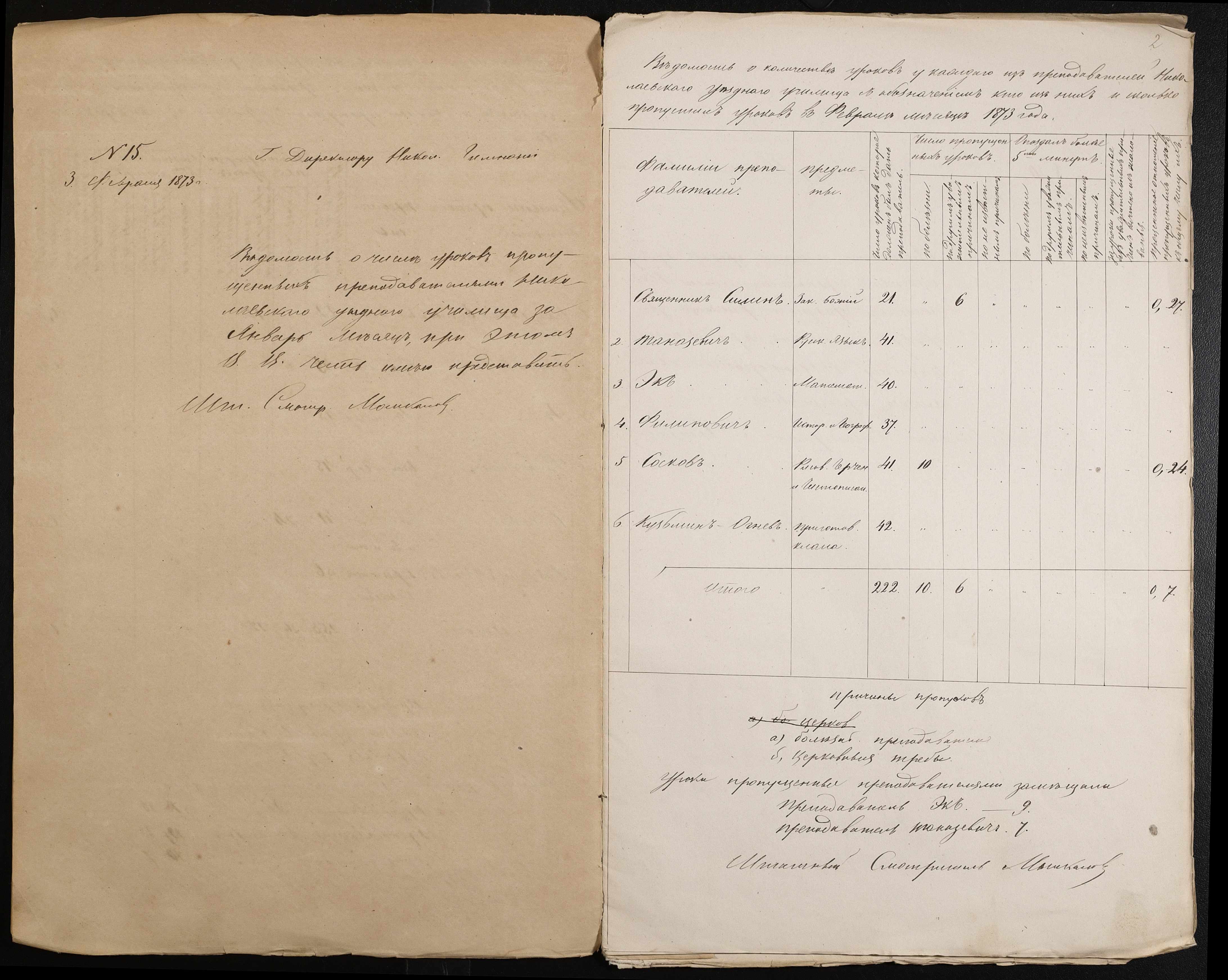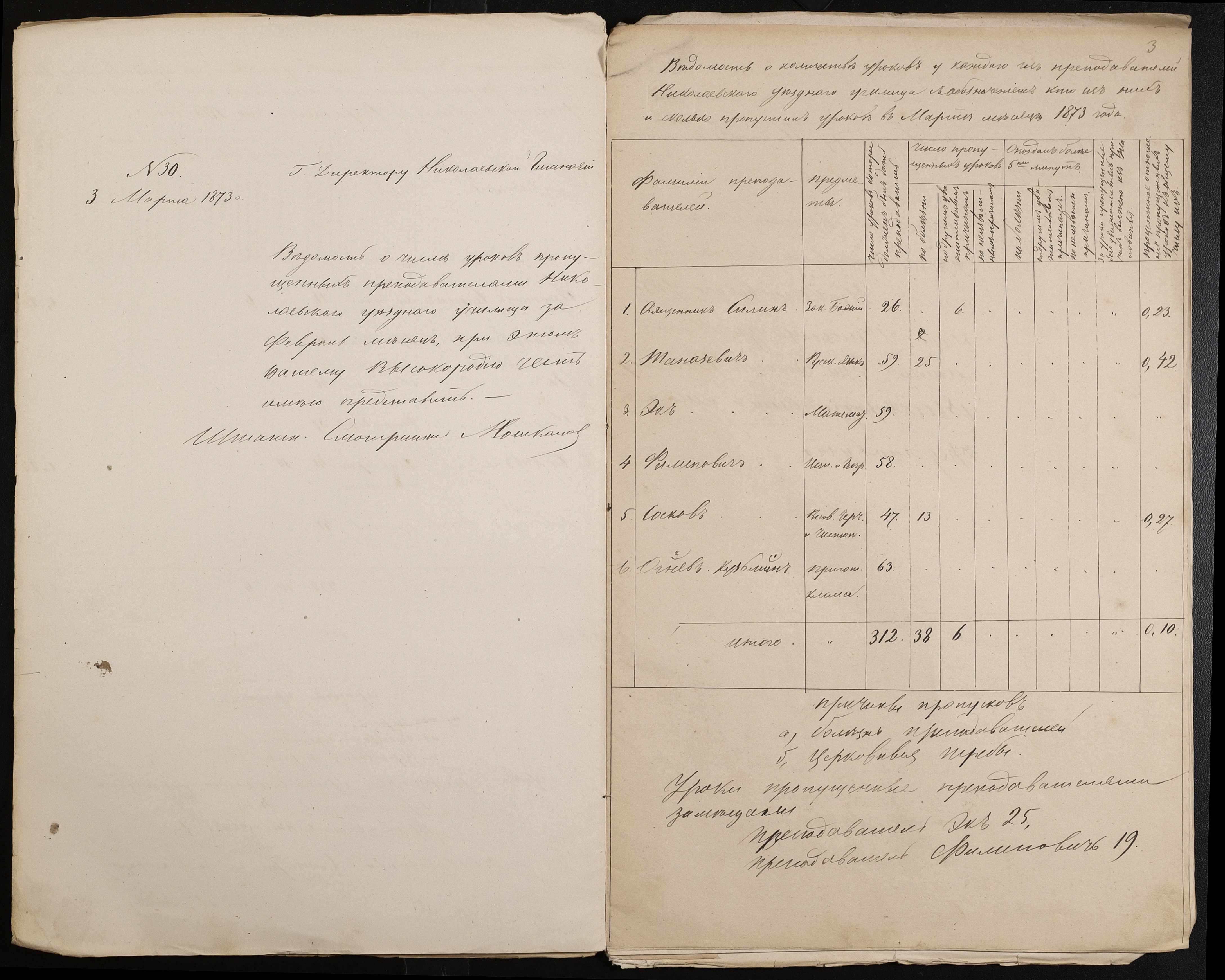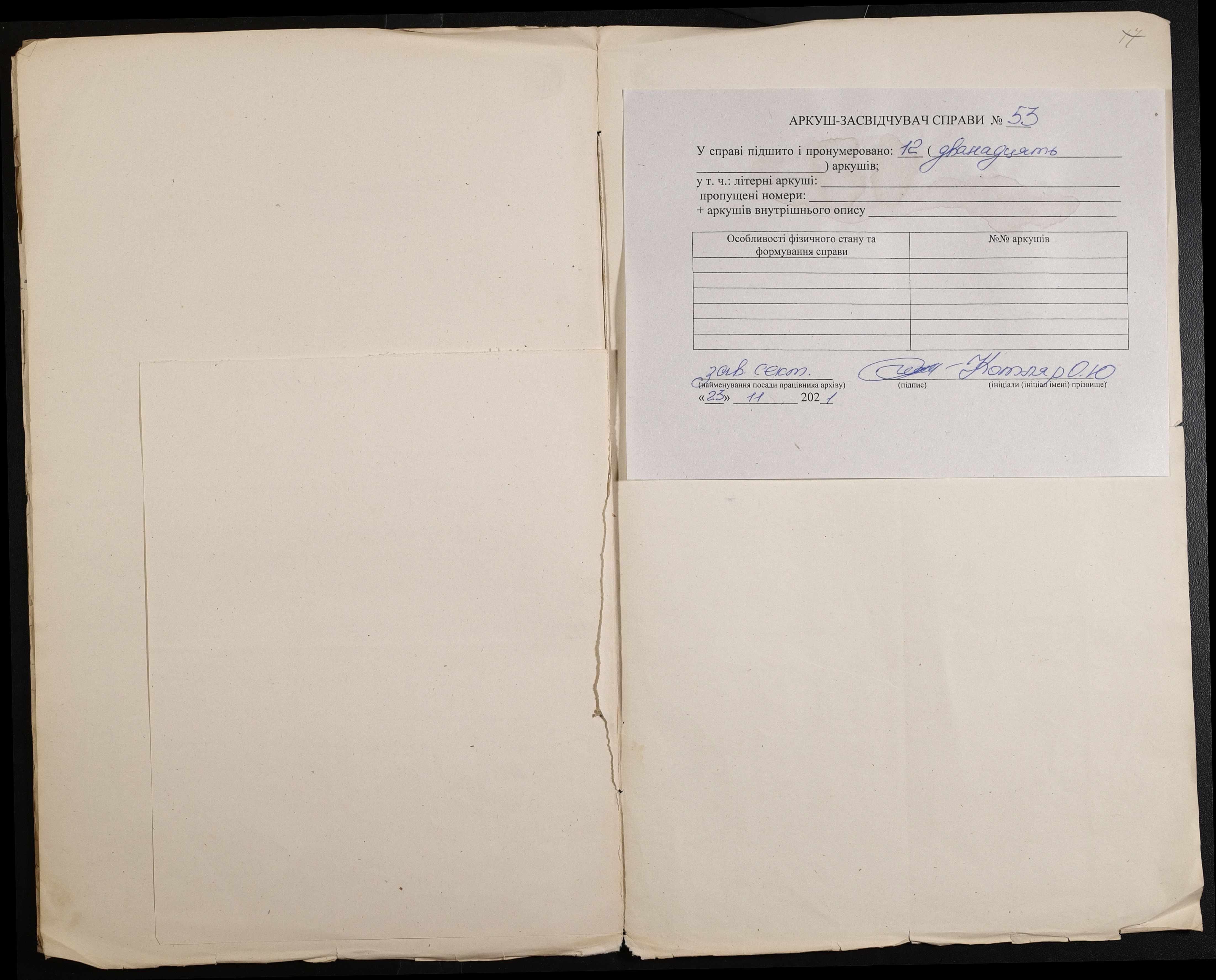 • • • • Справа № 53 “Відомості обліку уроків, на яких були відсутні викладачі”