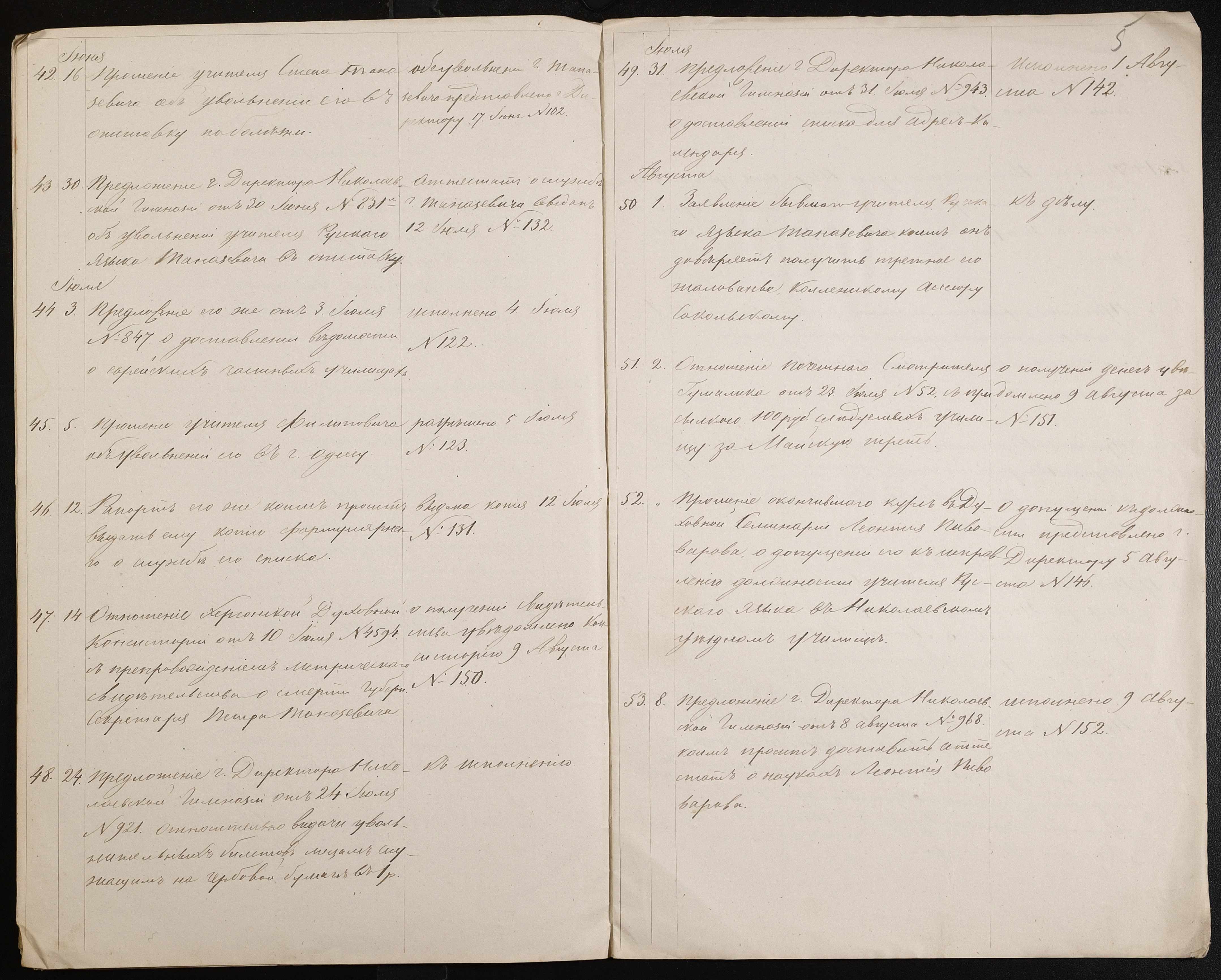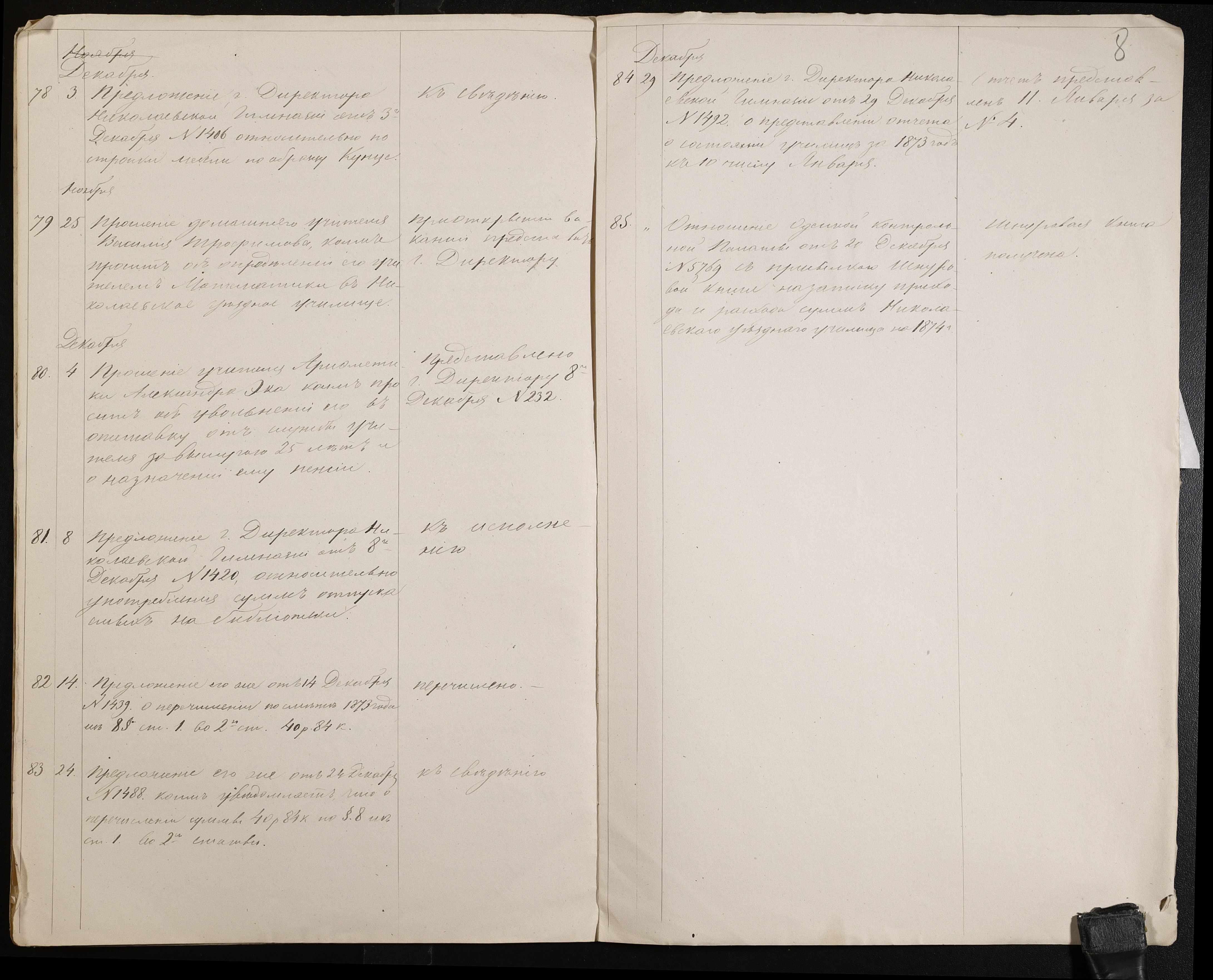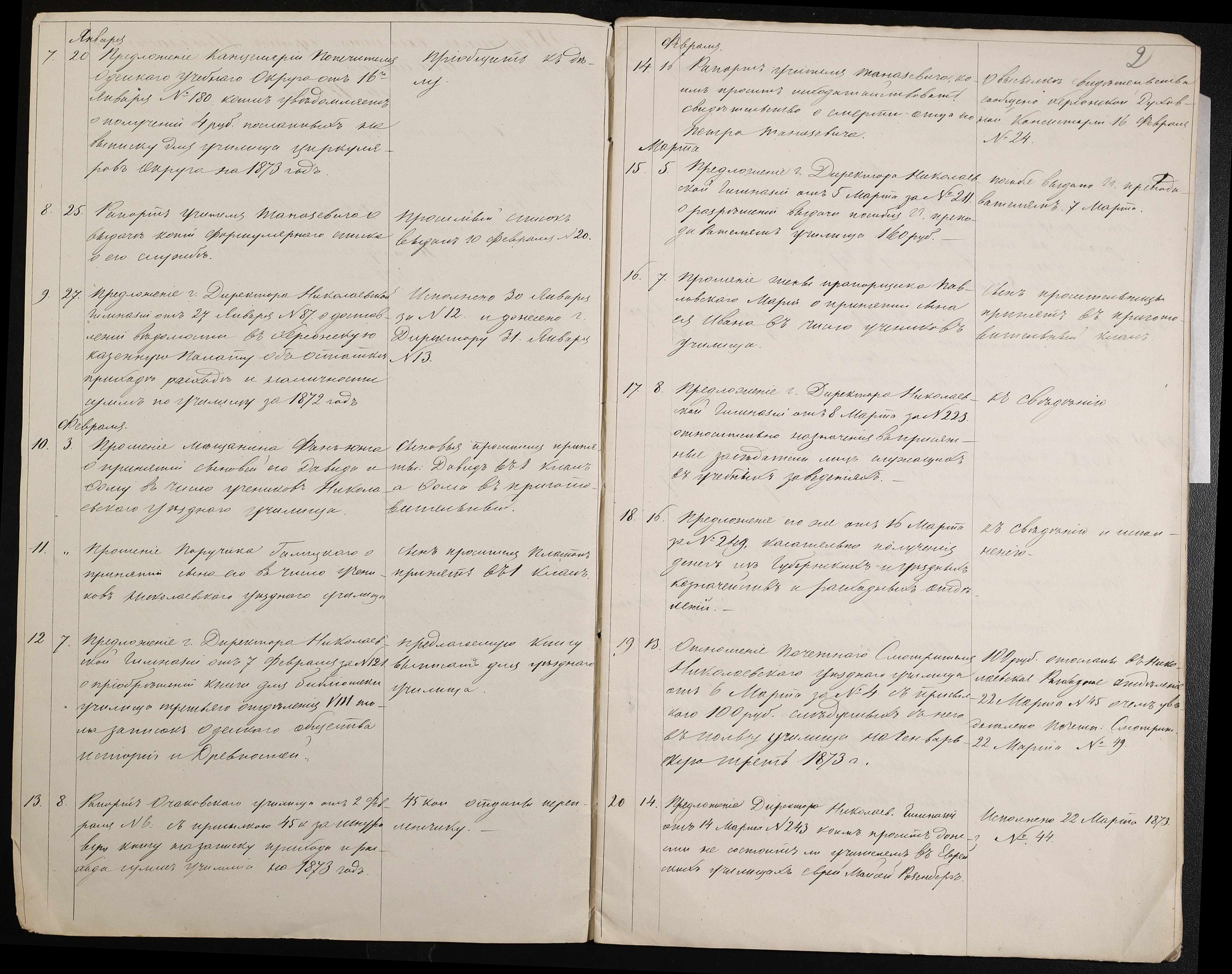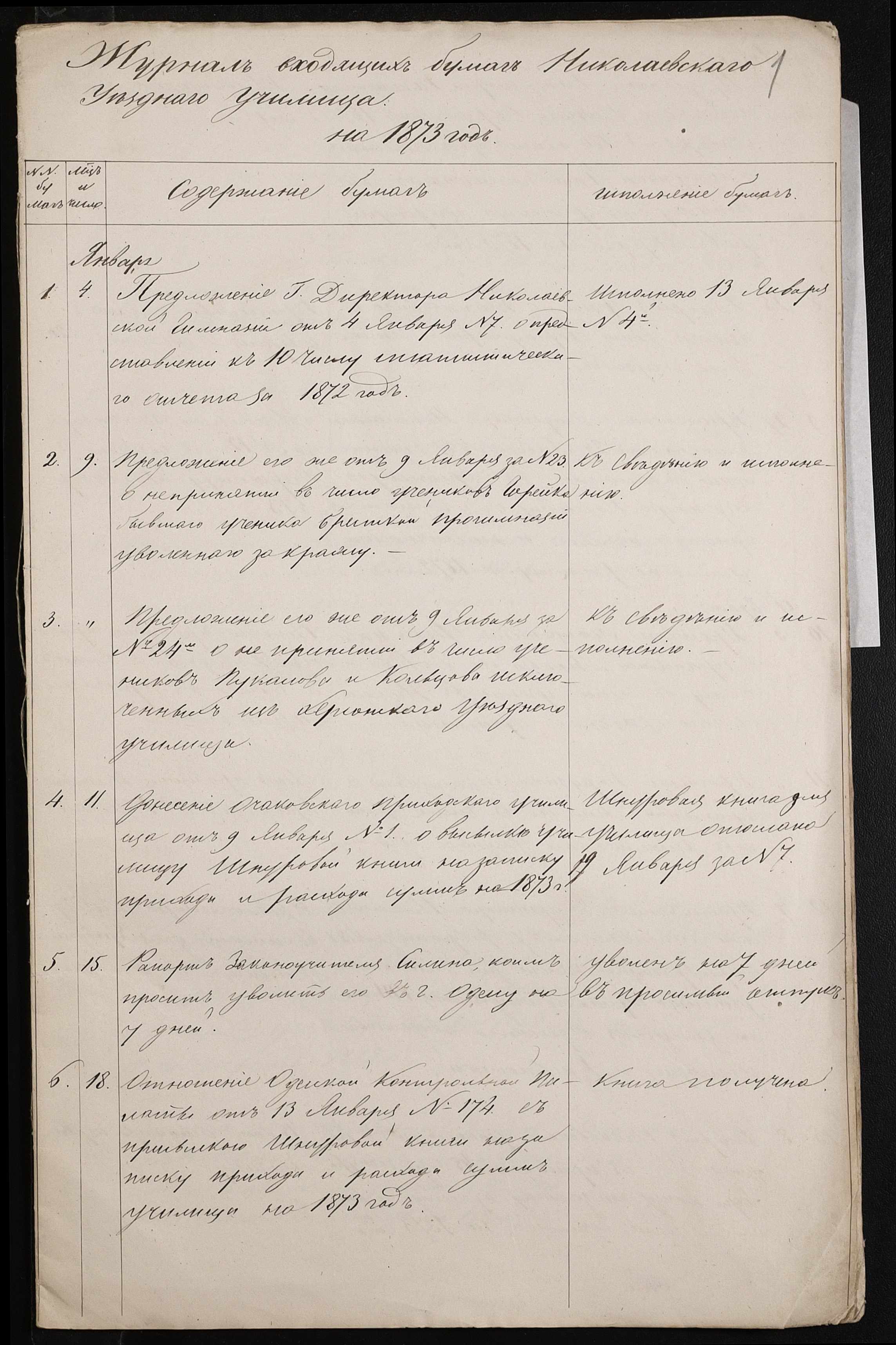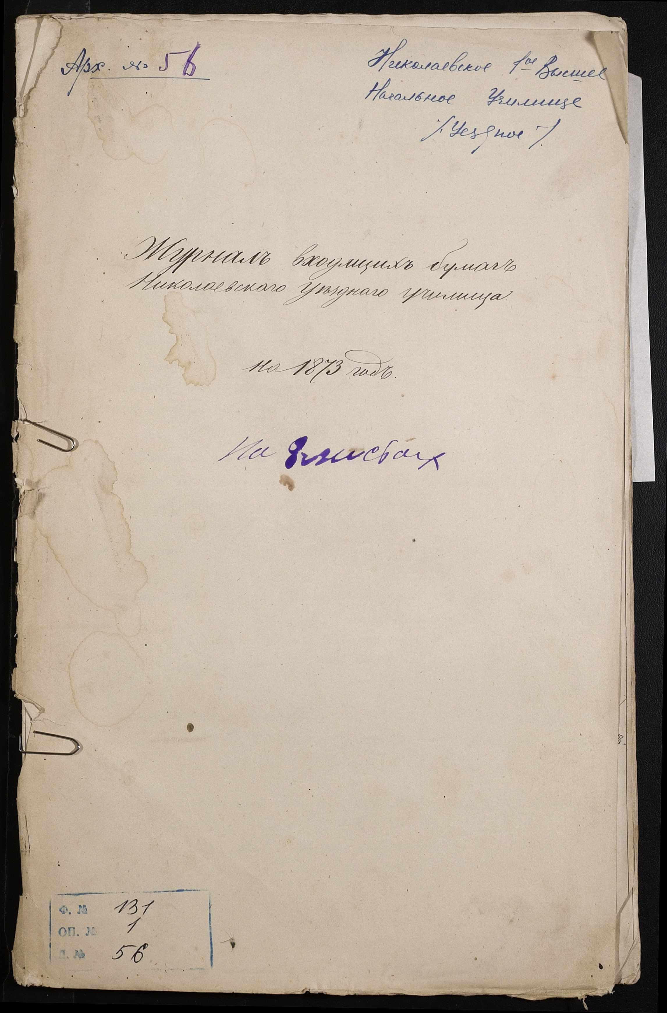 • • • • Справа № 56 “Журнал реєстрації вхідних документів за 1873 рік”