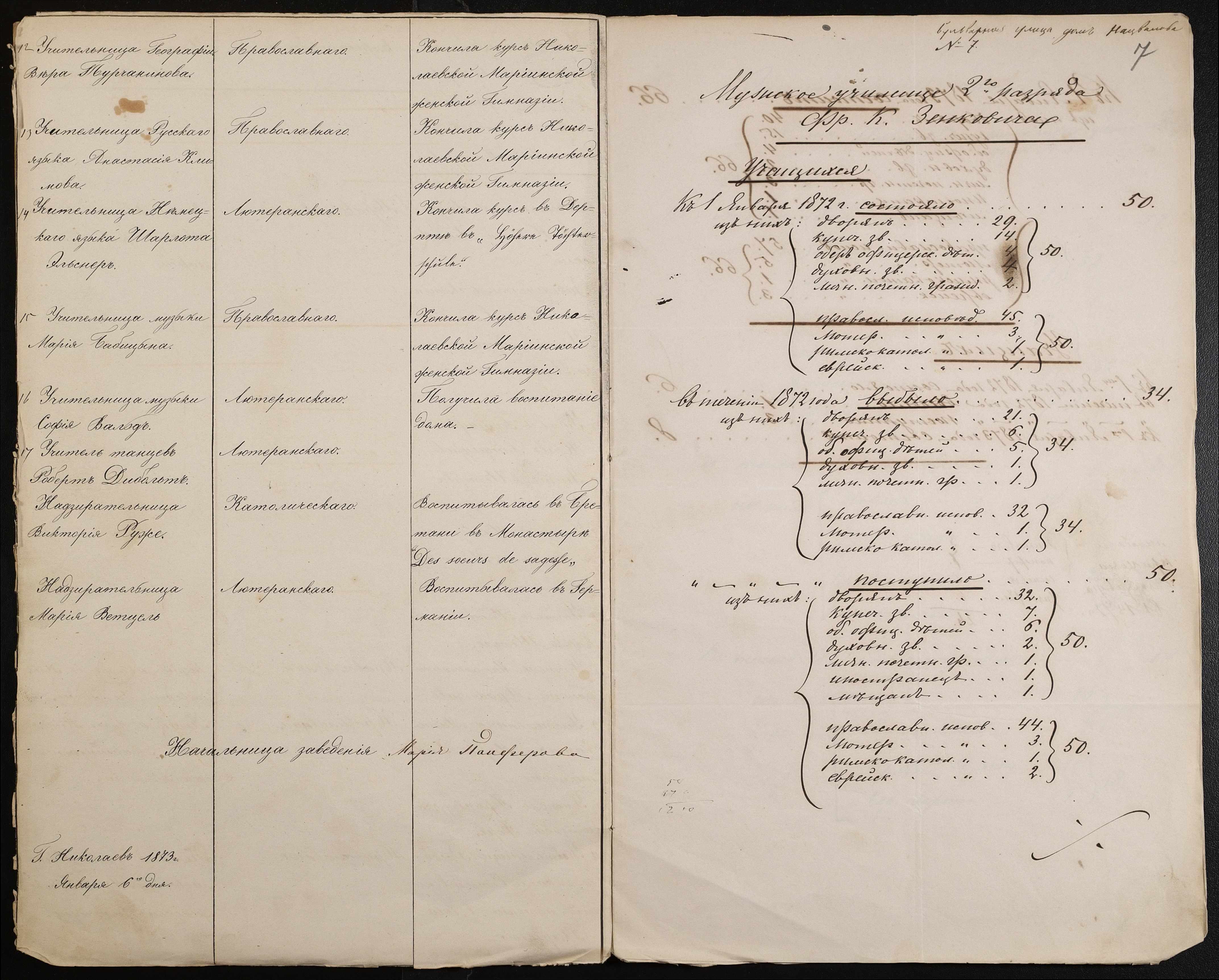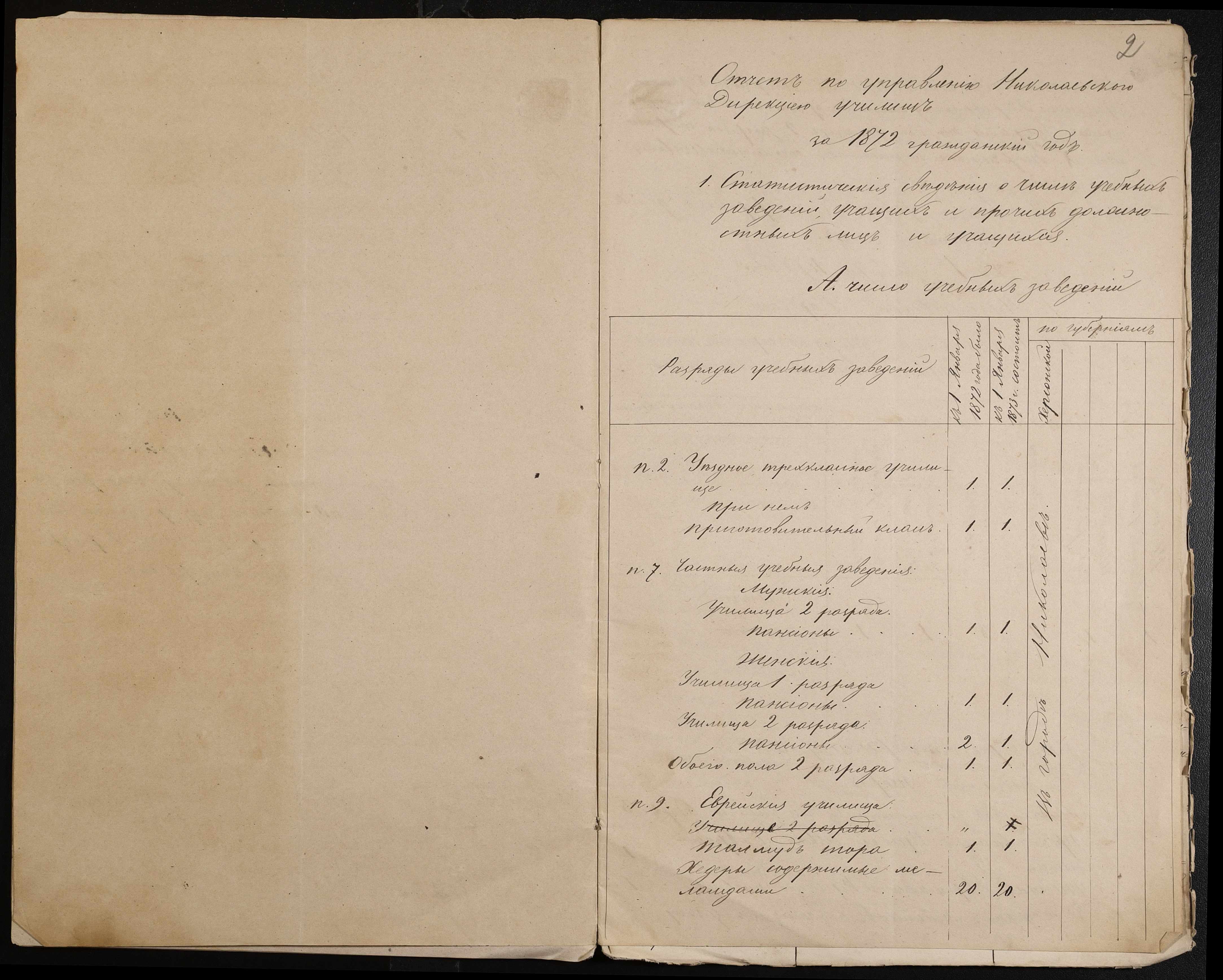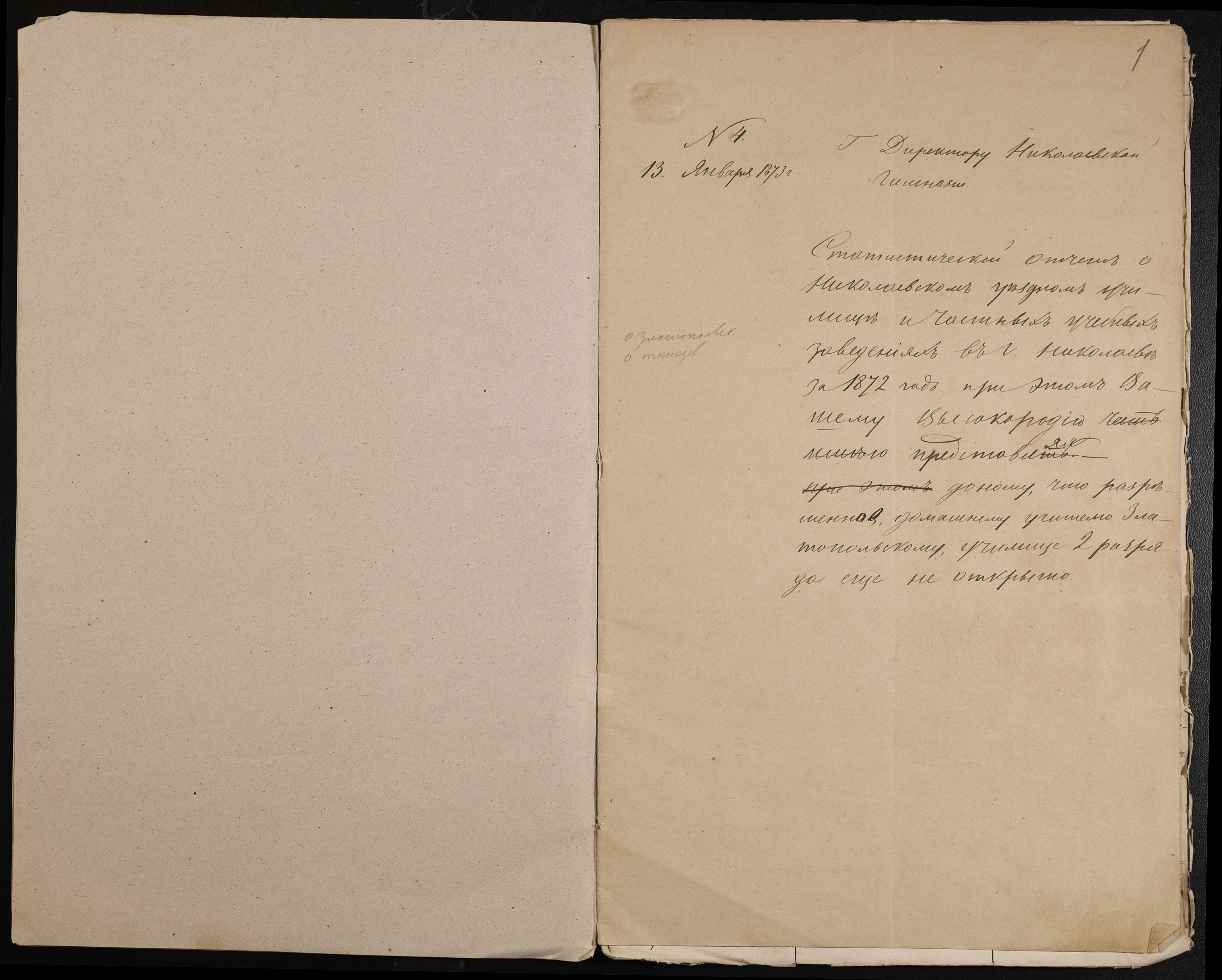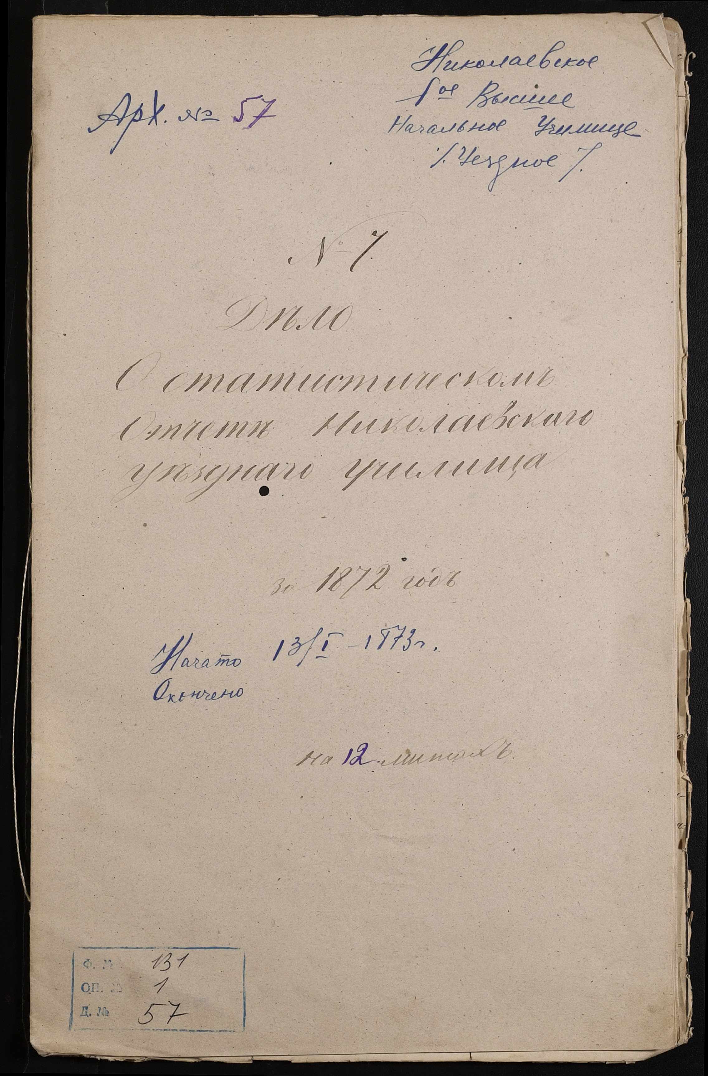 • • • • Справа № 57 “Статистичний звіт про стан повітового училища і приватних учбових закладів Миколаєва за 1872 рік”