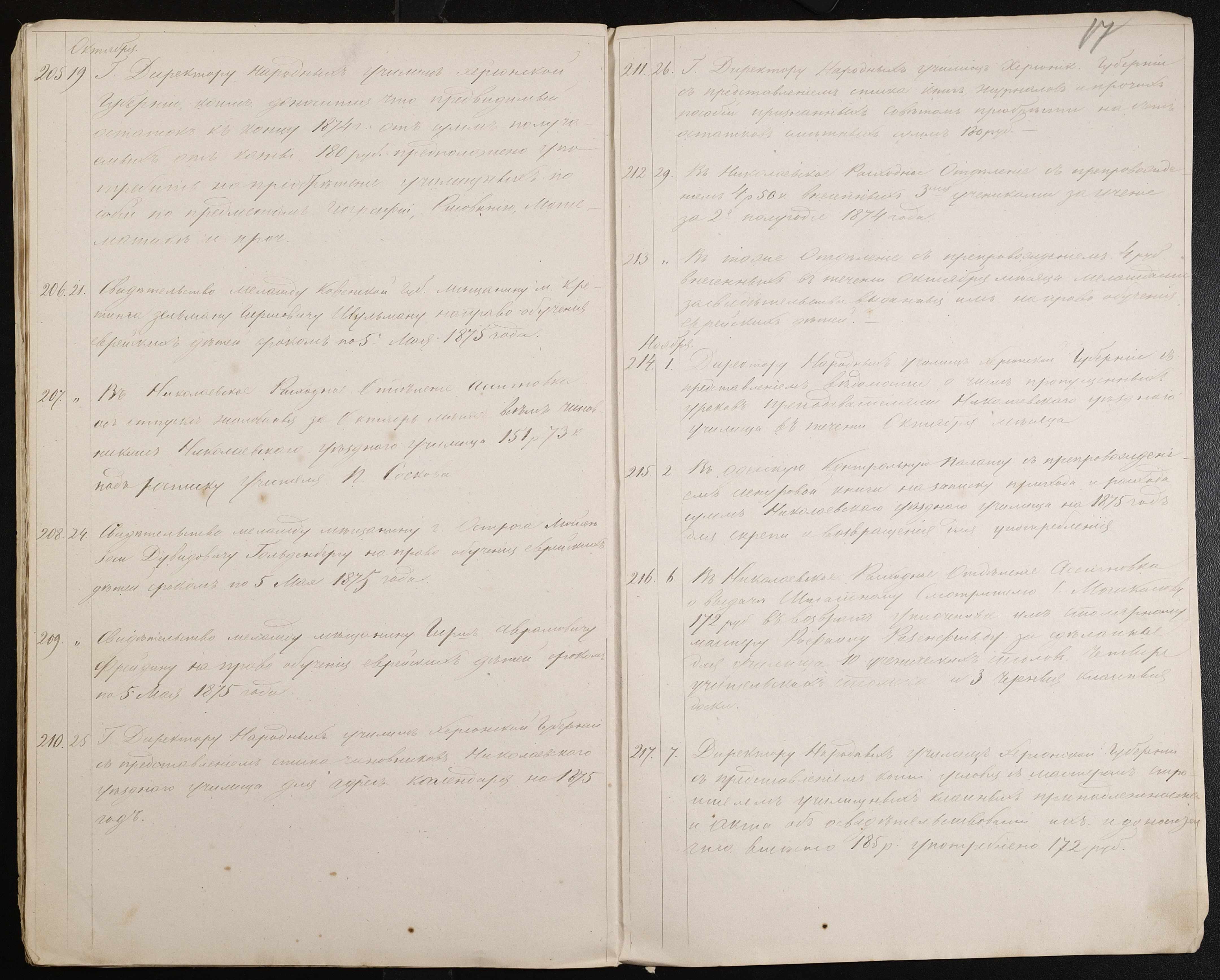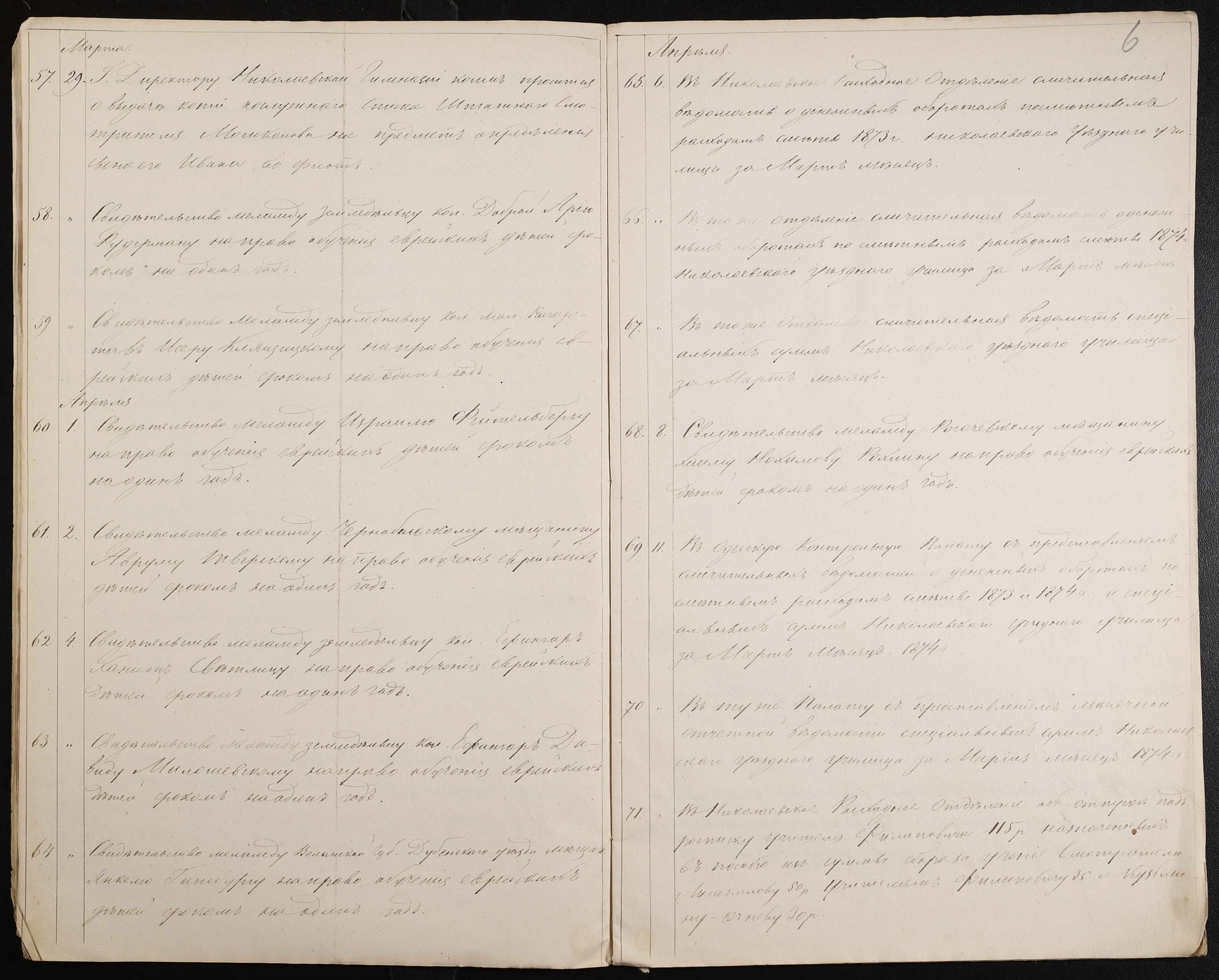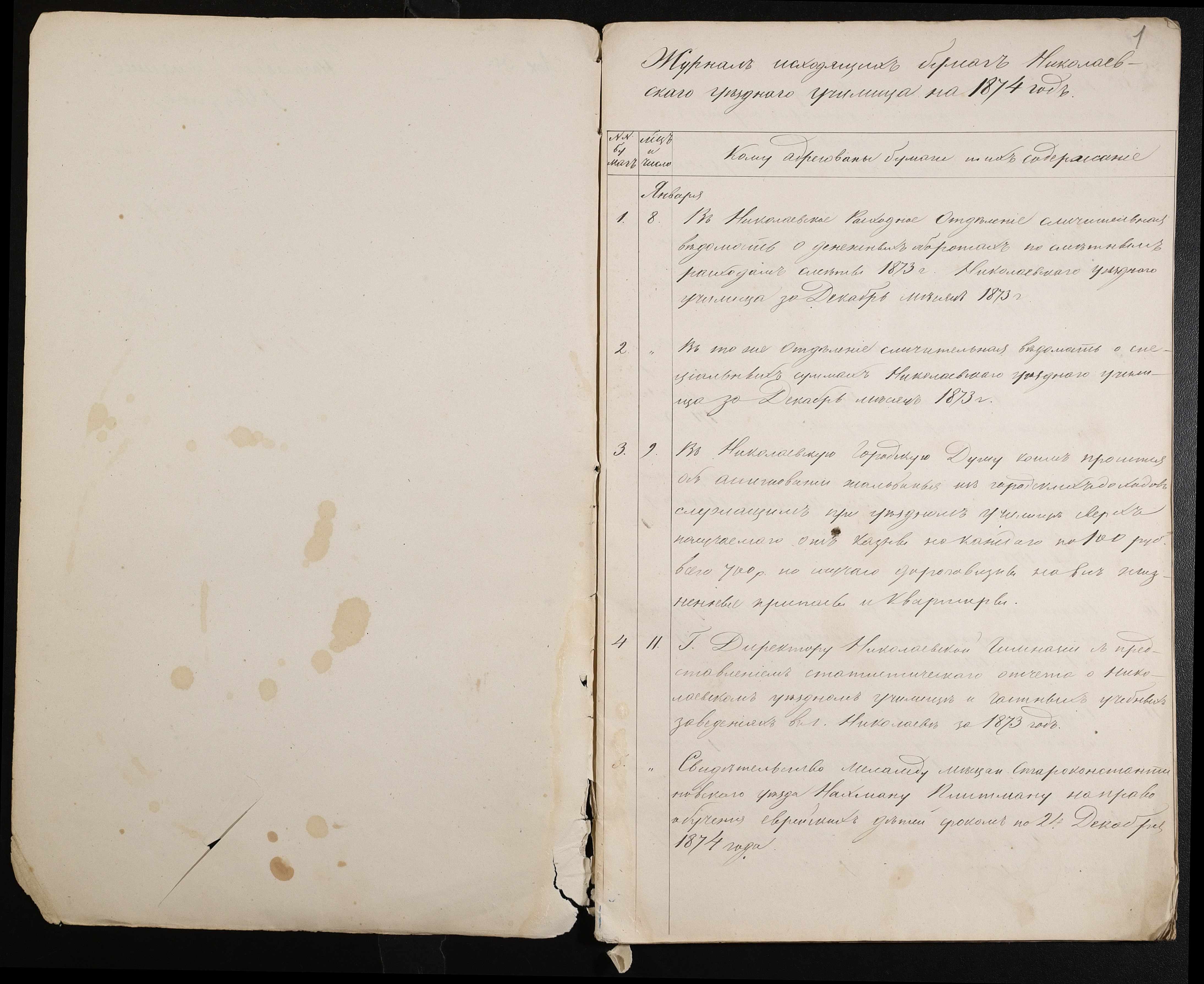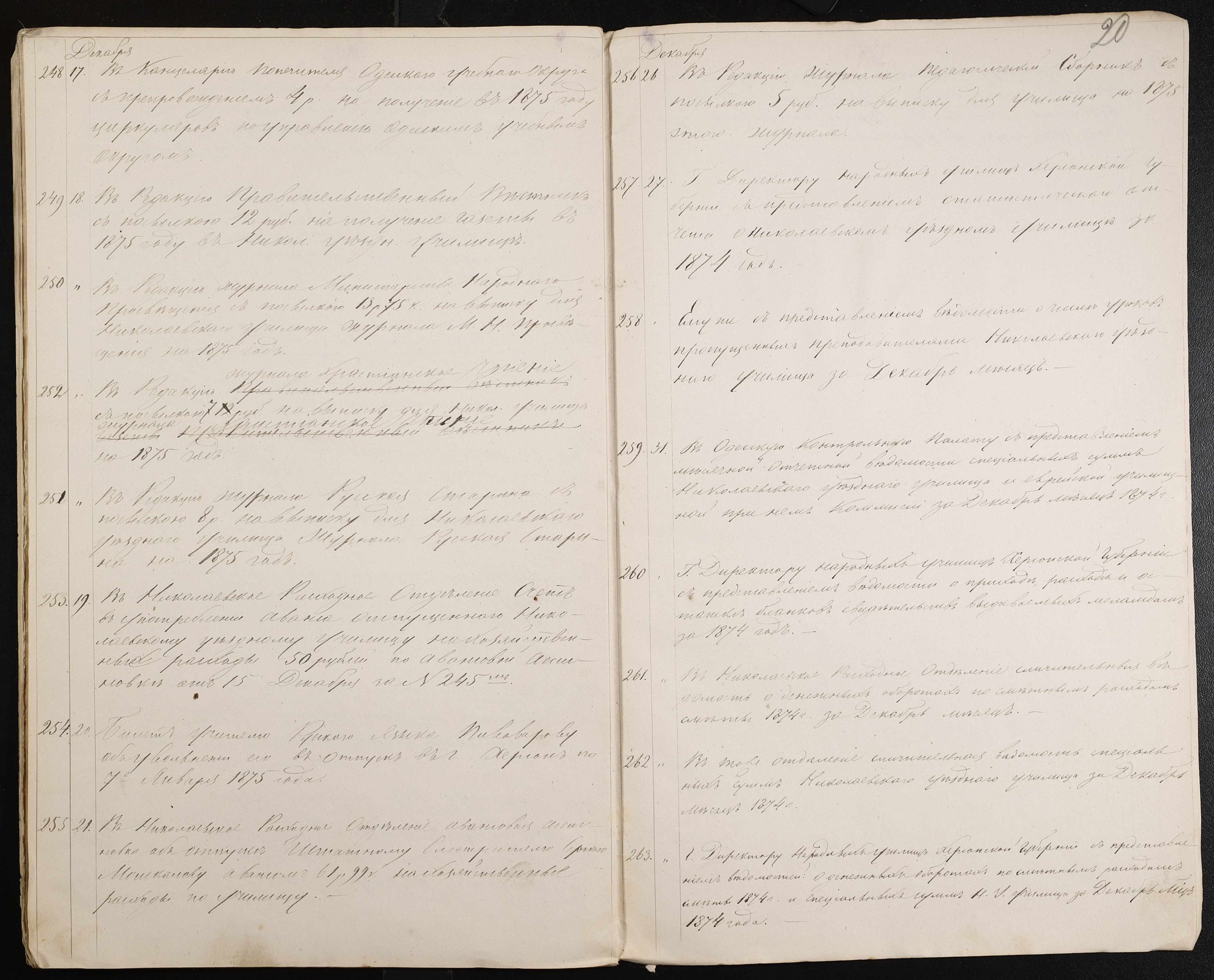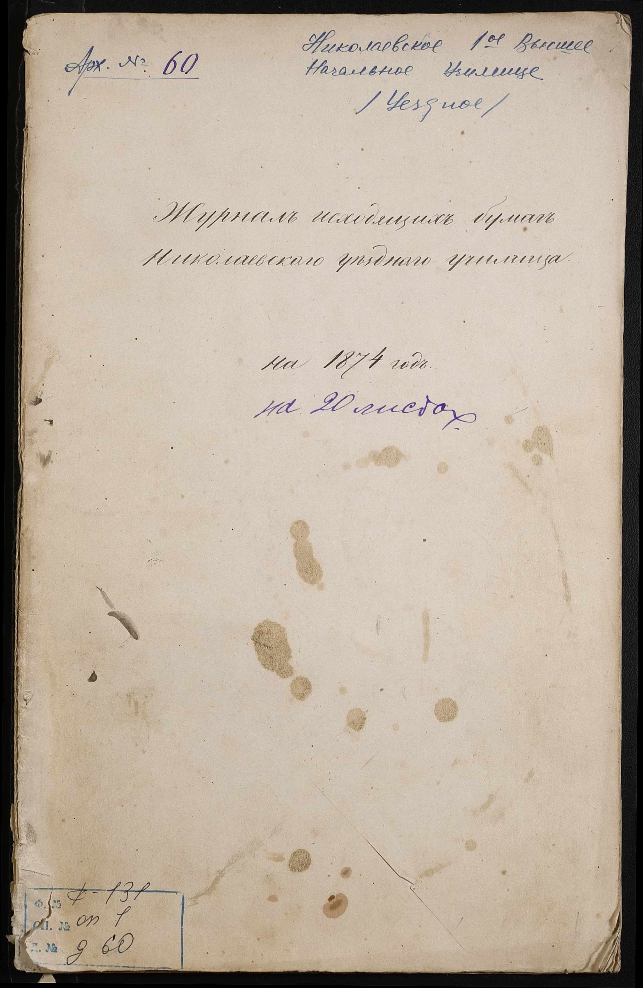 • • • • Справа № 60 “Журнал реєстрації вихідних документів за 1874 рік”