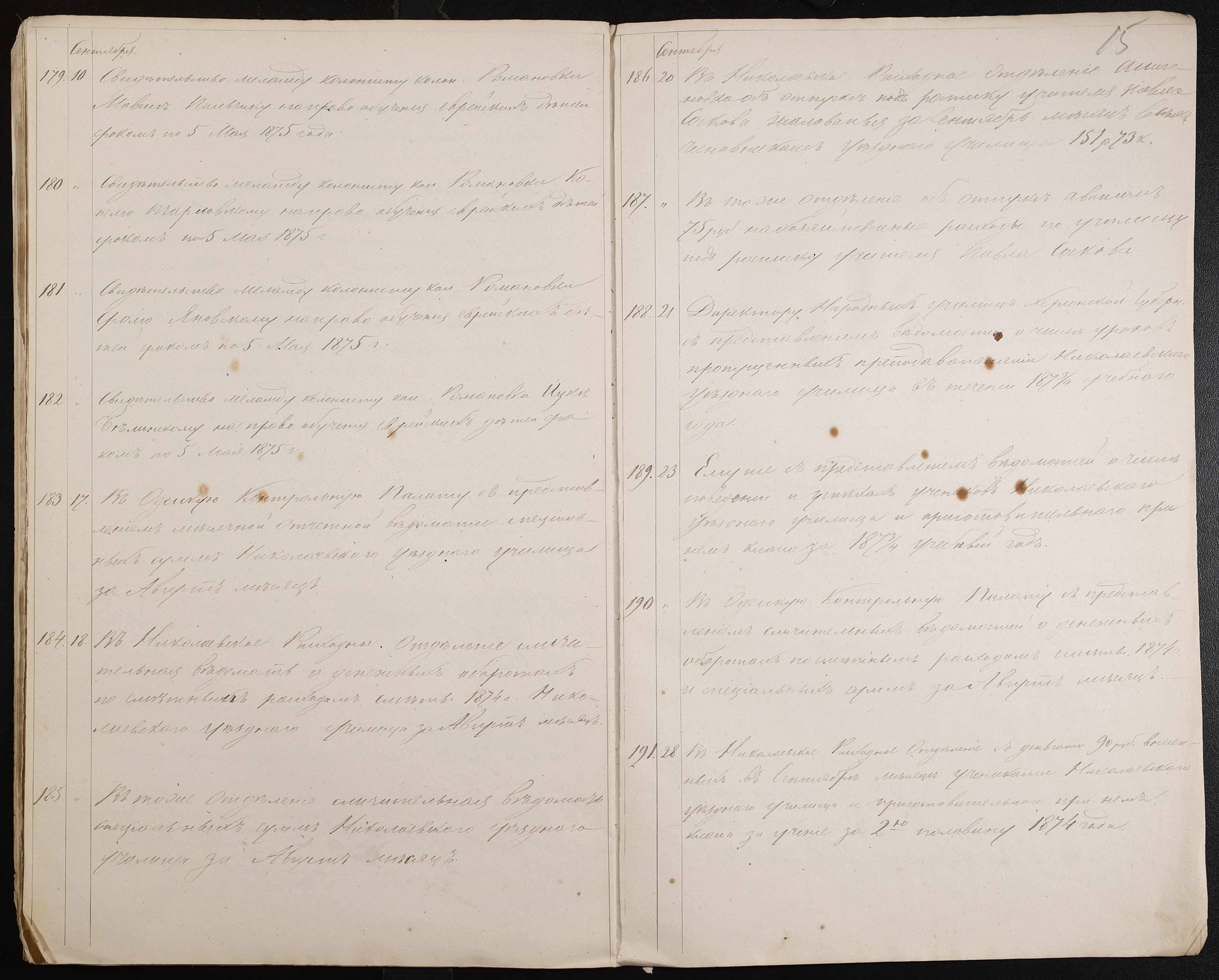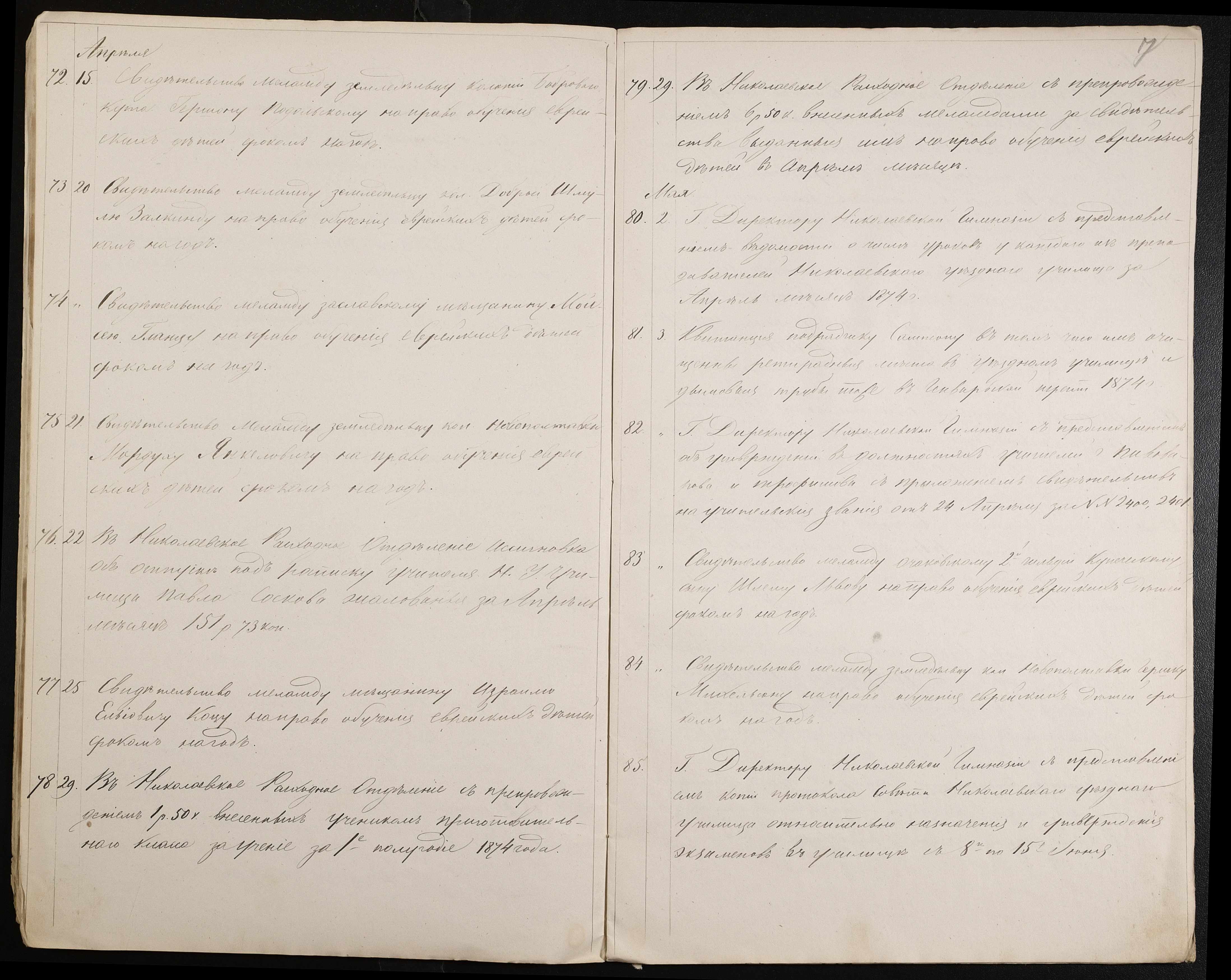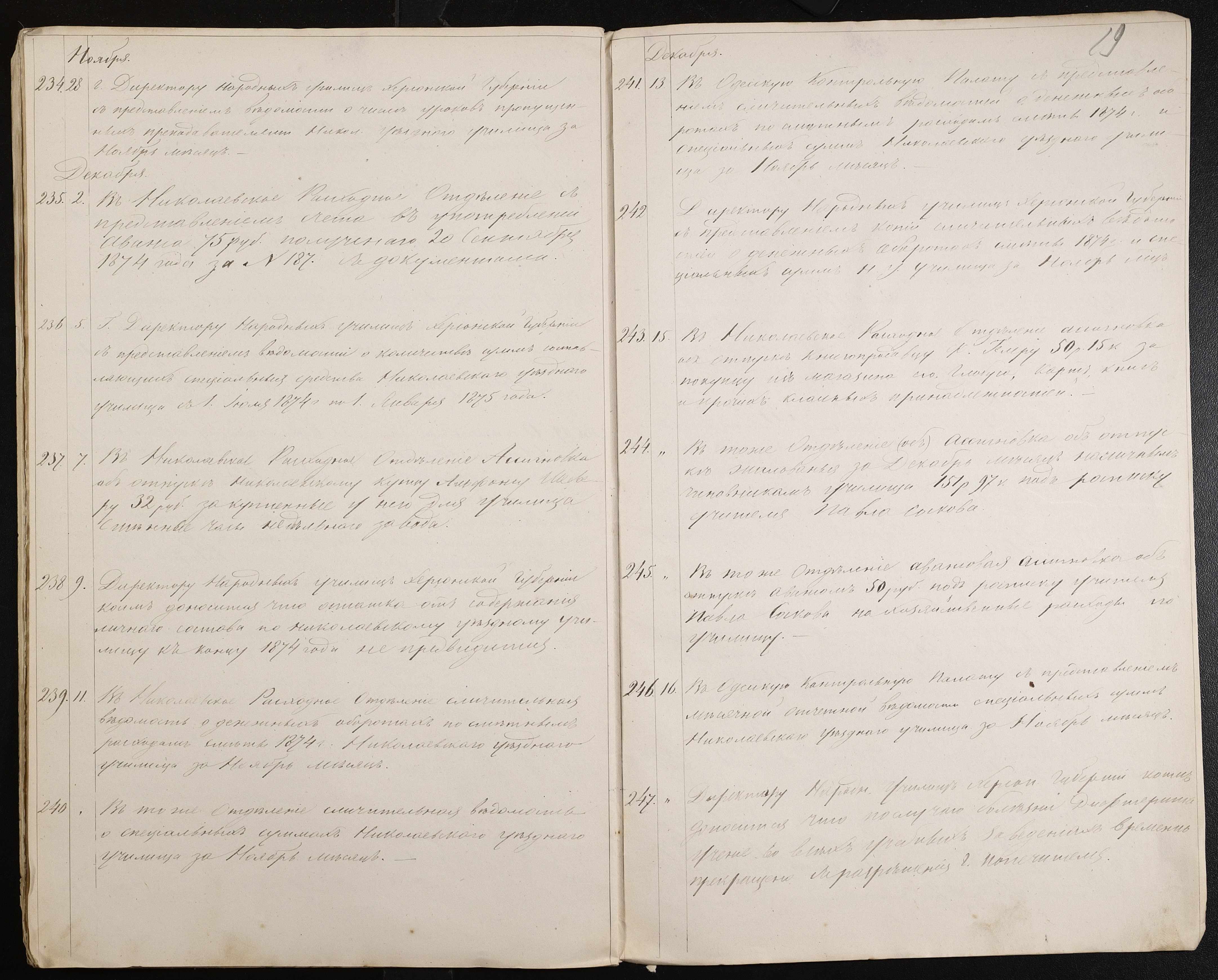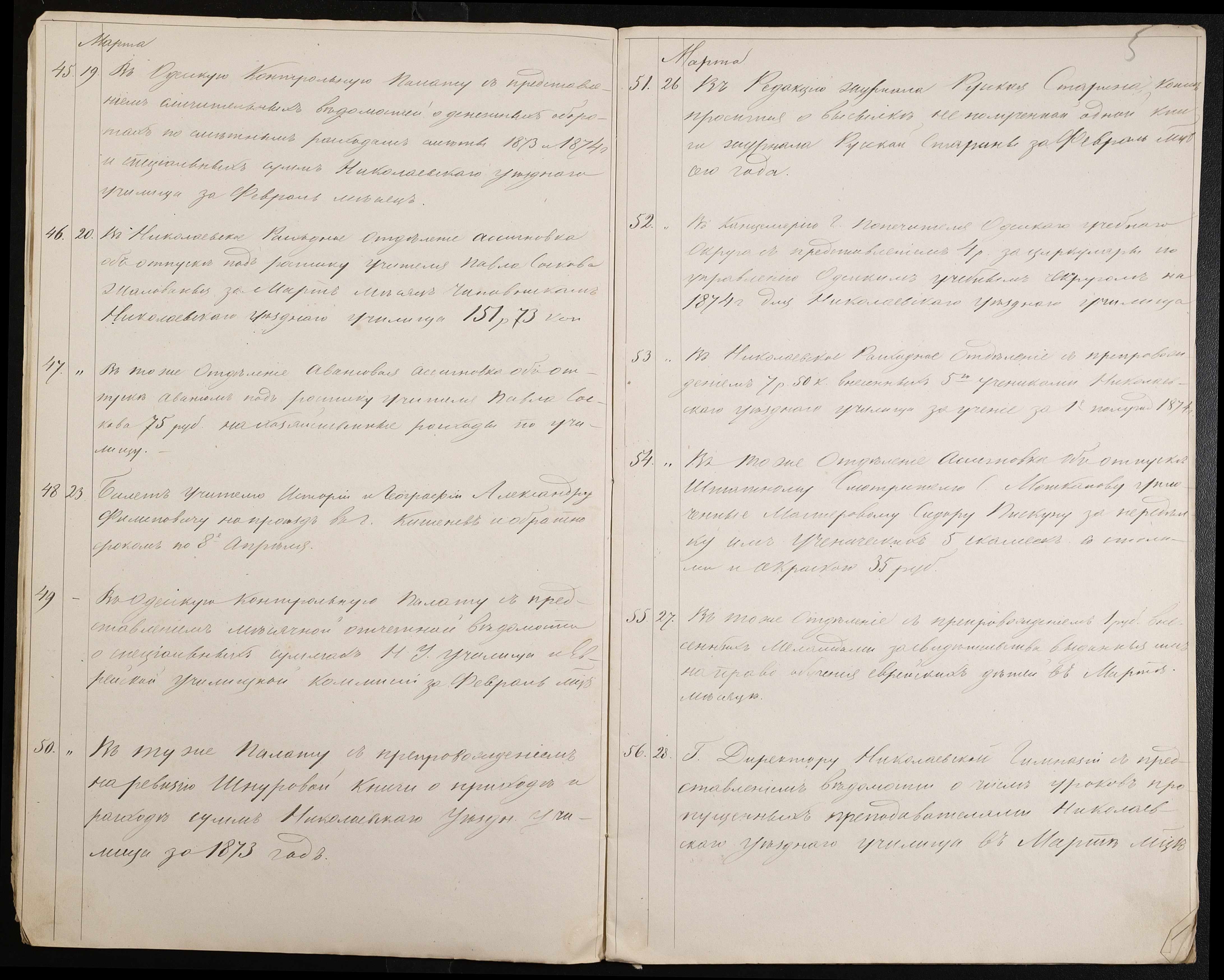 • • • • Справа № 60 “Журнал реєстрації вихідних документів за 1874 рік”