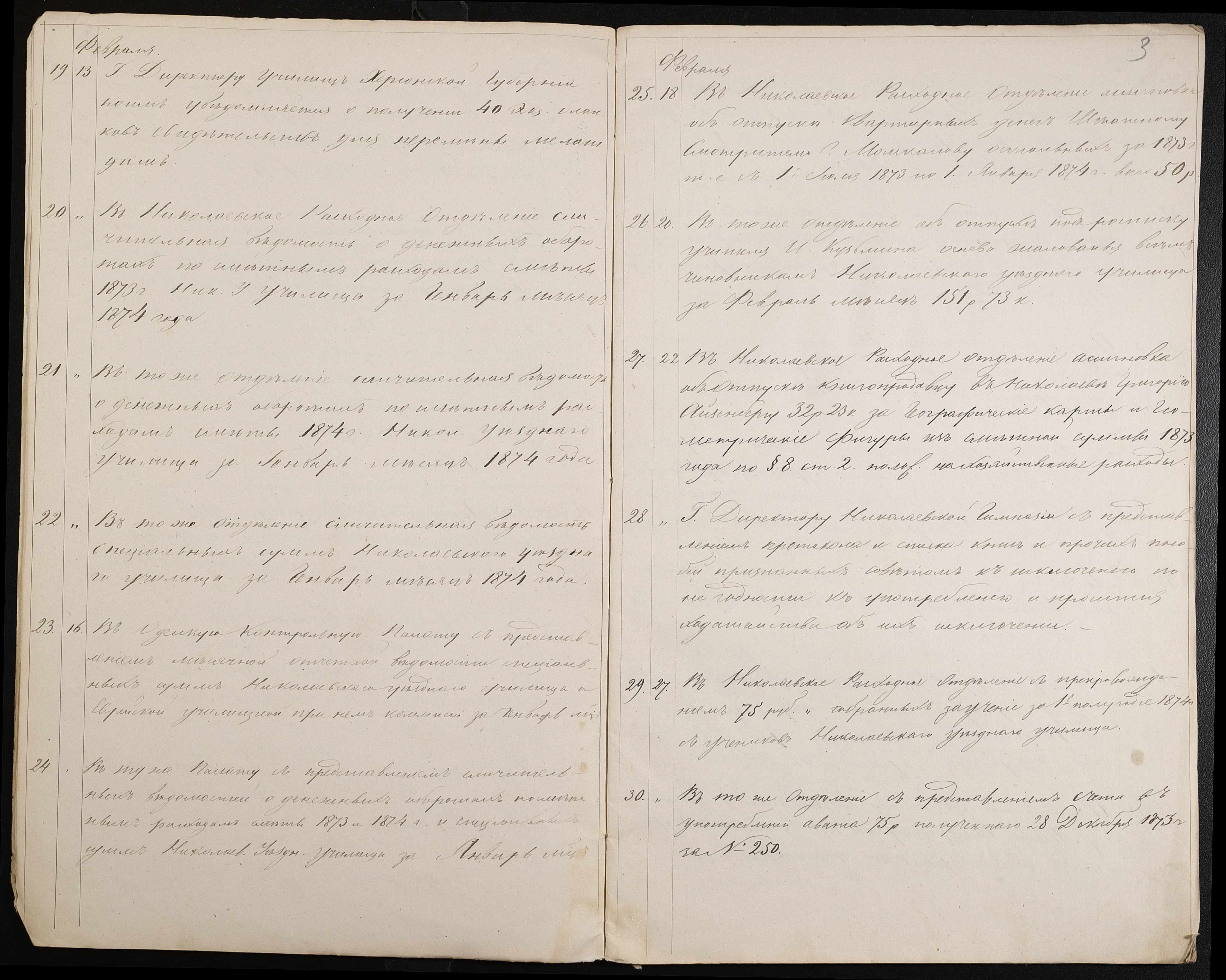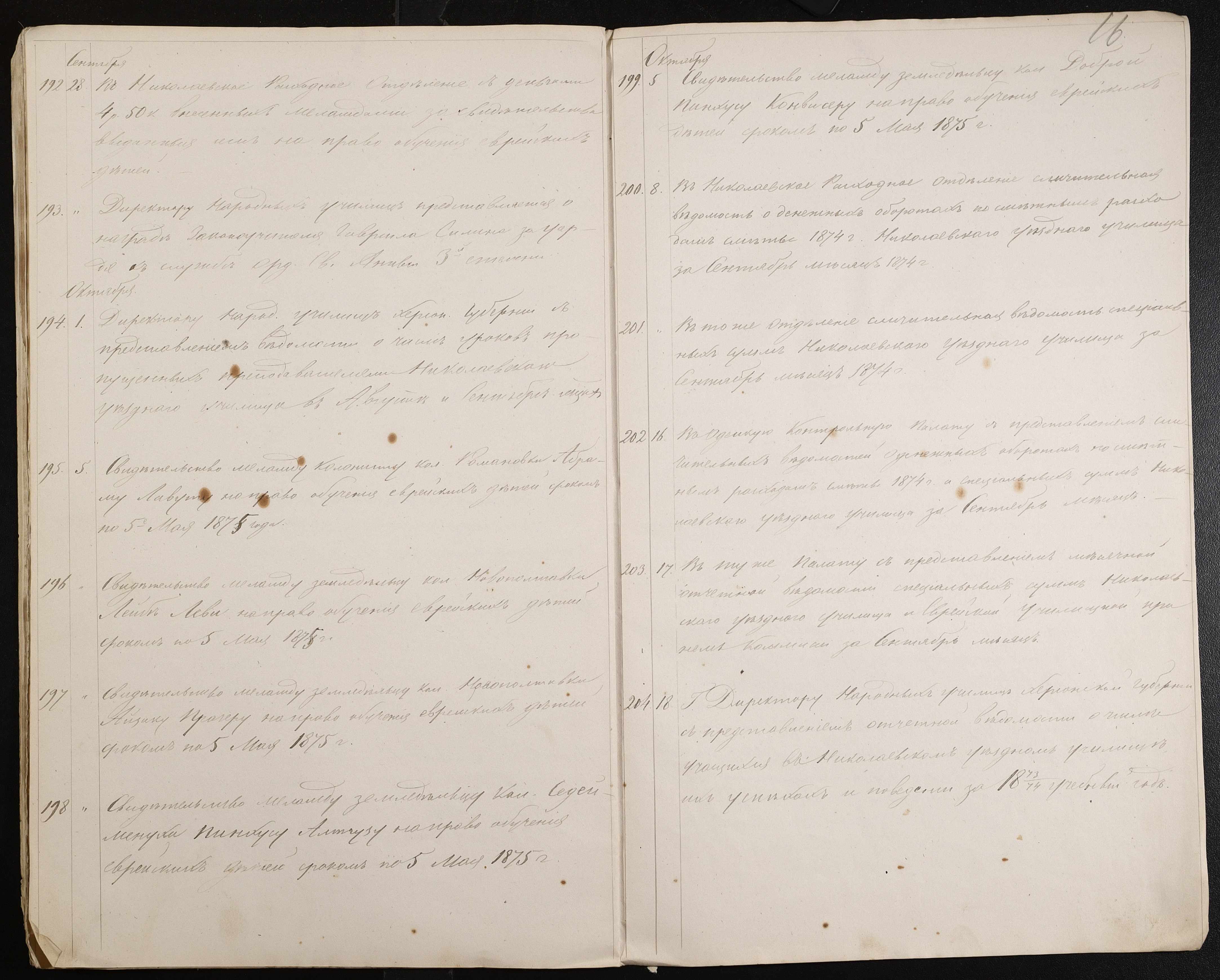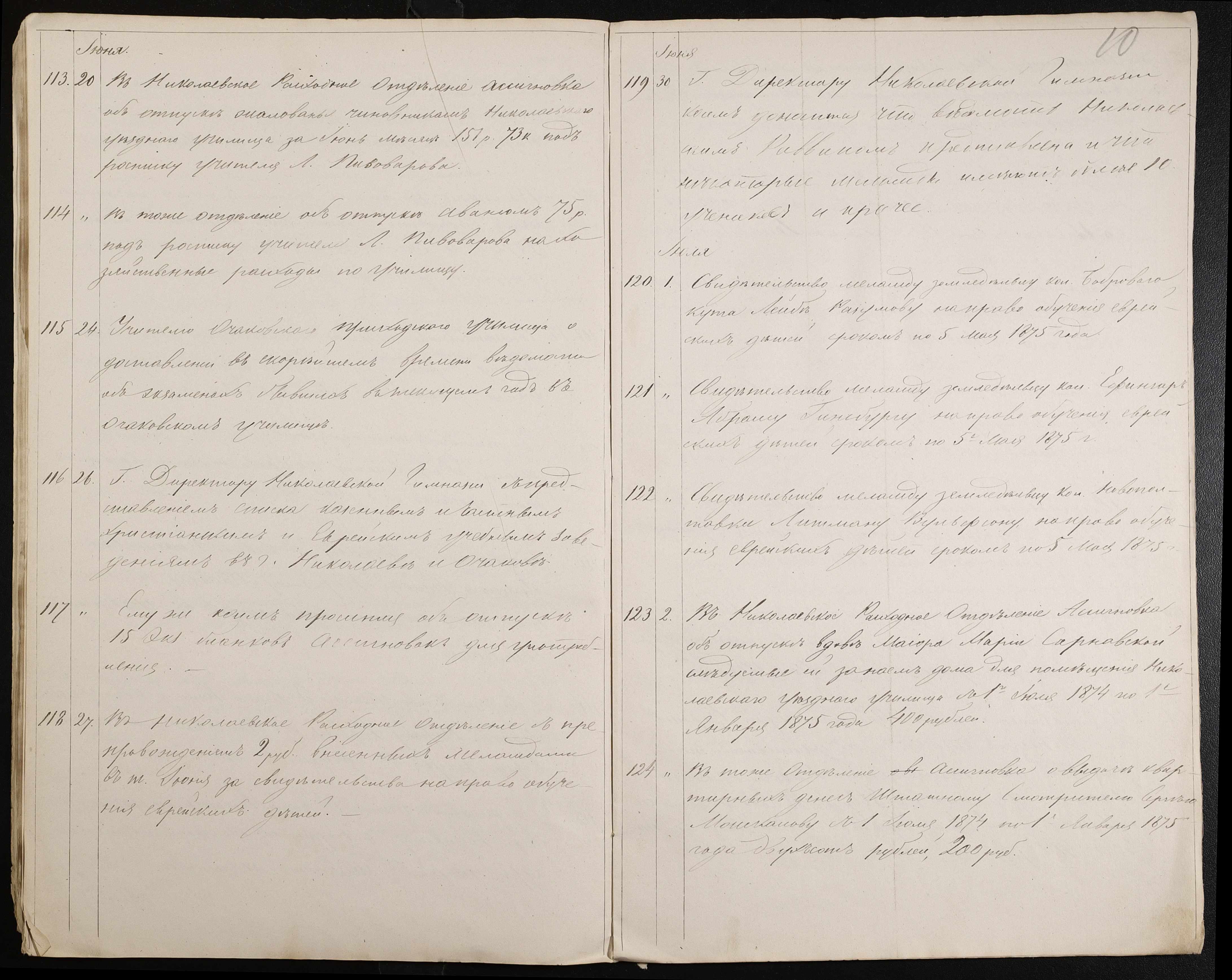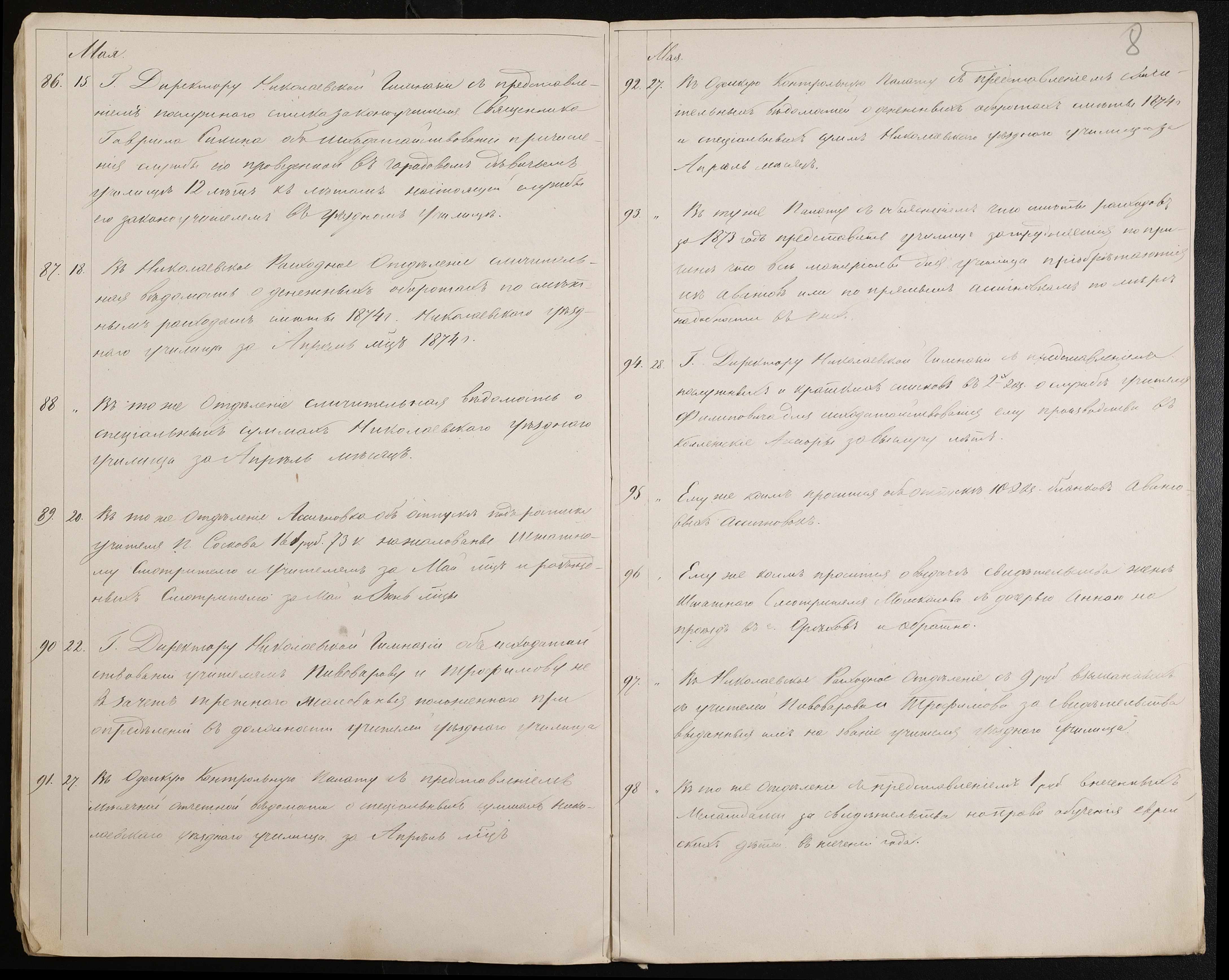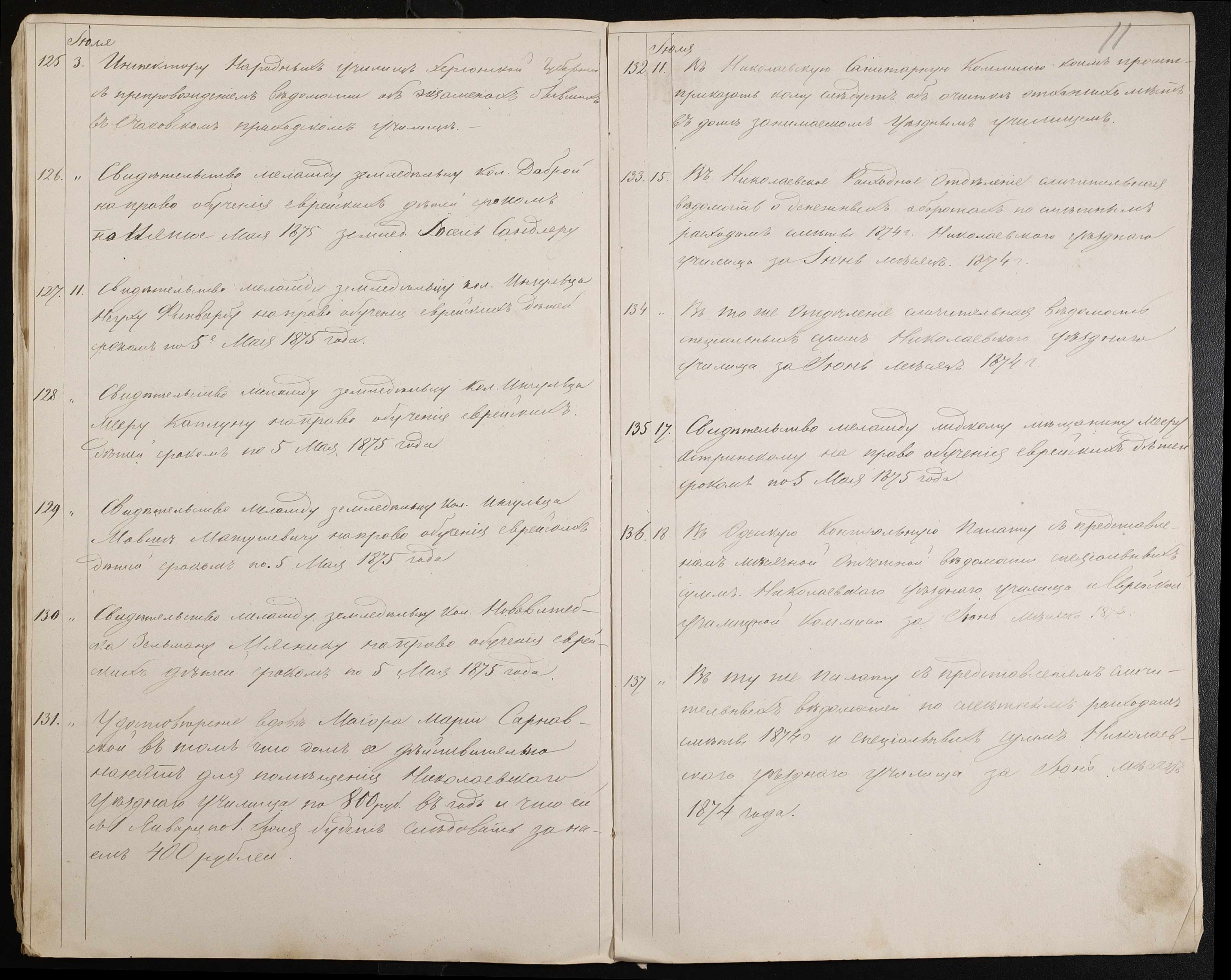 • • • • Справа № 60 “Журнал реєстрації вихідних документів за 1874 рік”