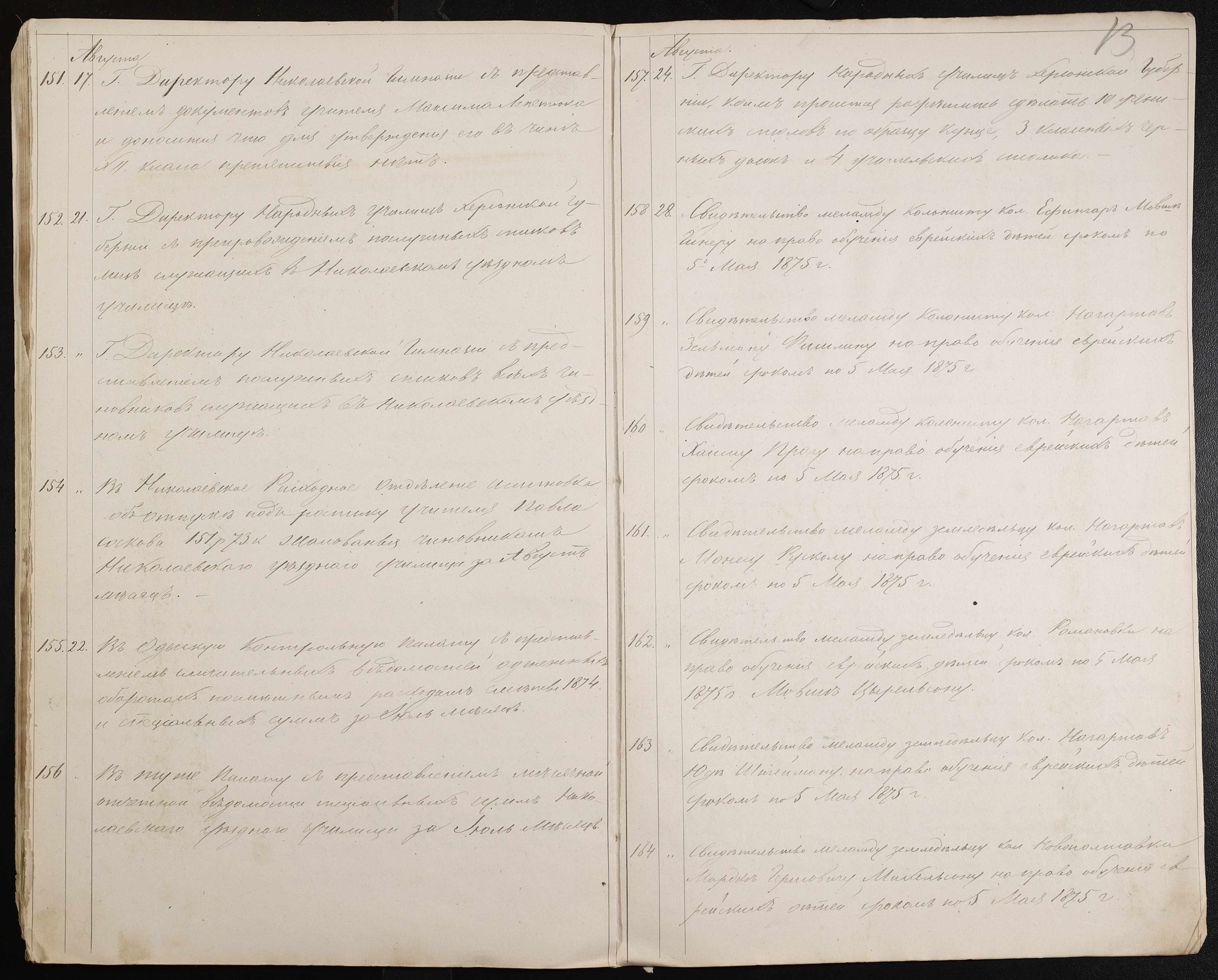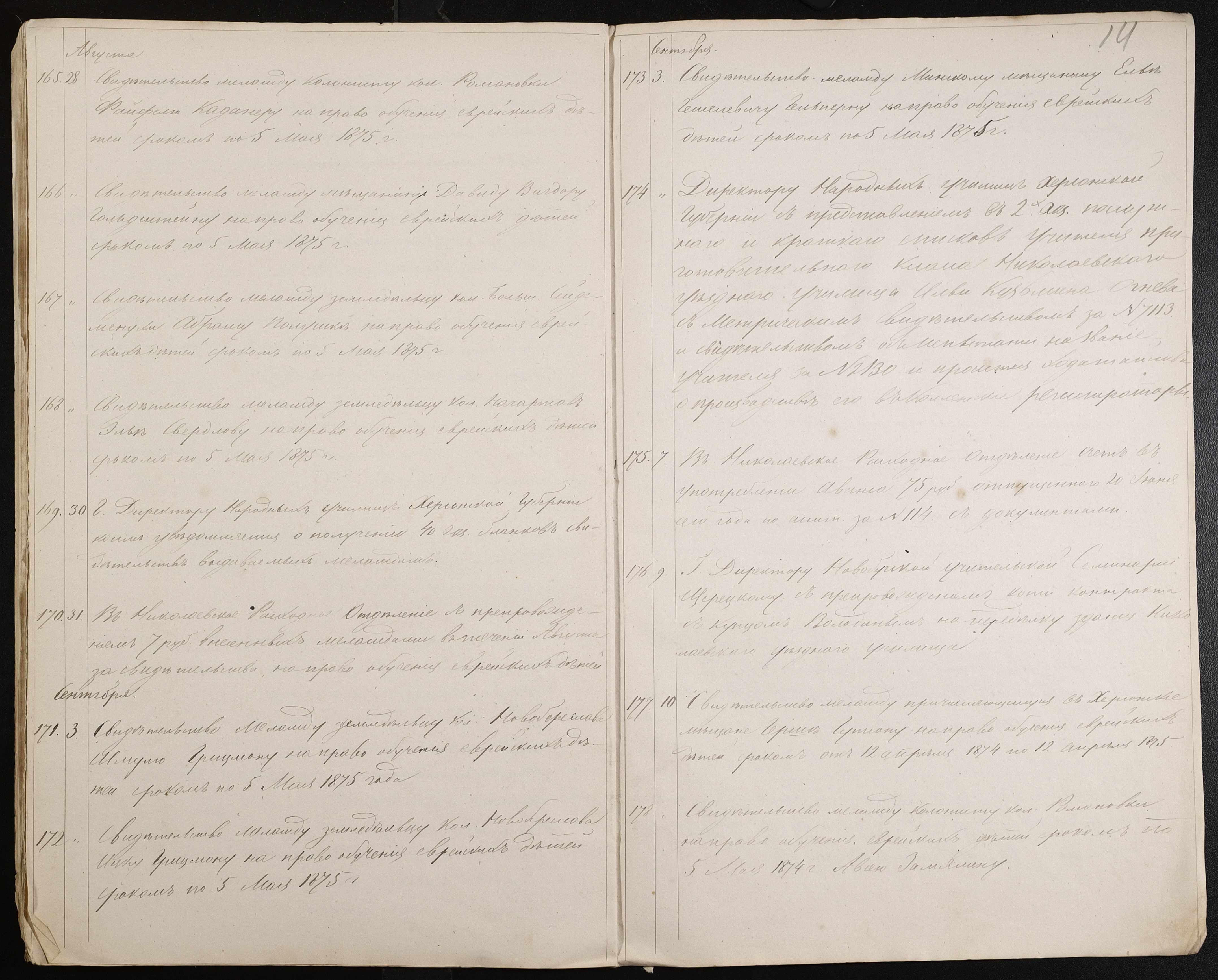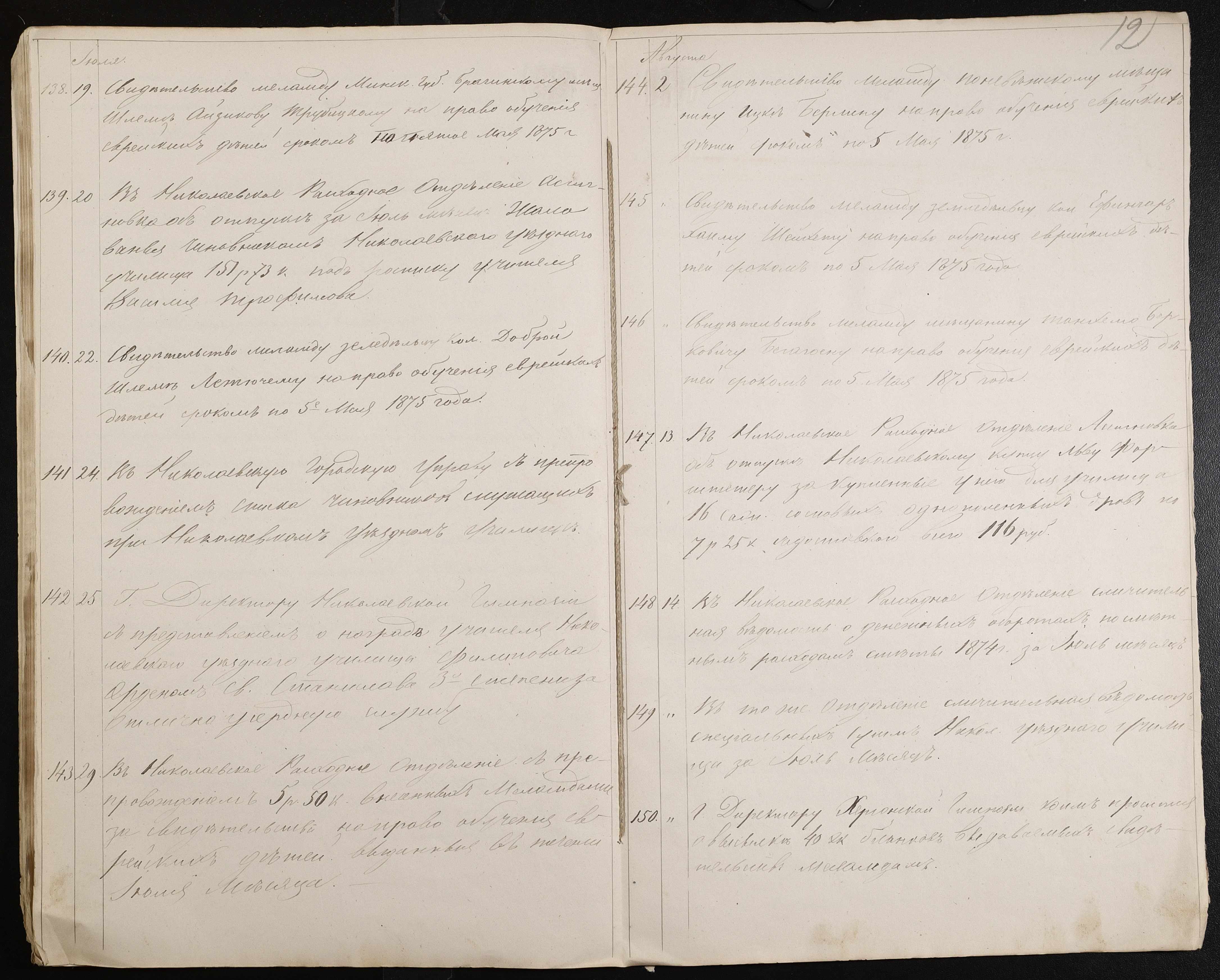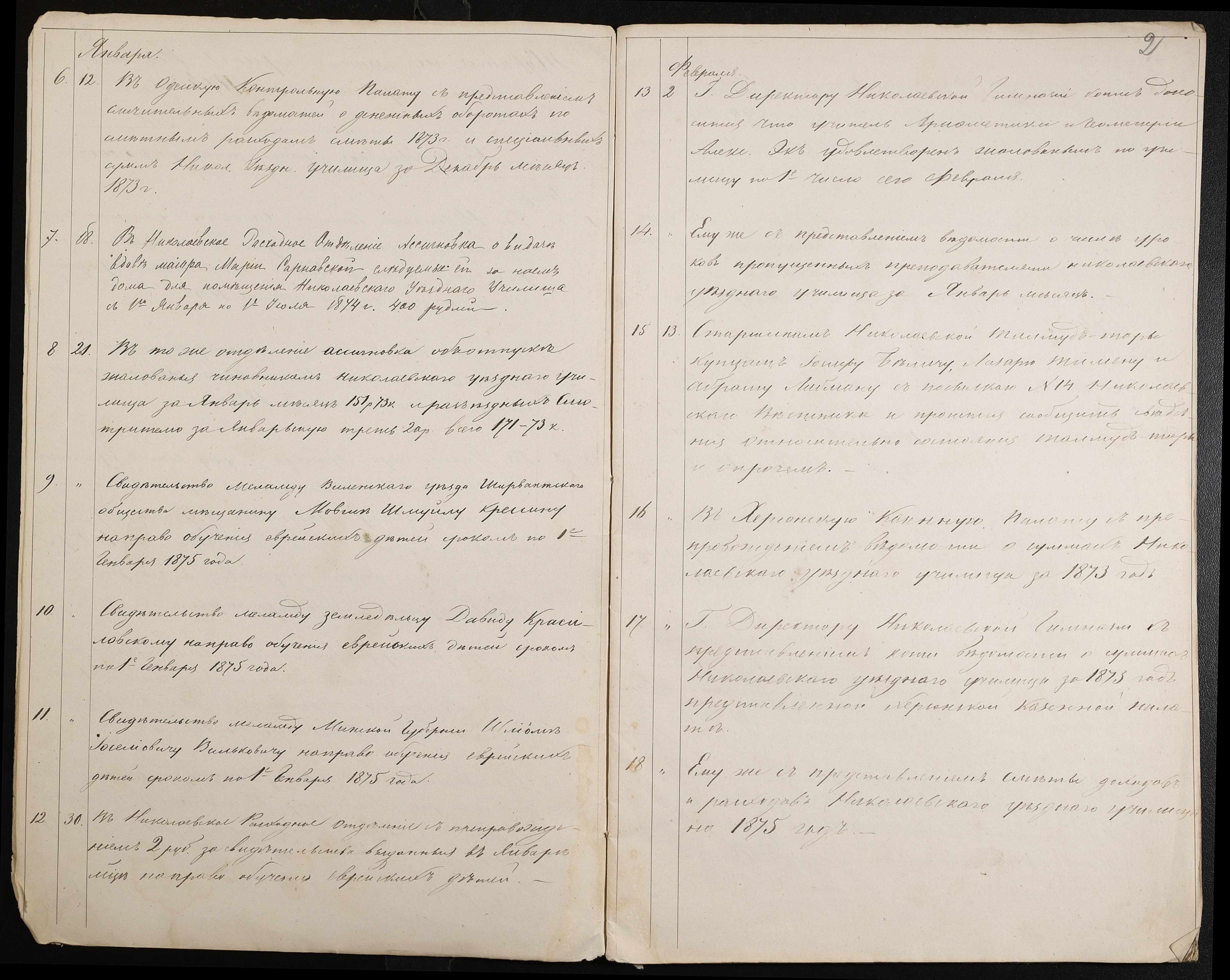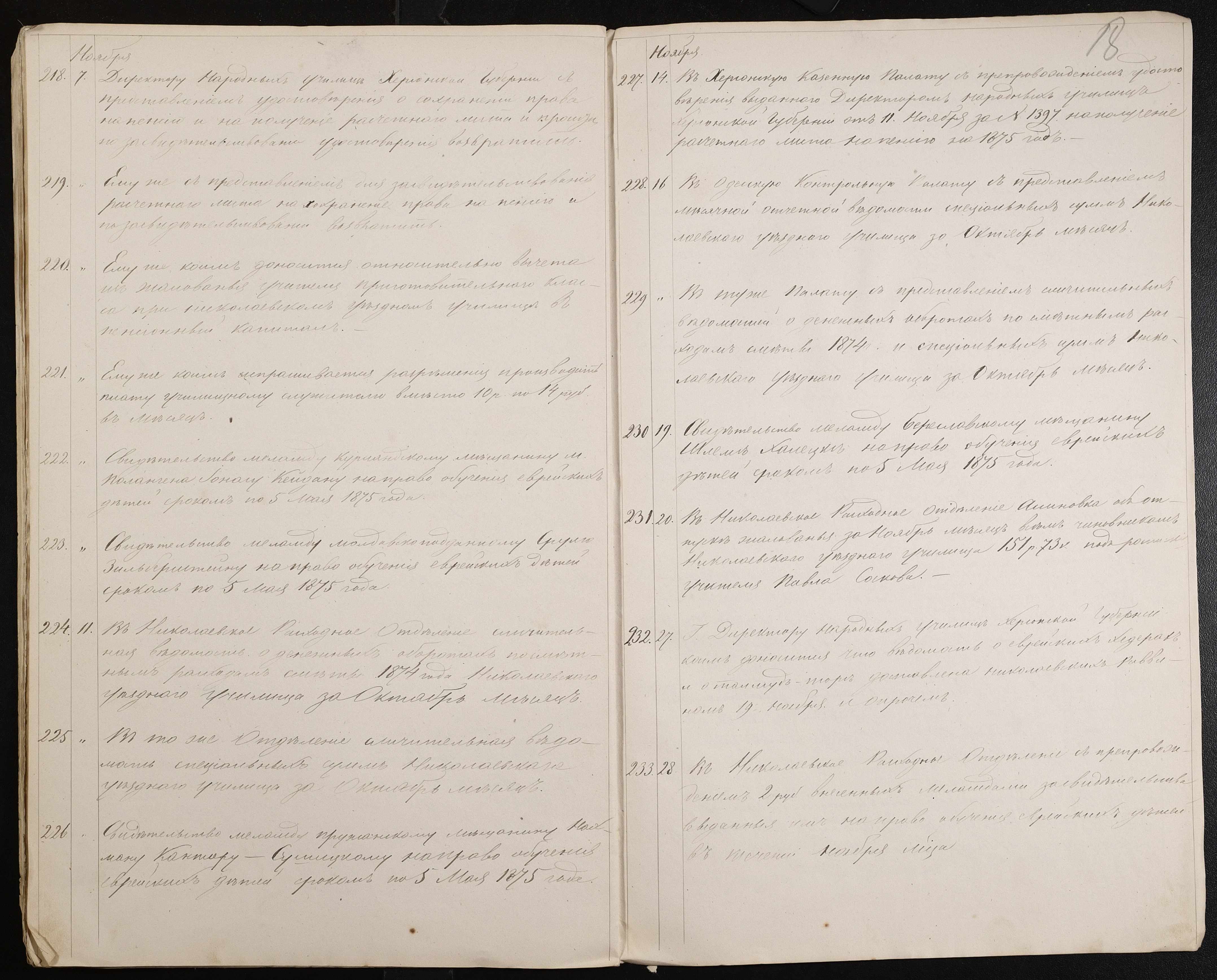 • • • • Справа № 60 “Журнал реєстрації вихідних документів за 1874 рік”