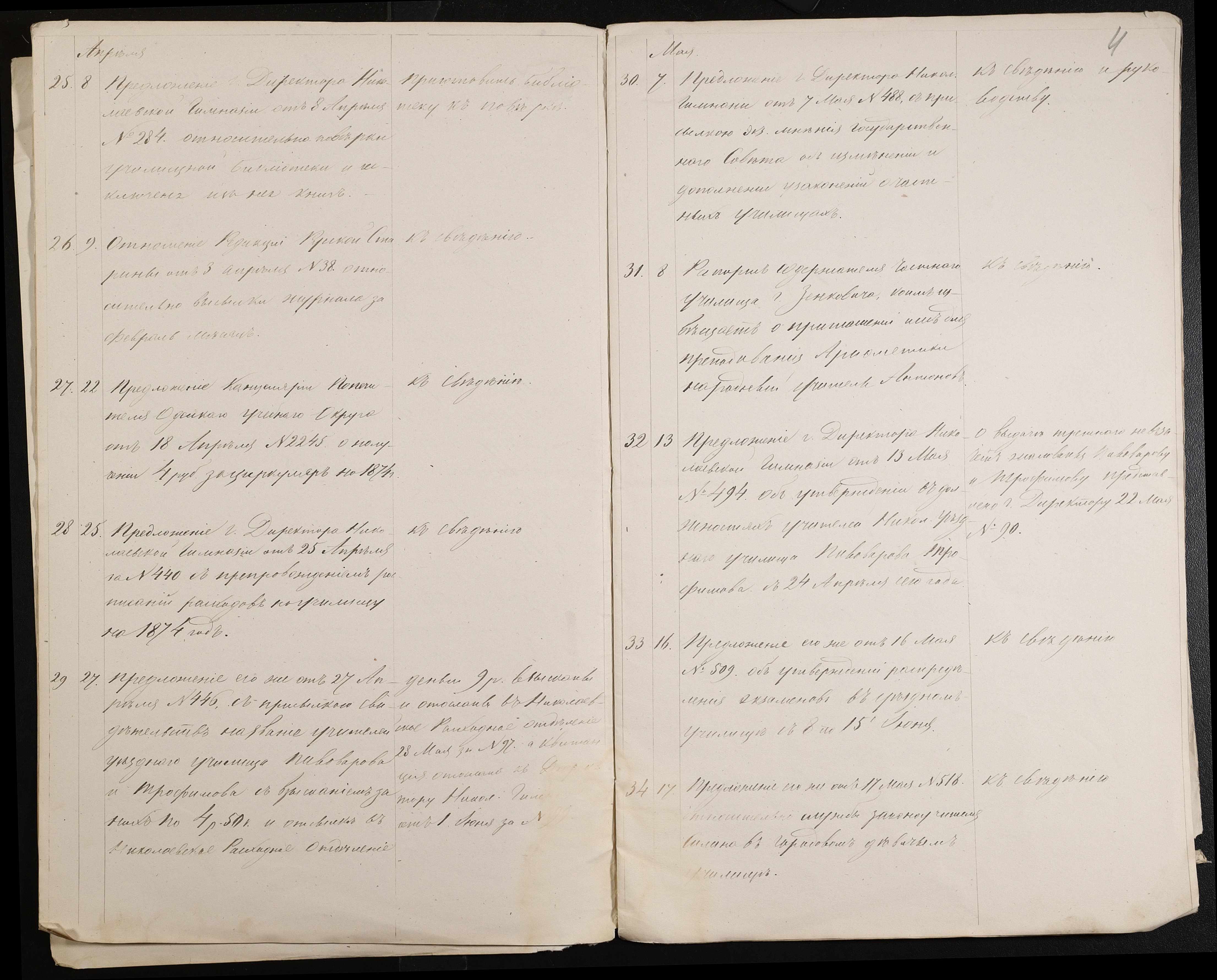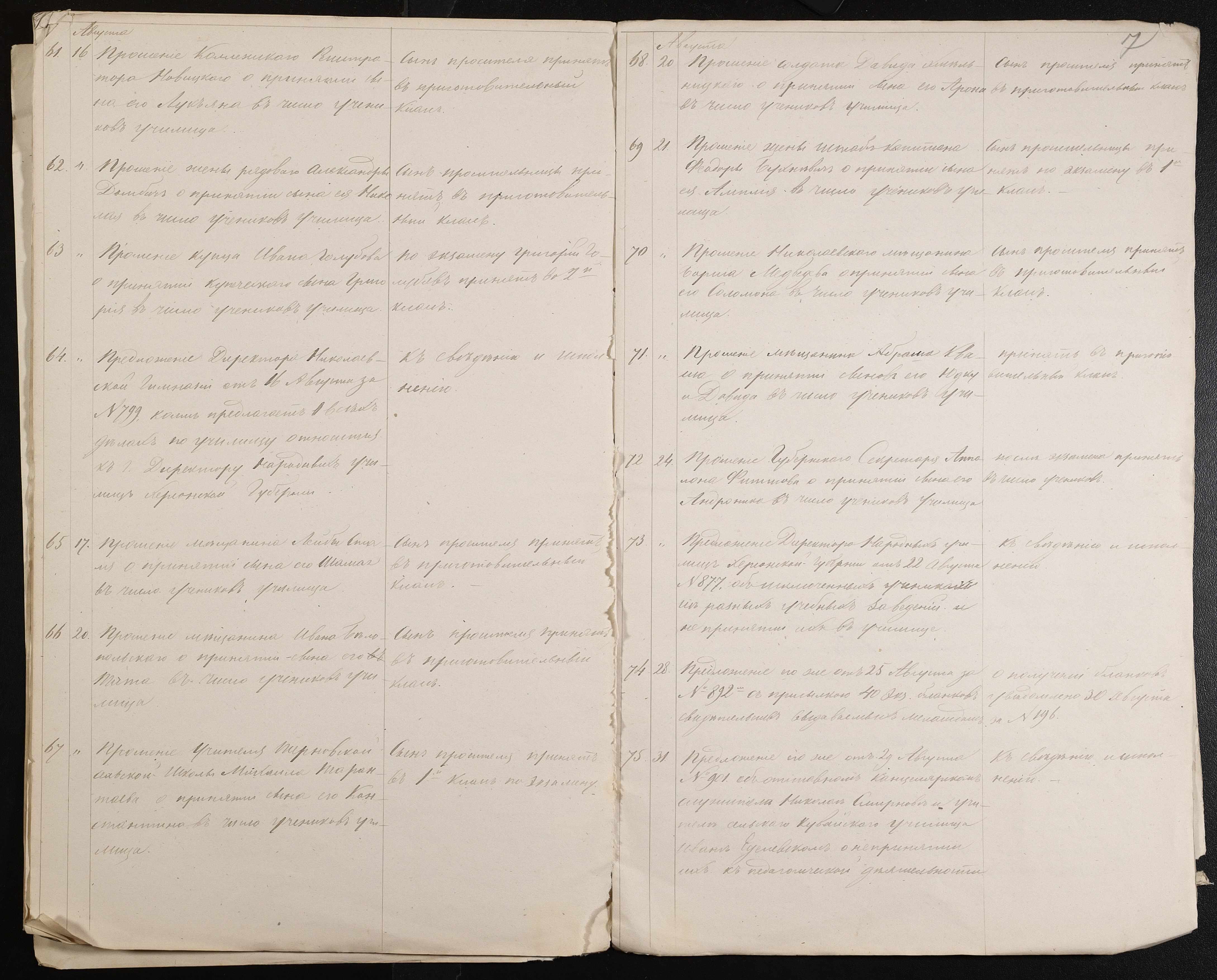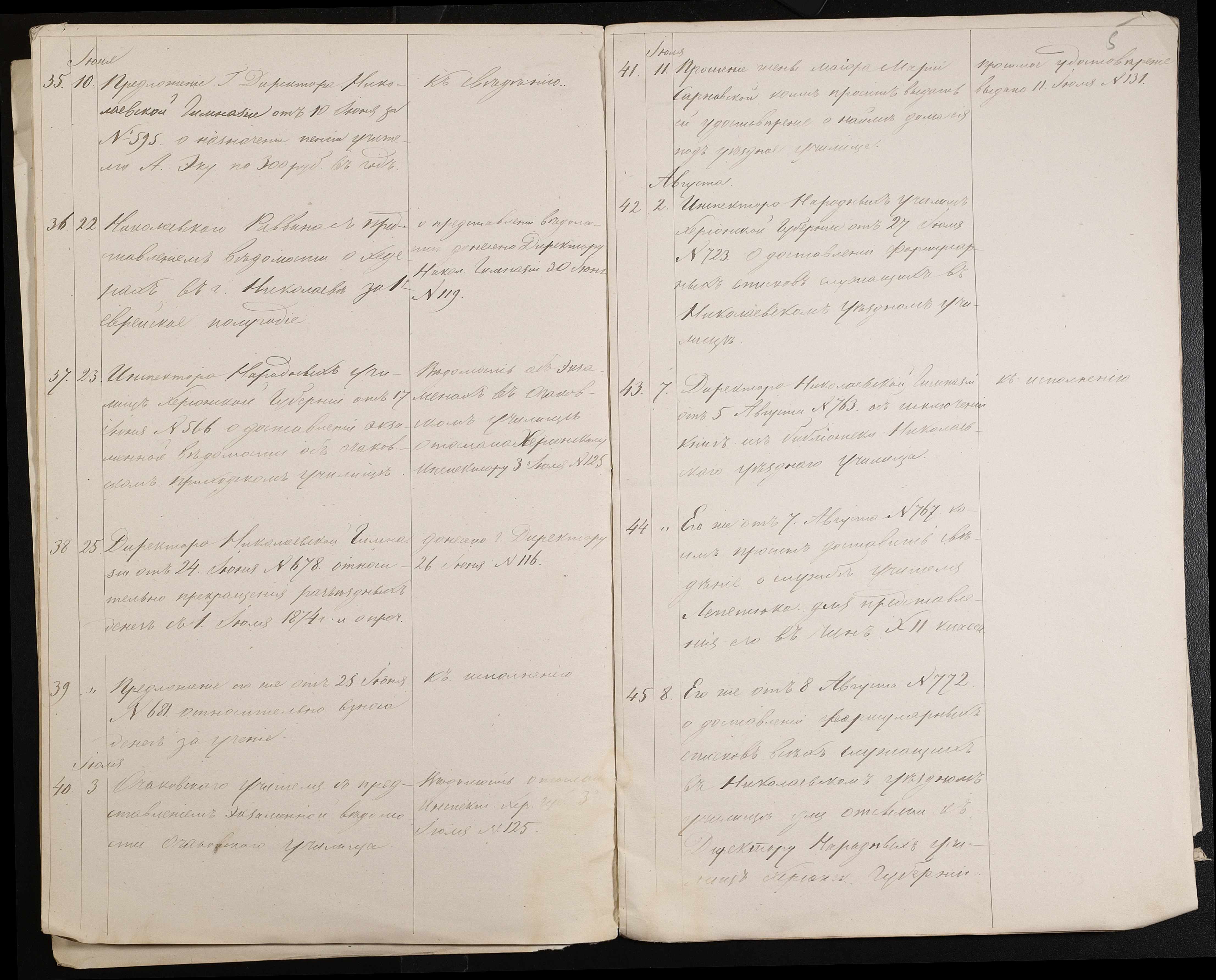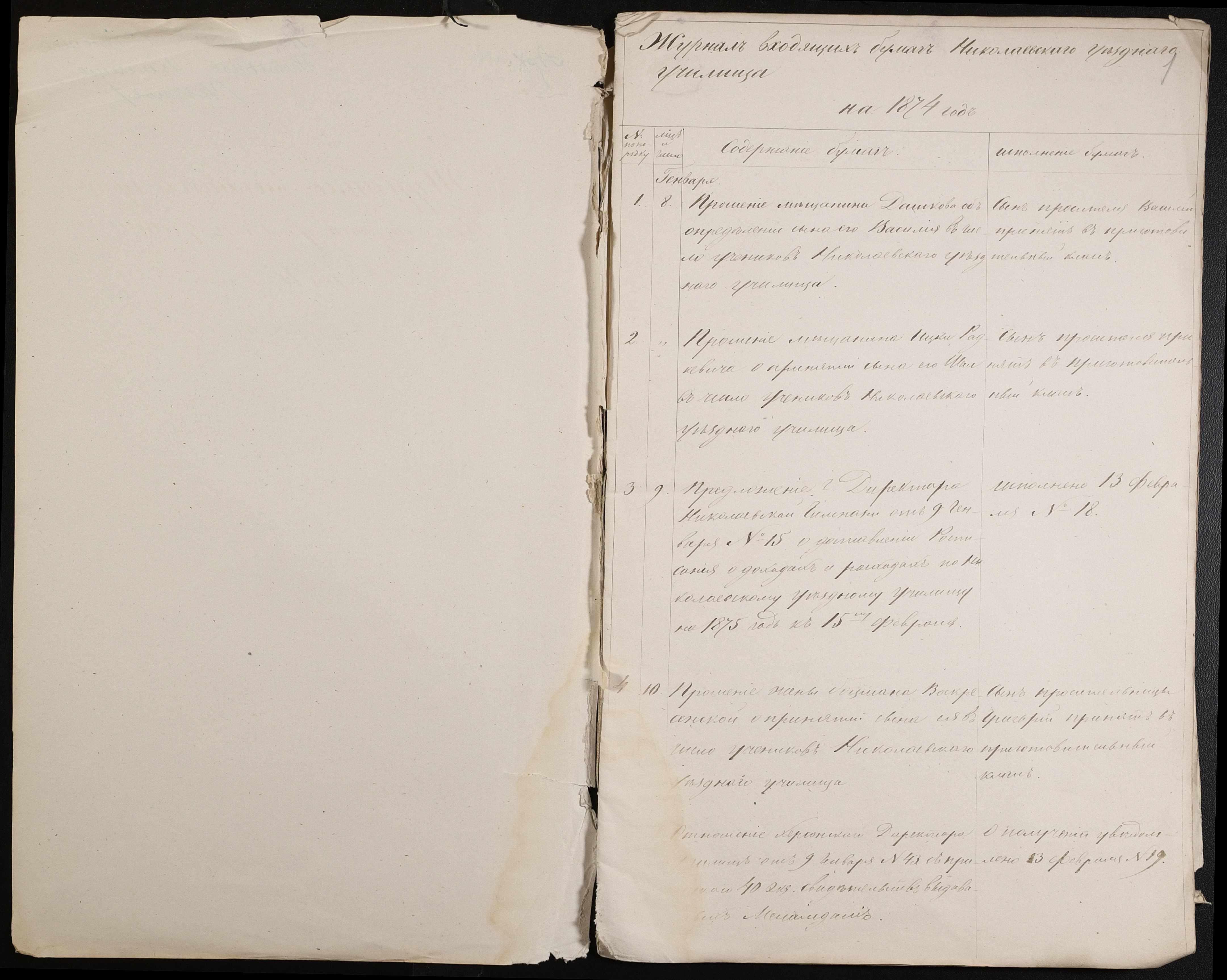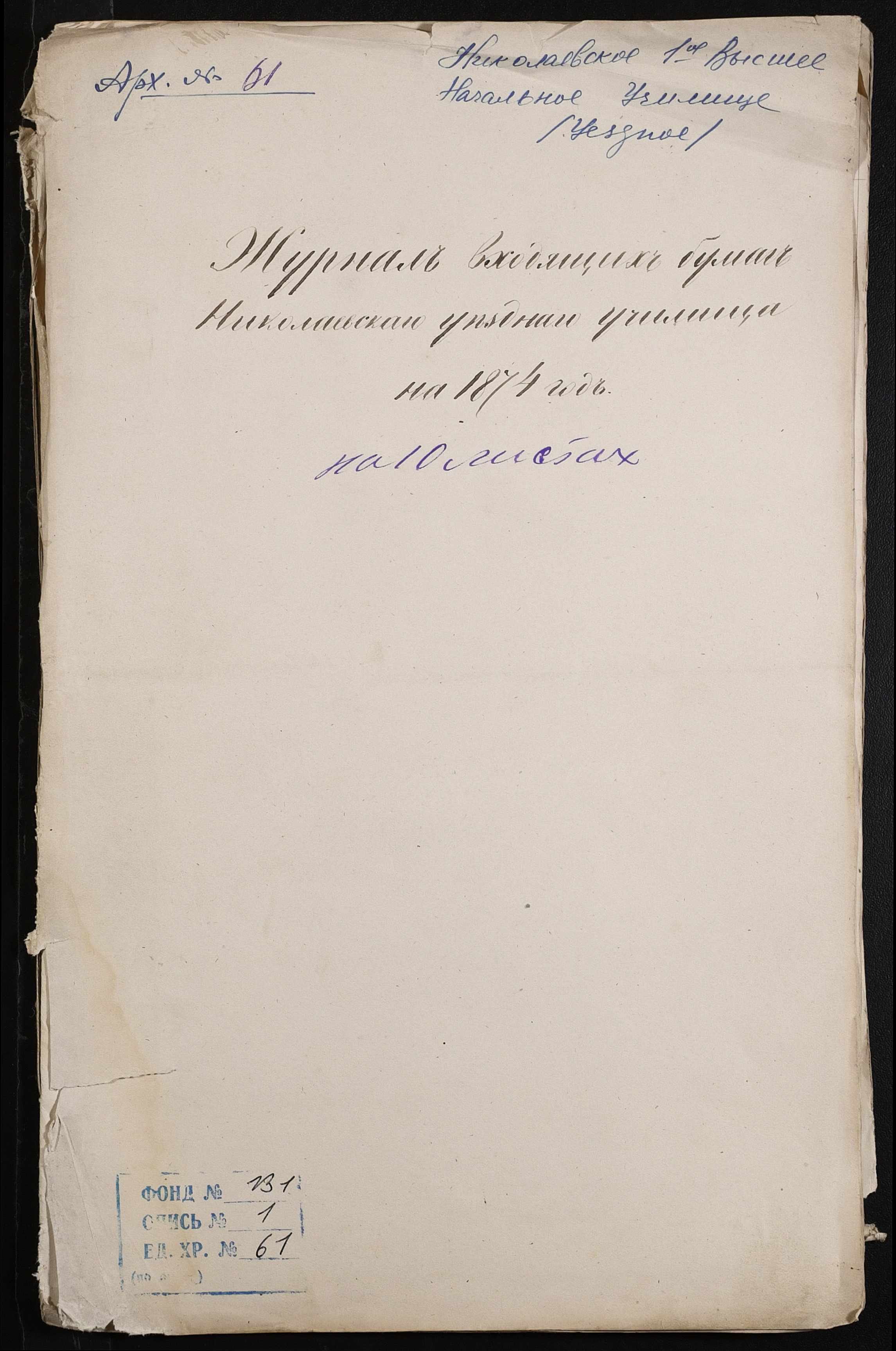 • • • • Справа № 61 “Журнал реєстрації вхідних документів за 1874 рік”
