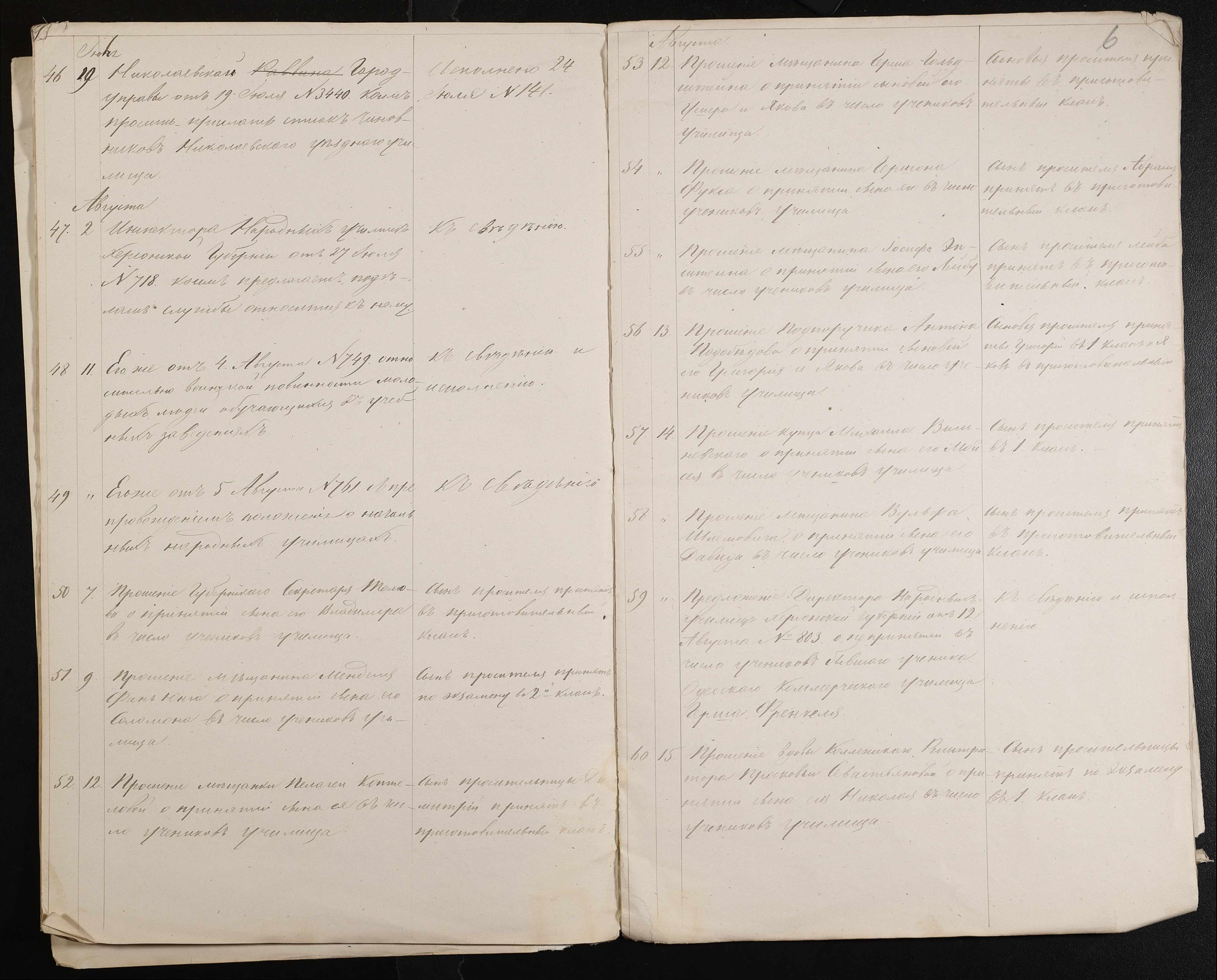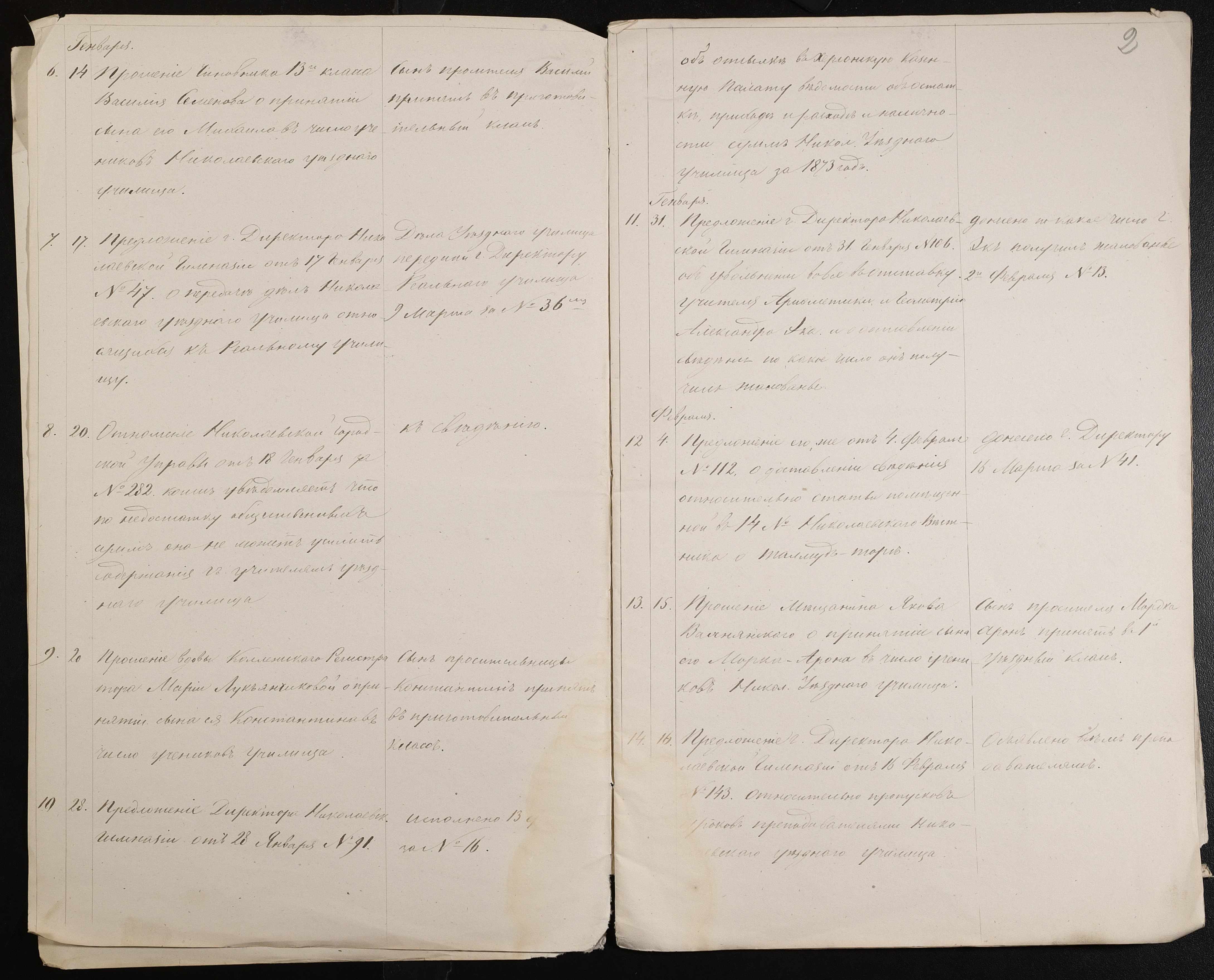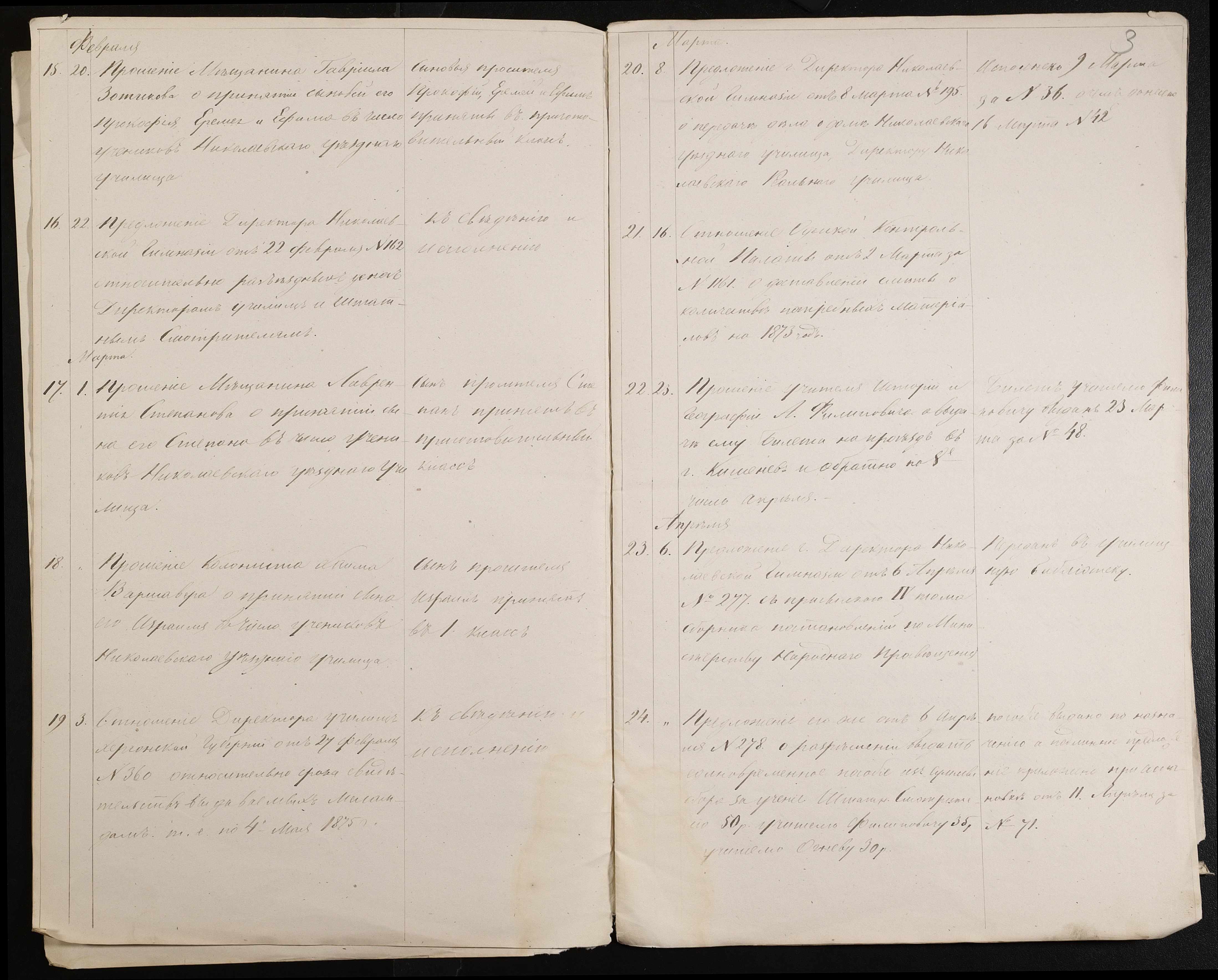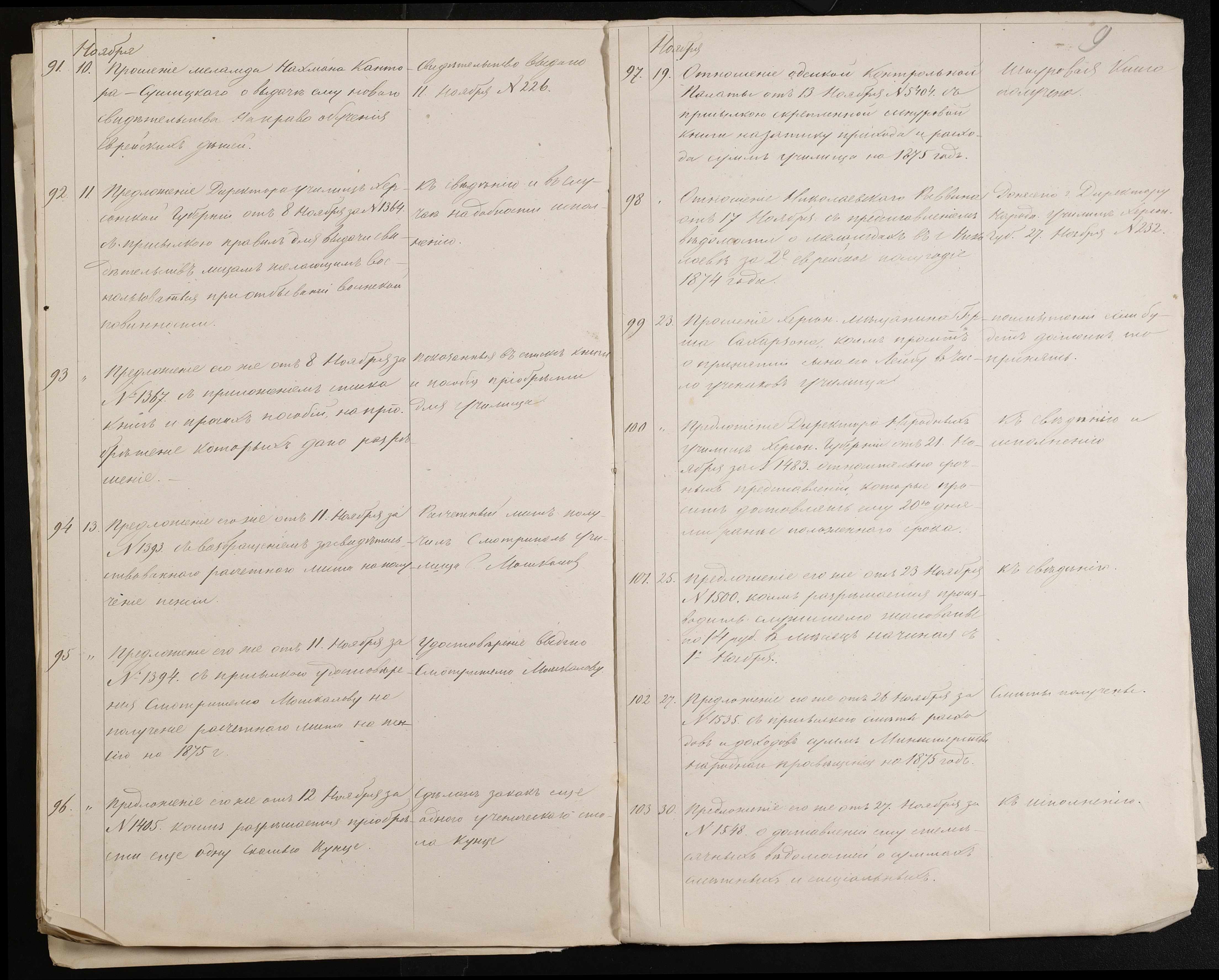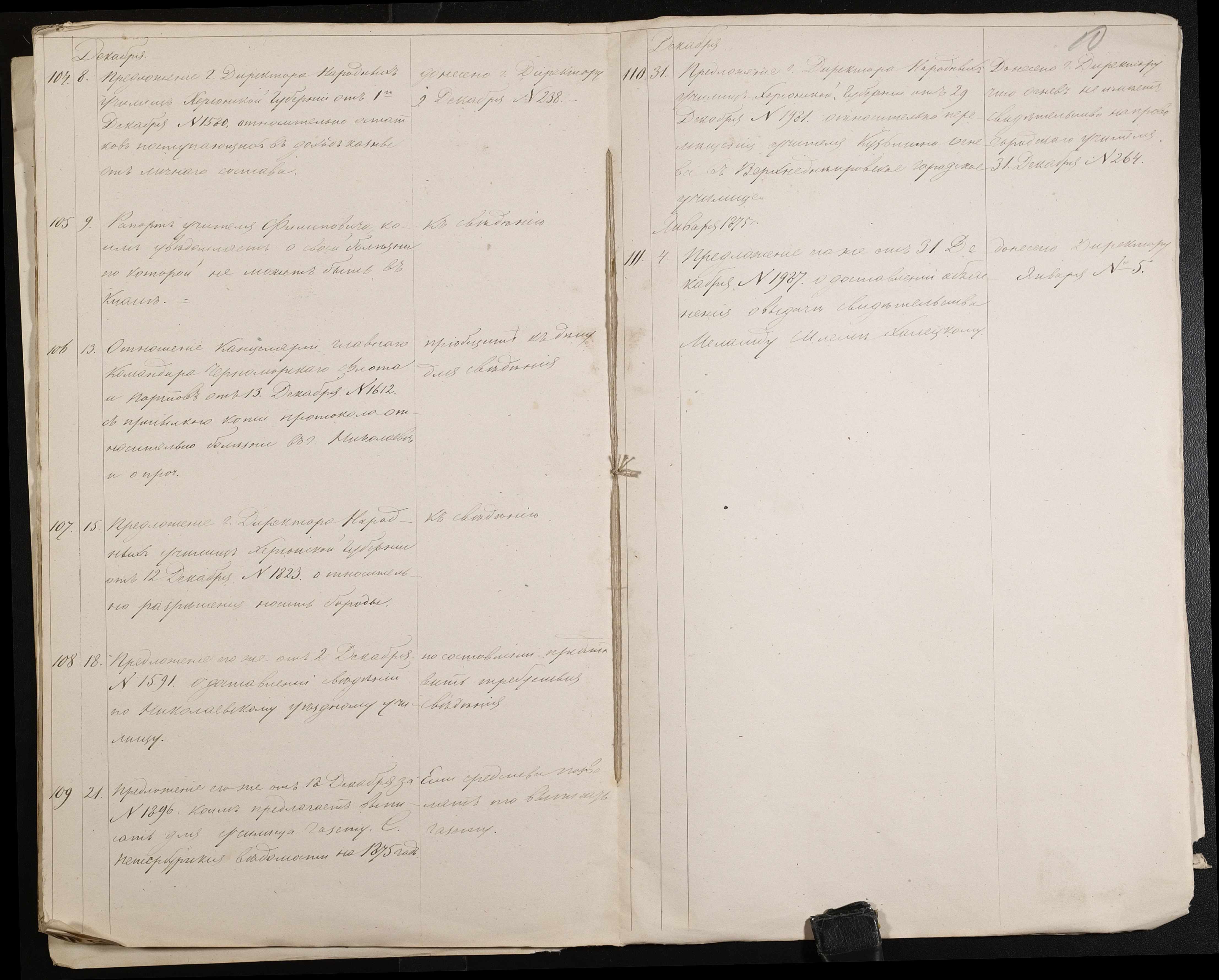 • • • • Справа № 61 “Журнал реєстрації вхідних документів за 1874 рік”