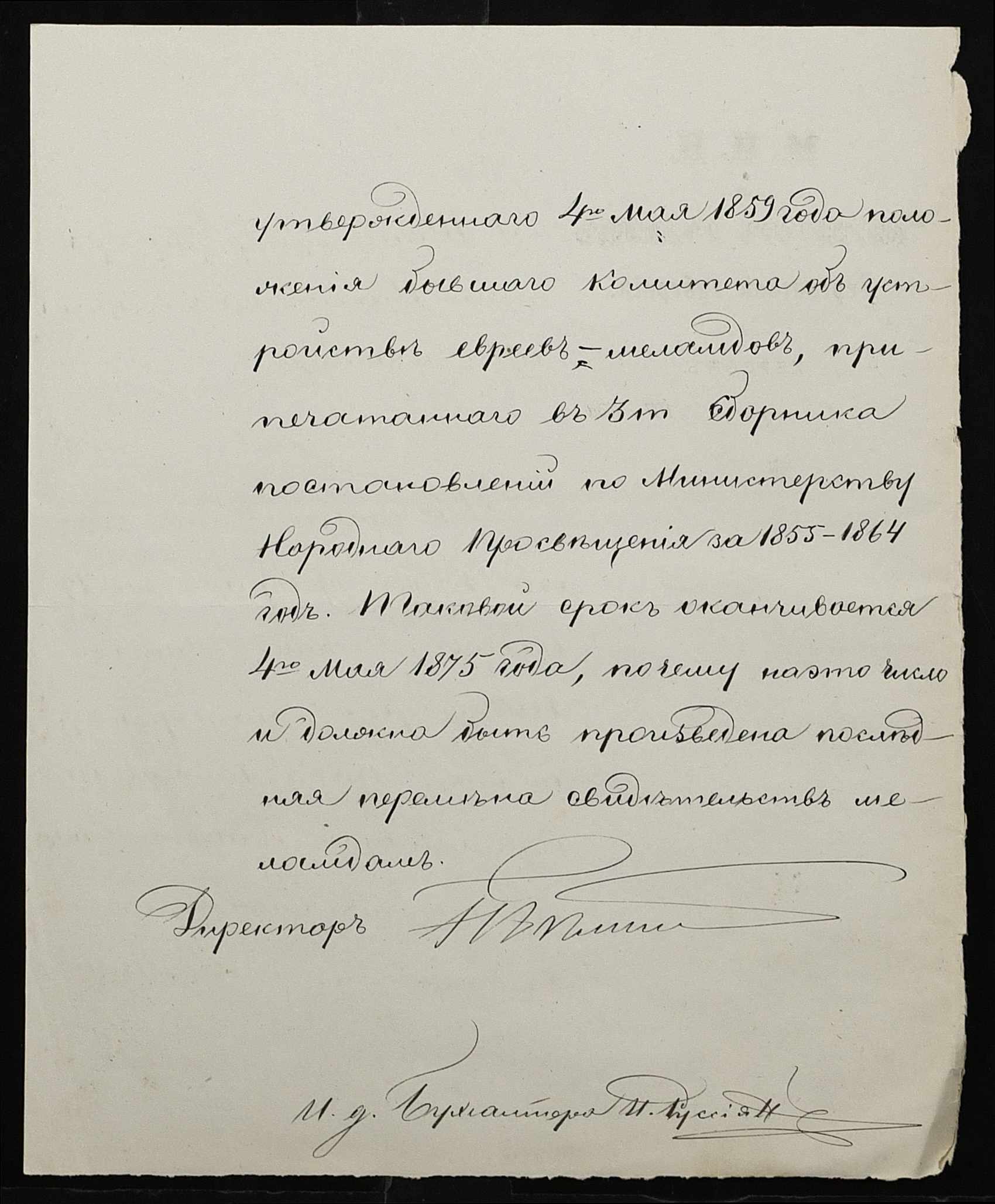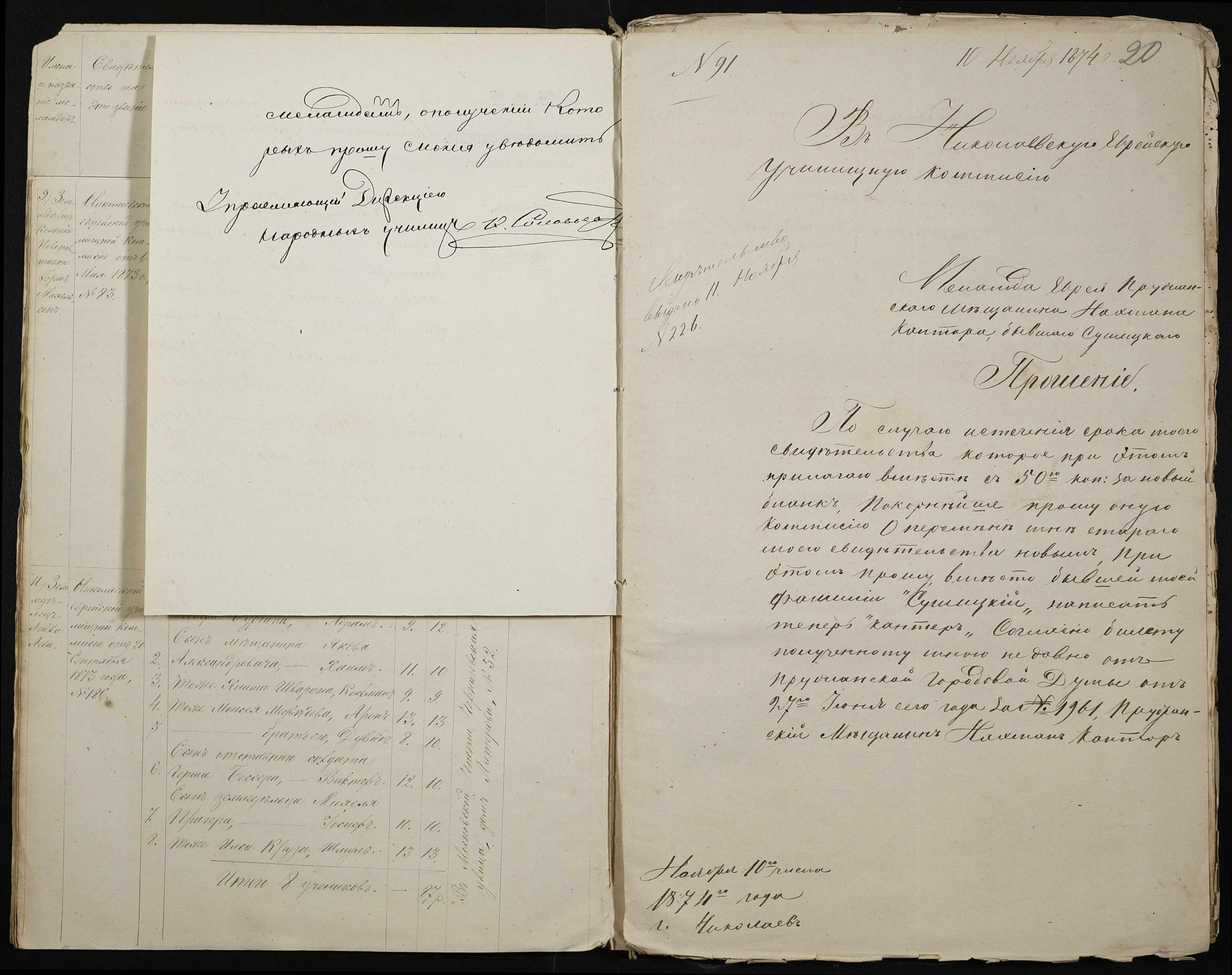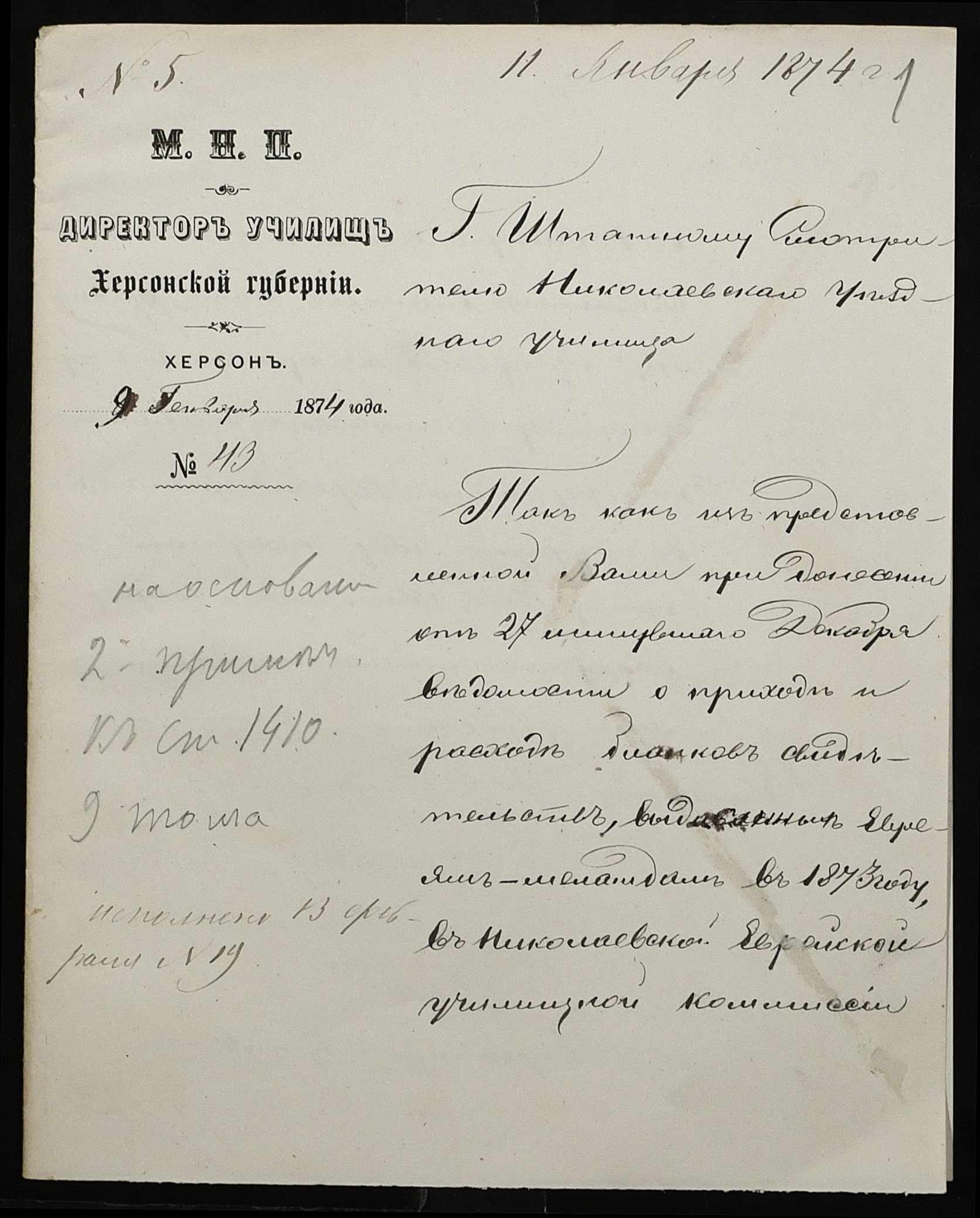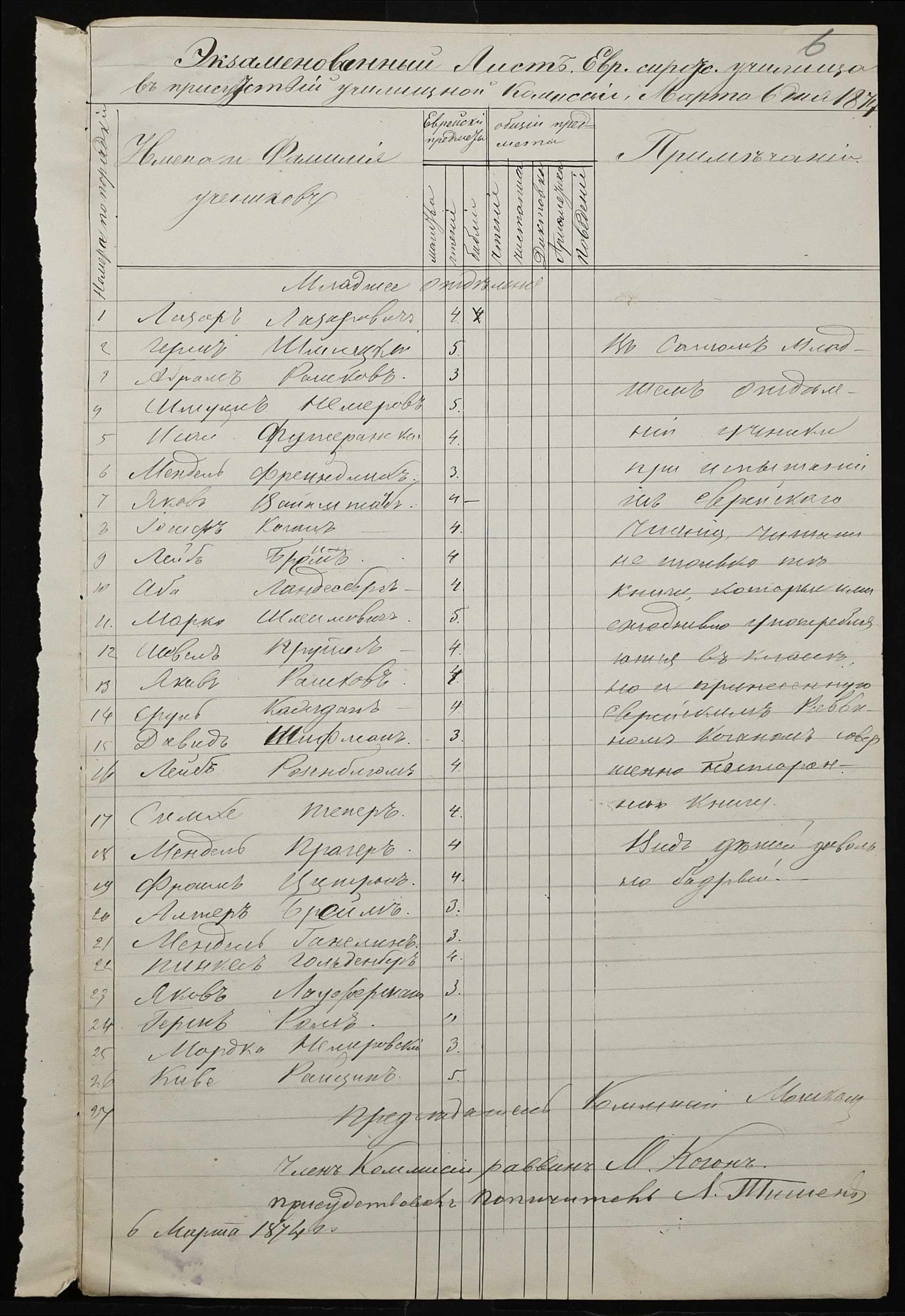 • • • • Справа № 71 “Відомості про наявність в Миколаєві приватних єврейських училищ і вчителів, екзаменаційний лист єврейського сиротинського училища, свідоцтва вчителів про дозвіл на викладання єврейської віри”