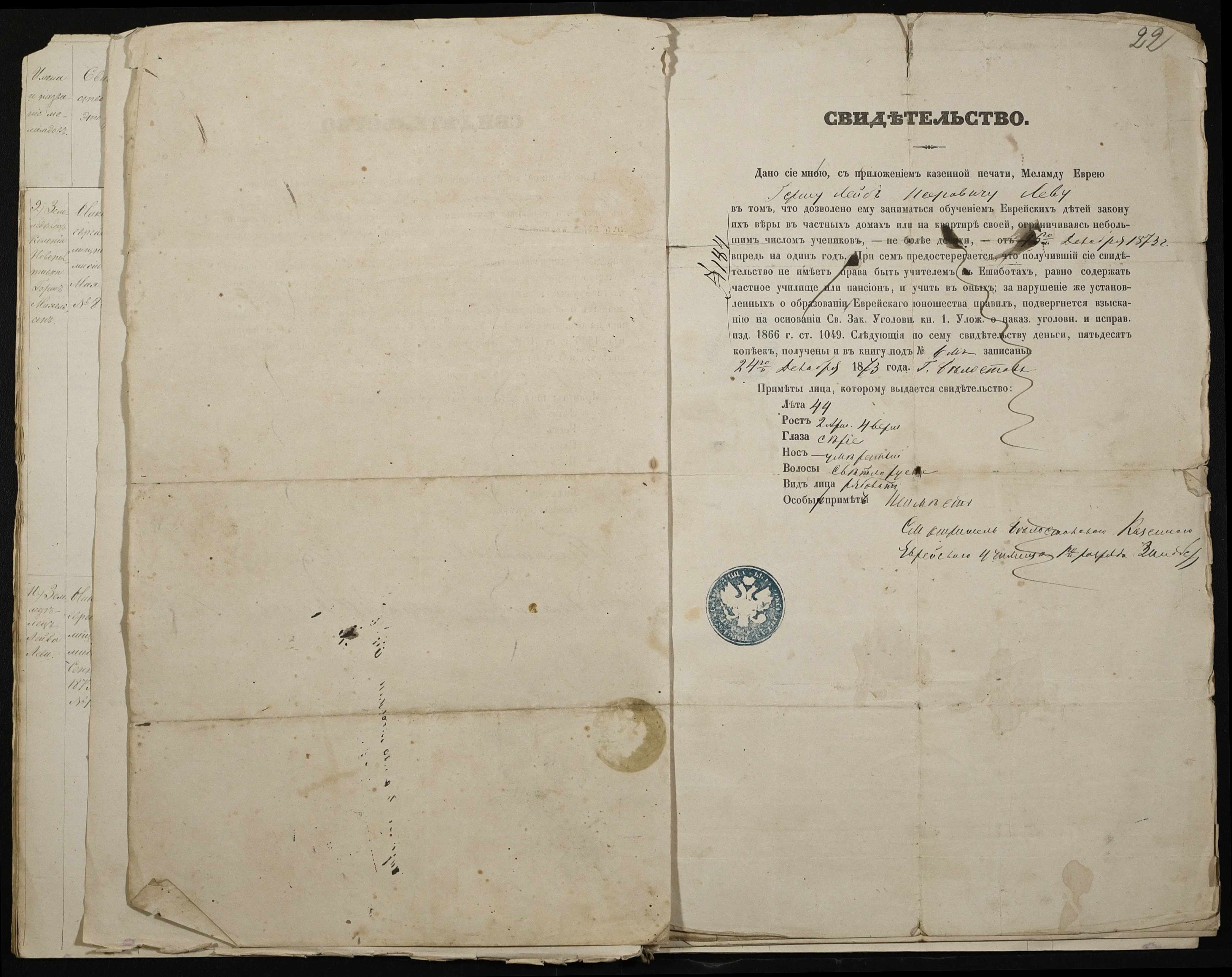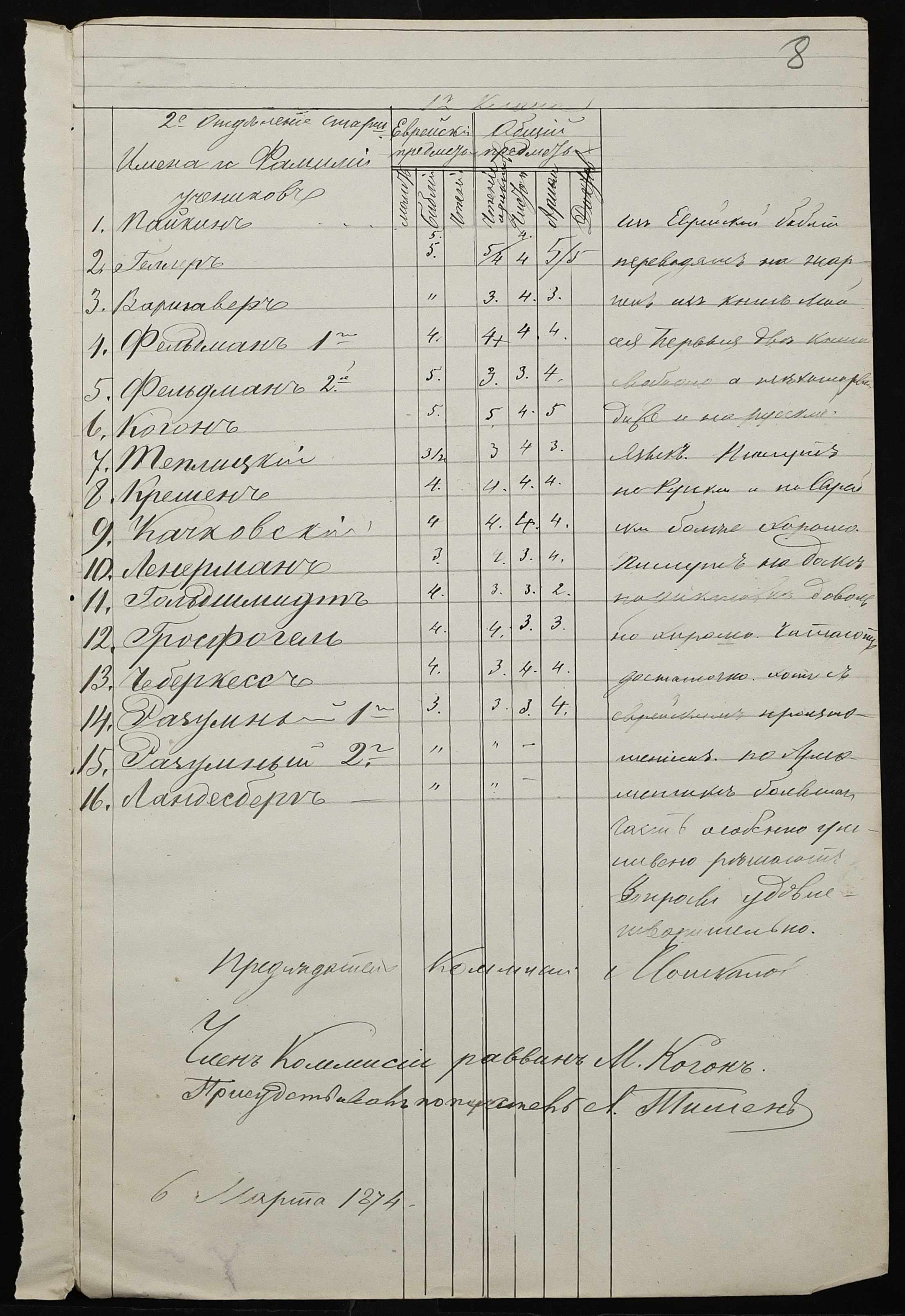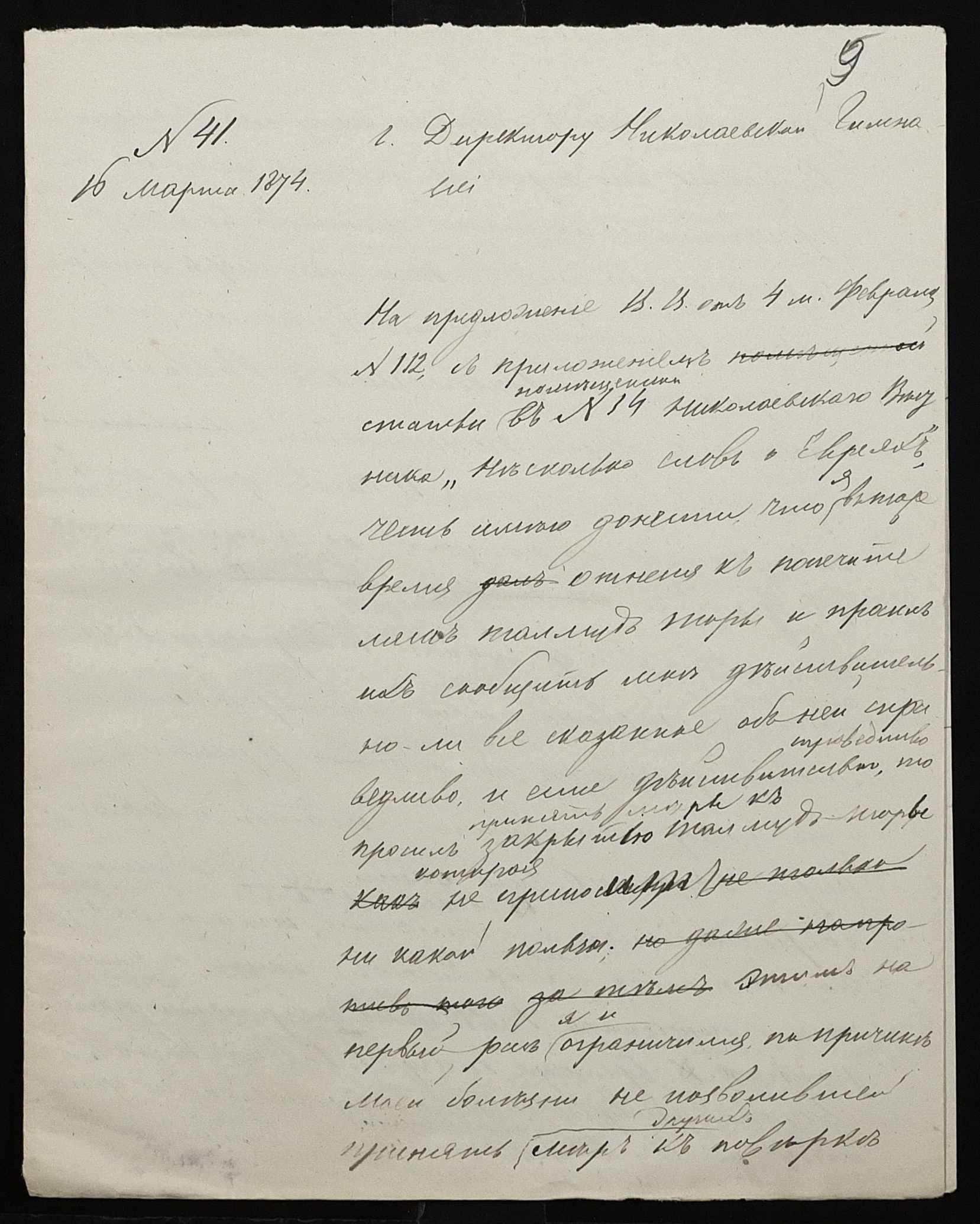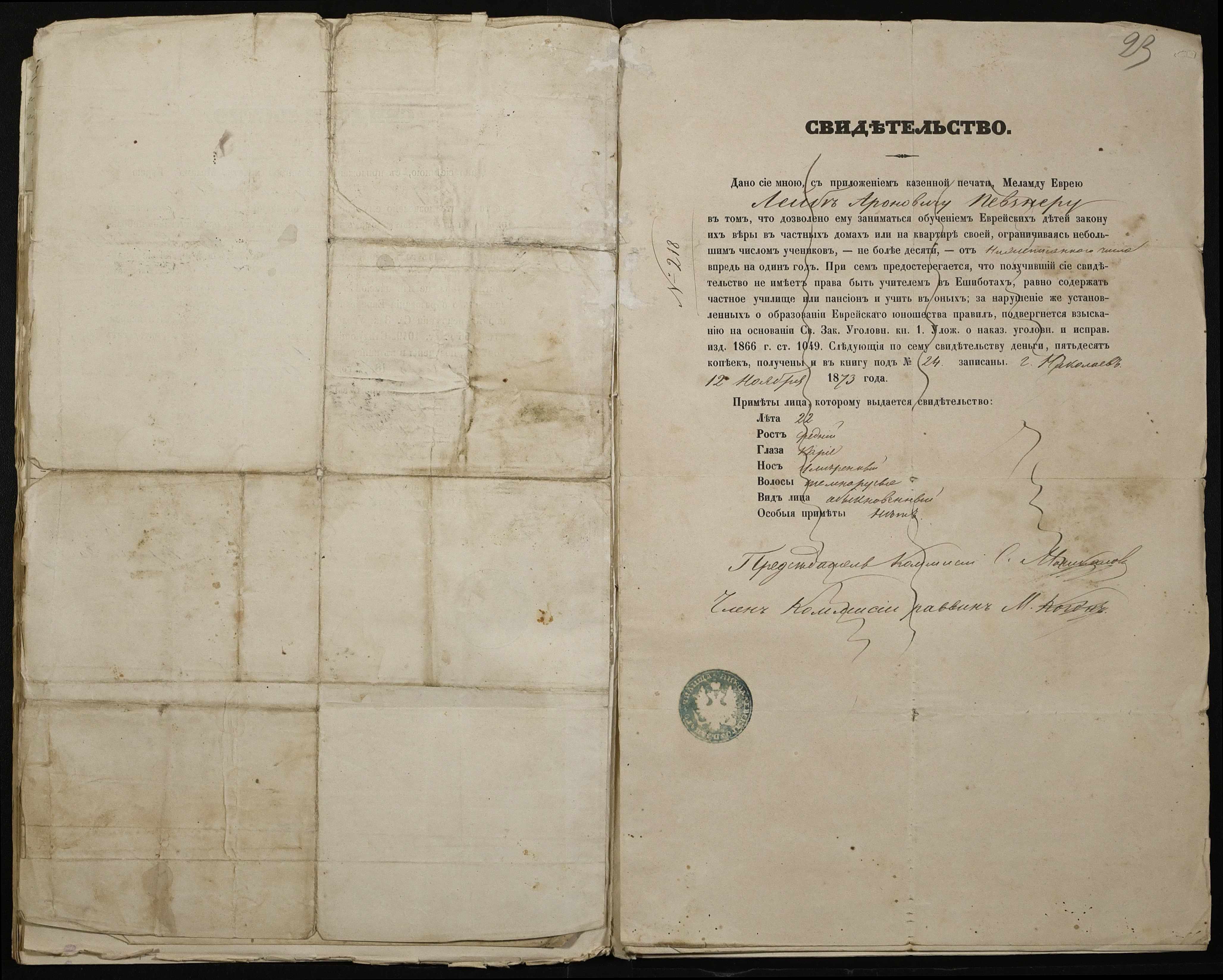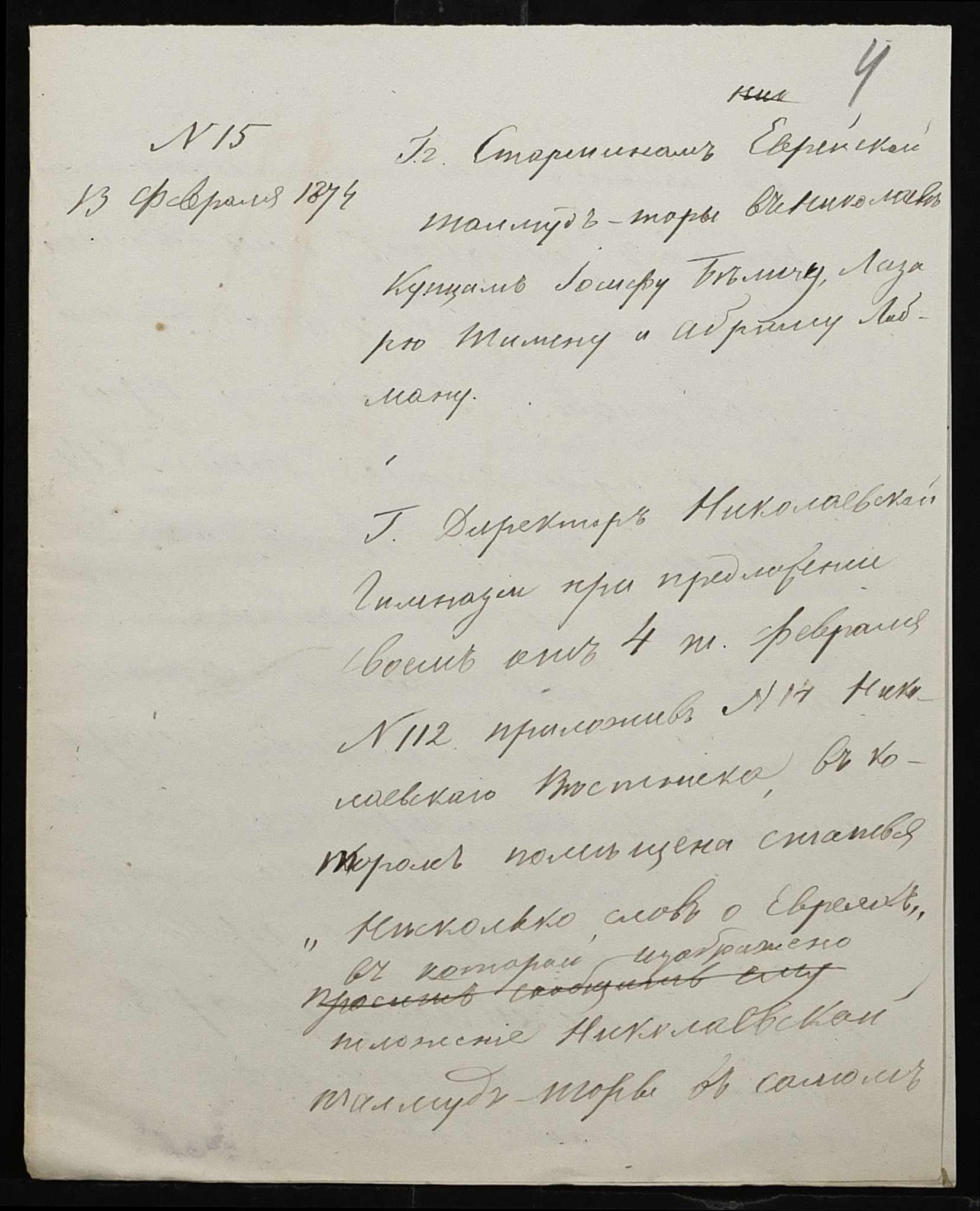 • • • • Справа № 71 “Відомості про наявність в Миколаєві приватних єврейських училищ і вчителів, екзаменаційний лист єврейського сиротинського училища, свідоцтва вчителів про дозвіл на викладання єврейської віри”