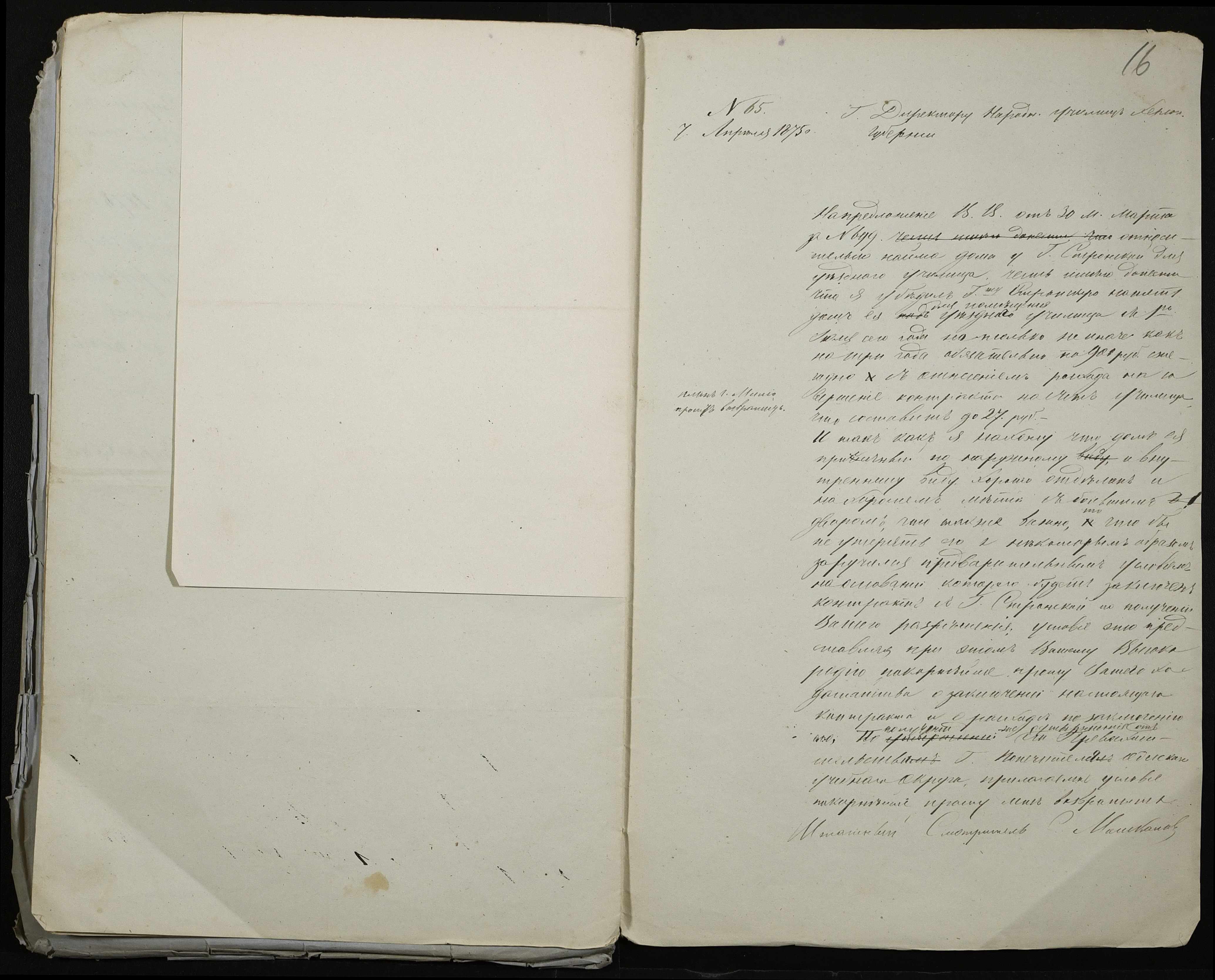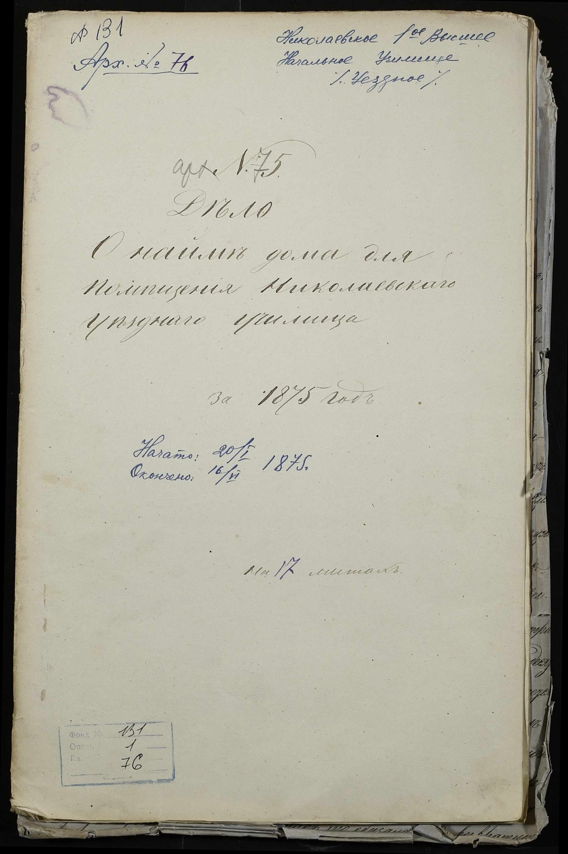 • • • • Справа № 76 “Справа про оренду будинку удови генерал-майора А.І. Стронської (А.И. Стронской) для розміщення повітового училища”