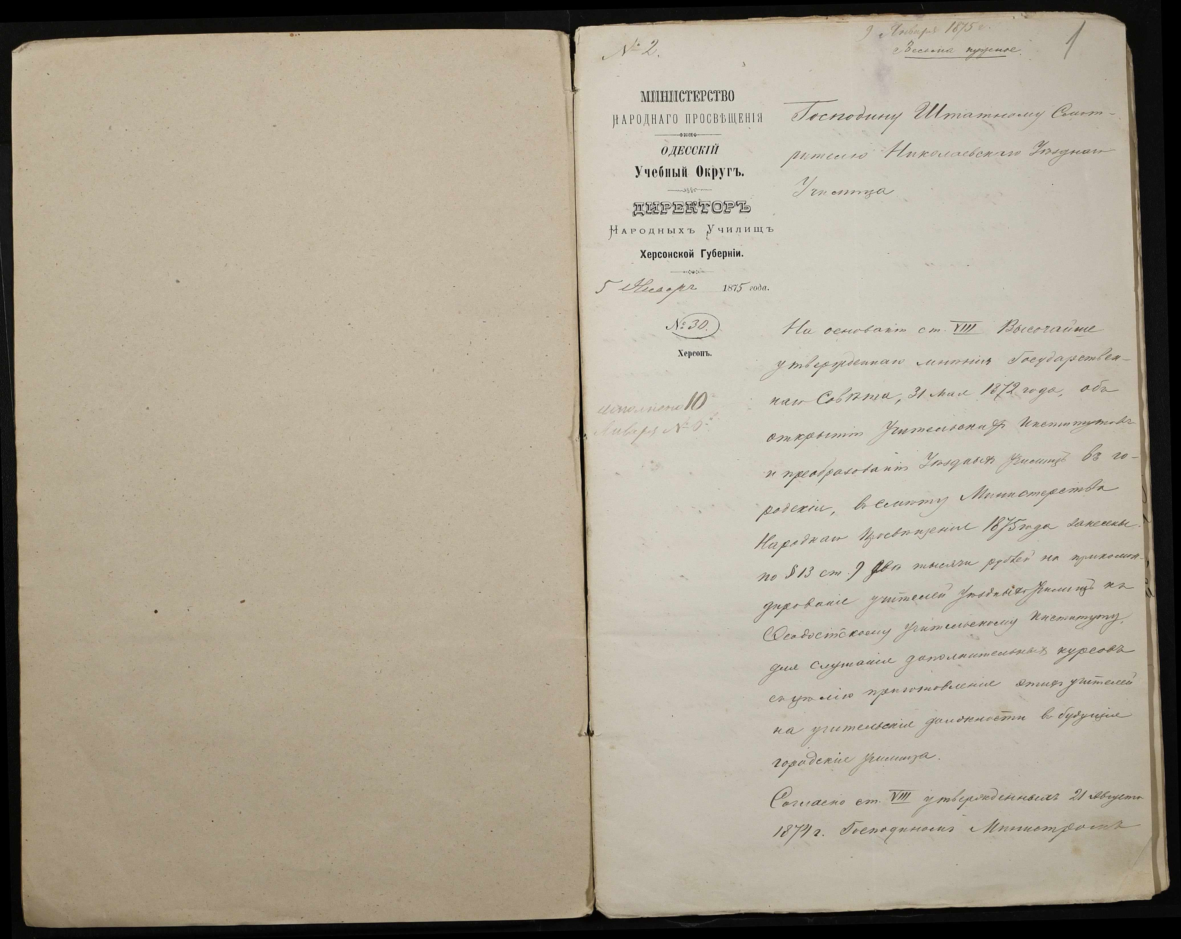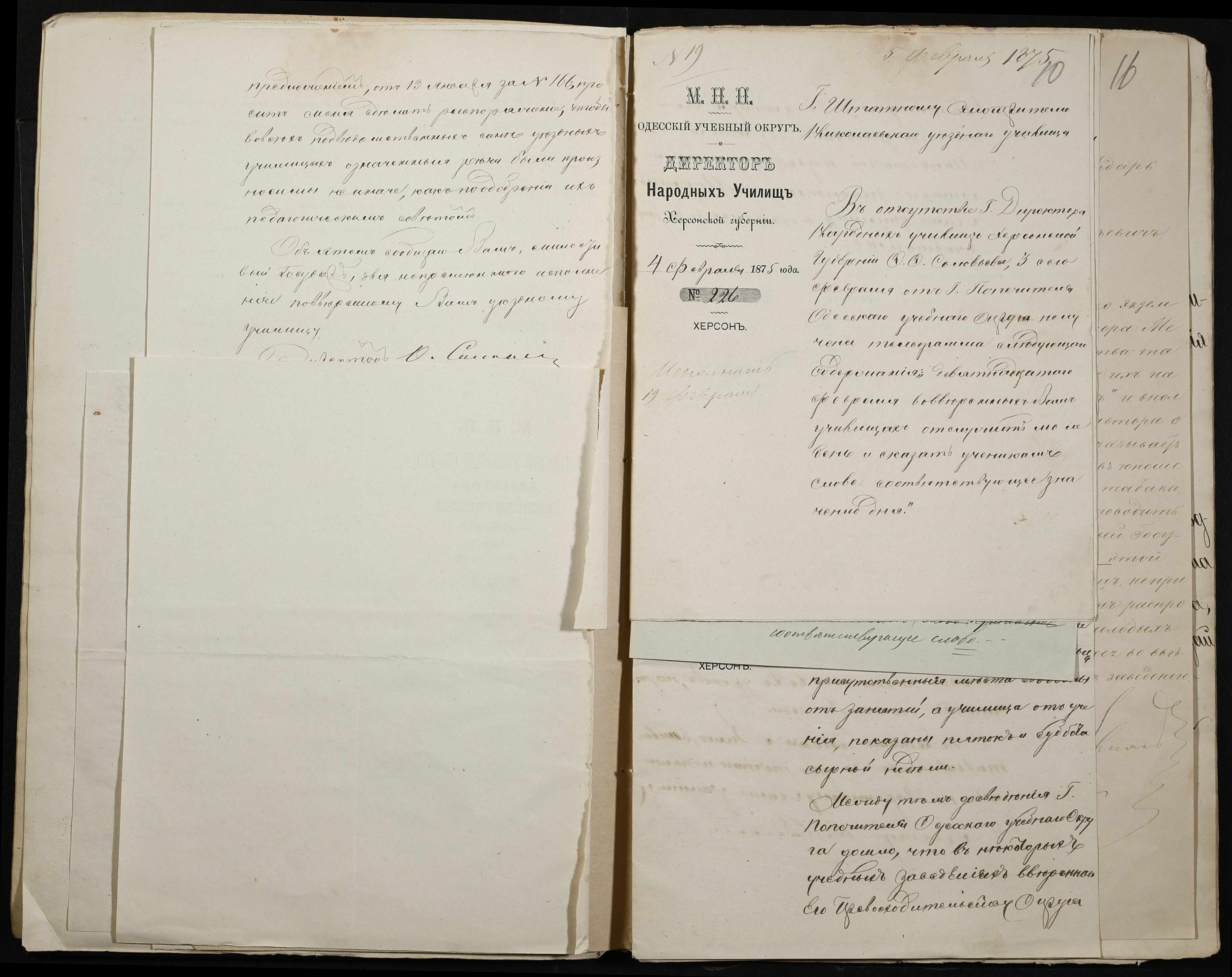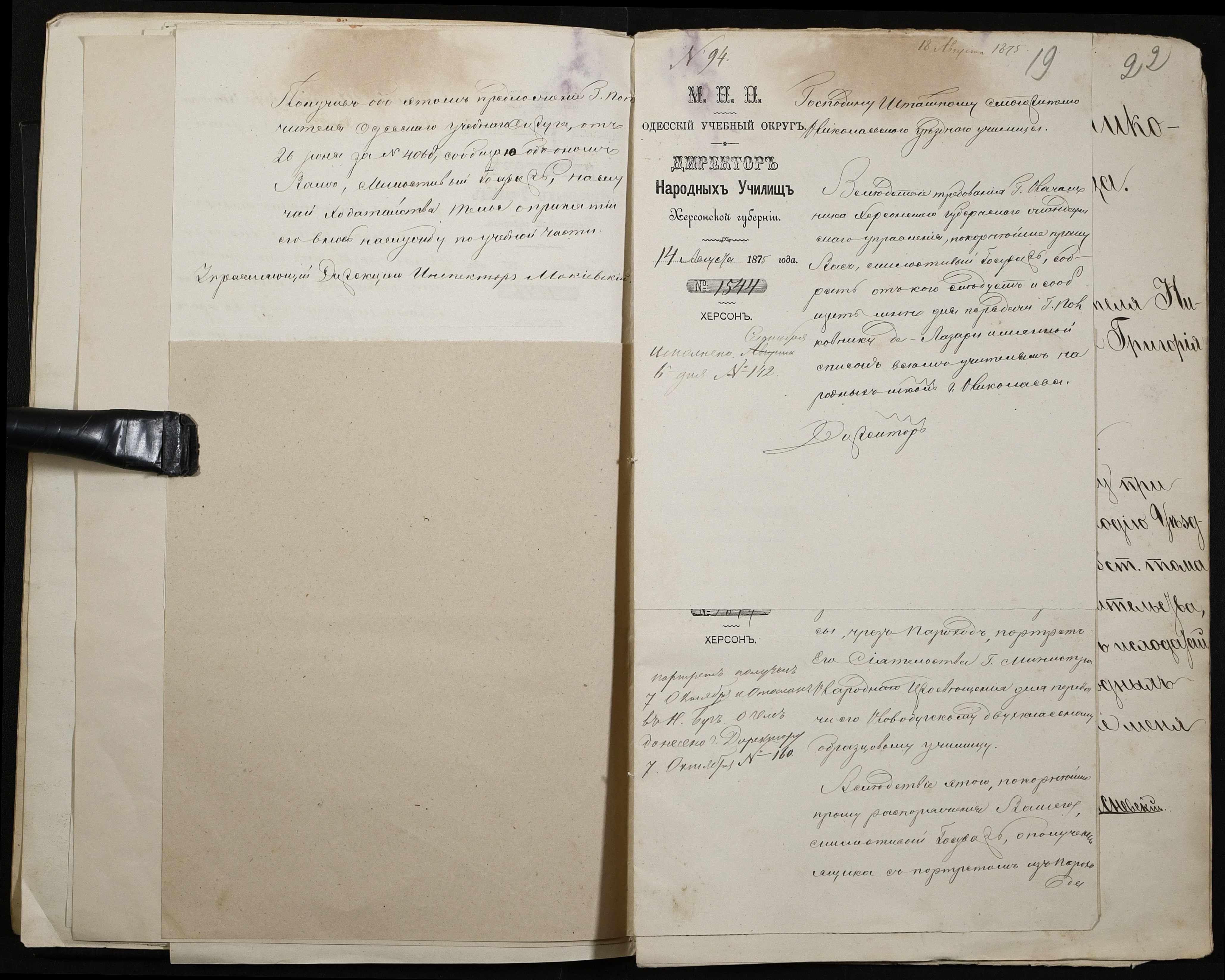 • • • • Справа № 89а “Листування з директором народних училищ Одеського навчального округу про направлення вчителів на курси при педагогічному інституті, рапорти і відомості про кількість учнів і вчителів училища”