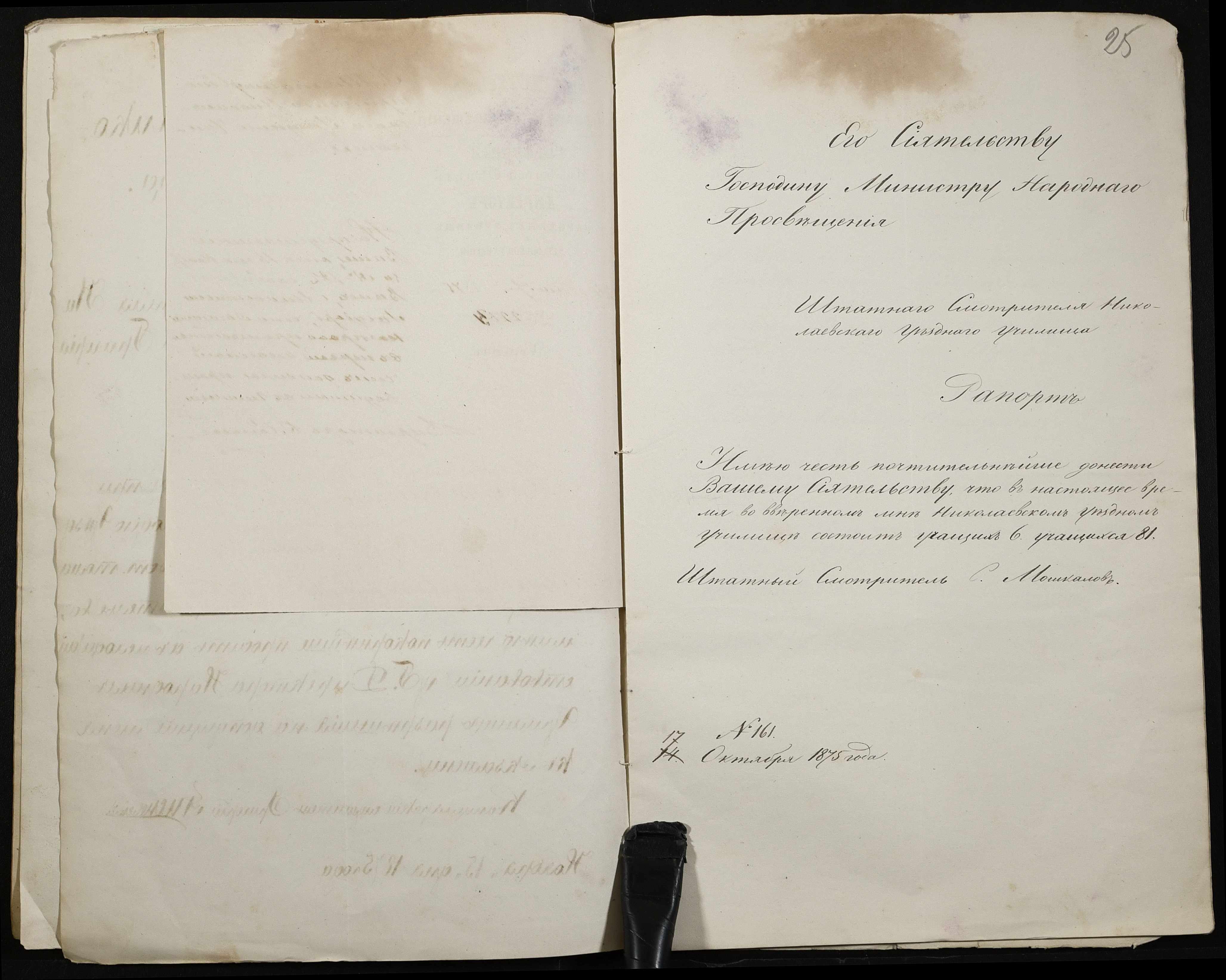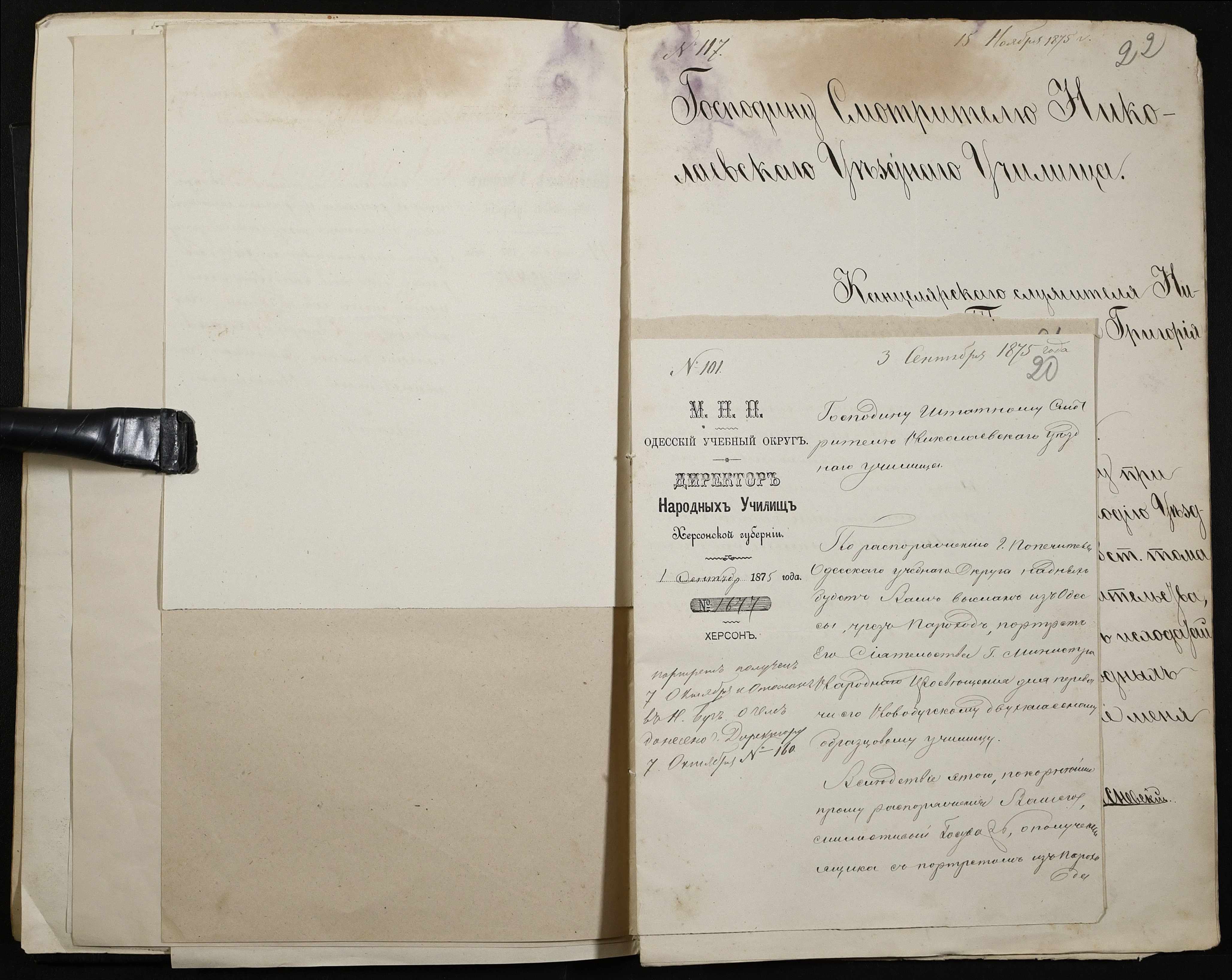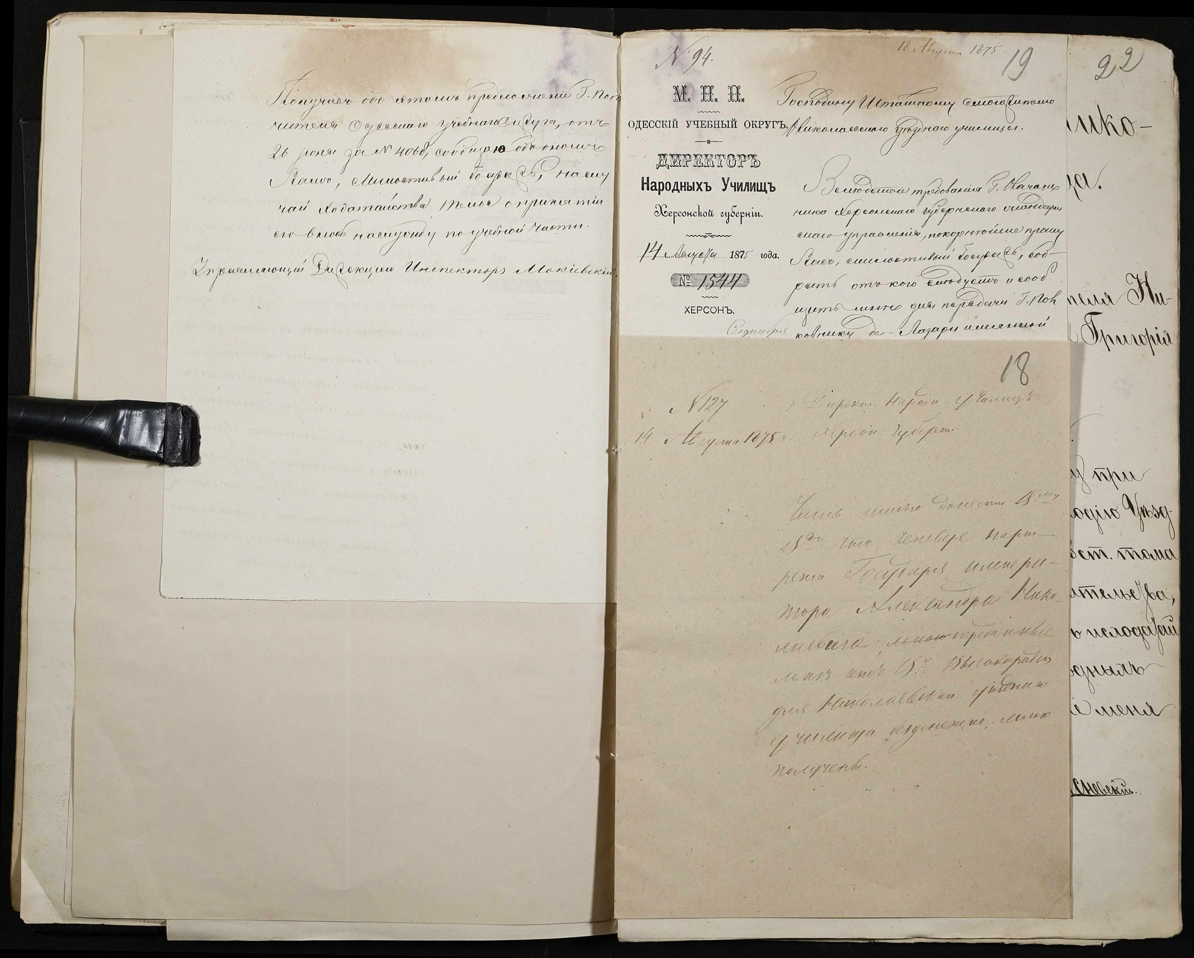 • • • • Справа № 89а “Листування з директором народних училищ Одеського навчального округу про направлення вчителів на курси при педагогічному інституті, рапорти і відомості про кількість учнів і вчителів училища”