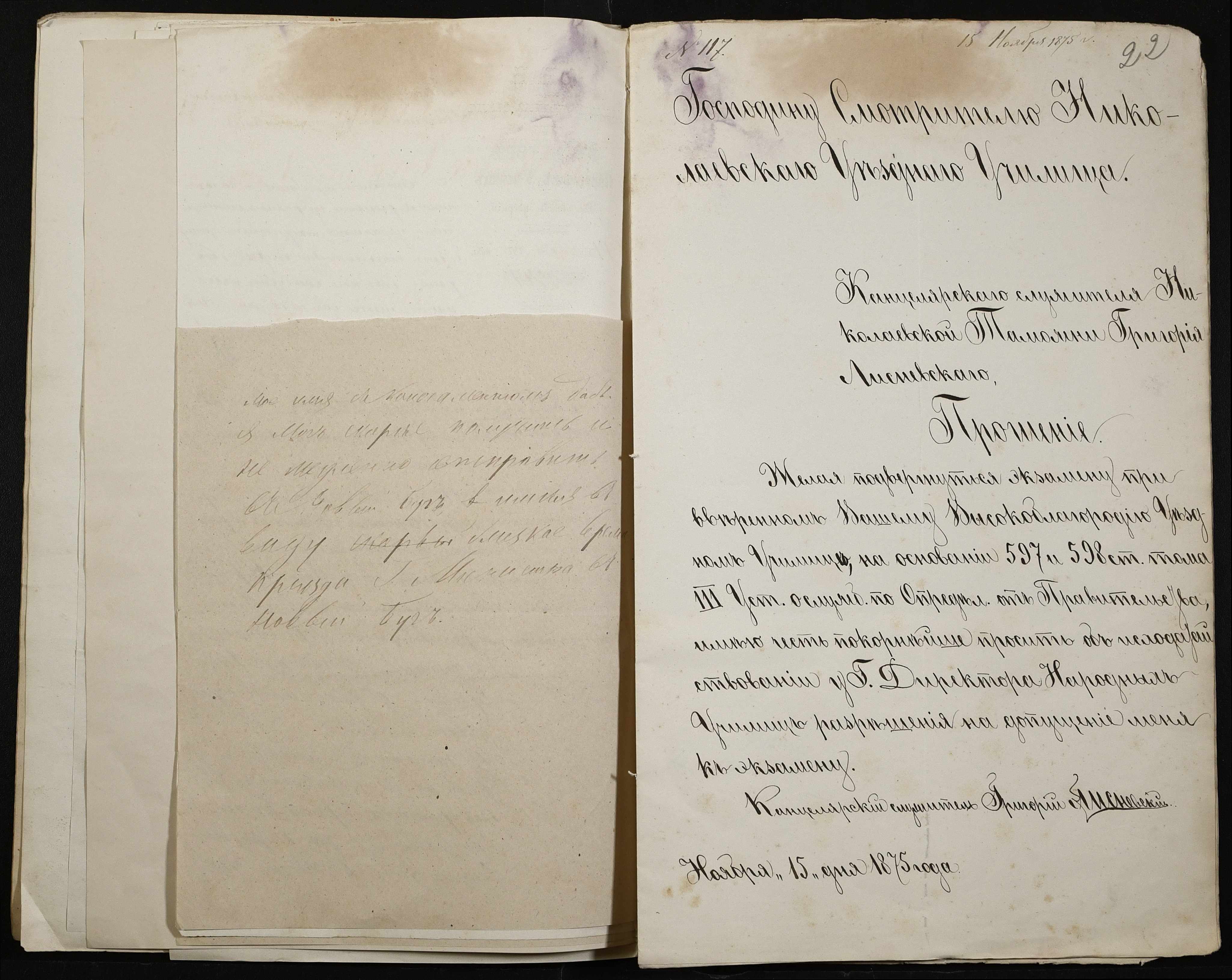 ◦ ◦ ◦ Опис № 1 справ постійного зберігання за 1847-1852, 1858, 1868-1869, 1871-1919, 1922 роки