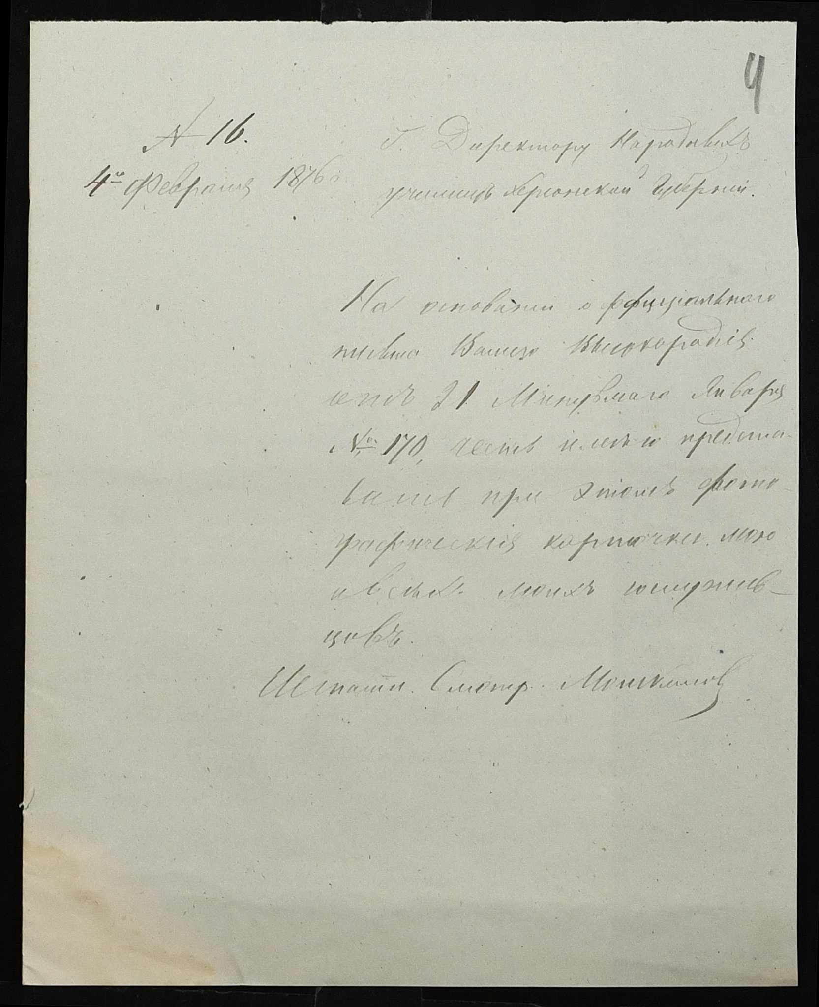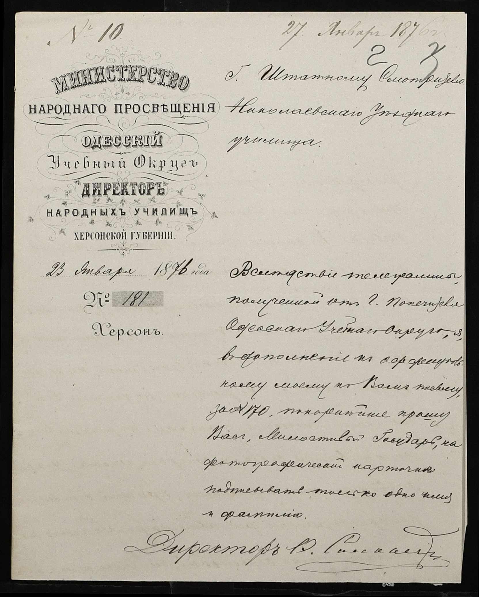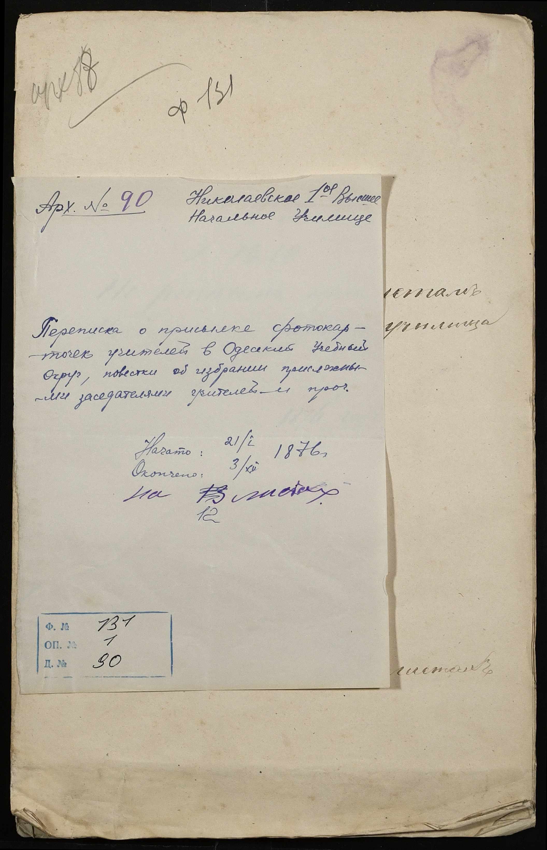 • • • • Справа № 90 “Листування з директором народних училищ Херсонської губернії про обрання присяжними засідателями вчителів училища, про створення фотоальбому вчителів для міністра народної освіти графа Д.А. Толстого (Д.А. Толстого)”