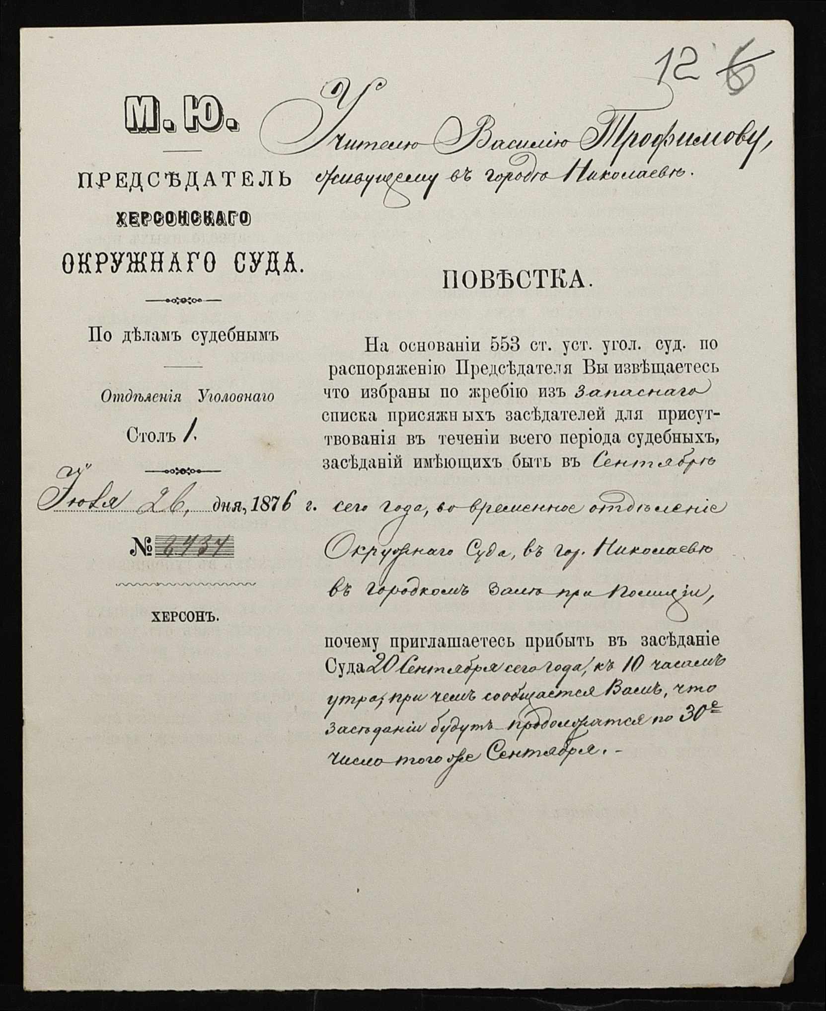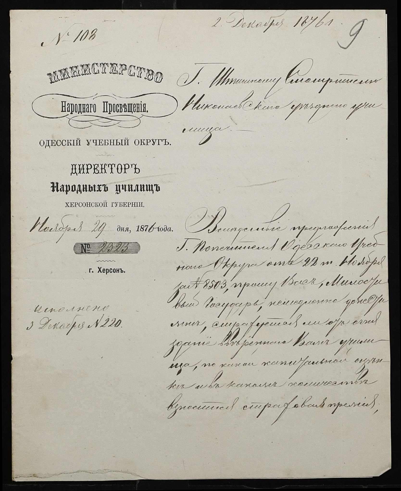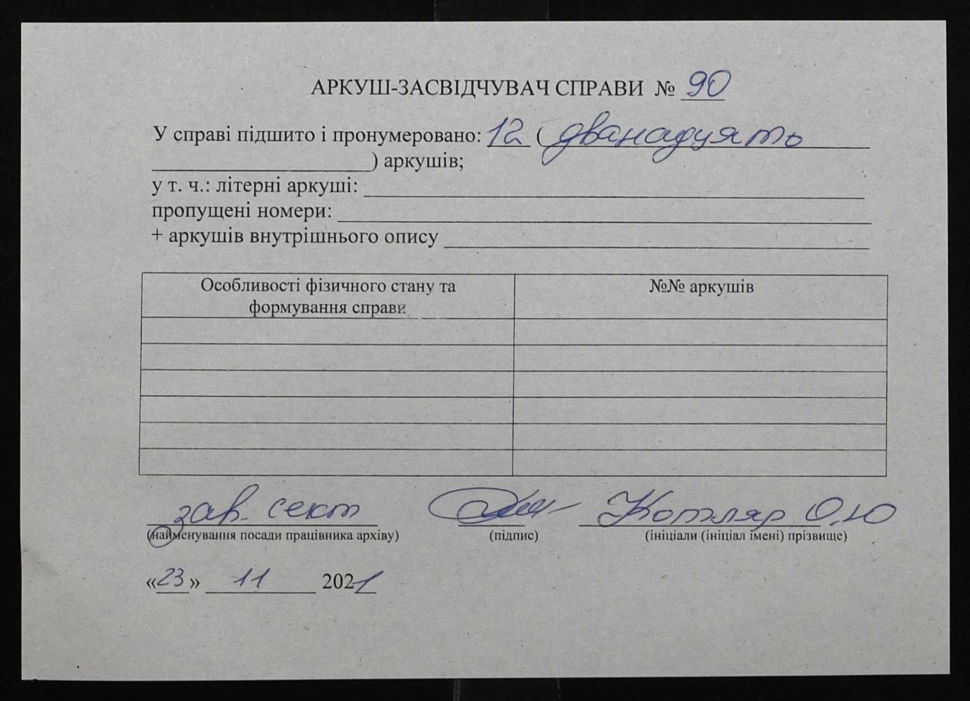 • • • • Справа № 90 “Листування з директором народних училищ Херсонської губернії про обрання присяжними засідателями вчителів училища, про створення фотоальбому вчителів для міністра народної освіти графа Д.А. Толстого (Д.А. Толстого)”