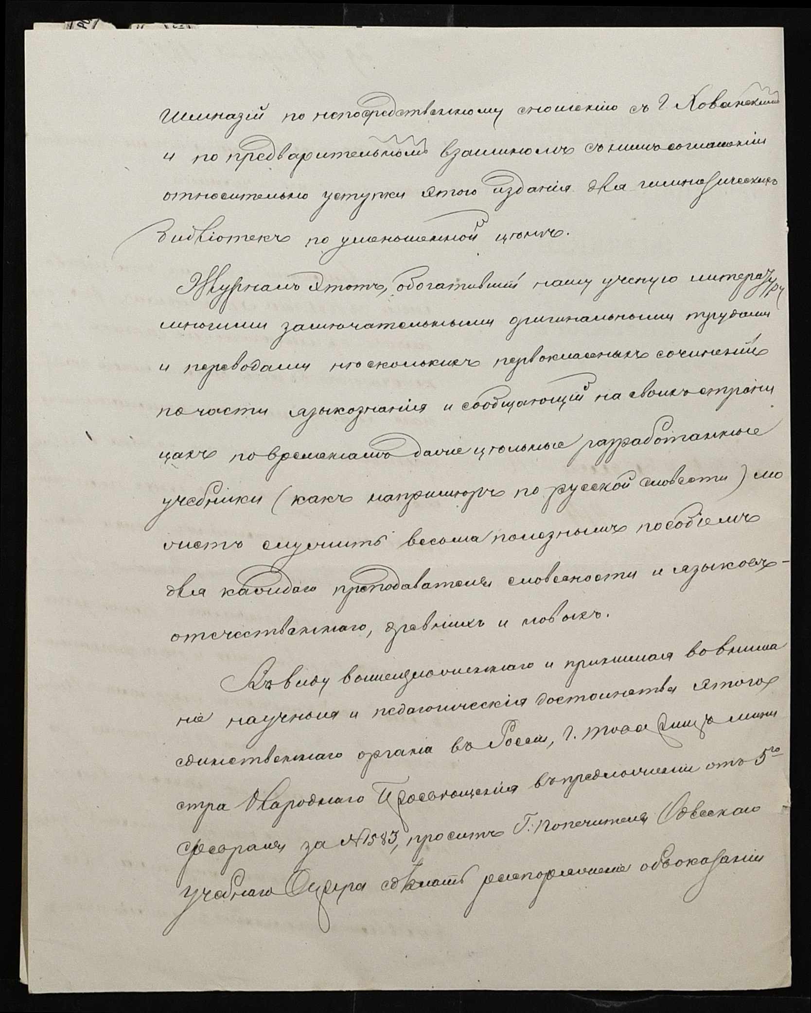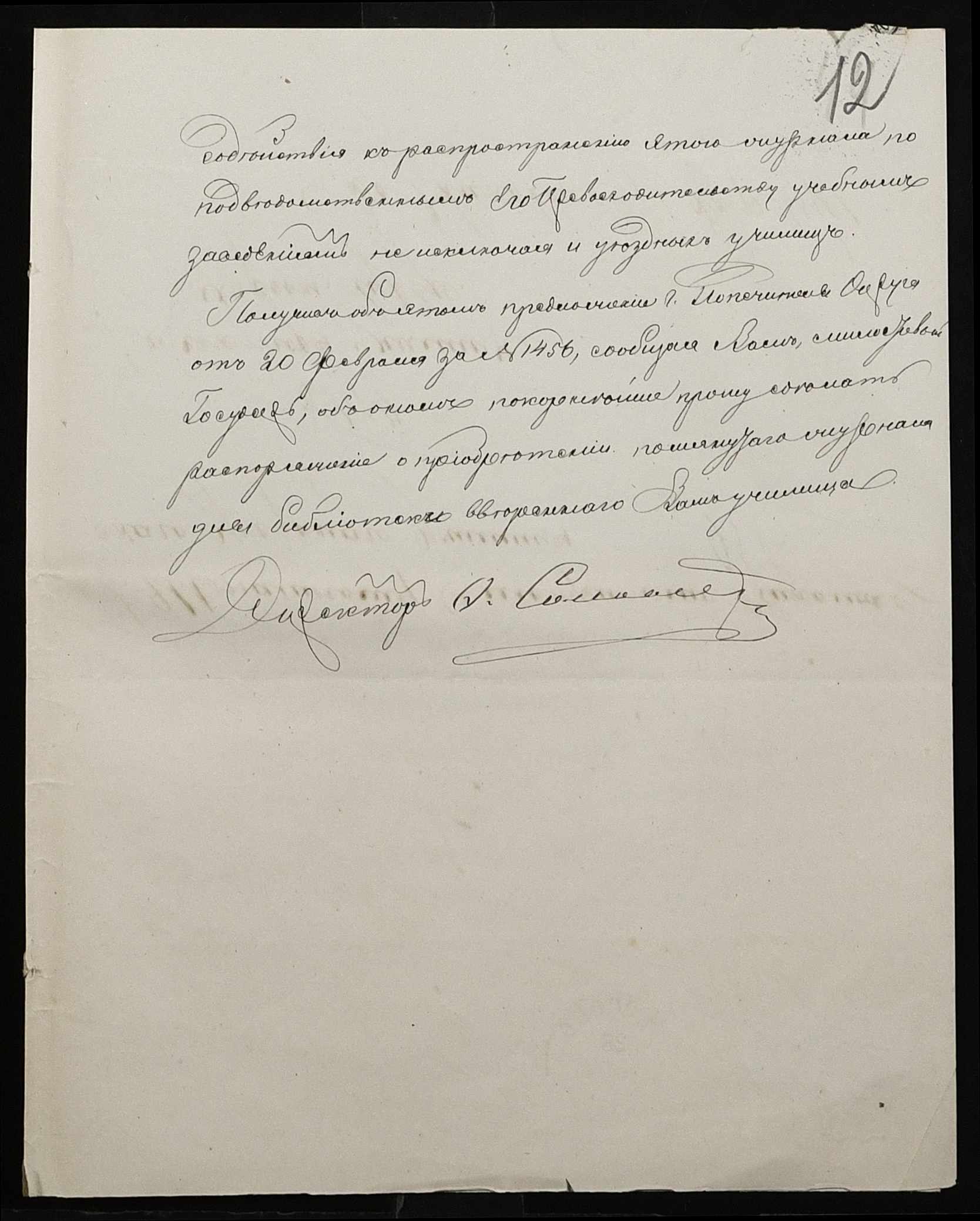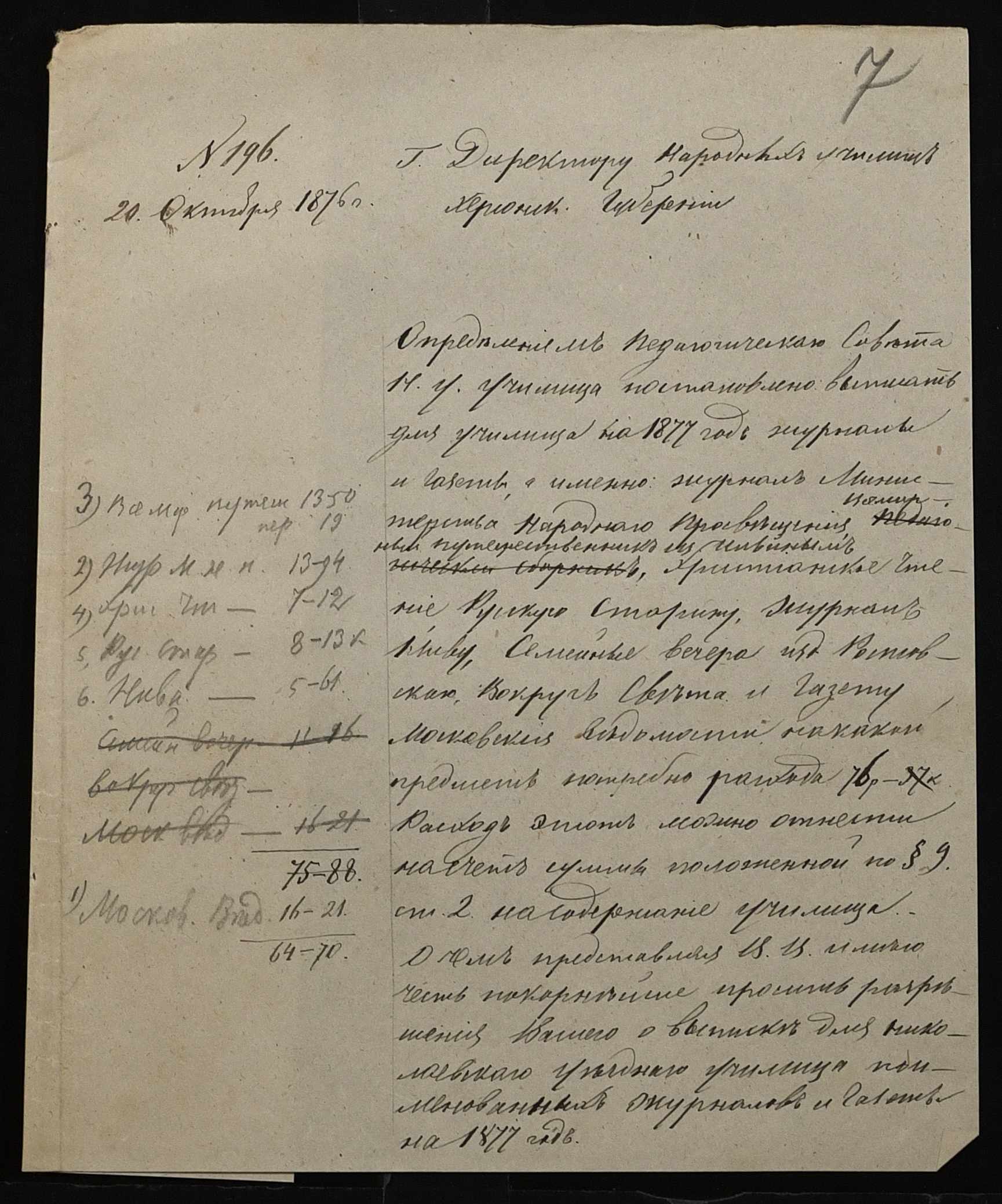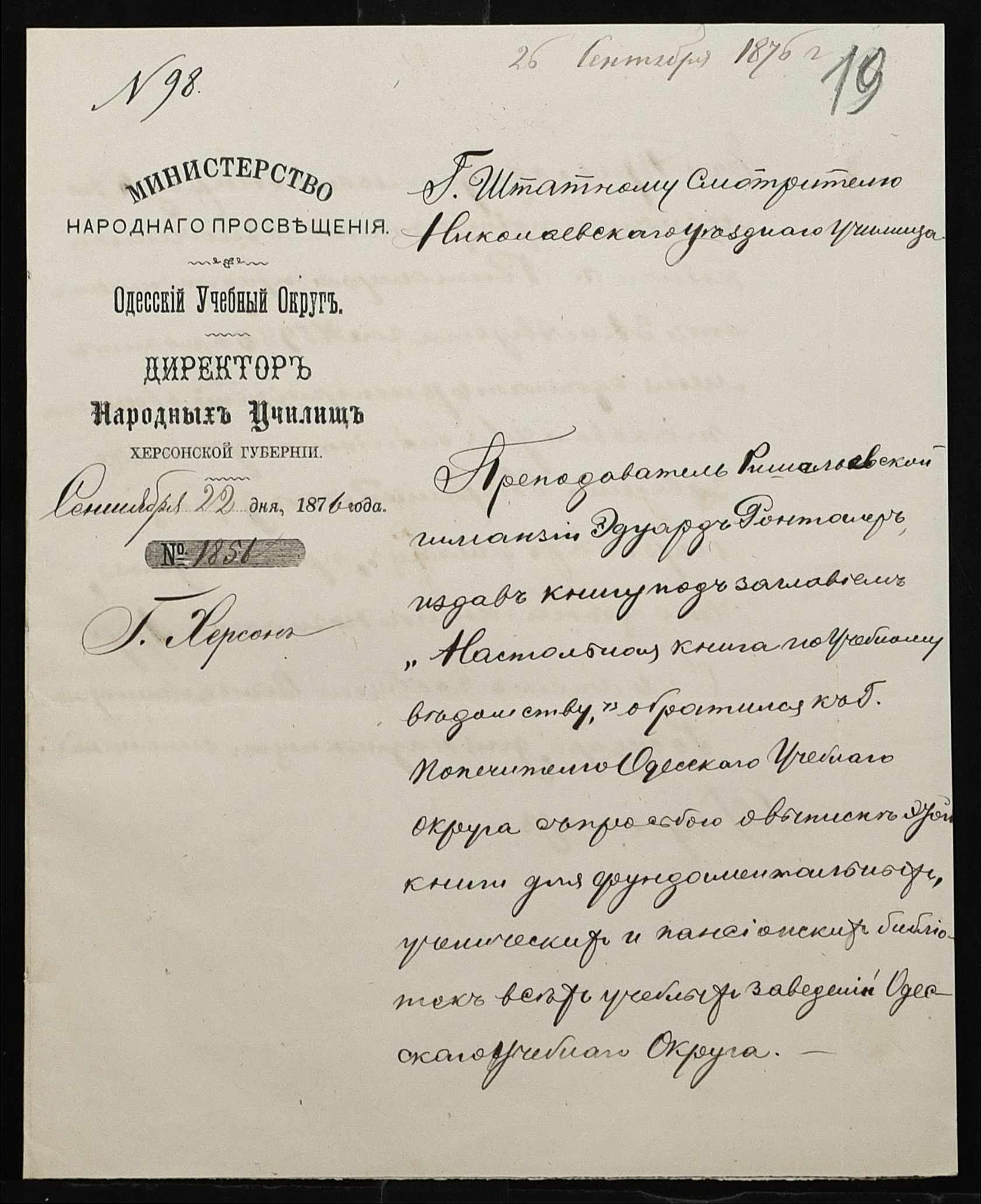 • • • • Справа № 95 “Листування з директором народних училищ про поповнення та формування бібліотеки повітового училища”