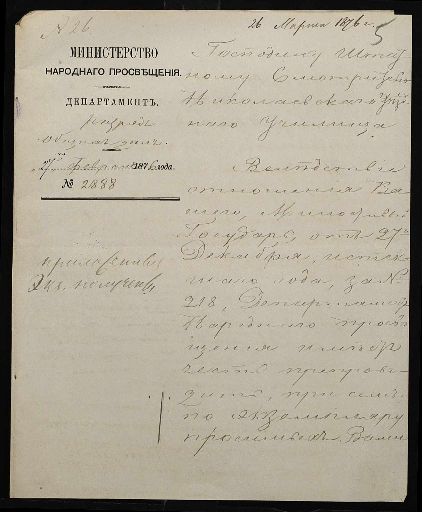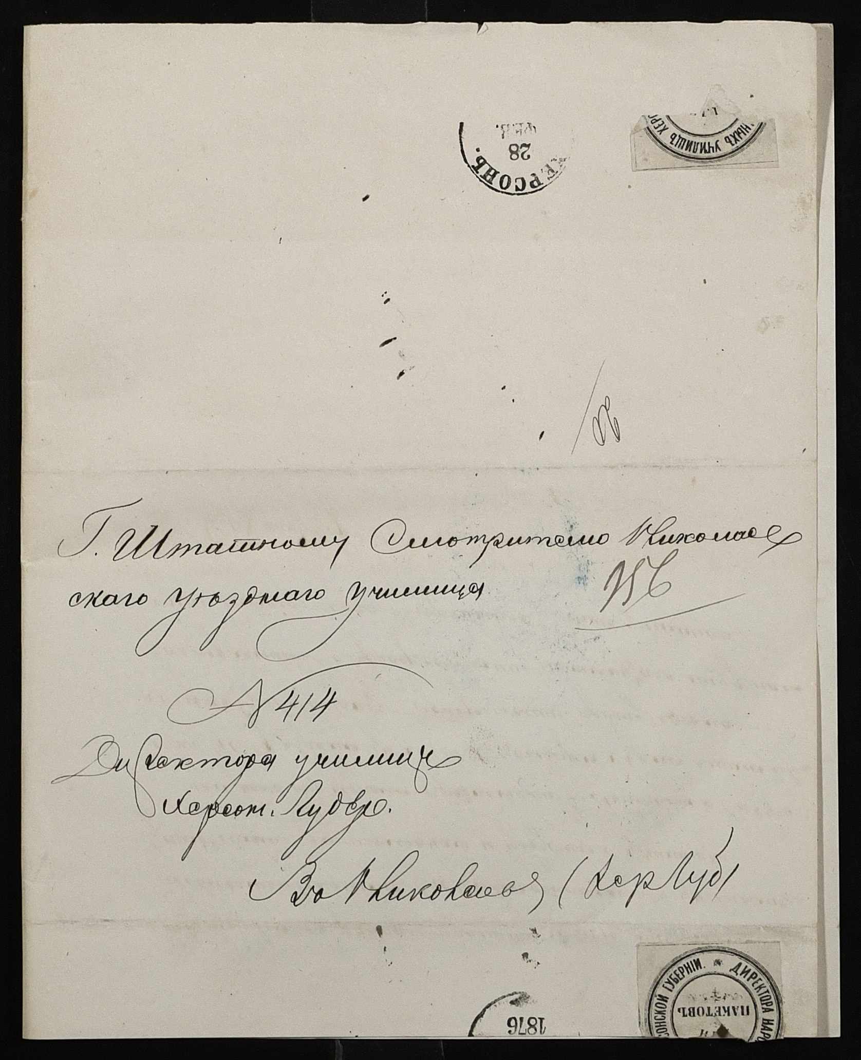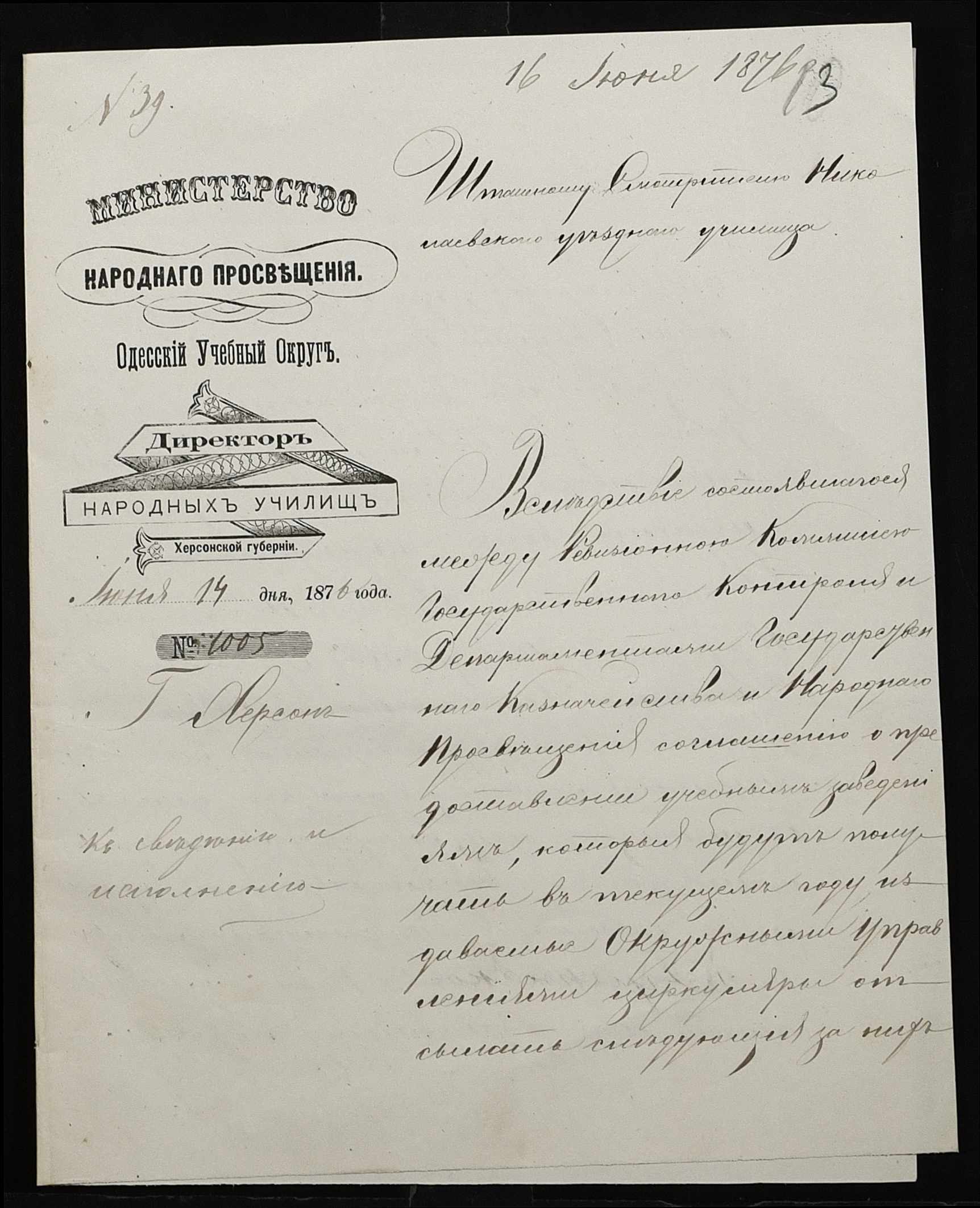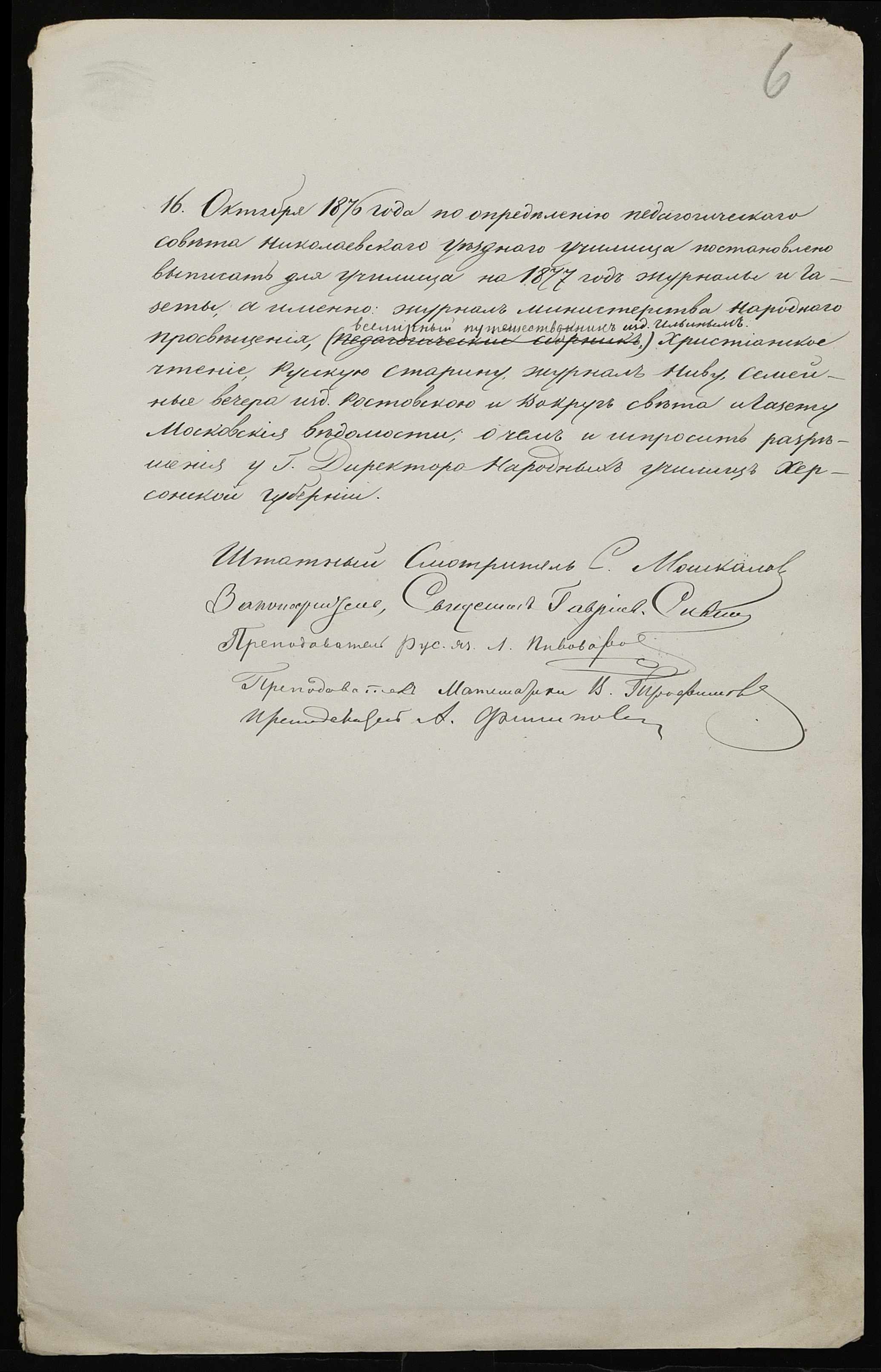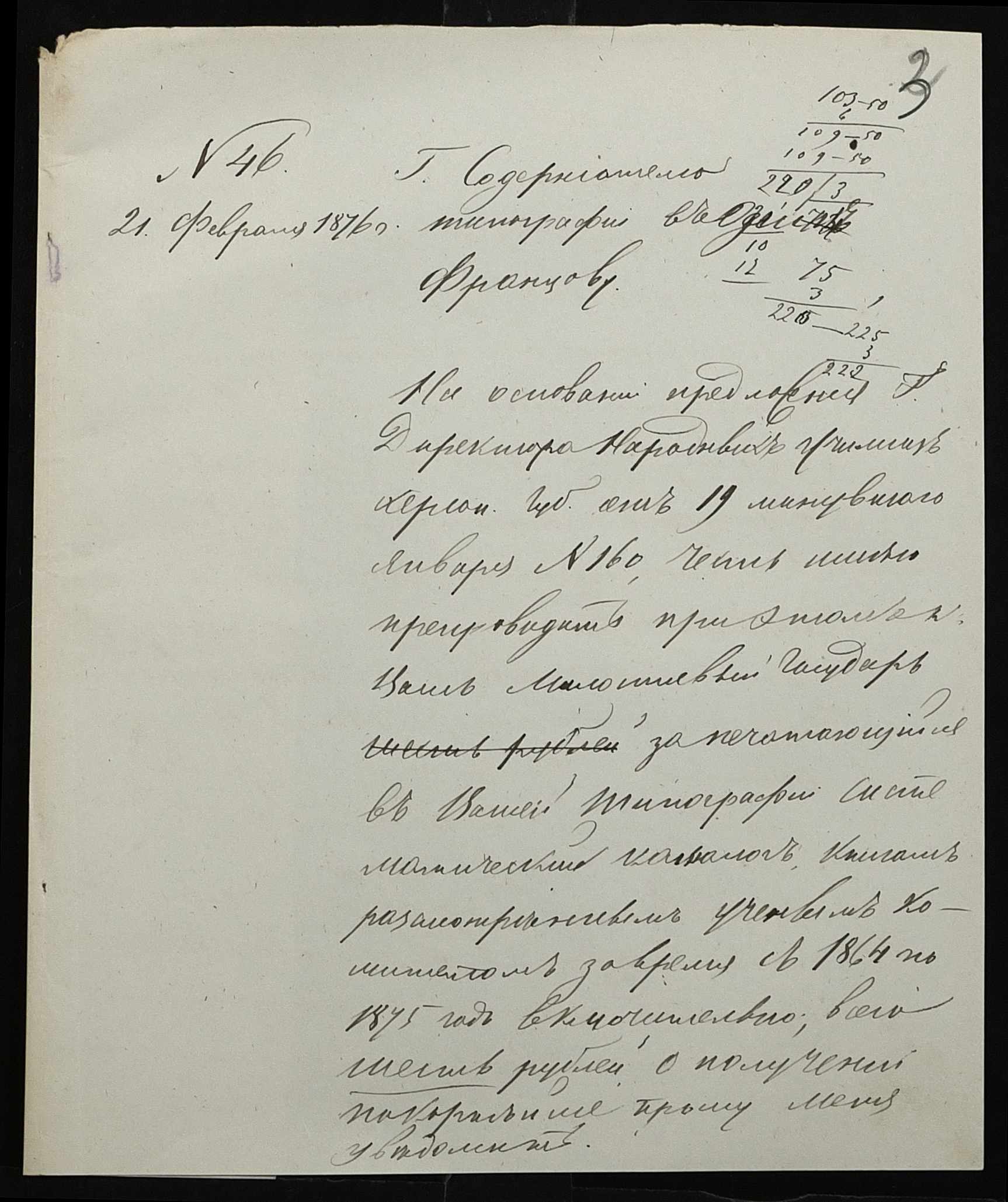 • • • • Справа № 95 “Листування з директором народних училищ про поповнення та формування бібліотеки повітового училища”
