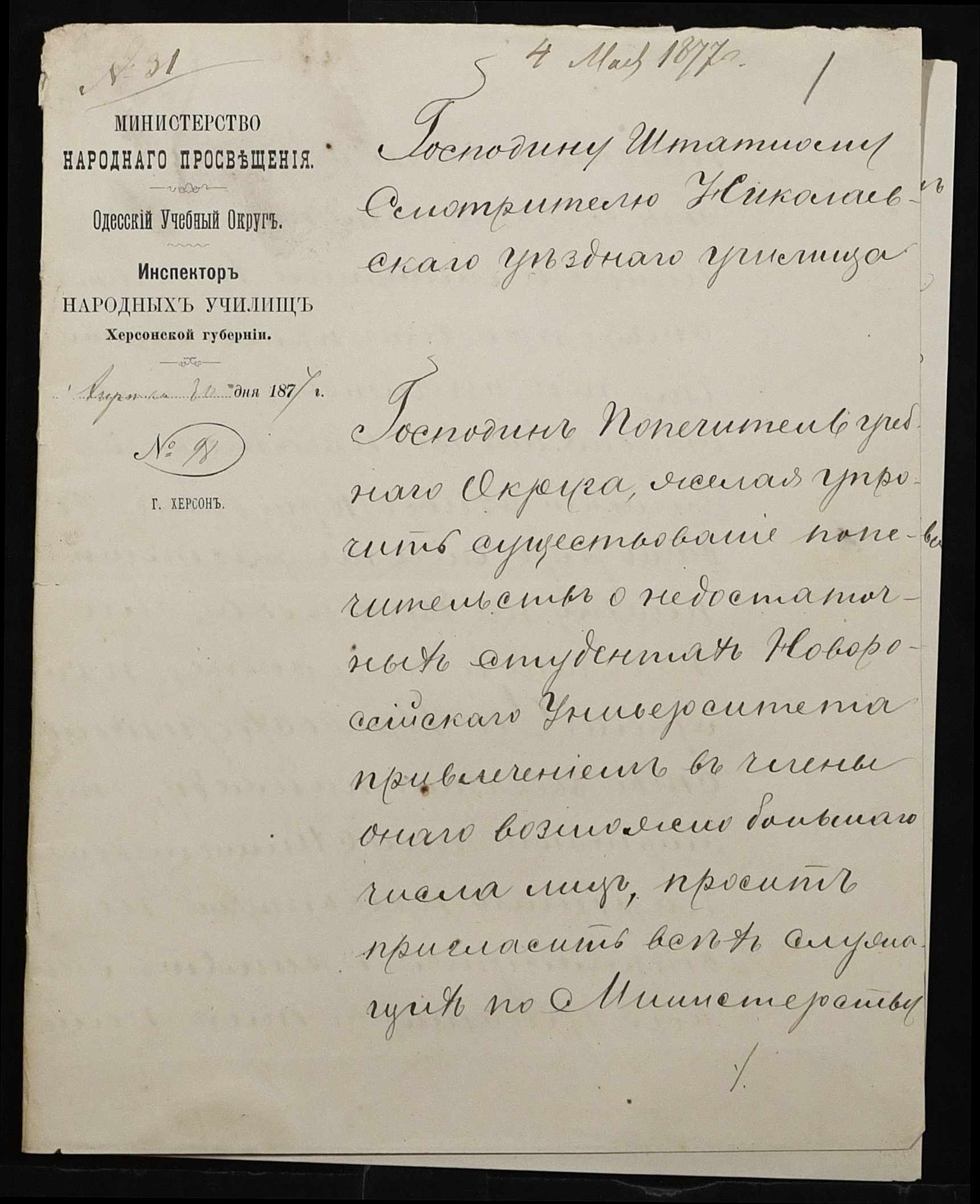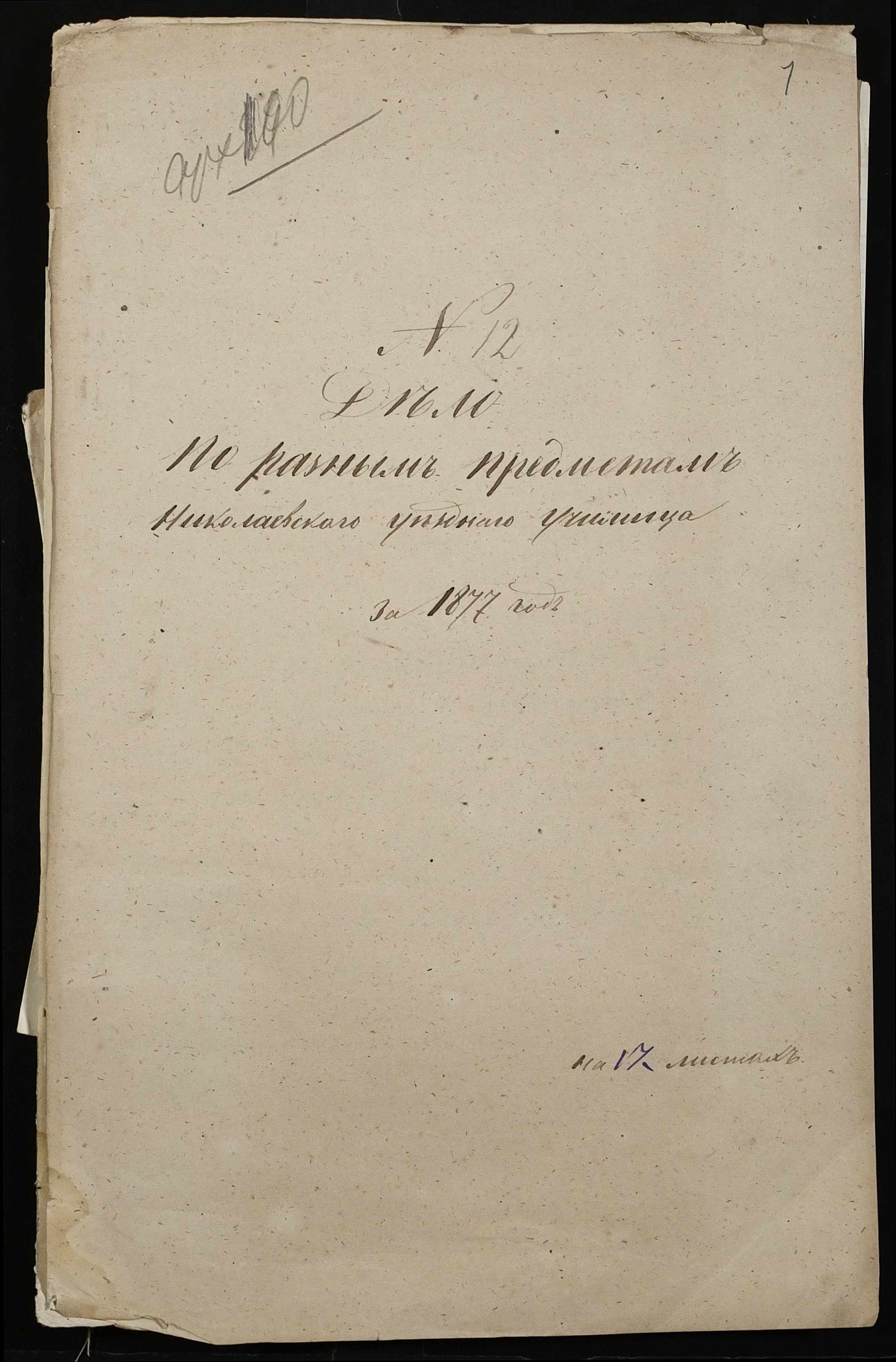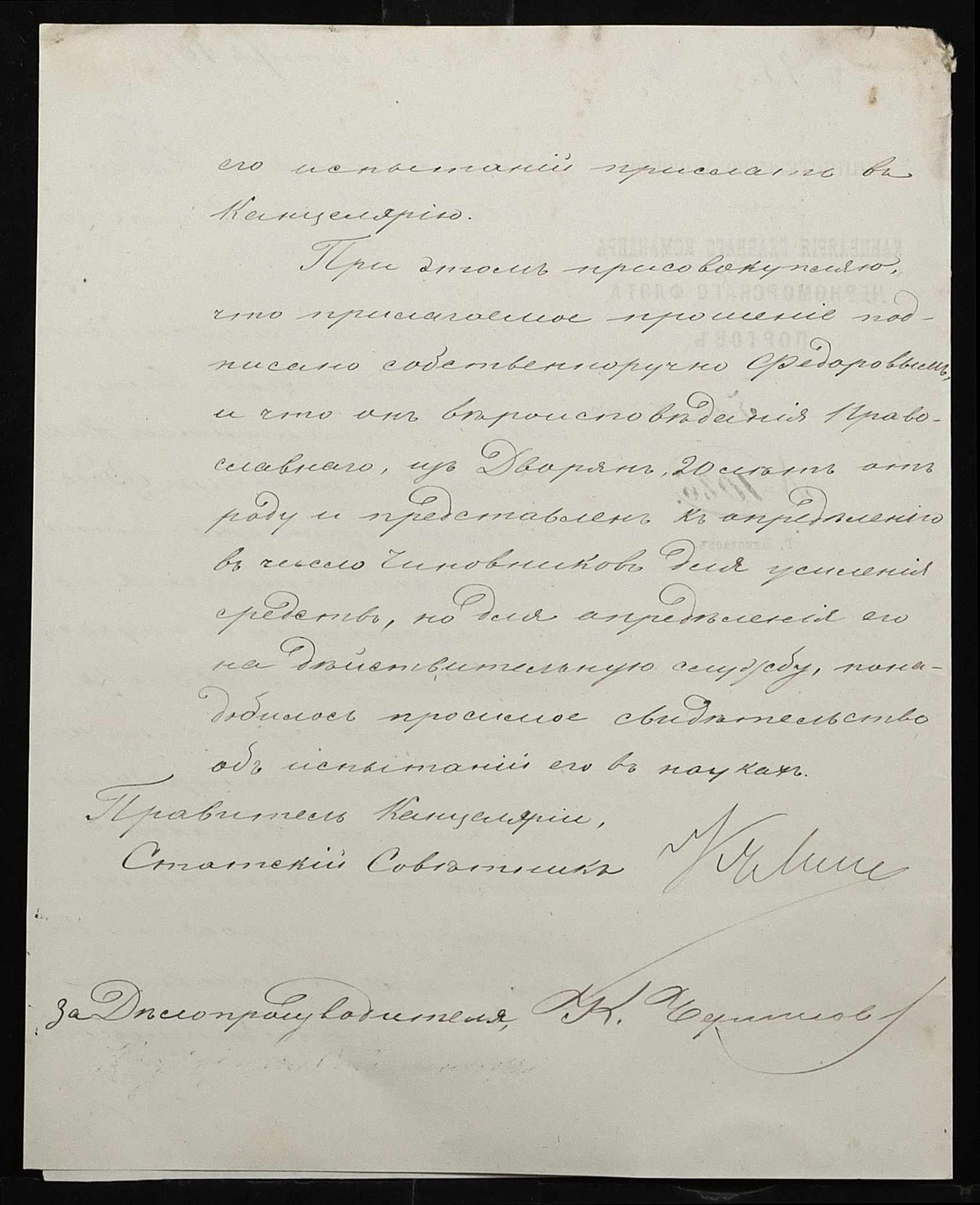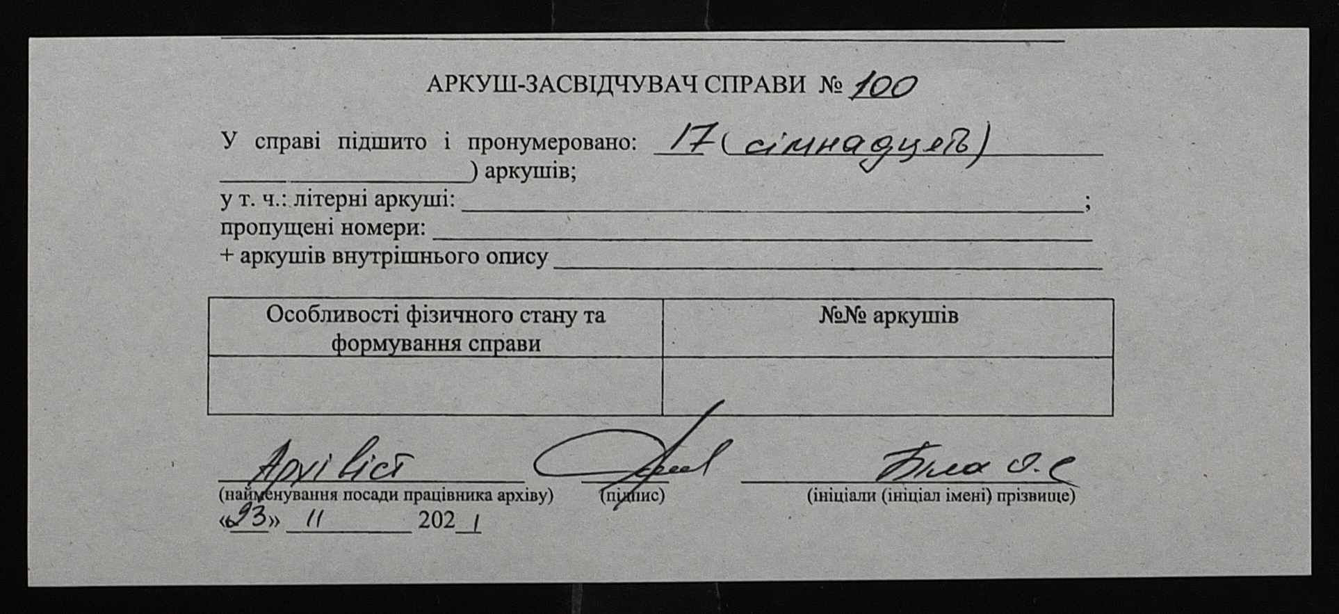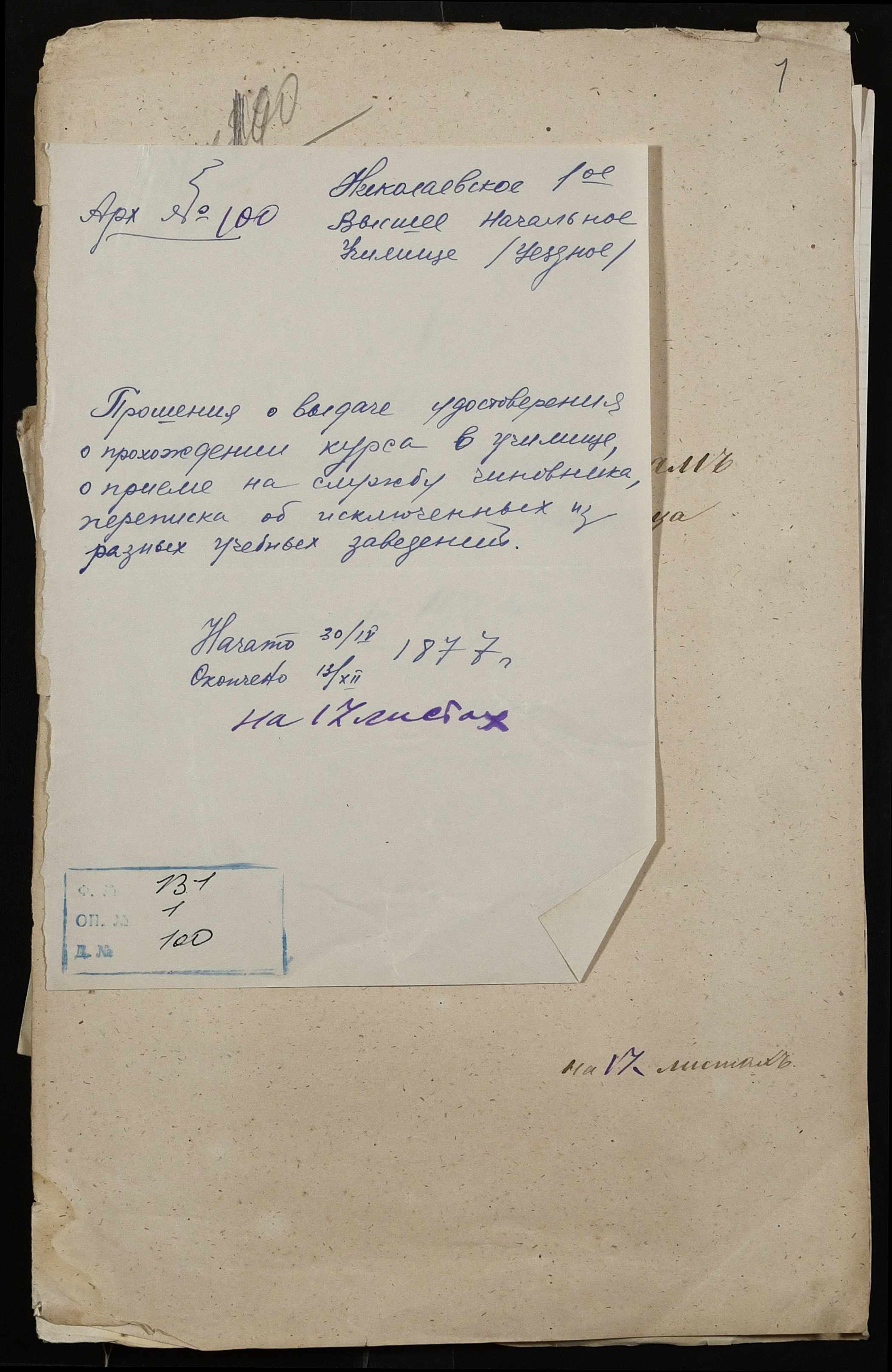 • • • • Справа № 100 “Прохання про видачу свідоцтва про проходження педагогічних курсів в училищі, про прийом на службу чиновників та інше”